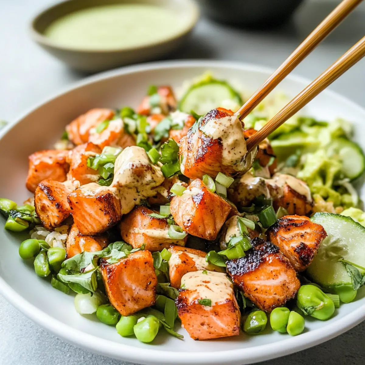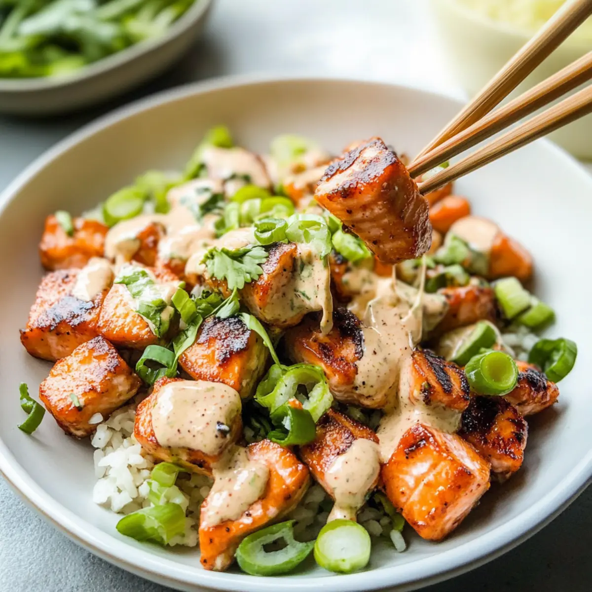 • Vegan Twist: Swap the salmon for cubed tofu and use a dairy-free yogurt in the sauce to create a completely vegan Bang Bang experience. Marinate the tofu beforehand for extra flavor.