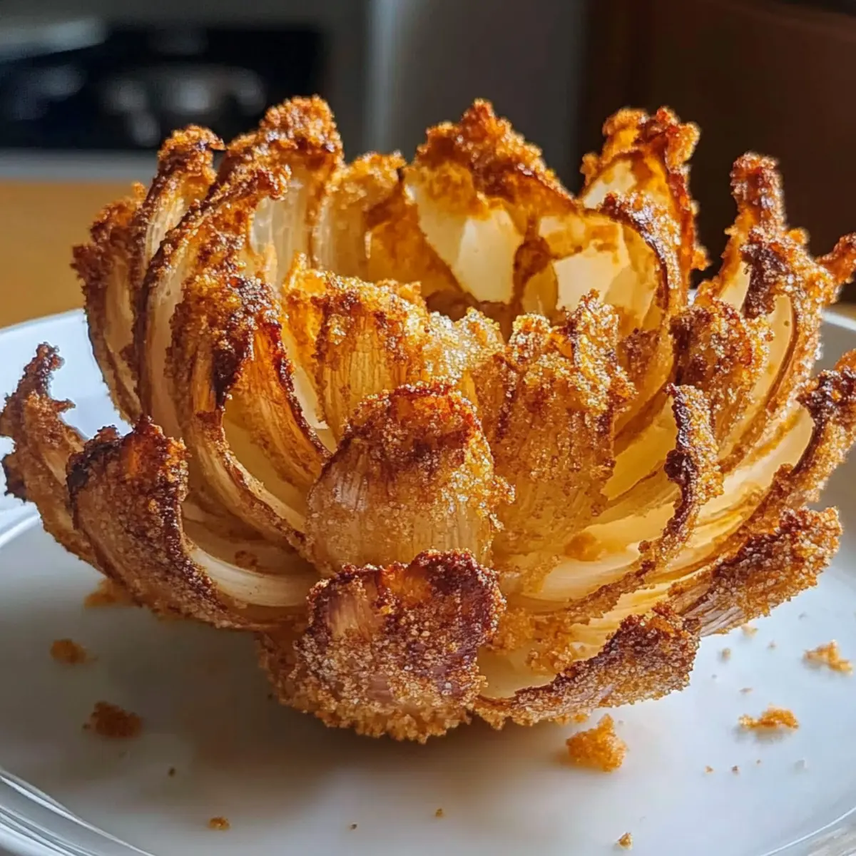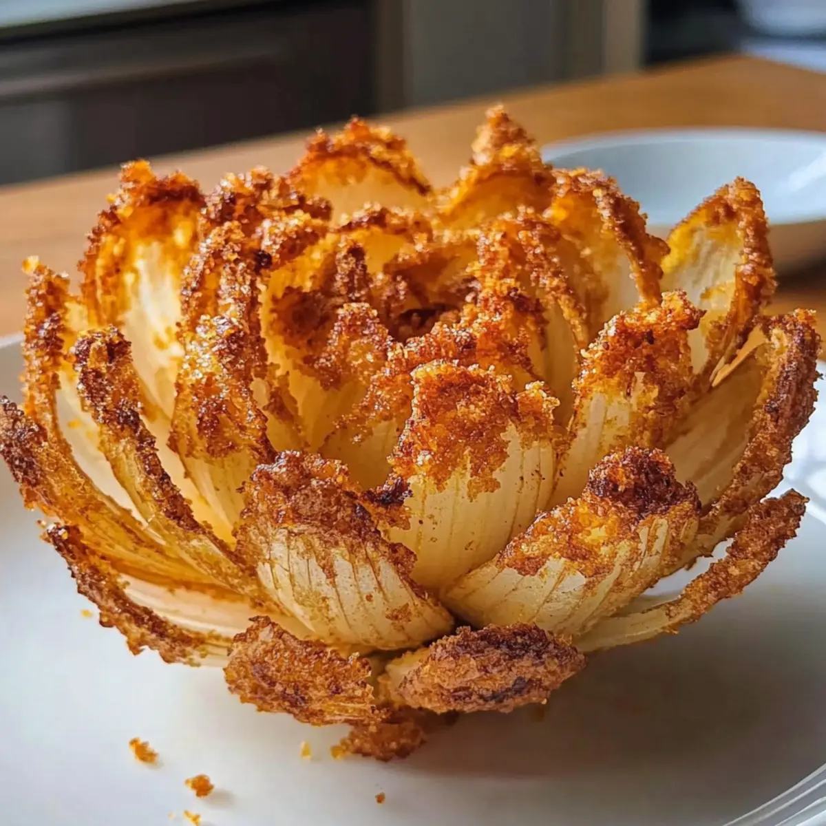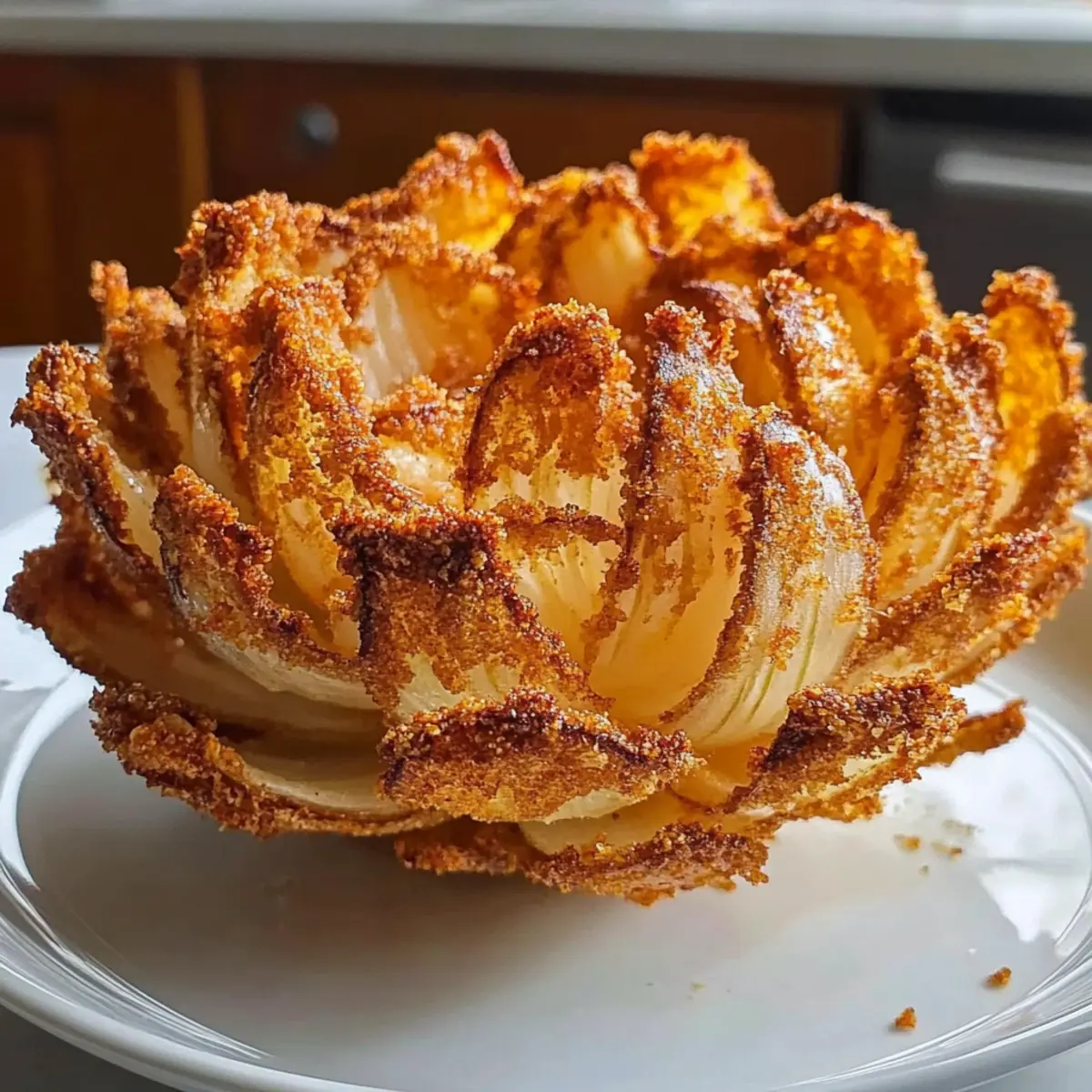 Jump to Recipe Print RecipeAs I stood in my kitchen contemplating which cozy comfort food to whip up, a craving hit me: that irresistible, crispy goodness of a blooming onion. No more battling the drive-thru! With my trusty air fryer, I can transform this beloved appetizer into a healthy, homemade delight. My Crispy Air Fryer Blooming Onion captures that classic restaurant flavor while slashing oil and cleanup time, making it a perfect centerpiece for gatherings or a fun snack during movie night. Plus, it’s vegetarian-friendly and oh-so-easy to customize with your favorite dips. Who knew that such a stunning dish could be made right at home? So, are you ready to impress your guests with this golden gem? Let’s get frying! Why Is This Blooming Onion So Amazing? Irresistible Crunch: The air fryer delivers a perfectly crispy exterior with minimal oil, making each bite delightfully light and satisfying. Crowd-Pleasing Appetizer: Whether for game day or dinner parties, this dish serves as a stunning centerpiece that guests can’t resist. Customizable Flavors: From sweet to spicy, feel free to adjust seasonings to match your taste preferences or even pair it with your favorite dipping sauces, like creamy ranch or sriracha mayo. Easy to Make: With simple steps, you’ll whip this up in no time, freeing you to enjoy more quality moments with your friends and family. Healthy Alternative: Enjoy all the flavor of a deep-fried version without the guilt—perfect for those seeking tasty vegetarian options! If you’re looking for more delicious air fryer ideas, check out these Air Fryer Garlic Butter Steak Bites or try some flavorful Air Fryer Lemon Chicken Bites to complement your appetizer. Air Fryer Blooming Onion Ingredients For the Blooming Onion • Onion – Sweet onions like Vidalia provide a milder flavor, while regular yellow onions offer a sharper taste. • All-Purpose Flour – Essential for a crispy coating; substitute with gluten-free flour for a gluten-free version. • Eggs – Acts as a binding agent to help the flour adhere. • Seasonings – Enhance the flavor; feel free to add cayenne for a spicy kick! • Oil Spray – A generous spray is key to achieving that coveted crispy texture. For the Dipping Sauce (Optional) • Ranch Dressing – Creamy and classic, it pairs perfectly with the blooming onion. • Sriracha Mayo – A delightful mix of mayo and sriracha for a spicy twist. • Lime Juice – Add a splash for extra zing in your dipping sauce. Make your air fryer blooming onion unforgettable with these simple ingredients! Whether it’s game day or a cozy get-together, this dish is sure to impress! Step‑by‑Step Instructions for Air Fryer Blooming Onion Step 1: Prepare the Onion Begin by placing a large sweet onion, like Vidalia, on a cutting board. Cut off about 1/2 inch from the top and carefully make vertical cuts around the onion, about 1/4 inch apart, stopping 1/2 inch from the root to create beautiful petals that bloom. Rinse the onion under cold water, gently prying apart the petals to help separate them. Step 2: Coat the Onion In a shallow dish, combine all-purpose flour with your desired seasonings. Roll the prepared onion in the seasoned flour, ensuring that each petal is well-coated. Using tongs, dip the onion into a beaten egg mixture, letting any excess egg drip off. Then, roll it back in the seasoned flour, creating a thorough coating that will ensure a crispy texture in your air fryer blooming onion. Step 3: Preheat the Air Fryer Preheat your air fryer to 375°F (190°C) for about 5 minutes. While waiting, place the coated blooming onion on a plate or in a basket that fits your air fryer. Generously spray the onion with oil, ensuring every petal gets an even coat. This step is essential for achieving that perfect golden crunch when air frying. Step 4: Air Fry the Onion Carefully place the prepared blooming onion into the air fryer basket, ensuring it sits upright. Cook at 375°F for approximately 12-15 minutes, until the onion is golden brown and crispy. Halfway through cooking, gently separate any petals that may be sticking together, allowing for even frying and a beautifully blooming presentation. Step 5: Check for Doneness As the cooking time nears completion, keep an eye on your air fryer blooming onion. It should be a rich golden brown and exude a mouthwatering crunch when done. If it appears slightly undercooked, give it an additional 2-3 minutes, checking regularly to prevent overcooking while still maintaining that delightful texture. Step 6: Serve and Dip Once your crispy air fryer blooming onion is done, carefully remove it from the air fryer using tongs. Let it cool slightly before serving. Pair it with your favorite dipping sauces, such as creamy ranch or zesty sriracha mayo, for a perfect accompaniment. This stunning appetizer is not only a feast for the eyes but also a delicious treat for your taste buds! Expert Tips for Air Fryer Blooming Onion Choose the Right Onion: Sweet onions like Vidalia yield the best results due to their milder flavor and natural sweetness. Avoid overly sharp yellow onions to keep the taste balanced. Perfect Coating Technique: Ensure your onion is entirely dry before coating it to prevent the flour from clumping. A good coat is key to the crispiness of your air fryer blooming onion. Even Oil Application: Don’t skimp on the oil spray; an even, generous application will help achieve that golden crunch. Too little will result in a lackluster texture. Adjust Cooking Time: Air fryer models vary. Keep an eye on the blooming onion while it cooks. If it’s not golden brown after 12-15 minutes, add a couple more minutes to achieve perfection. Dipping Sauce Genius: Elevate your appetizer with delicious dipping sauces. Creamy ranch, tangy sriracha mayo, or a sprinkle of lime juice can take your crispy air fryer blooming onion to the next level! Air Fryer Blooming Onion Variations Feel free to make this mouthwatering blo