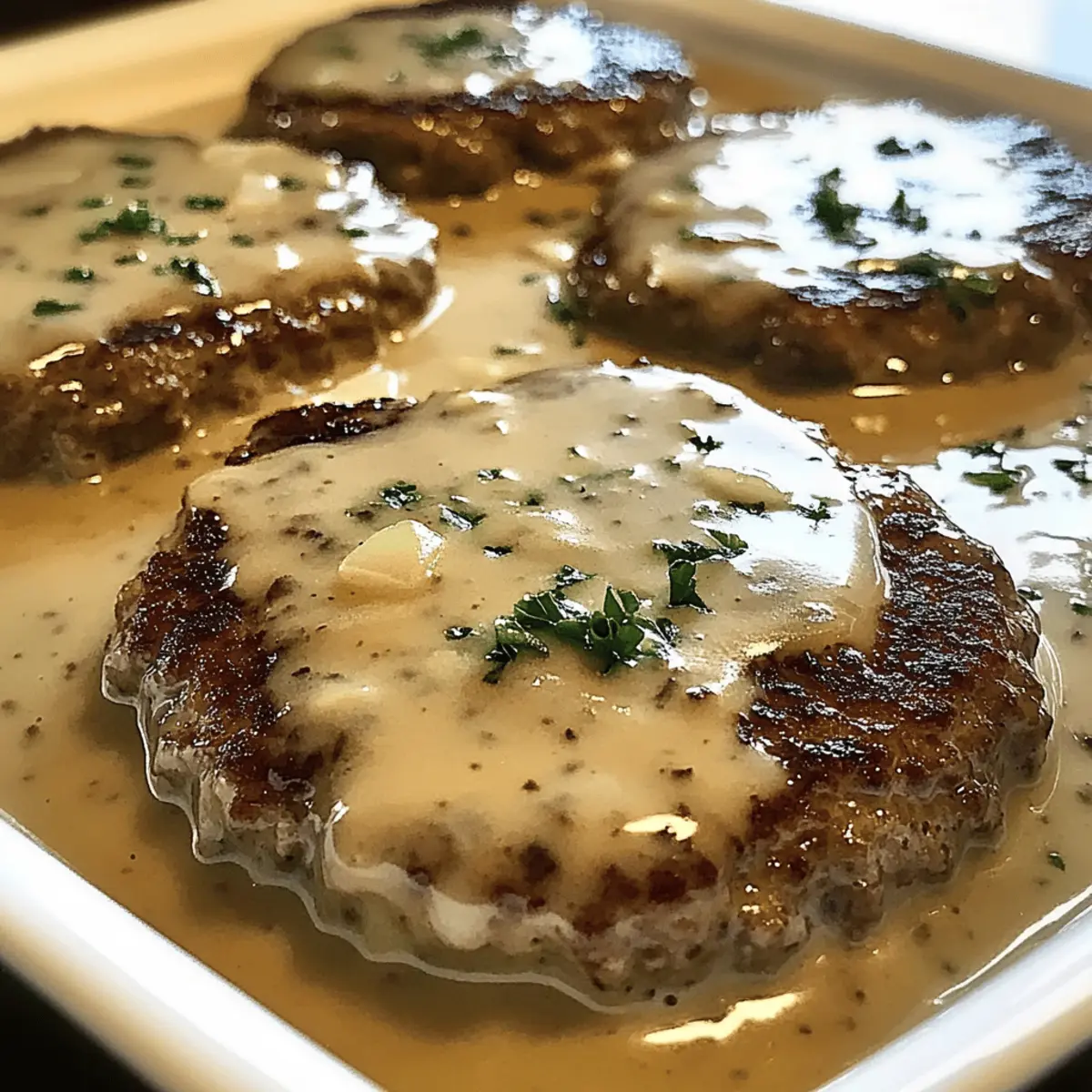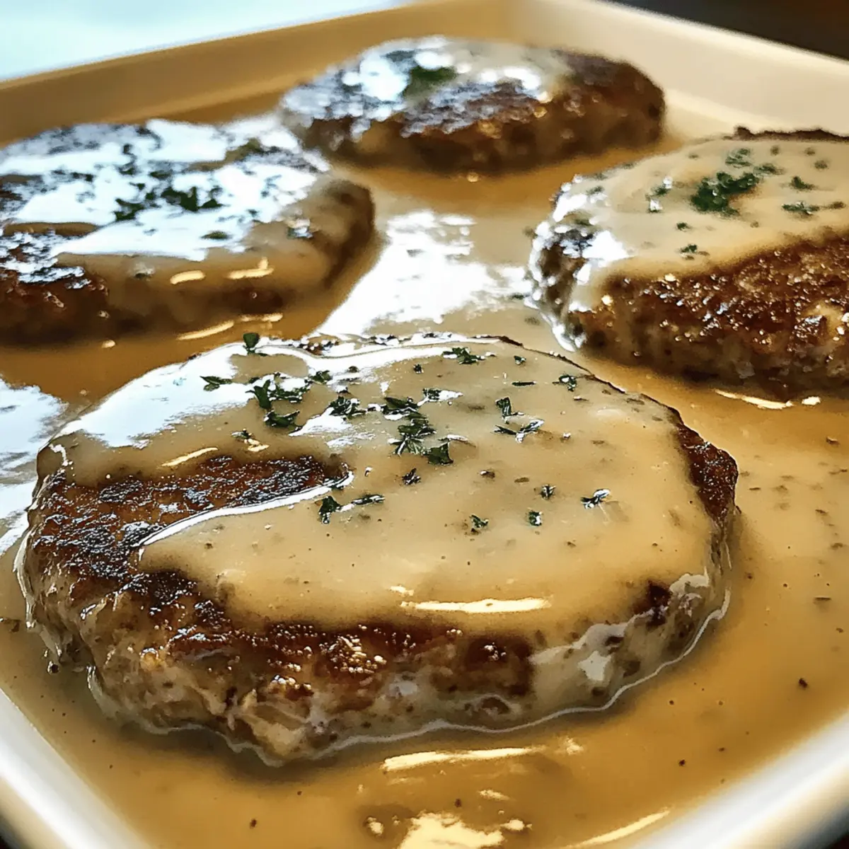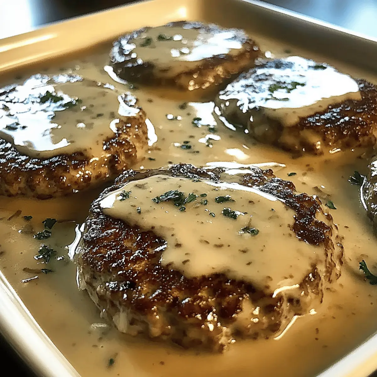 Jump to Recipe Print RecipeAs I pulled the bubbling casserole from the oven, the rich aroma of the Amish Hamburger Steak Bake filled my kitchen, wrapping me in a nostalgic embrace. This dish transforms humble ground beef into juicy, flavorful patties, smothered in a creamy gravy that beckons comfort like a warm hug on a cold day. With a delightful balance of savory goodness, this Pennsylvania Dutch classic is not only a crowd-pleaser but also a breeze to prepare—perfect for weeknight dinners or family gatherings. Each bite takes you on a flavorful journey, evoking cherished memories of gatherings around the dinner table. Ready to savor a taste of tradition? Let’s dive into this delicious recipe together! Why is This Dish So Irresistible? Comforting Nostalgia: This Amish Hamburger Steak Bake brings a taste of home that warms your heart, making it perfect for family gatherings or cozy nights in. Quick & Easy: With just a few simple steps and ingredients, you can create this delightful meal in less than an hour, saving you time on busy evenings. Versatile Options: Feel free to swap in ground turkey or chicken, or add your favorite veggies to the gravy for a personalized twist! Crowd-Pleasing Flavor: Savory beef patties and creamy gravy create a satisfying dish that everyone will lov—pair it with creamy mashed potatoes or buttered egg noodles for a complete feast. Accessible Ingredients: Using pantry staples means you can whip this up anytime without the hassle of special shopping trips. Just like my favorite Baked Turkey Meatballs, this recipe is all about tasty simplicity! Amish Hamburger Steak Bake Ingredients • Discover the essential components for hearty, comforting goodness! For the Patties Ground Beef – The star of the show; choose an 80/20 blend for juiciness and flavor. Breadcrumbs – These help bind the patties; seasoned breadcrumbs add an extra flavor boost. Egg – This helps hold the patties together; make sure it’s beaten well for even mixing. Onion (diced) – Sweetness and aromatics are key; finely diced onions blend seamlessly into the mix. Salt – Enhances all the flavors; don’t skip this crucial ingredient for seasoning. Black Pepper – Adds a delightful kick; freshly ground pepper elevates the taste. For the Gravy Butter – Provides richness to the gravy and for sautéing; either salted or unsalted works. All-Purpose Flour – Thickens the gravy; ensure it’s cooked briefly to avoid a raw taste. Beef Broth – The base for your gravy; low-sodium helps control your dish’s saltiness. Heavy Cream – Adds luscious creaminess to the gravy; for a lighter version, consider milk, though it won’t be as rich. Onion (sliced) – Used for added flavor and aroma in the gravy; a must for depth. Garlic Powder – A flavor enhancer; substituting with fresh garlic can provide a more potent taste. With these ingredients at your fingertips, you’re well on your way to creating a delectable Amish Hamburger Steak Bake that will fill both hearts and bellies with warmth and nostalgia! Step‑by‑Step Instructions for Amish Hamburger Steak Bake Step 1: Prepare Hamburger Steaks In a large mixing bowl, gently combine ground beef with breadcrumbs, beaten egg, diced onion, salt, and black pepper. Use your hands to mix until just combined, being careful not to overwork the meat for tenderness. Once mixed, form the mixture into 6 to 8 oval patties, then set them aside to rest for about 10 minutes for the flavors to meld. Step 2: Brown Patties Heat a large oven-safe skillet over medium-high heat and add a splash of oil if desired. Carefully place the patties into the skillet and brown them for 3 to 4 minutes on each side, or until they have a golden-brown crust. Remove the browned hamburger steaks from the skillet and set them aside, leaving the flavorful drippings in the pan for the next step. Step 3: Create Gravy Base In the same skillet with the drippings, melt 1/4 cup of butter over medium heat. Add the sliced onions and sauté for about 5 minutes, or until they turn soft and translucent. Next, stir in 1/4 cup of all-purpose flour and cook for 2 minutes, ensuring it doesn’t brown, which will help thicken your gravy without a raw flavor. Step 4: Whisk in Liquids Gradually whisk in 2 cups of beef broth and 1 cup of heavy cream, stirring continuously until the mixture is smooth and begins to thicken. Keep the heat medium-high, and allow the gravy to simmer gently for about 3 to 5 minutes. It should reach a creamy consistency—lift your whisk to see ribbons forming in the gravy to know it’s just right. Step 5: Assemble and Bake Preheat your oven to 350°F (175°C). Return the browned hamburger steaks to the gravy, nestling them into the sauce. Cover the skillet tightly with aluminum foil to trap the moisture, ensuring the patties cook evenly. Bake in the preheated oven for 45 minutes, then uncover and bake for an additional 15 minutes to allow the gravy to thicken further. Step 6: Rest Before Serving After baking, carefully remove the Amish Hamburger Steak Bake from the oven and let it rest for about 10 minutes before serving. This will allow the gravy to set and flavors to develop further. Serve your beautiful casserole hot, spooning the creamy gravy generously over each patty for a comforting meal. Amish Hamburger Steak Bake Variations Feel free to personalize this comforting dish with these exciting twists, letting your creativity shine through in the kitchen! Lean Protein: Swap out ground beef for ground turkey or chicken for a lighter option. You’ll still enjoy the rich flavors! Vegetable-packed: Add bell peppers, mushrooms, or carrots to the gravy for an extra serving of veggies. This enhances nutrition and texture. Herb-infused: Incorporate fresh thyme, rosemary, or smoked paprika for a burst of flavor. These additions elevate the taste profile beautifully. Cheesy Delight: Stir in shredded cheese like cheddar or mozzarella into the gravy just before serving for a
