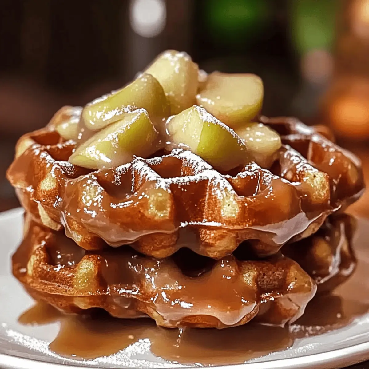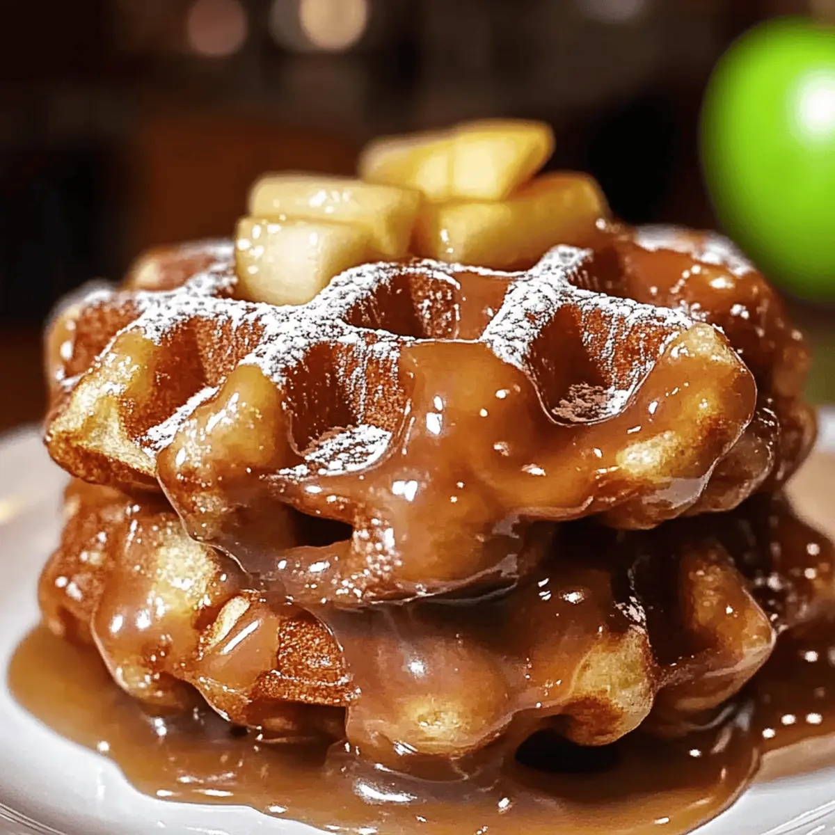 Jump to Recipe Print RecipeThe sweet scent of cinnamon and warm apples filled the air as I flipped the first batch of my Apple Fritter Waffle Donuts on the waffle iron. This breakfast mashup is a game changer—no frying required, and they come together in a breeze! With a golden, crisp exterior and a soft, fluffy interior, these beauties satisfy both brunch cravings and dessert dreams. Each bite reveals tender chunks of spiced apple, making them a delightful twist on traditional waffles. They’re vegetarian, super customizable, and perfect for any occasion, whether you’re feeding a crowd or enjoying a cozy morning at home. Are you ready to create a homemade treat that might just steal the spotlight on your table? Let’s dive into this delicious adventure together! Why are these waffle donuts a must-try? Crispy Delight: The golden crust and tender interior create a truly satisfying texture experience that will keep you coming back for more. Quick and Easy: No frying is needed, making these perfect for a hassle-free breakfast or snack. Customizable Flavors: Add your favorite mix-ins, like nuts or spices, to make them uniquely yours. Perfect for Any Occasion: Ideal for brunch with friends or a cozy treat on a quiet weekend morning. Vegetarian Friendly: A delicious option that everyone can enjoy, so no one misses out! Try pairing them with a warm cup of coffee or cider for the ultimate comfort experience, just like with these Apple Cinnamon Kodiak for a delightful brunch! Apple Fritter Waffle Donuts Ingredients For the Batter • All-Purpose Flour – Provides structure to the donuts; substitute with a gluten-free flour blend if desired. • Baking Powder – Gives the waffles their rise and fluffiness; no substitution recommended. • Cinnamon – Adds warmth and flavor that pairs perfectly with apples; can be replaced with apple pie spice for variation. • Nutmeg – Enhances the cozy flavor profile; omit for a less intense spice flavor. • Sugar – Sweetens the batter to balance the tartness of the apples; coconut sugar works well for a healthier option. • Eggs – Bind the ingredients together and add richness; can be replaced with flax eggs for a vegan version. • Milk – Adds moisture and helps achieve a smooth batter; almond milk or other dairy alternatives are great substitutes. • Melted Butter – Contributes to the rich flavor of the waffles; oil can be substituted for a lighter option. • Vanilla Extract – Infuses warmth and flavor; imitation vanilla may be used if preferred. • Diced Apples – Provide sweet-tart bites; Granny Smith or Honeycrisp work best. Use fresh or canned apples, ensuring the canned variety is well-drained. For the Glaze • Powdered Sugar – Creates the sweet topping that gives these Apple Fritter Waffle Donuts their signature finish; can be reduced for less sweetness. • Milk (for glaze thinning) – Used to adjust the consistency of the glaze for drizzling; alternative milk can work just as well. Step‑by‑Step Instructions for Apple Fritter Waffle Donuts Step 1: Prep Dry Ingredients In a large mixing bowl, whisk together 2 cups of all-purpose flour, 1 tablespoon of baking powder, 1 teaspoon of cinnamon, ½ teaspoon of nutmeg, and ½ cup of sugar until evenly combined. Make sure there are no lumps, and your mixture is light and fluffy, which will help create a delightful texture for your Apple Fritter Waffle Donuts. Step 2: Mix Wet Ingredients In a separate bowl, whisk together 2 large eggs, 1 cup of milk, ½ cup of melted butter, and 1 teaspoon of vanilla extract until smooth. This combination should be creamy and well-mixed, providing the moisture needed for a tender waffle donut. Pour this mixture into your dry ingredients for the next step. Step 3: Combine Mixtures Gradually pour the wet mixture into the dry ingredients, gently folding them together with a spatula. Be careful not to overmix; only stir until you see no dry flour visible, creating a slightly thick batter. This will ensure your Apple Fritter Waffle Donuts have a fluffy yet substantial texture that holds together beautifully. Step 4: Fold in Apples Gently fold in 1 to 1 ½ cups of diced apples, making sure they’re evenly distributed throughout the batter. Choose sweet-tart varieties like Granny Smith or Honeycrisp for the best flavor. The batter should be thick, with visible chunks of apple peeking through, ready for cooking in the waffle iron. Step 5: Heat Waffle Iron Preheat your waffle iron according to the manufacturer’s instructions, ideally to medium-high heat. Lightly grease the plates with a bit of cooking spray or oil to prevent sticking. A preheated waffle iron should feel hot when you carefully hover your hand near the surface, ensuring your Apple Fritter Waffle Donuts will cook evenly and have that perfect golden color. Step 6: Cook Waffle Donuts Spoon approximately ½ cup of batter into the preheated waffle iron, spreading it out lightly if needed. Close the lid and cook for about 3-4 minutes, or until the waffles are golden brown and have a crisp exterior. Open the waffle iron carefully; the Apple Fritter Waffle Donuts should release easily, ready to be transferred to a cooling rack. Step 7: Prepare Glaze While the waffle donuts cool slightly, whisk together 1 cup of powdered sugar and 2-3 tablespoons of milk in a small bowl until you achieve a thick but pourable consistency. If desired, add a few drops of vanilla extract for extra flavor. The glaze should be smooth and glossy, perfect for drizzling over your warm waffle donuts. Step 8: Glaze Waffles Once the Apple Fritter Waffle Donuts are slightly cooled, use a spoon or drizzle bottle to generously glaze them. Allow the glaze to set for a few minutes, creating a sweet topping that beautifully complements the warm, spiced flavors of the donuts. Enjoy the enticing aroma as these delightful treats await serving! Make Ahead Options These Apple Fritter Waffle Donuts are perfect for busy home cooks look