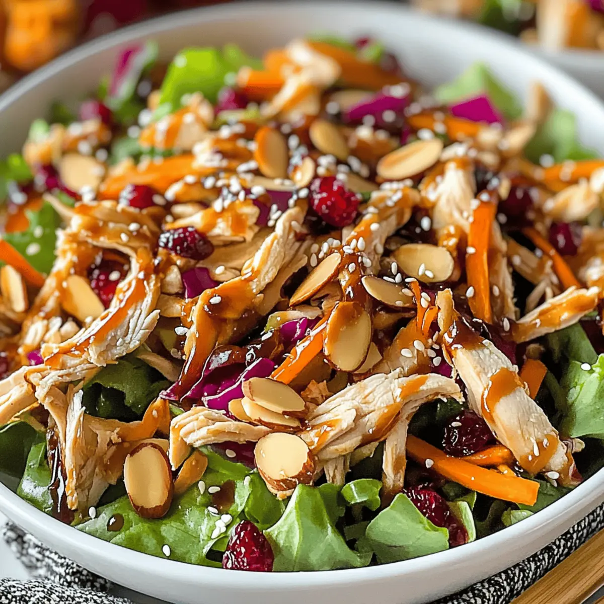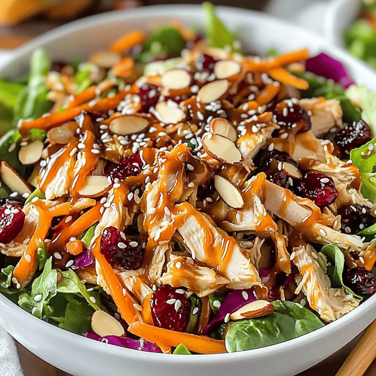 This Asian Chicken Cranberry Salad is a vibrant and flavorful dish that combines colorful ingredients with a tangy dressing for a satisfying meal.