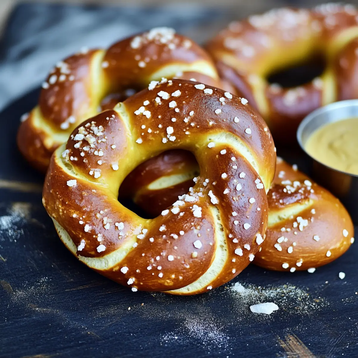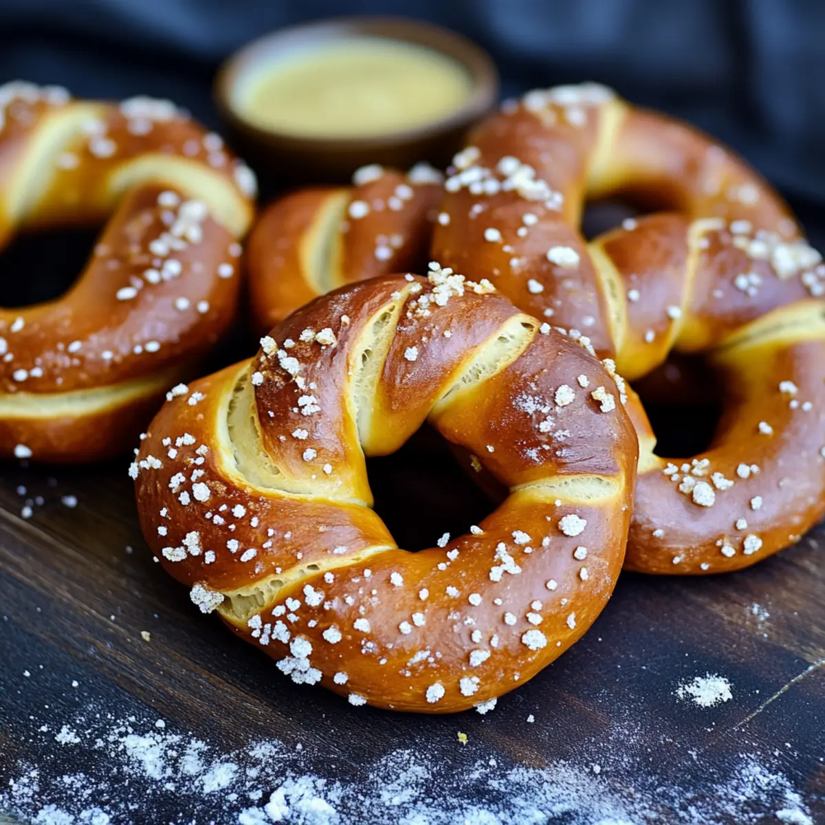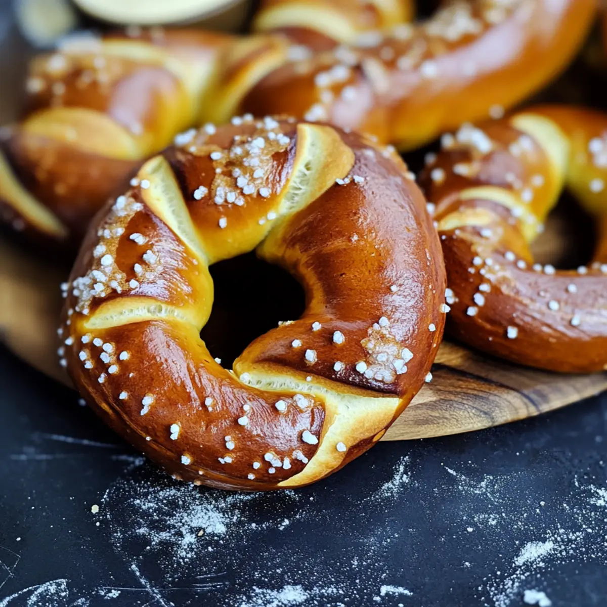 Jump to Recipe Print RecipeWith each twist of dough, I am transported to the bustling beer gardens of Germany, where the air is rich with the aroma of freshly made pretzels. These Authentic German Pretzels offer a crispy, glossy crust that gives way to a warm, chewy interior—a delightful contrast that makes them utterly irresistible. Not only are they simple to prepare in under two hours, but they also make the perfect companion for your Oktoberfest celebrations, complete with a creamy cheddar beer sauce. Whether you’re hosting a gathering or just indulging in a cozy night at home, these pretzels are a crowd-pleaser that can turn any moment into a joyful experience. Are you ready to impress your friends and family with this cherished recipe? Let’s dive into the world of artisanal pretzel-making together! Why are these pretzels so special? Authentic Flavor: These pretzels are crafted using traditional methods with food-grade lye, delivering a unique taste that transports you straight to Germany. Quick and Easy: In just under two hours, you can create these mouthwatering treats, making them perfect for any occasion. Creamy Pairing: The rich cheddar beer sauce adds an extra layer of flavor, perfect for dipping and elevating your snacking experience. Versatile Enjoyment: Perfect as an appetizer for parties or a comforting snack, these pretzels will wow your friends and family. Cultural Delight: Celebrate Oktoberfest or simply enjoy a taste of European culture from your own kitchen with these iconic pretzels. Don’t forget to check out my recipe for Indian Butter Chicken for another delicious homemade dish! Authentic German Pretzel Ingredients For the Pretzels • Milk – Adds moisture and richness; use whole milk for an extra creamy texture. • Active Dry Yeast – A leavening agent that causes the dough to rise; always check for freshness for the best results. • Beer – Contributes flavor and aids in achieving the right dough texture; a lager like Sam Adams Oktoberfest works wonderfully. • Butter – Provides rich flavor and moisture; opt for unsalted butter that’s melted and cooled. • Brown Sugar – Enhances sweetness, balancing the salty flavor of the pretzel; feel free to substitute with granulated sugar if needed. • Salt – Essential for flavor; using pretzel salt or coarse sea salt adds delightful texture. • All-Purpose Flour – Formulates the main structure; you can use bread flour for an even chewier texture. • Food-Grade Lye – Creates that signature pretzel crust; handle it carefully, and know that baking soda can be used as an alternative. For Cheddar Beer Sauce • Salted Butter – Serves as the base for the sauce; adds a luxurious richness. • Garlic – Provides aromatic depth; you can omit this if you prefer a milder flavor. • Milk, Beer, Heavy Cream – These create a creamy texture; use a lighter beer for a less intense taste. • Corn Starch – Thickens the sauce; ensure it’s well-whisked before adding to prevent lumps. • Sharp Cheddar Cheese – Imparts sharpness and creaminess to the sauce; feel free to substitute with other cheeses as you desire. This collection of ingredients will help you create Authentic German Pretzels that not only satisfy your cravings but also bring a taste of tradition to your kitchen! Step‑by‑Step Instructions for Authentic German Pretzels Step 1: Activate the Yeast Begin by warming 1 cup of whole milk to about 110ºF—this temperature helps awaken the yeast. In a bowl, combine the warm milk with 2 teaspoons of active dry yeast and 1 tablespoon of brown sugar. Stir gently and let it sit for about 5-10 minutes until the mixture becomes frothy, signaling that the yeast is alive and ready to make your authentic German pretzels rise beautifully. Step 2: Combine the Wet Ingredients Incorporate 4 tablespoons of melted unsalted butter and 1 cup of lager into the activated yeast mixture. Stir well until everything is combined smoothly. This mixture not only adds richness but also infuses your dough with delicious flavor. Once combined, you’re ready to move on to the next step of creating the perfect dough. Step 3: Form the Dough Gradually add 4 cups of all-purpose flour, one cup at a time, mixing with a wooden spoon or spatula until a shaggy dough forms. Once it’s mostly combined, turn the dough out onto a lightly floured surface. Knead for about 8-10 minutes until it becomes smooth and elastic. This step is vital for achieving the chewy texture of your authentic German pretzels. Step 4: Let the Dough Rise Shape the kneaded dough into a ball and place it in a greased bowl, covering it with a kitchen towel. Allow it to rise in a warm area for about 30 minutes, or until it has doubled in size. This rising time is essential for developing the delightful flavor and texture in your pretzels. Step 5: Shape the Pretzels Once the dough has risen sufficiently, punch it down and turn it out onto a clean surface. Divide it into 12 equal pieces. Roll each piece into a long log, approximately 24 inches in length. Let the logs rest for 7 minutes; this resting period allows the gluten to relax, making twisting easier for your authentic German pretzels. Step 6: Twist the Pretzels Take each log and form a U-shape. Cross the ends over each other twice, then bring them back down towards the bottom of the U to create the classic pretzel shape. Pinch the ends to seal them tightly. Repeat with all pieces and admire your beautiful pretzel shapes before moving on to the next step. Step 7: Prepare the Lye Solution Preheat your oven to 375ºF, and line your baking sheets with parchment paper. Carefully dissolve ¼ cup of food-grade lye in 4 cups of water in a well-ventilated area, wearing gloves to ensure safety. If you prefer, substitute with a baking soda solution (⅔ cup baking soda in water). Dip each shaped pretzel briefly in the lye solution, allowing the excess liquid to drip off, and then place them on the prepared baking sh