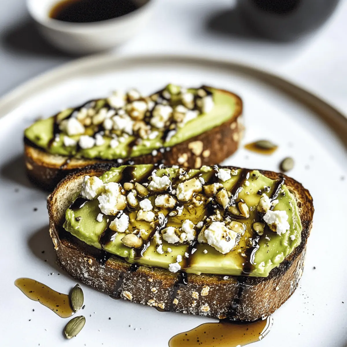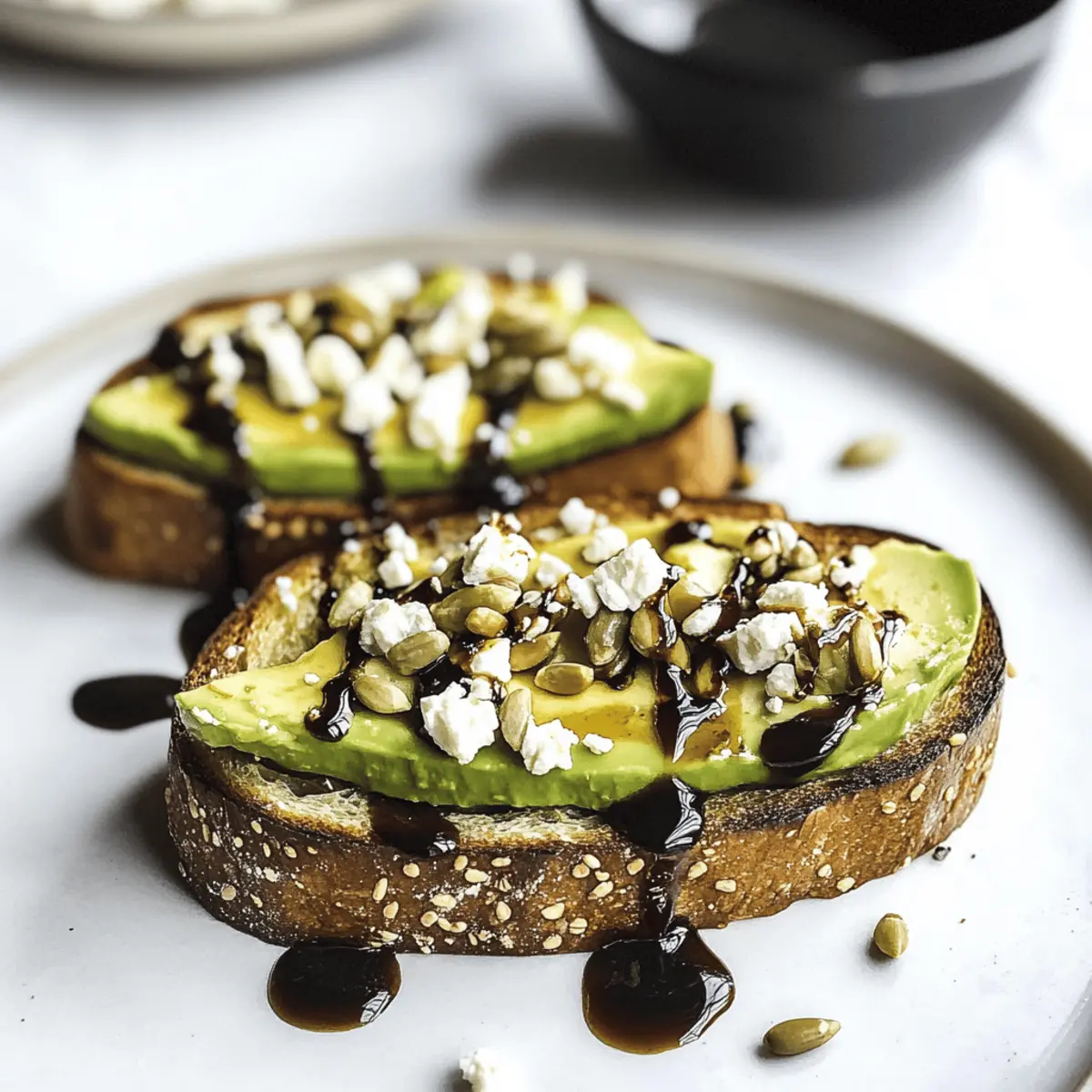 Jump to Recipe Print RecipeWith a burst of colors and textures, my kitchen transforms into a vibrant haven as I prepare my beloved Avocado Toast with Feta and Balsamic Bliss. This quick breakfast solution is a cherished favorite, taking just 10 minutes to whip up while delivering a hearty dose of nutrition. The creamy avocado perfectly complements the tangy feta and the sweet-and-sour balsamic glaze, creating an irresistible combination that’s far more satisfying than any fast food. Plus, its customizable nature means you can mix and match toppings to suit your mood, making it as unique as you are! Feeling adventurous? Let’s dive into the tasty details of this wholesome dish, perfect for both busy mornings and leisurely brunches! Why is Avocado Toast a Crowd Favorite? Quick Preparation: This recipe is ready in just 10 minutes, making it a fantastic option for those busy mornings when you need a nutritious meal on the fly. Endless Customization: With an array of optional toppings like pumpkin seeds or cherry tomatoes, you can easily tailor it to fit your taste—whether you’re in the mood for something savory or sweet. Rich, Flavorful Layers: The creamy avocado pairs beautifully with the tangy feta and balanced balsamic glaze, creating a symphony of flavors in every bite. Health-Focused: Packed with healthy fats and protein, this avocado toast makes for a satisfying breakfast that not only fills you up but nourishes your body. Gluten-Free Options: You can easily swap in gluten-free bread, ensuring everyone can enjoy this delicious treat, regardless of dietary preferences. Plus, if you love vibrant dishes, try pairing it with a fresh Greek yogurt parfait or a side of herbed scrambled eggs for a complete meal! Avocado Toast with Feta Ingredients For the Toast • Bread – Choose your favorite bread; gluten-free options work well for accommodating dietary needs. For the Topping • Avocado – Use ripe avocados for a creamy texture and a healthy dose of good fats. • Lime Juice – Fresh lime juice adds a zesty zing; avoid bottled juice for the best flavor. • Sambal Oelek – This spicy chili paste introduces heat; sriracha is a great substitute if you prefer less spice. • Salt – Essential for enhancing the overall flavors of the dish. • Pepper – Freshly cracked pepper adds depth. For Crunch and Texture • Pumpkin Seeds – These provide a delightful crunch and numerous nutritional benefits; chia seeds can be a healthy alternative. • Sunflower Seeds – Adds extra crunch and a nutty flavor for a delightful surprise in each bite. For the Creamy Touch • Feta Cheese – This rich, tangy cheese perfectly complements the other flavors; goat cheese is a lovely alternative if desired. For the Finishing Touch • Balsamic Glaze – A drizzle of this sweet and tangy glaze is essential for that irresistible balance, tying all the flavors together. Enjoy crafting your Avocado Toast with Feta and Balsamic Bliss, tailored perfectly to your taste! Step‑by‑Step Instructions for Avocado Toast with Feta and Balsamic Bliss Step 1: Toast the Bread Begin by preheating your toaster or a skillet over medium heat. Toast 2 slices of your favorite bread, whether gluten-free or whole grain, until they reach a beautiful golden brown, approximately 3–4 minutes. Keep an eye on them to reach that perfect crispiness without burning, which will serve as the hearty base for your luscious avocado toast. Step 2: Prepare the Avocado While the bread toasts, take a ripe avocado and cut it in half. Carefully remove the pit and scoop the creamy flesh into a mixing bowl. Use a fork to mash the avocado until it’s smooth but retains a slight chunkiness—this texture adds character to your Avocado Toast with Feta and Balsamic Bliss. The vibrant green color should be inviting! Step 3: Mix in the Flavors To elevate the avocado mash, add a splash of fresh lime juice, approximately 1 tablespoon, which will brighten the flavors. If you enjoy a bit of heat, mix in some sambal oelek to taste. Stir until well combined, and season with a pinch of salt and pepper. This flavorful mixture is the heart of your delicious avocado toast. Step 4: Assemble the Toast Once the bread is toasted to perfection, take each slice and generously spread the creamy avocado mixture over the top. Use the back of a spoon for an even layer that reaches the edges. This spread should glisten with freshness, forming the delightful canvas for your toppings on the Avocado Toast with Feta and Balsamic Bliss. Step 5: Add Crunchy Toppings Sprinkle a handful of pumpkin seeds and sunflower seeds on top of the avocado layer for added crunch and nutrition. The seeds will add a delightful texture contrast against the creamy avocado, making every bite of the toast satisfying and enjoyable. Step 6: Crumble Feta Over the Toast Now it’s time to add the star of the show: the feta cheese. Crumble a generous amount of feta over the avocado and seed-covered toast, allowing its rich and tangy flavor to meld beautifully with the creamy base. This step transforms your simple toast into a flavor-packed delight that will have everyone coming back for more. Step 7: Drizzle with Balsamic Glaze Finally, finish your Avocado Toast with Feta and Balsamic Bliss by drizzling a beautiful balsamic glaze over the top. Use a spoon or squeeze bottle to create an enticing pattern. The sweetness of the glaze will balance the savory notes, bringing a harmony of flavors to this quick and satisfying breakfast creation. Make Ahead Options These Avocado Toast with Feta and Balsamic Bliss are perfect for meal prep enthusiasts! You can prepare the avocado mash up to 24 hours in advance; just be sure to store it in an airtight container with a sprinkle of lime juice on top to prevent browning. The toasted bread keeps crisp for about 3 days if stored properly in a sealed bag at room temperature. When you’re ready to serve, simply toast the bread fresh, spread the avocado mixture o