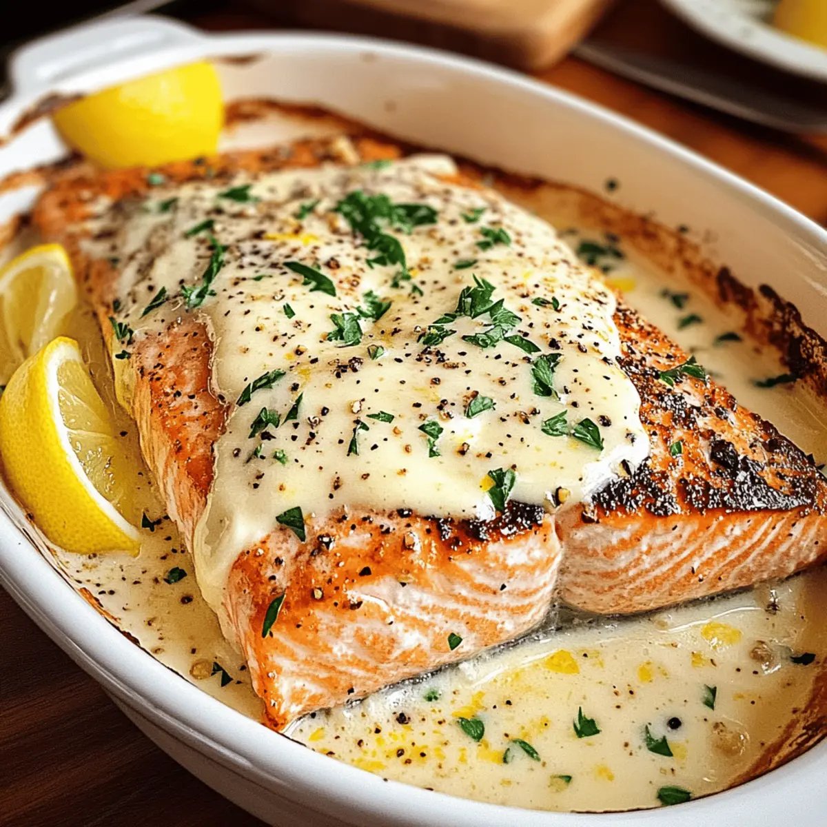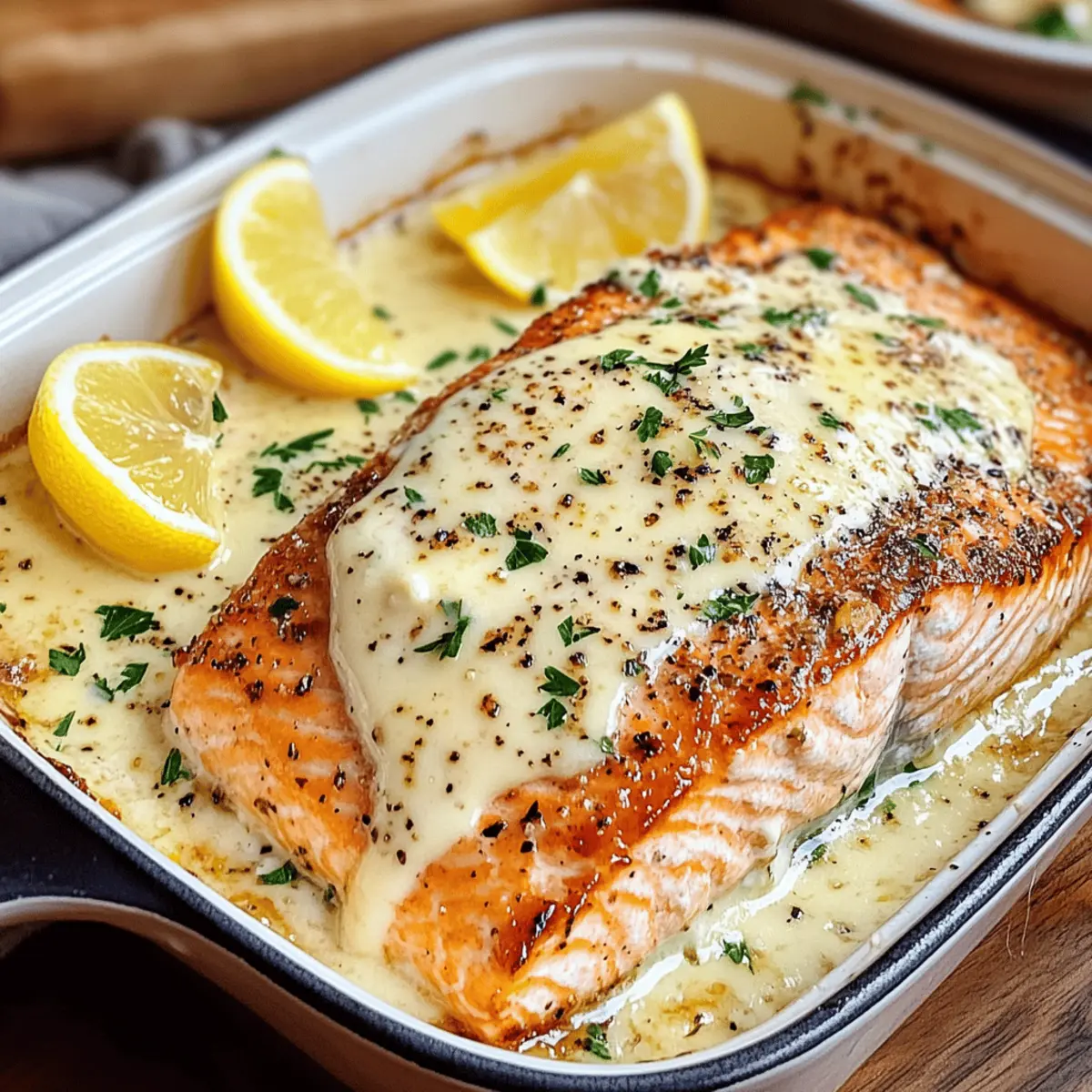 Jump to Recipe Print Recipe“Just when I thought my weeknight dinners couldn’t get any better, I discovered the magic of Baked Boursin Salmon. This creamy, gourmet dish elegantly transforms simple salmon fillets into an indulgence that feels special without the fuss. With only 10 minutes of prep time and a quick bake, it delivers a heart-healthy meal that’s both nutritious and full of flavor. The rich Boursin cheese, blended with garlic and herbs, melts beautifully over the salmon, creating a sumptuous topping that even the busiest home chefs can master. Whether it’s a cozy night in or a gathering with friends, this quick marvel is sure to impress. Curious how easy it can be to elevate your dining experience at home?” Why is Baked Boursin Salmon a Must-Try? Indulgent and Easy: This recipe is a game changer for busy nights, allowing you to whip up a gourmet meal in just 20 minutes. Flavorful Fusion: The creamy Boursin cheese, garlic, and herbs create a deliciously rich topping that enhances the natural taste of the salmon. Healthy Delight: Packed with omega-3 fatty acids, it’s not just quick, but heart-healthy too! Versatile Pairing: Serve it alongside roasted vegetables or a light salad to elevate your dining experience further. For more delicious salmon options, check out my recipe for Honey Garlic Salmon or a refreshing Honey Pineapple Salmon. Baked Boursin Salmon Ingredients • Prepare to elevate your dinner with these delightful components! For the Salmon Salmon fillets – Choose skin-on for an added crispy texture or skinless for a lighter option. Olive oil or melted butter (2 tablespoons) – Keeps the salmon moist and adds richness during baking. Salt (1/2 teaspoon) – Essential for enhancing the natural flavors of the salmon. Black pepper (1/4 teaspoon) – Adds a touch of heat to complement the creamy topping. For the Topping Boursin cheese (garlic & fine herbs flavor) – This creamy, herb-infused cheese is the star ingredient that makes Baked Boursin Salmon irresistible! Garlic (2 cloves, minced) – Introduces an aromatic savory depth that pairs beautifully with the cheese. Lemon juice (1 tablespoon) & zest (1 teaspoon) – Brightens the dish and adds a refreshing, zesty punch. Fresh parsley (2 tablespoons, optional) – A fresh green garnish that enhances both presentation and flavor. Serving Suggestion Lemon wedges – Serve alongside to add a bright, citrusy finish to each bite. Step‑by‑Step Instructions for Baked Boursin Salmon Step 1: Preheat the Oven Begin by preheating your oven to 400°F (200°C). While the oven warms up, grab a baking dish and lightly grease it with a bit of olive oil or butter. This will prevent the salmon from sticking and allow it to bake evenly, ensuring a beautiful finish as you prepare your Baked Boursin Salmon. Step 2: Mix the Cheese Topping In a medium-sized bowl, combine the creamy Boursin cheese, minced garlic, lemon zest, and lemon juice. Use a fork or spatula to mix everything until smooth and well-blended. This zesty cheese mixture will create a delicious topping for your salmon, adding that gourmet touch to your Baked Boursin Salmon. Step 3: Prepare the Salmon Pat the salmon fillets dry with a paper towel to ensure a good sear. Drizzle the remaining olive oil or melted butter over the fillets, then sprinkle with salt and black pepper to taste. Placing the salmon skin side down in the greased baking dish will help lock in moisture, creating a tender, juicy result. Step 4: Top with Cheese Mixture Evenly spoon generous amounts of the Boursin cheese mixture over each salmon fillet, ensuring they are well-covered. The creamy texture will melt beautifully as the dish bakes, creating a rich and flavorful topping. This step is where your Baked Boursin Salmon starts to come to life, showcasing its gourmet appeal. Step 5: Bake the Salmon Carefully place the baking dish into the preheated oven and bake for 15–20 minutes. You’ll know your salmon is ready when it flakes easily with a fork and reaches an internal temperature of 145°F (63°C). Keep an eye on it to prevent overcooking, ensuring a moist and delectable finish for your Baked Boursin Salmon. Step 6: Garnish and Serve Once baked, let the salmon rest for about 2 minutes to lock in juices. Garnish with freshly chopped parsley for a pop of color and serve with lemon wedges on the side. This adds a zesty touch while enhancing the flavors of the Baked Boursin Salmon—making it a delightful centerpiece for your meal. Expert Tips for Baked Boursin Salmon • Cooking Time: Keep an eye on the salmon as it bakes—overcooking can dry it out. Aim for 15-20 minutes for perfectly flaky results. • Surface Area: Space out the salmon fillets in the baking dish. Crowding can prevent even cooking and leave some portions underdone. • Quality Ingredients: The flavor of your Baked Boursin Salmon hinges on quality. Choose fresh salmon and high-quality Boursin cheese for the best taste. • Check Doneness: Use a fork to flake the salmon gently. If it separates easily and is opaque in color, it’s ready to serve. • Herb Variations: Feel free to experiment with different herbs like dill or chives in the cheese mixture. They can elevate the flavor profile of your Baked Boursin Salmon! Storage Tips for Baked Boursin Salmon Fridge: Store leftover Baked Boursin Salmon in an airtight container for up to 2 days. This helps maintain its creamy texture and flavor. Freezer: If you need to freeze it, wrap individual portions tightly in plastic wrap and then place them in a freezer-safe bag. It can be frozen for up to 3 months, but may lose some creaminess upon reheating. Reheating: When ready to enjoy, thaw in the fridge overnight, then reheat in a 350°F (175°C) oven for 10–15 minutes, or until warmed through. This will help restore some of its original flavor and texture. Serving Tip: Serve with fresh lemon wedges when reheating to enhance the flavors of the Baked Boursin Salmon and keep i