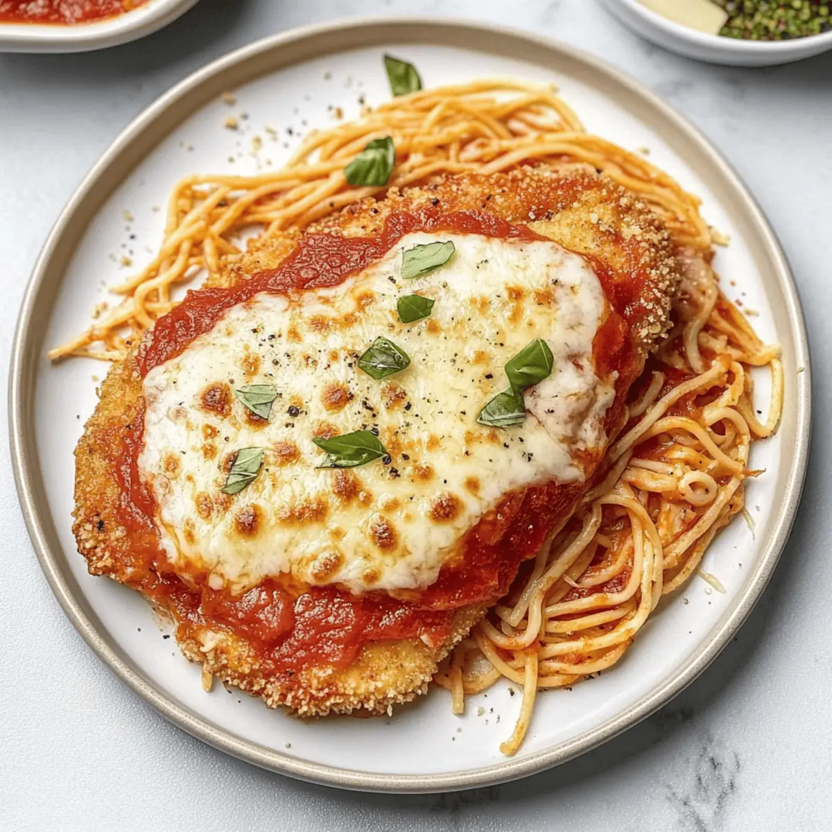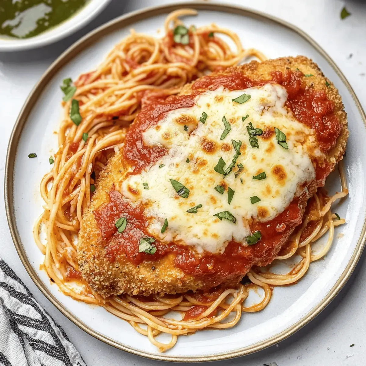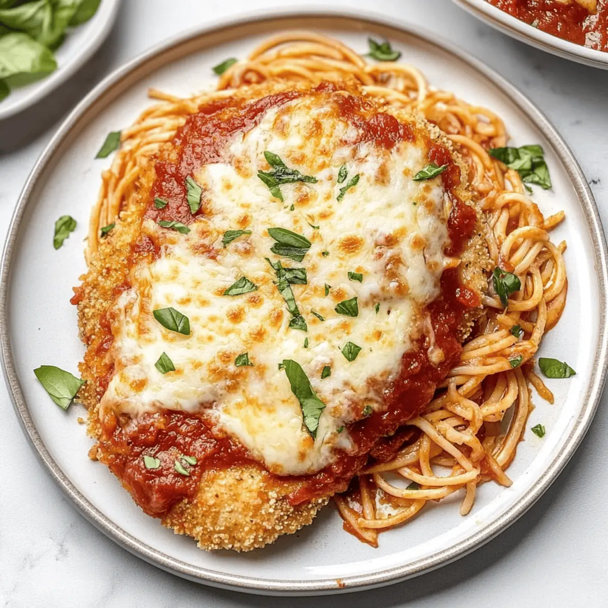 Jump to Recipe Print RecipeAs I stood in my kitchen, the aroma of marinara sauce mingling with the crisp scent of baking chicken had me reminiscing about cozy family dinners. That’s when I decided to reinvent a classic: Healthy Baked Chicken Parmesan. This scrumptious dish wraps juicy, baked chicken in a crispy crust, topped with melty cheese, delivering all the comfort of the traditional favorite without the guilt. One of the best perks is that it’s a quick weeknight meal that even the pickiest eaters will devour, making it an effortless crowd-pleaser. Plus, with options to make it gluten-free or low-carb, this recipe caters to various dietary needs without sacrificing flavor. Are you ready to bring some magic to your dinner table? Let’s get cooking! What Makes This Chicken Parmesan Special? Healthier Choice: Enjoy the classic flavors without the guilt! This dish offers all the crispy goodness of traditional Chicken Parmesan while being baked, making it a lighter option for weeknight dinners. Flavorful Twist: The perfect blend of melty cheese and vibrant marinara elevates this dish to a family favorite. Diet-Friendly Variations: Easily adjust to your dietary preferences—go gluten-free or low-carb effortlessly for everyone to enjoy. Quick and Simple: With just 30 minutes of baking time and straightforward steps, you’ll have a delicious meal ready before you know it. Crowd-Pleaser: Both children and adults will love this dish, ensuring everyone leaves the table happy! You might also want to try it with a side of Pesto Chicken Broccoli for an ideal pairing! Baked Chicken Parmesan Ingredients • All you need for a wholesome, delicious meal! For the Chicken • Boneless, Skinless Chicken Breasts – A lean protein option that keeps this dish healthy; you can use chicken tenders for a quicker preparation. • Whole Wheat Flour – Gives a light coating to help the breading stick; swap for gluten-free flour if desired. • Large Eggs – Acts as the binder for the coating, essential for achieving that perfect texture. For the Breading • Whole Wheat Bread Crumbs – Contributes to a crispy exterior; panko bread crumbs can be used for an extra crunch. • Grated Parmesan Cheese – Enhances the flavor profile of your Baked Chicken Parmesan; fresh grating is ideal for the best taste. • Black Pepper – A simple seasoning that boosts overall flavor. • Dried Basil, Dried Parsley – Adds lovely herbal notes; fresh herbs will make it even more aromatic if you have them on hand. For the Topping • Shredded Mozzarella – Delivers that gooey, melty goodness; fresh mozzarella melts beautifully, making every bite delicious. • Marinara Sauce – A rich, flavorful sauce that brings the dish together; homemade sauce is a great option for controlling ingredients. Don’t forget: This Healthy Baked Chicken Parmesan is not only delightful but also caters to those looking for healthier meal options! Step‑by‑Step Instructions for Healthy Baked Chicken Parmesan Step 1: Preheat and Prepare Begin by preheating your oven to 425°F (220°C). While the oven heats, take a baking sheet and line it with parchment paper to prevent sticking. This step is crucial for achieving that perfectly crispy exterior on your Healthy Baked Chicken Parmesan. Step 2: Prepare the Chicken To ensure even cooking, butterfly the boneless, skinless chicken breasts. Use a meat mallet or rolling pin to pound them down to about ¼ inch thick. This will help the chicken cook uniformly and maintain juiciness while bringing out the flavors as it bakes in the oven. Step 3: Set Up the Breading Station Create an assembly line with three shallow bowls: one filled with whole wheat flour, another with whisked eggs, and the last containing a mixture of whole wheat bread crumbs, grated Parmesan cheese, black pepper, dried basil, and parsley. This setup will streamline the breading process for your Healthy Baked Chicken Parmesan. Step 4: Dredge the Chicken Take each chicken cutlet and first coat it lightly in the flour, shaking off any excess. Next, dip it into the egg mixture to ensure a binding layer. Lastly, thoroughly coat it with the breadcrumb mixture, pressing gently to help it adhere. Repeat until all chicken pieces are breaded and ready for baking. Step 5: Bake the Chicken Arrange the breaded chicken cutlets evenly on the prepared baking sheet. Bake in the preheated oven for 30 minutes, flipping them halfway through to promote even browning. Look for a golden-brown crust and ensure the chicken is cooked through for the best results in your Healthy Baked Chicken Parmesan. Step 6: Add Toppings After baking, remove the chicken from the oven and generously top each cutlet with marinara sauce followed by a layer of shredded mozzarella cheese. Return them to the oven and broil for an additional 2 minutes, or until the cheese is bubbly and melted, creating a deliciously gooey topping. Step 7: Serve and Enjoy Once the cheese is perfectly melted and cascading over the chicken, take your Healthy Baked Chicken Parmesan out of the oven. Serve it hot on a plate, optionally over pasta or alongside a fresh salad. This meal is not just a delight for the eyes, but also comforting and nutritious for the whole family. What to Serve with Healthy Baked Chicken Parmesan Elevate your dining experience with vibrant sides and refreshing flavors that will complement your meal perfectly. Garlic Bread: The perfect accompaniment, with its warm, buttery crunch, it balances the savory flavors of the chicken wonderfully. Steamed Broccoli: A nutrient-rich side that adds a crisp texture and vibrant color while providing a healthy touch to your plate. Caesar Salad: Crisp romaine with creamy dressing brings a refreshing contrast to the warm, melty chicken. Plus, it adds a delightful crunch! Roasted Vegetables: A medley of colorful veggies tossed with olive oil and herbs provides both flavor and nutrition, making every bite exciting. Zucchini Noodles: A low-ca