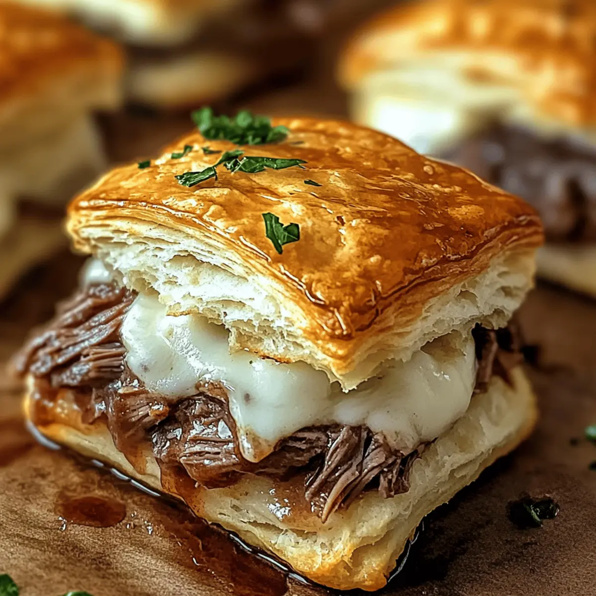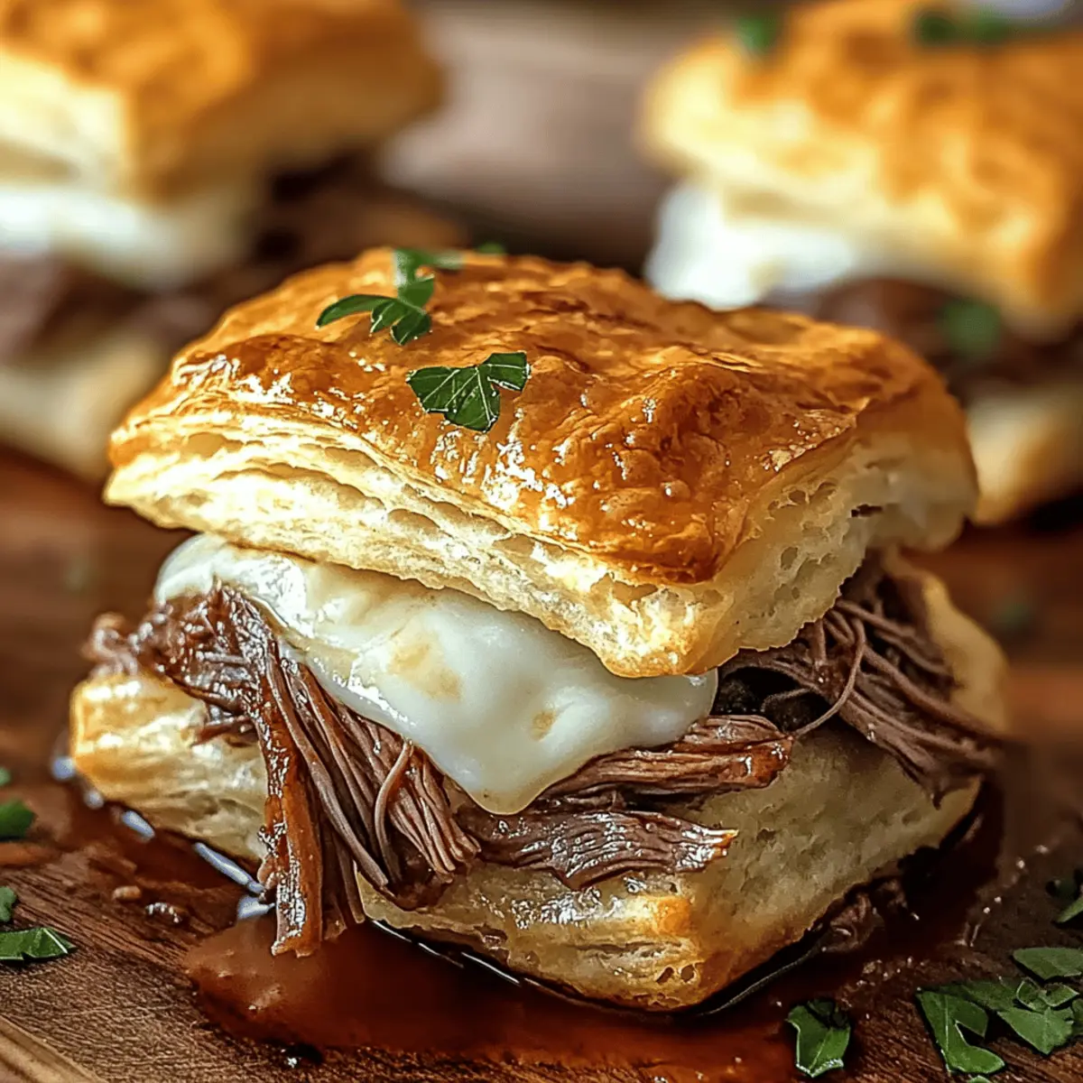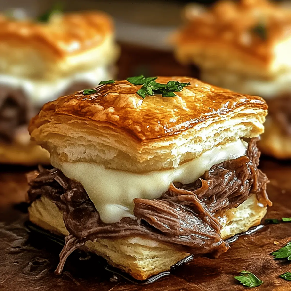 Jump to Recipe Print RecipeCan you smell that comforting aroma wafting through your kitchen? It’s a delightful blend of savory roast beef, melted Swiss cheese, and freshly baked biscuits transforming into an irresistible dish. These Baked French Dip Biscuits are absolutely perfect for those evenings when you crave something hearty but want to keep the cooking time under 45 minutes. Not only are they a scrumptious alternative to takeout, but they also make for a fun twist on a classic French dip sandwich. Your family will love digging into these golden, flaky pocket-sized wonders, all while you bask in the glory of being the home chef of the year. Ready to whip up this delightful meal that will warm both your heart and your belly? Why Are These Biscuits So Irresistible? Comforting Fusion: These Baked French Dip Biscuits bring together the best of two beloved dishes, turning a classic sandwich into a warm, flaky treat. Quick to Make: In just 45 minutes, you’ll have a hearty meal ready to serve, perfect for busy weeknights. Crowd-Pleasing Flavor: With tender roast beef and gooey Swiss cheese, they are a hit with both kids and adults. Versatile Options: Feel free to swap out ingredients; try pulled pork or grilled veggies for a unique twist. And if you’re eager for other comforting dishes, why not check out these Honey Chicken Biscuits or Baked Turkey Meatballs? Perfectly Dippable: Don’t forget a side of warm au jus for that delicious dip! Baked French Dip Biscuits Ingredients • Get ready to create something mouthwatering with these delightful ingredients! For the Biscuits All-purpose flour – Provides structure; use whole wheat flour for a healthier option. Baking powder – A leavening agent for fluffiness; ensure it’s fresh for best results. Salt – Enhances flavor. Cold unsalted butter – Adds richness and creates flaky layers; substitute with vegetable shortening for a dairy-free option. Buttermilk – Moistens the dough and adds tang; replace with equal parts milk and vinegar. For the Filling Roast beef (1 lb) – Main protein source, adds hearty flavor; turkey or chicken can be used as alternatives. Swiss cheese (1 cup) – Melts beautifully for flavor and texture; provolone or mozzarella are good replacements. For the Au Jus Beef broth (2 cups) – Base for the au jus, adds depth of flavor. Worcestershire sauce (1 tbsp) – Enhances umami; can replace with soy sauce for a similar effect. Garlic powder (1 tsp) – Provides aromatic flavor; fresh garlic could be minced as a substitute. Onion powder (1/2 tsp) – Adds sweetness and depth. For the Garnish Fresh herbs (optional) – Use parsley or thyme for added flavor. Additional cheese (optional) – For topping or extra richness. These Baked French Dip Biscuits ingredients ensure a delightful dish everyone will love! Step‑by‑Step Instructions for Baked French Dip Biscuits Step 1: Preheat Oven Begin by preheating your oven to 425°F (220°C). This temperature is key for achieving perfectly golden and flaky biscuits. While the oven’s warming up, gather your ingredients and equipment, including a mixing bowl and baking sheet lined with parchment paper for easy cleanup. Step 2: Make Dough In a large mixing bowl, whisk together all-purpose flour, baking powder, and salt until well combined. Cut in cold, unsalted butter using a pastry cutter or your fingers until the mixture resembles coarse crumbs. Next, gradually stir in buttermilk until the dough just comes together, being careful not to overmix. Step 3: Form Biscuits Turn the dough out onto a lightly floured surface. Gently knead the dough a few times until it’s cohesive, then roll it out to a thickness of about 1 inch. Use a biscuit cutter or a glass to cut out biscuits, placing them on the prepared baking sheet. Ensure they are close but not touching, so they rise beautifully. Step 4: Assemble Take half of the cut biscuits and layer them with slices of tender roast beef and gooey Swiss cheese. Then, place the remaining biscuits on top of the filled ones, pressing down gently to seal the edges. This step will encase all the delicious filling, making your Baked French Dip Biscuits extra delightful. Step 5: Bake Slide the baking sheet into the preheated oven and bake for 15-20 minutes. Keep an eye on them; they should turn a beautiful golden brown with a lovely flaky top. The lovely aroma filling your kitchen will be an early indication that these Baked French Dip Biscuits are nearly ready. Step 6: Make Au Jus While the biscuits bake, prepare the au jus. In a small saucepan, combine beef broth, Worcestershire sauce, garlic powder, and onion powder. Bring the mixture to a gentle simmer over medium heat and let it cook for about 5 minutes, stirring occasionally. This flavorful dip will elevate your Baked French Dip Biscuits. Step 7: Serve Once baked, remove the biscuits from the oven and allow them to cool slightly. Serve them warm with a side of the prepared au jus for dipping. Watching your family dive into these tasty Baked French Dip Biscuits is sure to bring joy as they savor each bite! Storage Tips for Baked French Dip Biscuits Room Temperature: Best enjoyed fresh, but if you need to store them, let the biscuits cool completely before placing them in an airtight container at room temperature for up to 1 day. Fridge: Store leftovers in an airtight container in the refrigerator for up to 3 days. To keep them from drying out, make sure they are tightly sealed. Freezer: For longer storage, freeze baked biscuits individually by wrapping them in plastic wrap and placing them in a freezer bag. They can last up to 2 months in the freezer. Reheating: When you’re ready to enjoy the Baked French Dip Biscuits again, reheat from frozen in a preheated oven at 350°F (175°C) for about 15-20 minutes or until warmed through. Serve with au jus for the best experience! Baked French Dip Biscuits Variations Feel free to let your creativity shine with these delightful twists on t