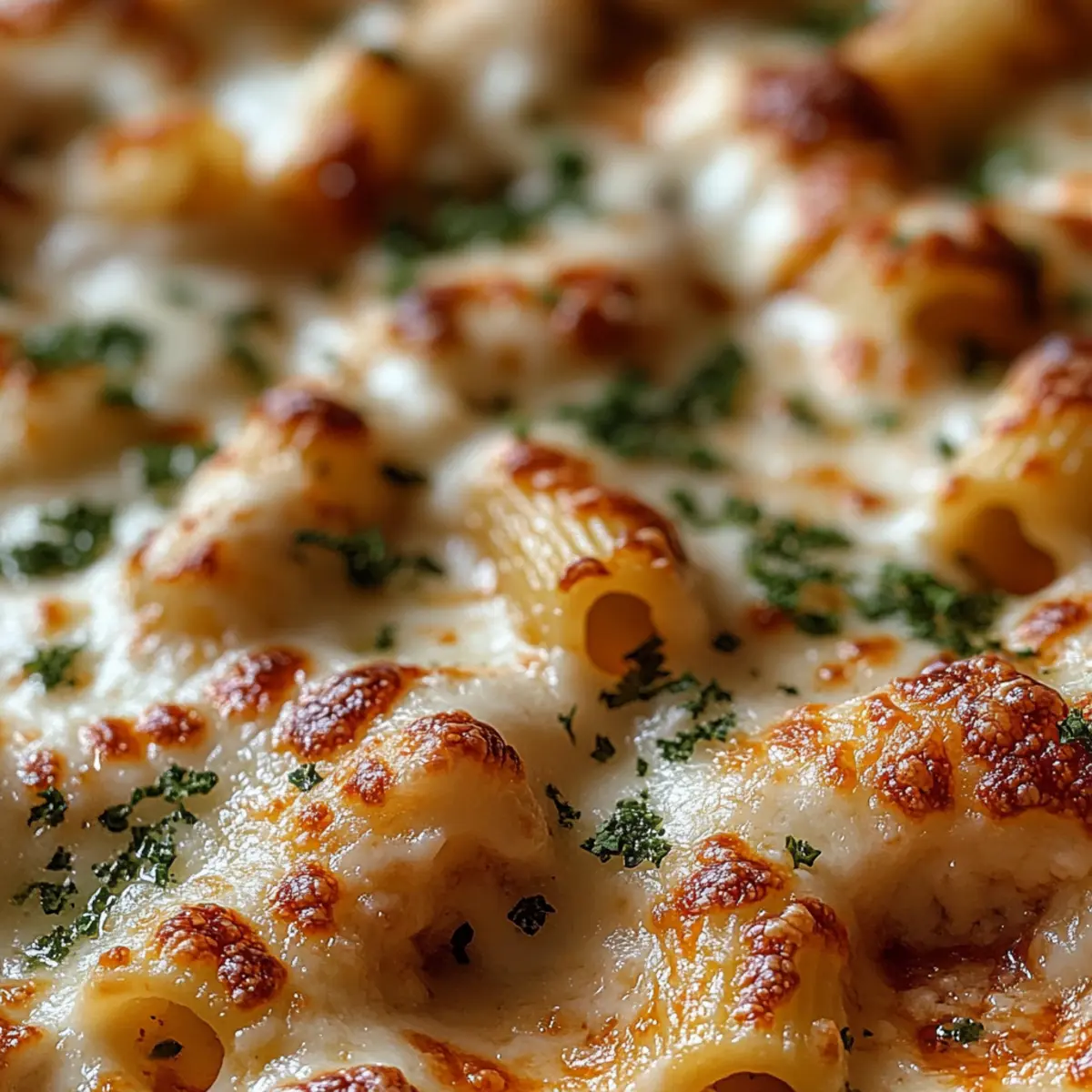 Jump to Recipe Print RecipeThere’s a comforting aroma wafting through my kitchen, a mix of tangy marinara and luscious melted cheese that brings back memories of family dinners and cozy evenings. My Million Dollar Baked Ziti captures this nostalgia, transforming a simple weeknight meal into a heartwarming feast. With its gooey cheese, tender ziti, and customizable ingredients, this creamy baked pasta is sure to please everyone at the table. Plus, you can easily make it gluten-free or swap in your favorite cheeses for a personal touch! This recipe not only delivers on comfort but also saves you time with its straightforward prep—it’s a perfect solution for busy nights without sacrificing that homemade magic. Curious to see how to bring this cheesy delight to your own dinner table? Why is Baked Ziti so Irresistible? Comforting and Gooey: This Million Dollar Baked Ziti offers a warm embrace of melted cheese and hearty pasta, reminiscent of family gatherings and cozy nights in. Customizable Options: Easily switch ingredients to suit your taste—try gluten-free pasta or different cheese blends for a unique twist. Quick Prep: With straightforward steps, this dish is perfect for busy weeknights yet impressive enough to delight guests. Perfect Pairings: Elevate your meal by serving it with a fresh green salad or warm garlic bread, creating a delightful and balanced dinner experience. Crowd-Pleasing: Whether it’s a family dinner or a casual gathering, this cheesy delight is guaranteed to win hearts and leave everyone asking for seconds! Check out the text for our delicious Baked Turkey Meatballs to complement your ziti beautifully. Baked Ziti Ingredients For the Pasta • Ziti Pasta – The star of the dish; provides heartiness—feel free to use gluten-free pasta for dietary needs. For the Flavor Base • Olive Oil – Essential for sautéing onions and garlic, adding a lovely depth to the sauce. • Onions – Adds sweetness and richness; shallots work well for a milder taste. • Garlic – Fresh garlic enhances the overall dish and infuses it with flavor. • Ground Beef or Sausage – Offers protein and richness; turkey or meat alternatives can be substituted for a lighter version. • Marinara Sauce – The flavorful base; homemade or store-bought works beautifully. For the Cheese Mixture • Italian Seasoning – Enhances flavor with a blend of herbs; customize with fresh basil, oregano, and thyme if preferred. • Ricotta Cheese – Brings creaminess; cottage cheese or cream cheese can be an excellent substitute. • Egg – Acts as a binding agent; optional if using cream cheese. • Grated Parmesan – Adds a nutty flavor; reserve some for garnishing. • Mozzarella Cheese – Melts into cheesy perfection; low-fat options are available for a lighter fare. For Seasoning • Salt & Pepper – Key to balancing the dish; adjust according to your taste. Step‑by‑Step Instructions for Baked Ziti Step 1: Cook the Pasta Bring a large pot of salted water to a rolling boil over high heat. Add the ziti pasta and cook for about 8 minutes or until al dente, stirring occasionally to prevent sticking. Once cooked, drain the pasta thoroughly and return it to the pot, allowing it to cool slightly while you prepare the sauce. Step 2: Sauté the Aromatics In a large skillet, heat a drizzle of olive oil over medium heat. Add chopped onions and minced garlic, sautéing for about 3-5 minutes, or until the onions turn translucent and fragrant. This step builds a flavorful base for your Million Dollar Baked Ziti, setting the stage for the rest of the dish. Step 3: Brown the Meat Introduce your choice of ground beef or sausage to the skillet. Cook for 5-7 minutes, breaking up the meat with a spatula, until it’s browned and cooked through. Next, stir in your marinara sauce and Italian seasoning, and let the mixture simmer on low heat for about 10 minutes to meld those delicious flavors together. Step 4: Prepare the Cheese Mixture In a mixing bowl, combine ricotta cheese, a beaten egg, grated Parmesan, salt, and pepper. Stir everything together until the mixture is smooth and creamy. This cheesy blend will create a delightful layer in your baked ziti, enhancing its richness and flavor while providing that classic creamy texture. Step 5: Layer the Baked Ziti Preheat your oven to 375°F (190°C). In a greased baking dish, spread half of the cooked ziti as the bottom layer. Next, add half of the ricotta cheese mixture and half of your sauce, followed by a generous sprinkle of mozzarella cheese. Repeat these layers, finishing with the remaining mozzarella on top for a beautifully cheesy finish. Step 6: Bake to Perfection Cover your baking dish with foil and place it in the preheated oven. Bake for 20 minutes, then carefully remove the foil and bake for an additional 10-15 minutes. When the cheese is bubbling and golden brown, your Million Dollar Baked Ziti is ready to come out! Step 7: Rest and Serve Allow the baked ziti to rest for about 5 minutes after removing it from the oven. This resting period helps the layers set, making it easier to slice and serve. Dish it out to eager plates and savor the comforting, creamy goodness that this baked ziti brings to your table! Baked Ziti Variations & Substitutions Feel free to mix and match your ingredients, creating a comforting dish that perfectly suits your taste! Gluten-Free Pasta: Swap traditional ziti with your favorite gluten-free pasta to accommodate dietary needs while retaining that comforting taste. Cheese Variety: Experiment with different cheeses like gouda or cheddar for a unique flavor twist that will keep everyone guessing what’s in your delicious creation! Vegetable Boost: Add spinach, zucchini, or bell peppers into the meat sauce for a nutritious boost; it’s a great way to sneak in some veggies! Spicy Touch: For those who love heat, add diced jalapeños or spicy Italian sausage to the sauce to give your baked ziti an exciting kick. Herbal 
