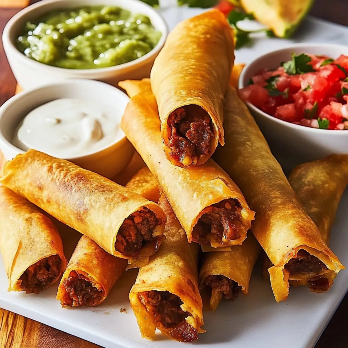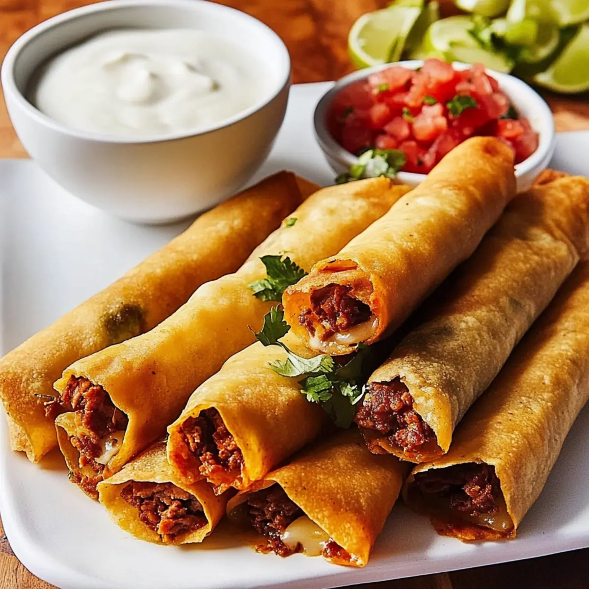 Jump to Recipe Print RecipeAs I rummaged through the pantry, my gaze landed on a lonely package of corn tortillas, and a spark of inspiration ignited! That’s when I knew it was time to whip up some crispy Beef Taquitos that would put any frozen version to shame. These easy-to-make taquitos, with their customizable fillings, are quick to prepare and incredibly satisfying, making them the perfect go-to for weeknight dinners or friendly gatherings. So whether you prefer to bake them for a healthier touch or delight in the crunch of fried perfection, you’re in for a treat. Ready to elevate your snack game and impress your friends? Let’s dive into the delightful world of Beef Taquitos! Why Are Beef Taquitos a Must-Try? Crispy Exterior: The satisfying crunch of these taquitos will have you hooked from the first bite. Customizable Spice: Tailor the heat level to your liking with jalapeños or adjust the spices for a milder version. Quick Prep Time: Whip these up in no time, perfect for busy weeknights when tasty food is essential! Baking or Frying Options: Choose your preferred cooking method for a healthier baked version or the ultimate crispy fried indulgence. Family-Friendly Appeal: These taquitos are a hit with everyone, making them the perfect addition to any gathering. With options like Ground Beef Burrito for a fun twist, these Beef Taquitos are bound to impress! Beef Taquitos Ingredients For the Filling • Ground Beef – Main filling; use 90% lean for less grease. • Small Yellow Onion – Adds sweetness and texture; shallots can be a substitute. • Garlic – Provides aromatic flavor; garlic powder can work in a pinch. • Tomato Paste – Adds depth and umami; tomato sauce can be adjusted for use. • Taco Seasoning – Flavor base for the beef; consider homemade for freshness. • Pickled Jalapeños – Provide heat and acidity; fresh jalapeños are a milder alternative. • Kosher Salt – Essential seasoning for flavor enhancement. For the Cheesy Touch • Cheddar Cheese – Melts beautifully and adds richness; Monterey Jack is a good alternative. • Pepper Jack Cheese – Adds a creamy, spicy kick; omit for milder flavor. For Preparing the Taquitos • Small Corn Tortillas – The base for the taquitos; should be pliable for rolling. • All-Purpose Flour – Acts as a glue for sealing the taquitos; cornstarch can be gluten-free. For Serving • Sour Cream – For dipping; creamy goodness that enhances the flavors. • Fresh Lime Juice – Brightens all flavors; lemon juice can be a substitute. • Fresh Cilantro – Adds freshness; parsley or green onions can work as replacements. • Guacamole/Pico de Gallo – For serving alongside your beef taquitos, a delicious pairing! With these Beef Taquitos ingredients, you’re set to create something utterly delicious that will transform your snack time into a flavorful fiesta! 🌮 Step‑by‑Step Instructions for Beef Taquitos Step 1: Prepare Sofrito In a large skillet over medium heat, pour in a drizzle of neutral oil and add the diced onion and pickled jalapeños. Sauté for about 5 minutes until the onion is translucent and softened. Stir in minced garlic and continue cooking for an additional minute until fragrant. Mix in the tomato paste, allowing it to caramelize slightly for about 3 minutes, creating a rich base for your Beef Taquitos. Step 2: Cook Beef Add the ground beef and taco seasoning into the skillet, breaking the meat apart with a wooden spoon. Cook for about 7-10 minutes, stirring occasionally, until the meat is fully cooked with no pink remaining. Scrape the bottom of the pan to release those tasty browned bits. Once done, transfer the mixture to a bowl and let it cool slightly before proceeding to assemble the Beef Taquitos. Step 3: Assemble Taquitos In a mixing bowl, combine both cheeses. Take a small corn tortilla and spread a generous spoonful of the beef mixture in the center, topped with a sprinkle of cheese. Carefully roll the tortilla tightly into a log shape, pressing to ensure it stays closed. Use a paste made of flour and water to seal the edges, laying them seam-side down on a plate while you repeat with the remaining tortillas. Step 4: Make Crema Prepare the dipping sauce by mixing sour cream, fresh cilantro, lime juice, and a pinch of salt in a small bowl. Stir until smooth, then cover and place in the refrigerator to chill while you cook the taquitos. This creamy addition will enhance the flavors and provide a refreshing contrast to the crispy Beef Taquitos. Step 5: Cook Taquitos Now it’s time to cook your Beef Taquitos! If baking, preheat your oven to 400°F and arrange the taquitos on a lined baking sheet, brushing the tops lightly with oil. Bake for 20-25 minutes until golden and crispy. For frying, heat oil in a deep pan to 375°F, then carefully add the taquitos, frying in batches until golden brown, about 3-4 minutes per side. Drain on paper towels and enjoy immediately. How to Store and Freeze Beef Taquitos Fridge: Keep cooked Beef Taquitos in an airtight container for up to 3 days. Reheat in the oven or air fryer for that fresh-crisp experience. Freezer: Uncooked, assembled taquitos can be frozen for up to 4 months. Lay them flat on a baking sheet, freeze until solid, then transfer to a freezer bag. Reheating: For previously cooked taquitos, reheat in the oven at 350°F for about 10-15 minutes or until heated through and crispy again. Wrap for Freshness: When storing, wrap taquitos individually in plastic wrap or parchment paper before placing them in a container to maintain texture. Expert Tips for Beef Taquitos Keep Tortillas Soft: Microwave the tortillas wrapped in a clean towel for about 30 seconds. This keeps them pliable and prevents tearing during rolling. Oil Temperature Matters: Ensure your frying oil is at 375°F to achieve that perfect crispiness without making the Beef Taquitos greasy and heavy. Don’t Overfill: Avoid overstuffing the tortillas; a small amount of fill