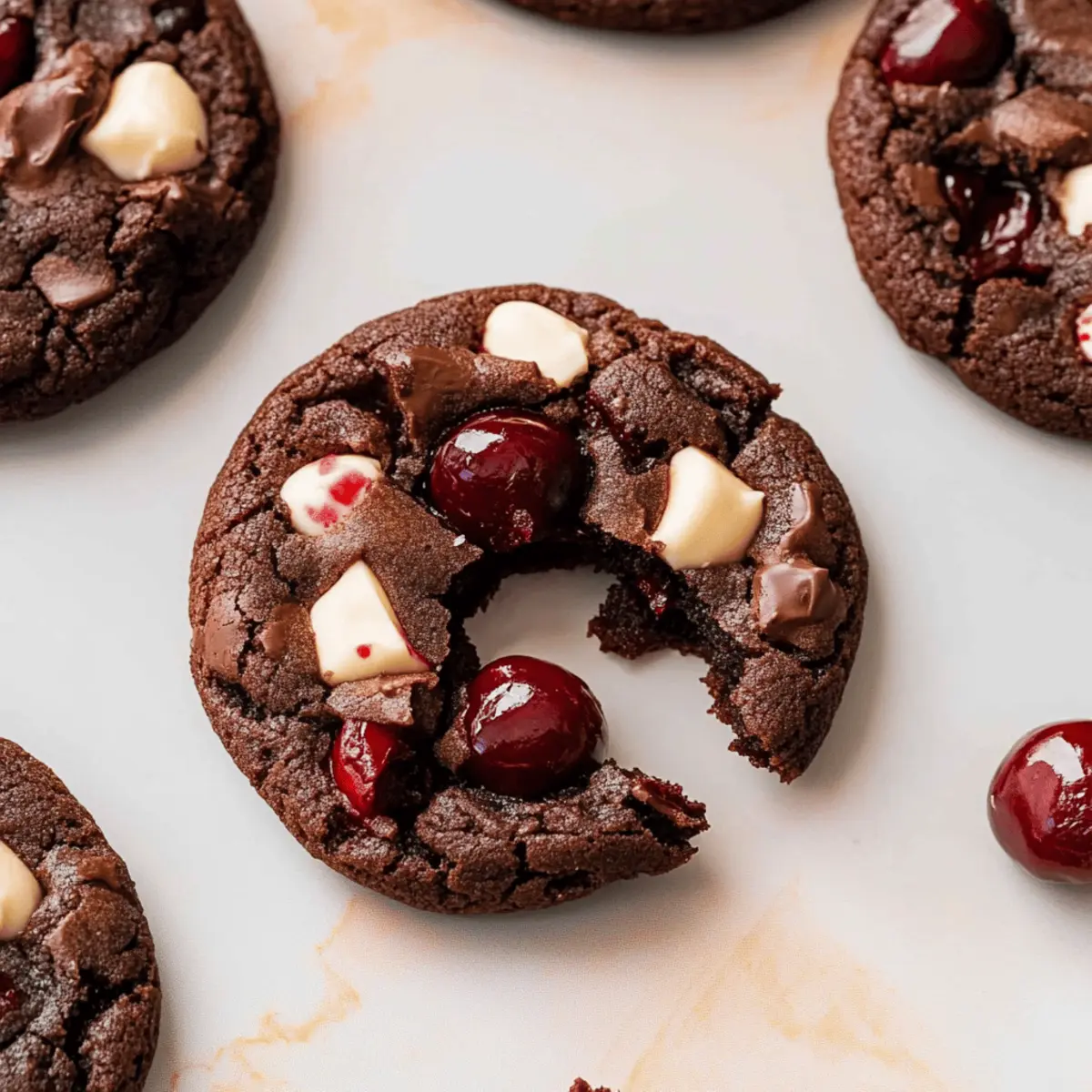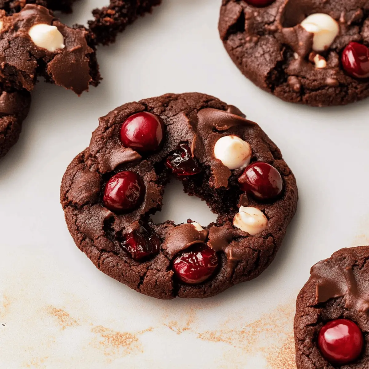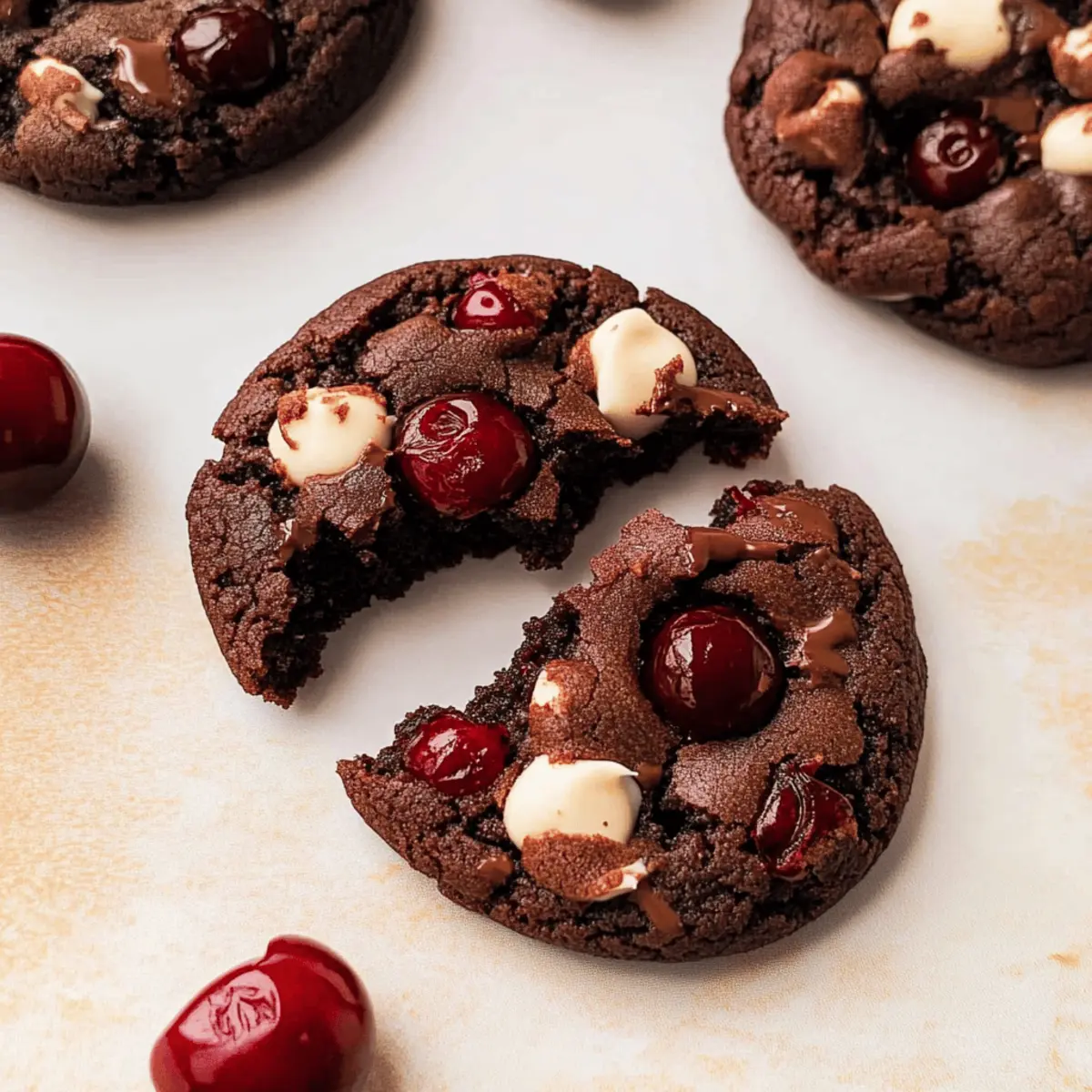 Jump to Recipe Print RecipeAs I stood in my kitchen, the warm, inviting scent of chocolate began to work its magic, luring everyone from their corners of the house. Today, I’m whipping up a batch of Chewy Black Forest Cookies with Fresh Cherries, inspired by the beloved cake that tantalizes taste buds. Prepare to experience an effortless treat that requires no mixer and no chilling time—perfect for those moments when the sweet tooth strikes unexpectedly! Each bite delivers a delightful blend of rich chocolate and juicy cherries, transforming a simple cookie into a joyful experience. Whether for a cozy weekend indulgence or a crowd-pleasing dessert, these cookies are bound to be a hit. Curious about how to make your kitchen smell like heaven? Let’s dive in! Why Will You Love Black Forest Cookies? Irresistible Texture: Each cookie is soft on the inside, with beautifully chewy edges that will make you crave seconds. Bursting with Flavor: The combination of rich chocolate and fresh cherries creates a delightfully sweet and tart experience in every bite. Quick & Easy: No mixer and no chill time means you can whip these up in just minutes, perfect for those in a hurry. Crowd-Pleasing Treat: These cookies are sure to impress at any gathering, just like Cookies Cream Oreo or Gingerbread Men Cookies. Versatile Ingredient Options: Swap in maraschino cherries or different types of chocolate to suit your preferences! Indulge in a cookie that brings the beloved flavors of Black Forest cake straight to your kitchen! Black Forest Cookies Ingredients • For the Cookie Dough All-purpose flour – Provides structure; be sure to spoon and level for accuracy. Unsweetened cocoa powder – Adds rich chocolate flavor; Dutch process is best for deeper taste. Baking powder – Helps cookies rise for that perfect chewy texture. Baking soda – Enhances browning and chewiness, essential for these Black Forest Cookies. Salt – Balances sweetness and enhances all flavors beautifully. Unsalted butter – Adds richness and moisture; remember to melt and cool it. Brown sugar – Provides chewiness and depth of flavor; both light and dark work well. Granulated sugar – Adds just the right amount of sweetness. Pure vanilla extract – Elevates the overall flavor of the cookies significantly. Large eggs – Bind ingredients together and provide moisture; use room temperature for best results. • For the Chocolate & Cherries White chocolate chips – These add a creamy sweetness; reserve some for topping. Semisweet chocolate chips – The classic choice for a robust chocolate flavor; also save some for topping. Fresh cherries – Offer natural sweetness and a juicy burst; wash, pit, and quarter before using to ensure freshness. Step‑by‑Step Instructions for Black Forest Cookies Step 1: Prepare Butter and Cherries Begin by melting ½ cup of unsalted butter in a saucepan over low heat, then allow it to cool slightly while you work on the cherries. Washing, pitting, and quartering about 1 cup of fresh cherries should be your next task—set them aside, as they’ll create delightful bursts of flavor in your Black Forest Cookies. Step 2: Preheat Oven Preheat your oven to 350°F (175°C). To prepare your baking sheets, line them with parchment paper, ensuring that your cookie surface is ready to receive those delectable dough balls. This step is crucial for achieving that perfect chewy texture without sticking. Step 3: Mix Dry Ingredients In a medium bowl, whisk together 1 cup of all-purpose flour, ½ cup of unsweetened cocoa powder, ½ teaspoon of baking powder, ½ teaspoon of baking soda, and a pinch of salt. Be sure to mix well until there are no lumps, as this will enhance the overall texture of your Black Forest Cookies. Step 4: Mix Wet Ingredients In a large bowl, stir together the cooled melted butter with ¾ cup each of brown sugar and granulated sugar. Add 1 teaspoon of pure vanilla extract and 2 large room temperature eggs. Use a rubber spatula to blend everything until smooth, taking care to incorporate air into your mixture for an airy cookie. Step 5: Combine Mixtures Now, gently add the dry ingredients to the wet ingredients. Fold together until just combined; be careful not to overmix. This is the moment to incorporate ½ cup of semisweet chocolate chips, ½ cup of white chocolate chips, and your quartered fresh cherries, ensuring they are evenly dispersed throughout the dough. Step 6: Scoop Dough Using a 3oz cookie scoop, portion out the dough onto your prepared cookie sheets, placing 6 dough balls per sheet to allow room for spreading. Each scoop should resemble a generous mound, promising soft, chewy Black Forest Cookies that everyone will love. Step 7: Bake Cookies Slide the cookie sheets into your preheated oven and bake for 13-15 minutes. You’ll know the cookies are ready when the edges look set, but the centers remain slightly soft—these will firm up as they cool. For an added touch, sprinkle some reserved chocolate chips on top as soon as they come out of the oven. Step 8: Cool Cookies After baking, let the cookies cool on the pan for about 10 minutes. This resting time is important, as it allows the cookies to firm up before transferring them to a wire rack to cool completely. Enjoy the warm, inviting scent of freshly baked Black Forest Cookies wafting through your kitchen! What to Serve with Chewy Black Forest Cookies? Indulging in these delightful cookies opens the door to a world of scrumptious pairings that elevate your dessert experience. Fresh Milk: A classic companion, velvety milk balances the richness of chocolate and tartness of cherries, enhancing every bite. Vanilla Ice Cream: Serve warm cookies alongside creamy vanilla ice cream for a decadent hot-and-cold contrast that’s simply irresistible. Coffee or Espresso: The bold flavors of coffee complement the chocolate beautifully, making it a perfect pairing for your afternoon snack. Chocolate Sauce Drizzle: Elevate your desser