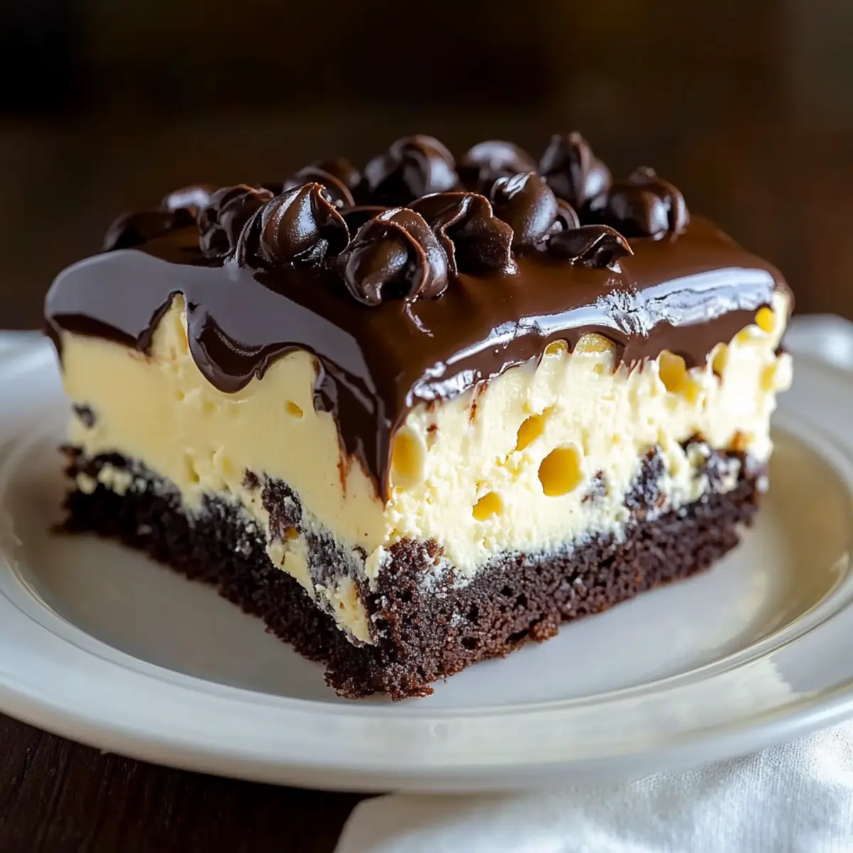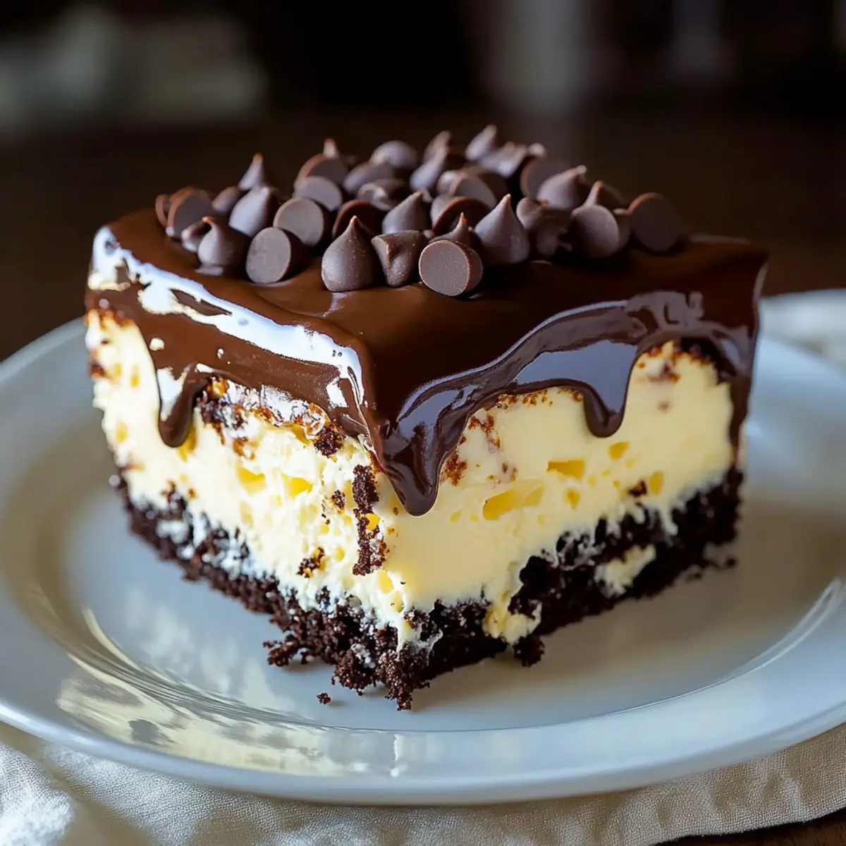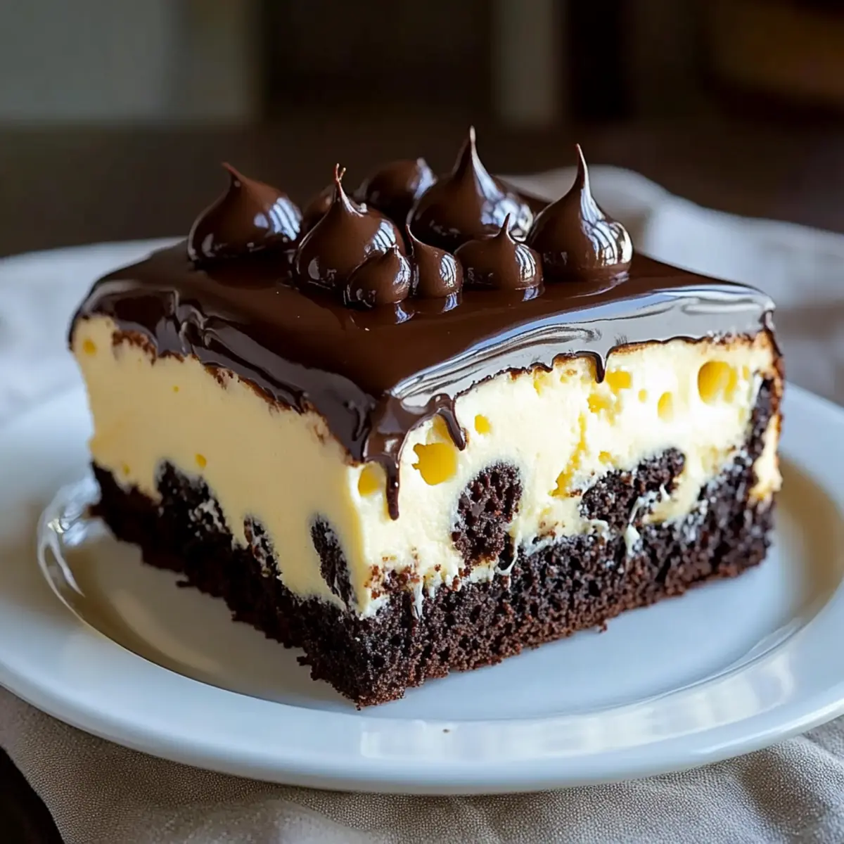 This Boston Cream Poke Cake is a nostalgic dessert that combines light, moist cake, velvety vanilla pudding, and luscious chocolate glaze.