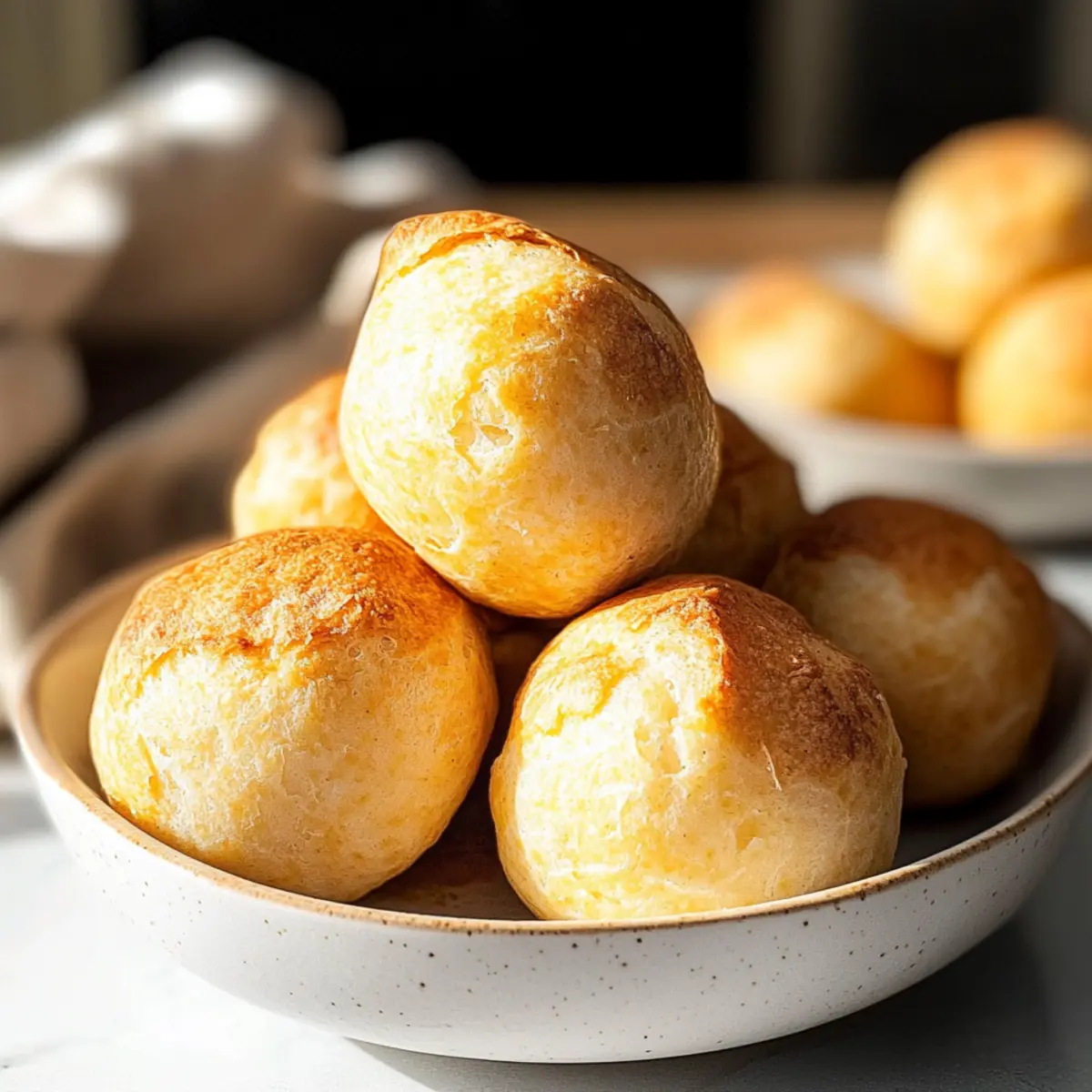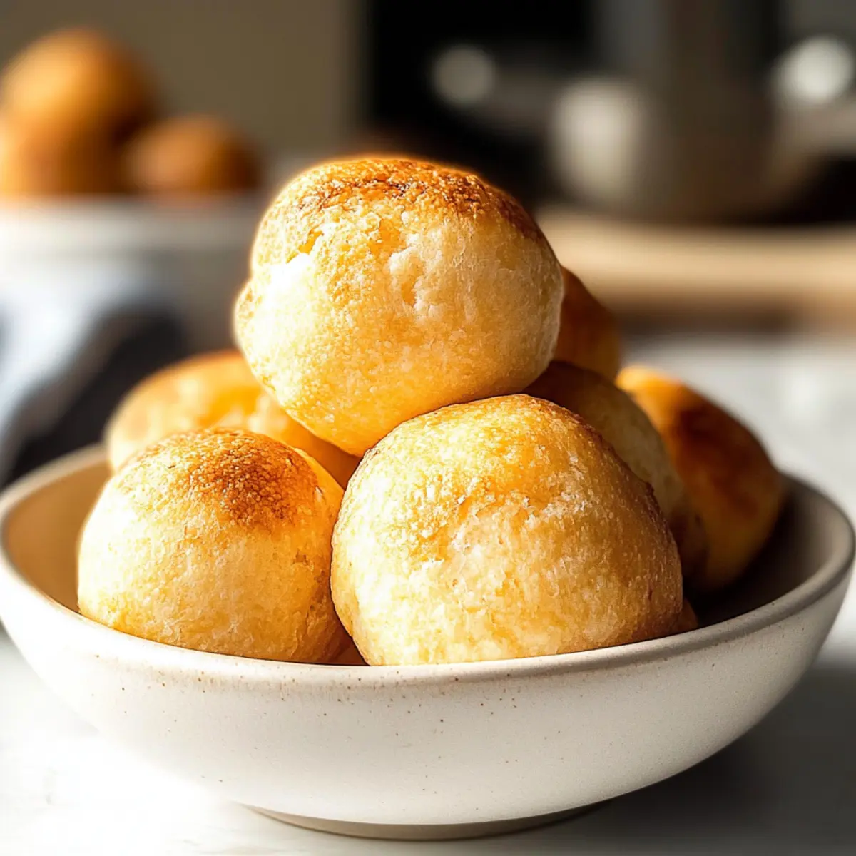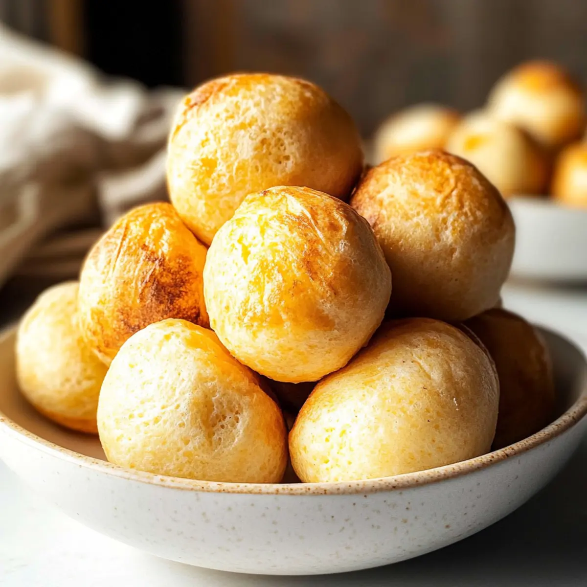 Jump to Recipe Print RecipeAs I took my first bite of Pão de Queijo, the sensation was like a warm hug on a rainy day. This Brazilian Cheese Bread perfectly combines a crunchy exterior with a soft, cheesy interior that simply melts in your mouth. What I love most about this easy recipe is that it uses just eight ingredients, making it a breeze for anyone looking to whip up a satisfying snack or gluten-free appetizer. Plus, it’s not just delicious—these little bites are low-carb and keto-friendly, making them a guilt-free indulgence. Whether you’re hosting a gathering, needing a quick snack, or simply craving something comforting, this recipe checks all the boxes. Curious about how to bring this irresistible treat to your kitchen? Let’s dive into the magic of Brazilian Cheese Bread! Why is Brazilian Cheese Bread so irresistible? Comforting Warmth: Each bite offers a cozy experience, like a warm hug on a rainy day. Simple Ingredients: With just eight pantry staples, whipping these up is a cinch! Low-Carb Delight: Perfect for those on a keto journey—satisfy cravings without the carbs. Versatile Snack: Ideal for gatherings, or as a quick treat, these little puffs never disappoint. Unique Flavor: The combination of cheeses brings a savory depth, making every bite a cheesy dream! Cultural Treasure: Enjoy a piece of Brazilian tradition in your home, delighting taste buds and sparking joy. Explore the flavor further with other tasty options like Pumpkin Cream Cheese or the delicious Cheese Pies. Brazilian Cheese Bread Ingredients • Here’s what you need to create these irresistible bites! For the Dough Tapioca Flour – This gives Pão de Queijo its signature chewy texture; feel free to substitute with cassava flour if needed. Whole Milk – Adds moisture and richness; go for unsweetened almond or coconut milk for a dairy-free option. Eggs – Essential for binding the ingredients together; no substitutions recommended here for the best results. Vegetable Oil (or Avocado Oil) – Provides necessary fat; melted butter can be used for an extra flavor boost. For the Cheese Shredded Sharp Cheddar Cheese – Offers a zesty flavor that pairs perfectly; Monterey Jack is a great melting alternative. Shredded Mozzarella Cheese – Ensures that delightful gooeyness; try substituting with provolone for twist. For Seasoning Salt – Amplifies flavors; regular table salt or sea salt works perfectly—no swaps needed. Garlic Powder – Introduces a hint of garlic goodness; optional, but consider using onion powder if you prefer. Now that you have everything, it’s time to bake and enjoy the fantastic flavors of Brazilian Cheese Bread! Step‑by‑Step Instructions for Brazilian Cheese Bread Step 1: Preheat Your Oven Begin by preheating your oven to 400°F (200°C). While the oven warms up, take a mini muffin pan and grease each well generously with nonstick spray or a light coating of oil. This ensures your Brazilian Cheese Bread releases easily after baking, giving you perfectly shaped puffs that shine with golden delight. Step 2: Blend the Ingredients In a powerful blender, combine 2 cups of tapioca flour, 1 cup of whole milk, 2 large eggs, and 1/3 cup of vegetable oil. Then, add 1 cup of shredded sharp cheddar cheese, 1 cup of shredded mozzarella cheese, 1 teaspoon of salt, and 1 teaspoon of garlic powder. Blend the mixture until it becomes smooth and frothy, which should take about 30–60 seconds. This step is essential for achieving that blissfully chewy texture. Step 3: Fill the Muffin Pans Once your batter is smooth, carefully spoon it into the greased muffin pan, filling each well about ¾ full. This helps the Brazilian Cheese Bread puff up beautifully without overflowing. As you fill, you’ll notice the batter has a light, airy consistency. Ensure even distribution for uniform baking, so all the cheese puffs rise evenly. Step 4: Bake to Perfection Slide the muffin pan into your preheated oven and bake for 19-20 minutes. Keep an eye on them, as they should puff up magnificently and turn a light golden brown. The tops will also feel slightly firm to the touch. Avoid overcrowding the oven to ensure proper airflow around the cheese bread, fostering that characteristic rise. Step 5: Cool and Serve After baking, carefully remove the pan from the oven and let it cool for a few minutes. The aroma will be delightful, tempting you to dig in! Allow the Brazilian Cheese Bread to cool slightly before easing them out of the pan. Serve warm and enjoy that cheesy, melty goodness—perfect as a snack or appetizer! Make Ahead Options These Brazilian Cheese Bread (Pão de Queijo) are perfect for meal prep enthusiasts! You can prepare the batter up to 24 hours in advance by blending all the ingredients and storing it in an airtight container in the refrigerator. Additionally, you can scoop the batter into greased muffin pans and freeze them for up to 3 months. When you’re ready to enjoy, simply bake straight from the freezer, adding an extra minute or two to the baking time to ensure they’re golden and fluffy. This way, you’ll have a delightful homemade snack ready with minimal effort, maintaining that satisfying cheesy texture! What to Serve with Easy Brazilian Cheese Bread? Nothing complements the warm, cheesy comfort of these delightful puffs quite like a carefully curated menu! Garlic Herb Butter: Melted and infused with fresh herbs, this dip provides a rich layer of flavor that enhances each cheesy bite. Savory Dips: A tangy avocado dip or zesty salsa can elevate your Pão de Queijo, adding a fresh contrast to the warmth of the bread. Crunchy Salad: A crisp arugula salad with a lemon vinaigrette adds a refreshing brightness, balancing the richness of the cheese. Spicy Jam: A sweet-spicy jalapeño jam creates a delightful contrast, making every bite even more addictive with its unexpected kick. Chilled White Wine: Pairing with a chilled Sauvignon Blanc offers a refreshing sip that beautifully 