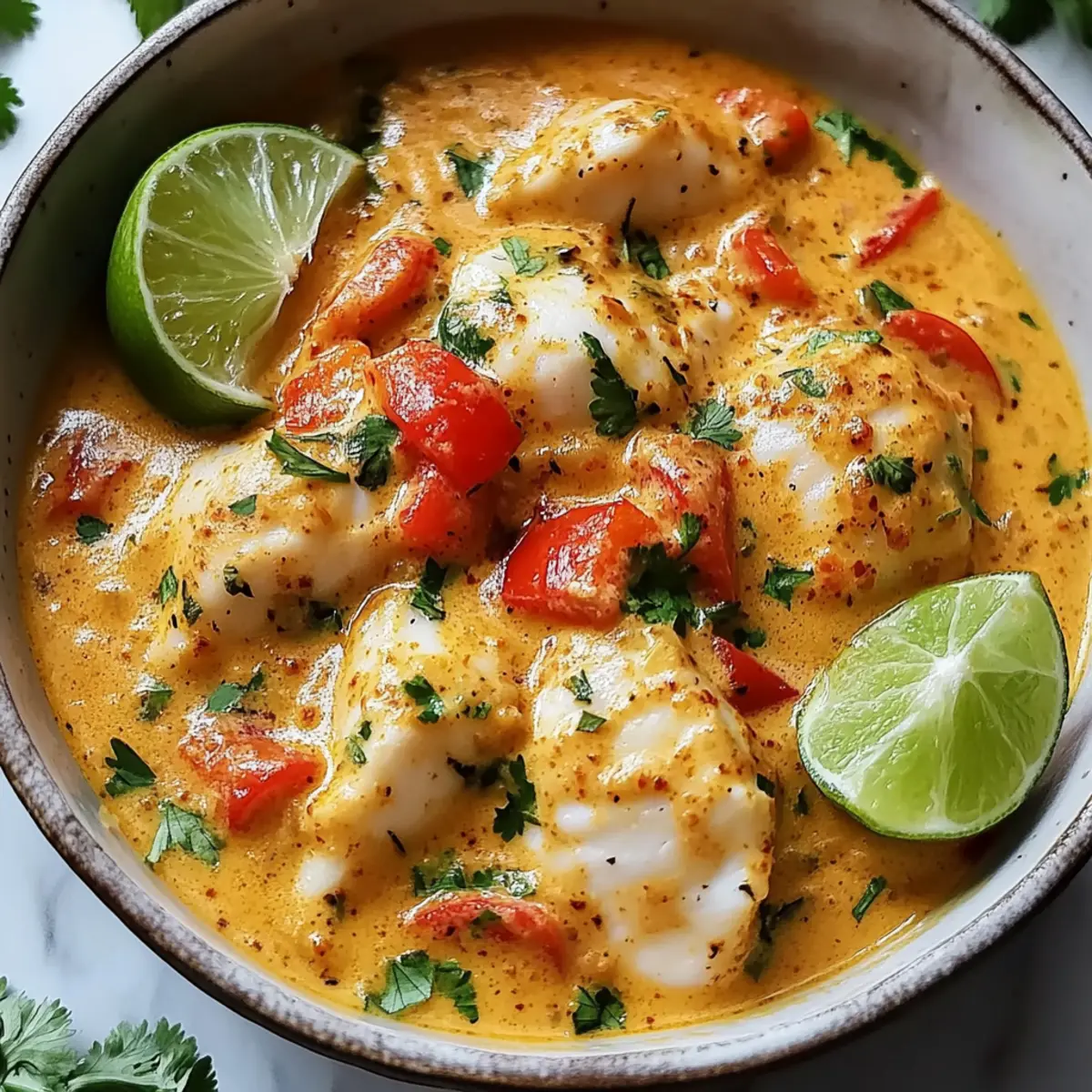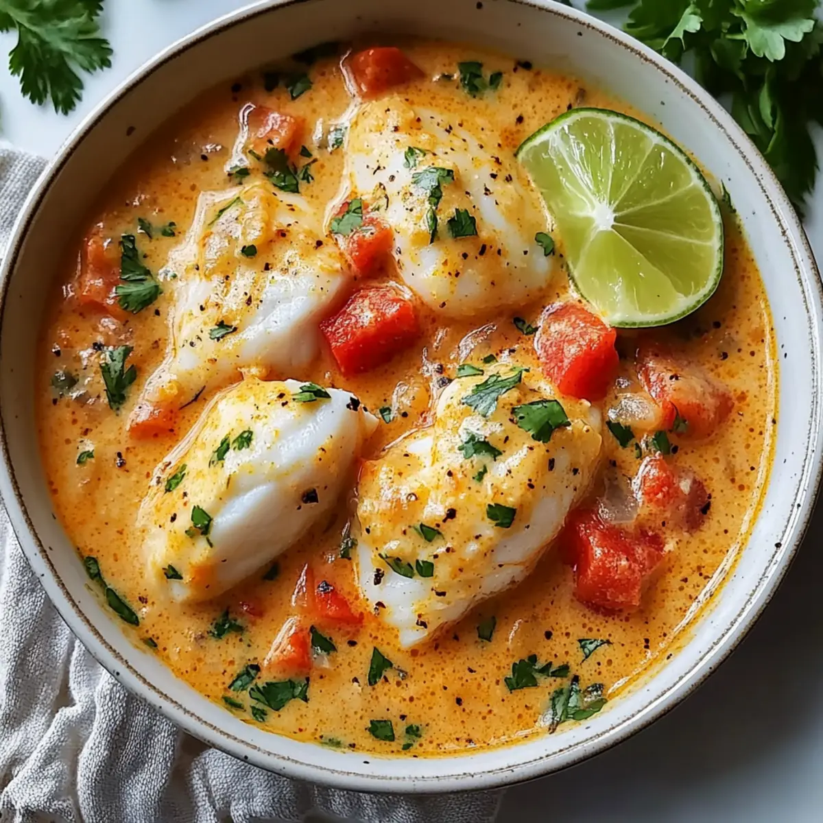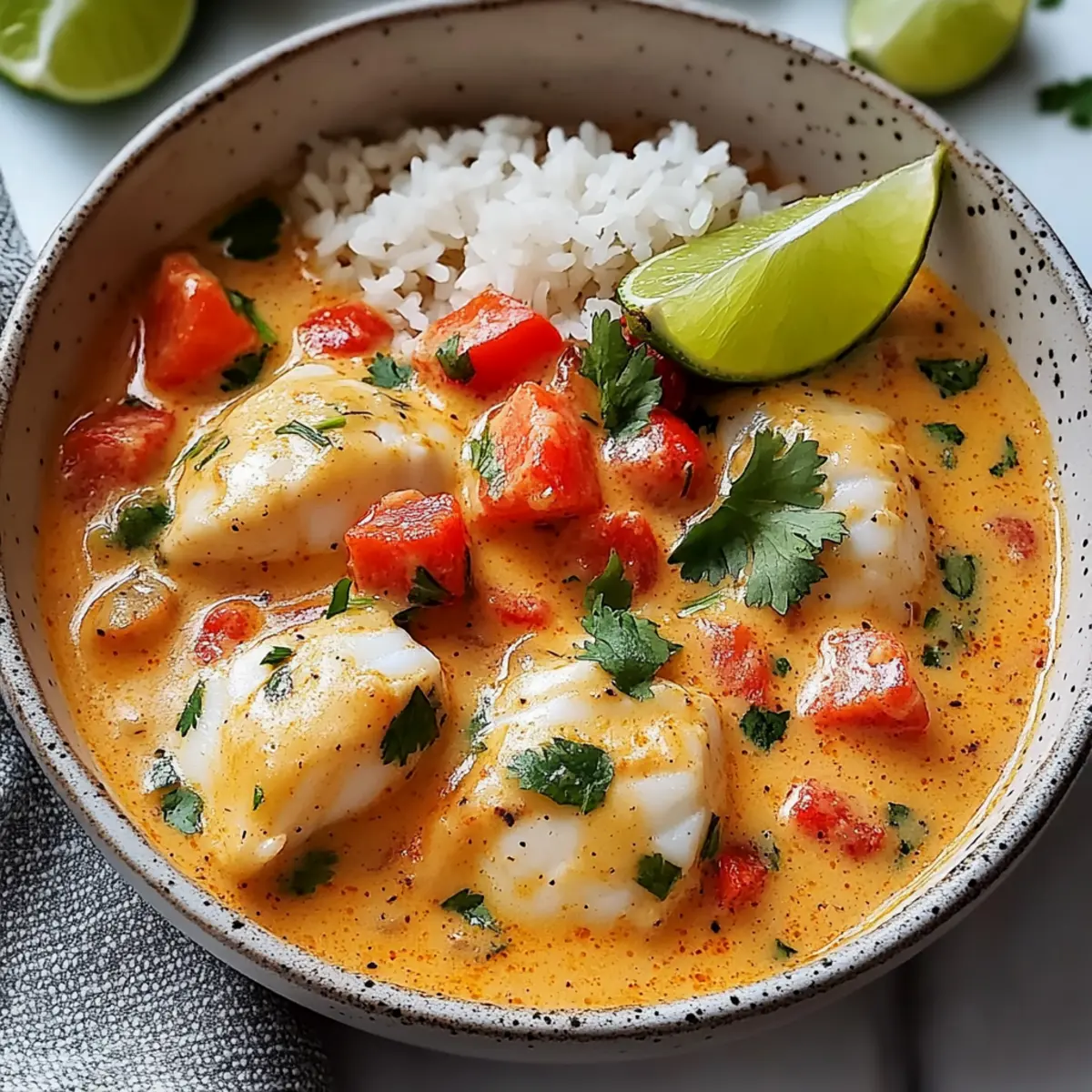 Jump to Recipe Print RecipeAs I stood by the stove, the fragrant aroma of spices mingled with the sweetness of coconut, transporting me straight to the sun-drenched shores of Brazil. This Quick & Creamy Brazilian Fish Stew, or Moqueca, is the perfect weeknight delight, ready in just 30 minutes! Not only does it invite a burst of color and comforting flavor to your table, but it also caters to various dietary preferences—it’s gluten-free, dairy-free, and packed with wholesome ingredients. Whether you’re using firm white fish, succulent shrimp, or creamy tofu for a vegan twist, each bowlful brings a taste of coastal paradise. Curious how to recreate this vibrant dish that’s sure to impress at any dinner gathering? Let’s dive in! Why is Brazilian Fish Stew so delightful? Vibrant Flavors: The blend of coconut milk and spices creates a luscious sauce that’s bursting with flavor, making every spoonful captivating. Quick Preparation: In just 30 minutes, you can whip up this delightful stew, turning any busy weeknight into an exotic culinary experience! Flexible Options: With multiple seafood options or a vegan twist using tofu, this dish easily caters to various dietary preferences, ensuring everyone is satisfied. One-Pot Wonder: This recipe is not just about taste but ease; less cleanup means more time enjoying your meal! Serve it alongside fluffy rice or crusty bread for a complete taste sensation. Crowd-Pleasing Appeal: Whether impressing guests or making dinner for the family, this stew is sure to spark joy at the table. Don’t hesitate to check out our storage tips to make the most out of your leftovers! Brazilian Fish Stew Ingredients For the Stew • Firm White Fish – Main protein source; options like halibut or mahi-mahi deliver the best results. • Fresh Lime Juice – Brightens the dish; lemon juice serves as a perfect alternative. • Cooking Oil (Coconut Oil) – Ideal for sautéing; you can substitute with olive oil if preferred. • Onion – Adds essential base flavor and sweetness; any onion variety will work. • Red Bell Pepper – Contributes color and sweetness; feel free to swap it for other bell peppers. • Carrots – Provides natural sweetness and texture; other root veggies can add variety. • Jalapeño Pepper – Optional for spice; omit for less heat or use red pepper flakes for a kick. • Sea Salt – Essential for seasoning; kosher salt works beautifully as well. • Garlic Cloves – Amplifies aroma and flavor; fresh garlic is best, but powder can be used in a pinch. • Tomato Paste – Adds depth and richness; fresh tomatoes can also be used but will extend cook time. • Paprika – Lends mild spice and vivid color; smoked paprika can enhance depth. • Ground Cumin – Offers warmth and earthiness; a perfect complement to the dish. • Broth – Base liquid for the stew; choose fish, chicken, or vegetable broth per preference. • Fresh Tomatoes or Canned Crushed Tomatoes – Essential for flavor; fresh tomatoes brighten up the dish. • Coconut Milk – Delivers the creaminess that defines this Brazilian fish stew; light coconut milk can create a lighter dish. For Garnish • Chopped Fresh Cilantro – Adds a fresh finishing touch; more herbs like parsley amp up flavor. • Scallion – An optional garnish that adds color and mild onion flavor. • Lime Wedges – Elevate flavor when serving and provide an extra zesty touch. Dive into this vibrant recipe, and you’ll see why Brazilian Fish Stew is such a delightful dish to share with friends and family! Step‑by‑Step Instructions for Brazilian Fish Stew Step 1: Prep Fish Begin by rinsing your firm white fish under cold water, then patting it dry with paper towels. Cut the fish into 2-inch pieces and marinate with fresh lime juice, sea salt, and black pepper. Let the fish sit for at least 20 minutes to absorb the flavors while you prepare the vegetables and aromatics. Step 2: Sauté Aromatics In a large pot, heat 2 tablespoons of coconut oil over medium heat until it shimmers. Add the diced onion and sauté for about 3 minutes, stirring occasionally until the onion turns translucent. The fragrant aroma will fill your kitchen, signaling that it’s time to add the bell peppers and carrots. Step 3: Add Veggies Stir in the chopped red bell pepper, sliced carrots, and optional jalapeño pepper into the pot. Cook for an additional 3 minutes, giving time for the vegetables to soften and develop their vibrant colors. This mixture will form the hearty foundation of your Brazilian Fish Stew. Step 4: Season Sprinkle in sea salt and minced garlic cloves, stirring until aromatic for about 1 minute. Then, add the tomato paste, paprika, and ground cumin to the pot, ensuring everything is well-coated and the spices release their delightful scents, enhancing the stew’s overall flavor profile. Step 5: Make Base Pour in 3 cups of your preferred broth, followed by crushed tomatoes and coconut milk. Increase the heat to bring the mixture to a gentle boil, then reduce it to a simmer. Let it cook for approximately 8 minutes, allowing the flavors to meld beautifully and the stew to thicken. Step 6: Cook Fish Gently nestle the marinated fish pieces into the simmering mixture. Cover the pot and let it simmer for an additional 4-5 minutes, or until the fish is opaque and cooked through. Keep an eye on it to avoid overcooking, ensuring each bite remains tender and flaky. Step 7: Finish & Serve Once cooked, stir in chopped fresh cilantro and a squeeze of lime juice to brighten the flavors. Taste and adjust the seasoning if needed, then serve your vibrant Brazilian Fish Stew hot, perfect over a bed of fluffy rice or accompanied by crusty bread for an unforgettable meal. What to Serve with Quick & Creamy Brazilian Fish Stew? Imagine transforming your meal into an extraordinary feast with delightful accompaniments that enhance the rich flavors of this tropical stew. Fluffy White Rice: A classic pairing, the soft, pil