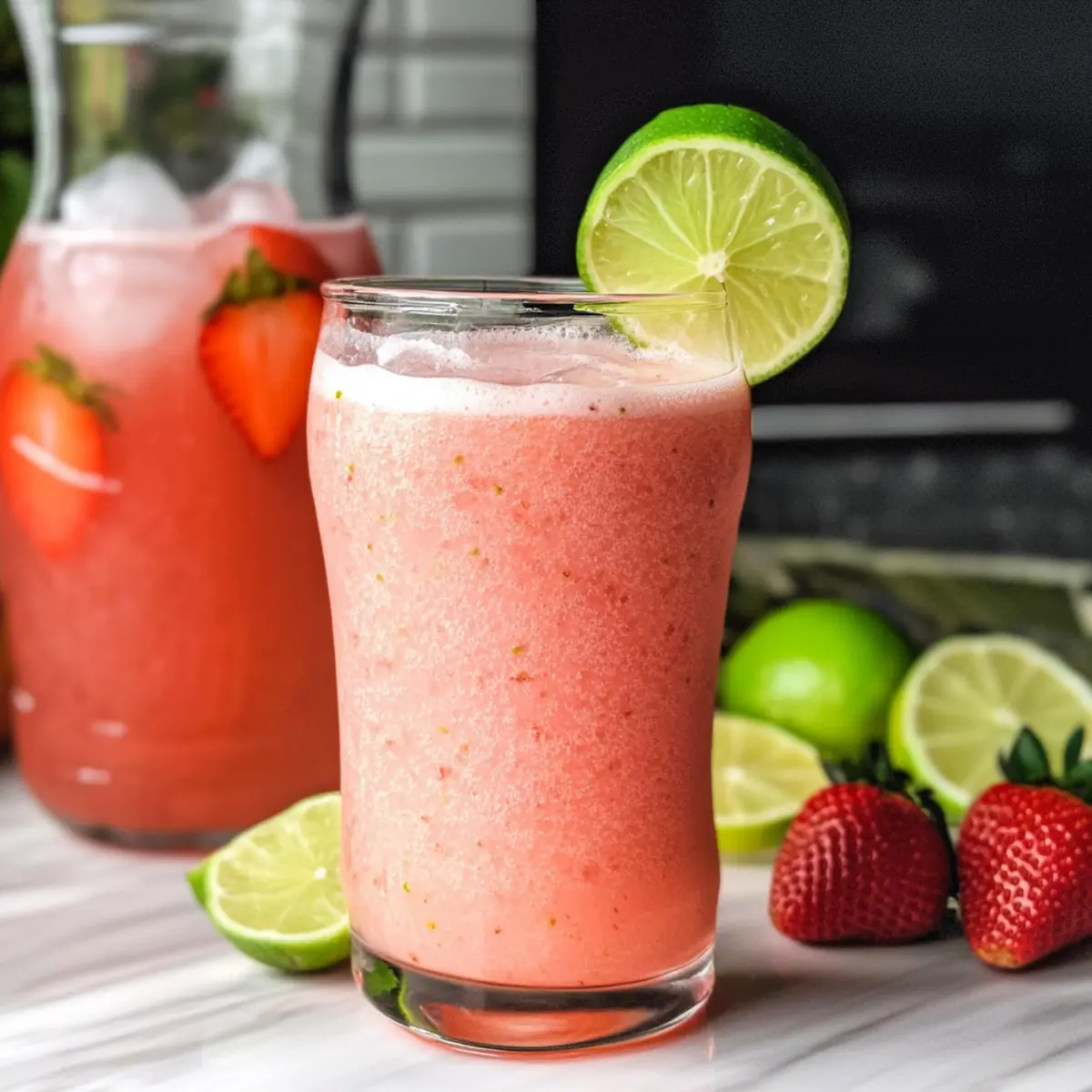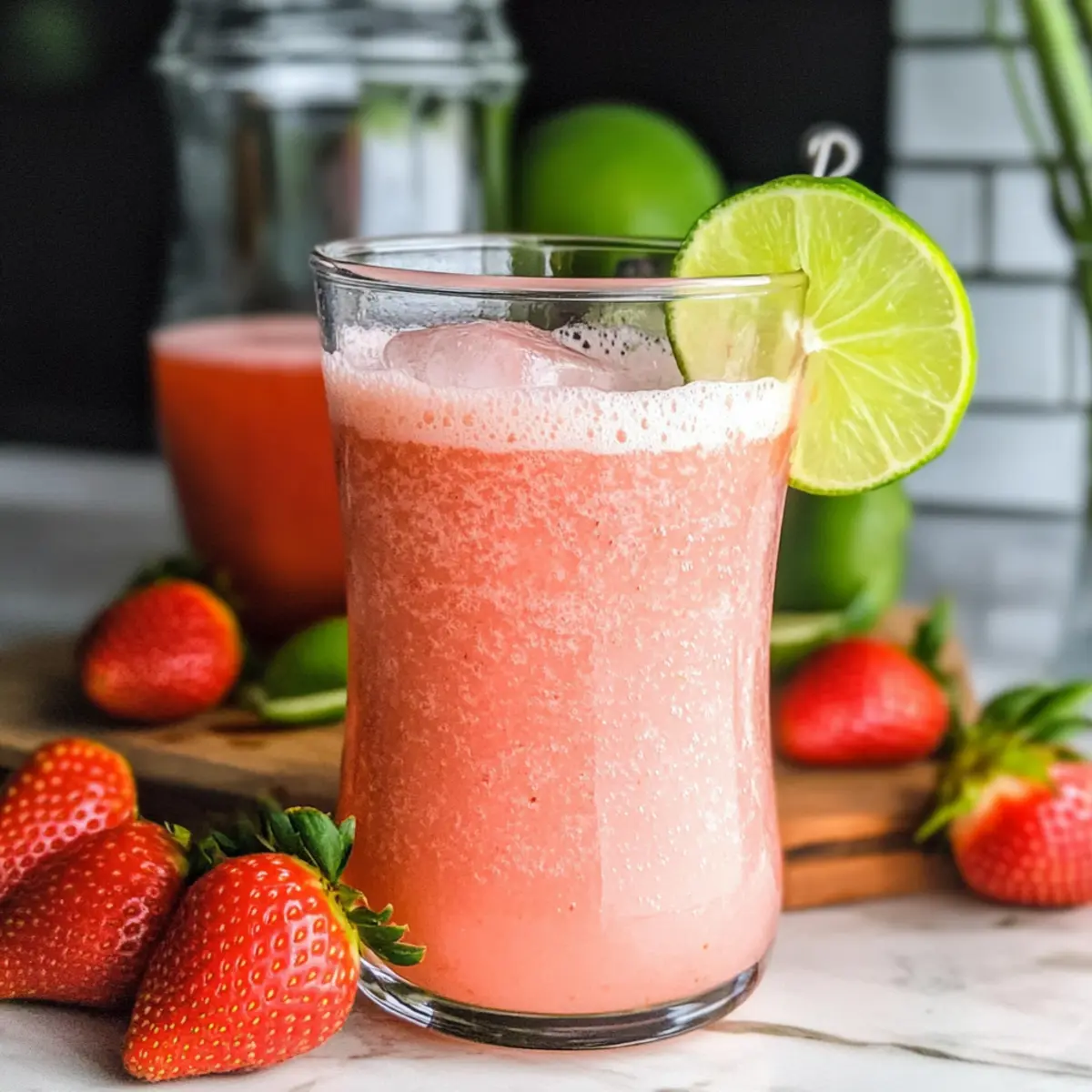 Jump to Recipe Print RecipeSummer afternoons in Brazil buzz with laughter and the clinking of glasses filled with vibrant drinks, and the star is often none other than Brazilian Limeade. With a delightful twist, I’ve added strawberries to the mix, creating a refreshing summer beverage that’s not only creamy but oh-so-easy to make. Imagine sipping on a glass of this Brazilian Limeade with Strawberries while the sun warms your skin; it’s like a taste of sunshine in every sip! Perfect for family cookouts or as a cooling treat on a hot day, this drink takes just 15 minutes to whip up, ensuring you spend less time in the kitchen and more time enjoying the moments that matter. Are your taste buds ready to dive into this fruity delight? Why is this drink a must-try? Refreshing and vibrant, this Brazilian Limeade with Strawberries is the ultimate summer beverage! Creamy sweetness from the condensed milk balances the tangy limes, making this drink irresistible. Quick to prepare, you can whip it up in just 15 minutes, leaving more time for fun in the sun. Versatile, try swapping in different berries for unique flavors! Whether it’s a backyard BBQ or a cozy family gathering, this drink is sure to impress, just like the beloved Caramelized Banana Cheesecake with Rum Glaze for dessert. Treat yourself to a refreshing taste of Brazil today! Brazilian Limeade with Strawberries Ingredients For the Limeade Base • Limes – Provides the tartness and zesty flavor; opt for smooth-skinned, semi-soft limes for juiciness. • Water – Acts as the essential liquid base, blending all the flavors seamlessly. For the Strawberry Blend • Strawberries – Introduces sweetness and vibrant color; both fresh or frozen varieties work beautifully. • Sweetened Condensed Milk – Gives creaminess and balances the lime’s tartness; substitute with coconut milk for a dairy-free alternative. • Ice – Enhances the chill factor; add more for a slushy texture. • Sugar – Sweetens the mix to your preference; feel free to adjust based on your taste. Enjoy making this creamy and fruity drink—your refreshing Brazilian Limeade with Strawberries awaits! Step‑by‑Step Instructions for Brazilian Limeade with Strawberries Step 1: Prepare the Limes Begin by washing and thoroughly drying 4 fresh limes. Using a sharp knife, cut each lime into 4 wedges. Place the lime wedges into a blender with 3 cups of cold water. Blend on high for about 30 seconds until the mixture is well combined and frothy, capturing all that zesty goodness for your Brazilian Limeade with Strawberries. Step 2: Strain the Lime Mixture Once blended, set a wire strainer over a clean container and pour the lime mixture through it. Gently press the mixture with a spatula to extract every drop of liquid while discarding the leftover lime rinds. You should be left with about 3 cups of vibrant, tart lime juice, ready to be mixed with the strawberries. Step 3: Blend the Strawberry Ingredients Return the strained lime juice to the blender. Add about 1 cup of fresh or frozen strawberries along with a generous handful of ice for a refreshing chill. Also, pour in 1 cup of sweetened condensed milk and 2 tablespoons of sugar, adjusting the sugar to your preferred sweetness level. Blend everything on high until the mixture is smooth and creamy, bringing your drink to life! Step 4: Serve and Store Once the Brazilian Limeade with Strawberries is blended to perfection, pour it immediately into tall glasses. If you’re not serving right away, store any leftover drink in the refrigerator for up to one day. Remember to stir it before serving, as the ingredients may separate over time. Enjoy this delightful drink as a refreshing treat to beat the heat! Expert Tips for Brazilian Limeade with Strawberries Maximize Flavor: Ensure to blend the limes thoroughly to extract the fullest flavor for your Brazilian Limeade with Strawberries. This enhances the tartness perfectly. Prevent Separation: Watch for ingredient separation after blending. Stir well before serving to keep a consistent texture and even flavor. Texture Control: Avoid freezing and thawing leftovers as it can ruin the creamy texture. Instead, consider making popsicles with any remaining drink! Mind the Sweetness: Adjust sugar levels based on personal taste. Start with less sugar and add more if needed to avoid an overly sweet beverage. Freshness Counts: Use fresh strawberries for the best flavor experience. If using frozen, allow them to thaw just enough to blend smoothly. Make Ahead Options These refreshing Brazilian Limeade with Strawberries are perfect for meal prep enthusiasts! You can prepare the lime base by blending the limes and water up to 24 hours in advance and store it in the refrigerator for maximum freshness. The strawberry blend can also be made and refrigerated, though it’s best to add the sweetened condensed milk just before serving to maintain its creamy texture. Additionally, you can slice your strawberries in advance to save time! When you’re ready to enjoy, simply mix the lime base with the strawberry blend and ice, and stir well before serving—your family will love this vibrant drink just as much as if you prepared it fresh! Brazilian Limeade with Strawberries Variations Feel free to get creative with this recipe and discover your own delightful twists! Lemonade Twist: Substitute limes with fresh lemons for a bright, citrusy lemonade-style drink. Berry Mix: Use a blend of berries like blackberries or raspberries for a colorful, mixed berry version, bursting with flavor. Minty Fresh: Add a handful of fresh mint leaves to the blender for a refreshing herbal note that complements the strawberries beautifully. Imagine sipping this cool beverage on a sunny day! Coconut Cream: Swap sweetened condensed milk for coconut milk and shredded coconut to add tropical flair and richness—perfect for beachy vibes. Sparkling Option: Replace still water with sparkling water for a fizzy finish that