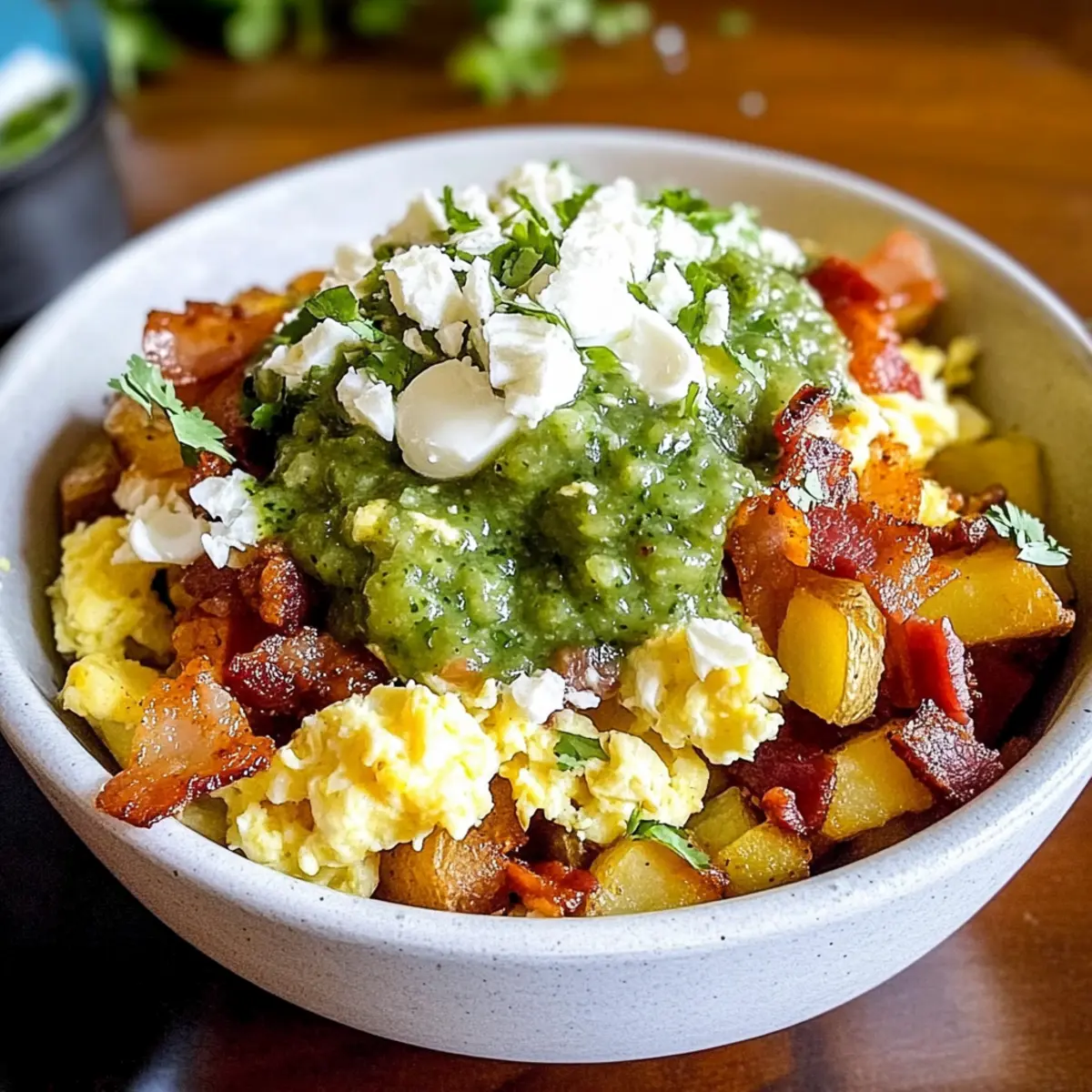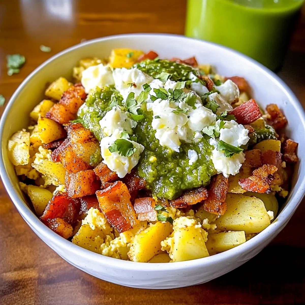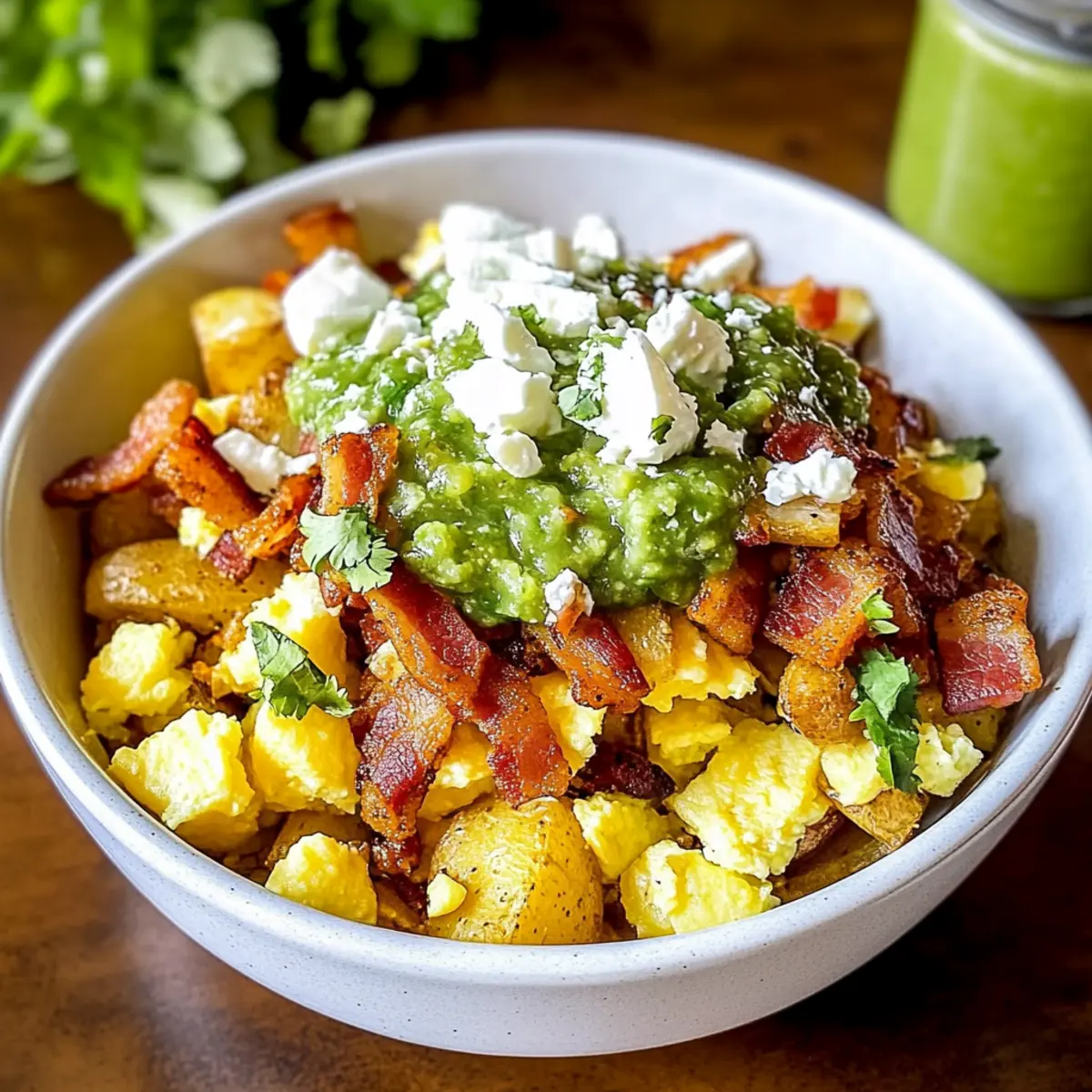 Jump to Recipe Print RecipeStuck in a breakfast rut? These Customizable Breakfast Burrito Bowls are your delicious escape! Imagine a brunch where crispy roasted potatoes meet fluffy scrambled eggs and savory bacon—each bite is an experience elevated by a vibrant, homemade Salsa Verde. The beauty of this recipe lies in its versatility, allowing you to swap in chorizo or even make it vegetarian with creamy avocado. Not only are these bowls a fun way to start your day, but they also promise fresh ingredients and easy assembly to fit your weekend routine perfectly. Plus, you’ll love how quickly they come together! Ready to give your mornings a tasty upgrade? Let’s dive into the delicious details! Why are Breakfast Burrito Bowls so Popular? Versatile and Customizable: Whether you love bacon, chorizo, or prefer a vegetarian option, these bowls let you customize each ingredient to your liking. Bursting with Flavor: The combination of crispy roasted potatoes, fluffy eggs, and zesty Salsa Verde creates a mouthwatering experience. Easy Assembly: This recipe simplifies breakfast-making, making it a breeze for weekend brunches or quick weekday meals. Perfect for Meal Prep: Leftovers can easily be stored, allowing you to enjoy them throughout the week. Plus, if you’re looking for more breakfast inspirations, try pairing these with a Tot Sausage Breakfast for variety! Breakfast Burrito Bowls Ingredients These customizable Breakfast Burrito Bowls come together with fresh ingredients that you can tailor to your taste! For the Base Potatoes – Provides a hearty base; feel free to substitute with any available potatoes like Yukon Gold. Eggs – Add protein and richness; more eggs can be included for larger servings. Bacon (or Chorizo) – Offers a savory, meaty flavor; for vegetarian options, substitute with creamy avocado. Cheese (Queso Fresco) – Adds creaminess and enhances flavor; feta can be swapped, or omit for a dairy-free dish. Cilantro – Provides fresh herbal flavor; simply omit if you’re not a fan. Lime – Adds acidity and brightness; lemon works in a pinch if lime isn’t available. Chile Powder (optional) – Offers a subtle spice; omit for a milder flavor. For the Salsa Verde Tomatillos (8-10) – The main component for Salsa Verde, providing delightful tartness; substitute with green tomatoes if needed. Onion (1/2) – Adds sweetness and depth; yellow or white onions work best for flavor. Cilantro (20-25 sprigs) – Enhances the freshness of the salsa; skip if you’re not a cilantro lover. Garlic (2 cloves) – Adds aromatic flavor; can be omitted for a milder salsa if desired. Jalapenos (1-2) – Introduces heat; adjust for spice preference or replace with serrano peppers for an extra kick. These ingredients come together to create your unforgettable Breakfast Burrito Bowls! Enjoy the flexibility of swapping out items to match your family’s preferences. Step‑by‑Step Instructions for Breakfast Burrito Bowls Step 1: Preheat the Oven Begin by preheating your oven to 400°F (200°C). This temperature is perfect for achieving crispy potatoes that will serve as the hearty base of your Breakfast Burrito Bowls. While the oven heats up, gather your baking sheet and prepare for the next steps. Step 2: Prepare the Potatoes Cube your potatoes into small, even pieces to ensure they cook uniformly. Toss them in a mixing bowl with olive oil, salt, and any desired seasonings until evenly coated. Spread the seasoned potato cubes in a single layer on a baking sheet, allowing them to roast evenly, which will take about 20 minutes. Step 3: Add the Protein and Tomatillos After 20 minutes of roasting, pull out the baking sheet and add the bacon pieces (or chorizo for a spicy kick) along with the de-husked tomatillos. The tomatillos will roast and caramelize, creating an essential component for your Salsa Verde. Return everything to the oven to bake for an additional 20 minutes. Step 4: Scramble the Eggs While the potatoes, bacon, and tomatillos are roasting, crack the eggs into a bowl and whisk them until well combined. In a skillet over medium heat, melt a tablespoon of butter, then pour in the eggs, stirring gently until they are fluffy and just set, which should take about 5 minutes. set the scrambled eggs aside, ready for the assembly. Step 5: Make the Salsa Verde Once everything is out of the oven, it’s time to blend your Salsa Verde. In a blender, combine the roasted tomatillos, diced onion, garlic, cilantro, and jalapenos. Blend until smooth, adjusting the taste with lime juice or salt if needed. This vibrant sauce will elevate your Breakfast Burrito Bowls with a fresh burst of flavor. Step 6: Assemble the Bowls It’s time to put your Breakfast Burrito Bowls together! In a serving bowl, start with a generous layer of the crispy roasted potatoes. Top this with fluffy scrambled eggs and your choice of bacon or chorizo. Then, drizzle the freshly made Salsa Verde over the top, followed by crumbled cheese, cilantro, and a squeeze of lime for that perfect zing! Step 7: Serve and Enjoy Present your beautifully assembled Breakfast Burrito Bowls to the table. Serve with extra lime wedges and additional Salsa Verde on the side for those who crave an extra kick. These bowls promise delightful flavors and textures in every bite, making them an excellent choice for a cozy breakfast or brunch! Breakfast Burrito Bowls Variations Feel free to get creative with these Breakfast Burrito Bowls, transforming them into your own culinary masterpiece! Vegetarian Twist: Omit bacon and chorizo, substituting with creamy avocado or black beans for a delicious plant-based option. This swap not only makes it vegetarian but also adds a creamy texture that pairs beautifully with the Salsa Verde. Spicy Kick: Add diced jalapeños or a sprinkle of cayenne pepper to elevate the heat level and ignite your taste buds. For those who love a bit of fire, this variation takes the flavor profile to new heights—just remem