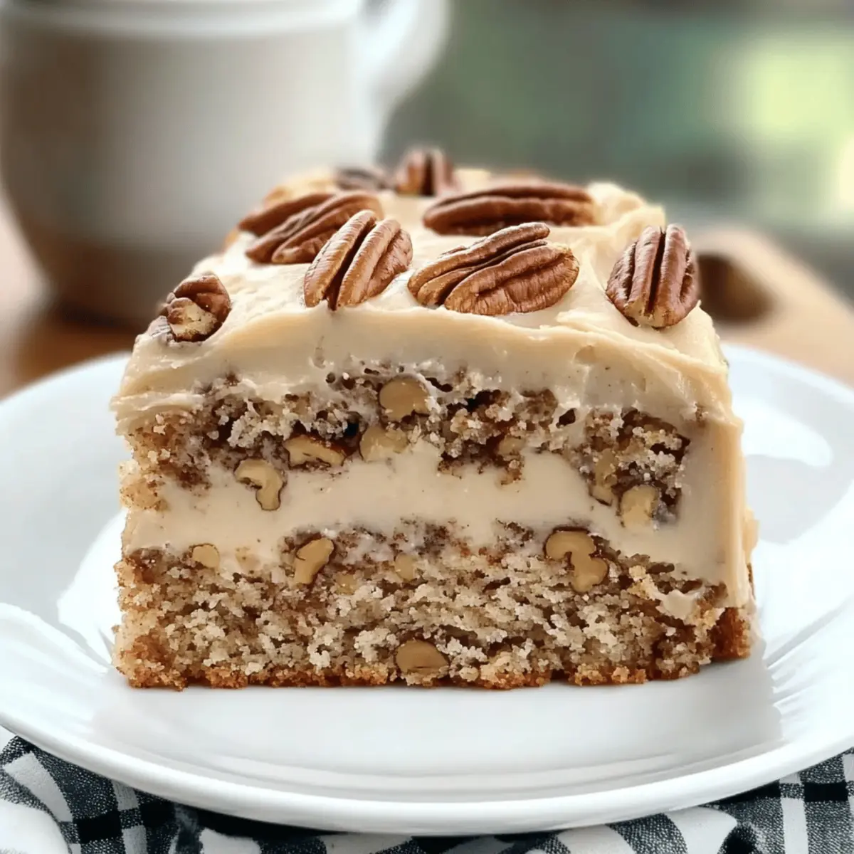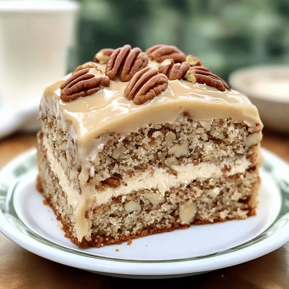 Jump to Recipe Print RecipeThe smell of toasted pecans and warm vanilla wafts through the air like a comforting hug, reminding me of Sunday family gatherings. That’s the magic behind my Butter Pecan Bliss Cake—a delightful, homemade dessert that promises to elevate any occasion. With its tender crumb and rich buttery flavor, this cake is simply a showstopper. One of the best things about this recipe is its quick preparation time, allowing you to whip up a delicious treat without hours in the kitchen. Plus, it’s finished with a creamy frosting that will leave your guests asking for seconds! Ready to indulge in this slice of comfort? Let’s dive into the recipe and create something unforgettable together! Why will you crave this cake? Buttery richness: The Butter Pecan Bliss Cake brings an unparalleled level of creaminess that keeps you coming back for more. Toasty pecan crunch: Toasted pecans add a delightful bite that perfectly complements the cake’s softness. Quick & easy: Whip it up in no time! This elegant dessert won’t keep you in the kitchen for hours. Versatile treat: Whether it’s a family gathering or a simple weekday dessert, this cake fits right in. Crowd-pleaser: It’s a dessert that appeals to everyone, ensuring your gatherings are filled with smiles! You may want to pair it with a scoop of ice cream or even serve it alongside Moist Strawberry Shortcake for an unforgettable dessert spread. Butter Pecan Bliss Cake Ingredients For the Cake Unsalted Butter (1 cup, 226g) – Provides moisture and richness; can be replaced with dairy-free butter for a dairy-free option. Chopped Pecans (1 1/2 cups, 180g) – Adds crunch and nutty flavor; walnuts can be substituted, but the taste will differ slightly. All-Purpose Flour (2 cups, 250g) – Gives structure to the cake; gluten-free flour mix may be used to adapt for gluten-free diets. Baking Powder (1 1/2 teaspoons) – Leavening agent for rise; ensure freshness for best results. Baking Soda (1/2 teaspoon) – Additional leavening to support rise; substitute with baking powder if unavailable. Salt (1/2 teaspoon) – Enhances overall flavor of the cake. Granulated Sugar (1 cup, 200g) – Sweetness and moisture; brown sugar can substitute for more depth of flavor. Brown Sugar (1/2 cup, 100g) – Adds caramel notes; can replace all sugar with granulated if preferred. Large Eggs (3) – Binds ingredients and adds moisture; vegan alternatives can include flax eggs. Vanilla Extract (1 tablespoon) – Provides depth of flavor; use pure extract for best results. Buttermilk (1 cup, 240ml) – Enhances moisture and tenderness; can substitute with sour cream or a dairy-free milk with vinegar. For the Frosting Unsalted Butter (1/2 cup, 113g) – Creates the creamy texture; substitute with dairy-free butter if necessary. Cream Cheese (4 oz, 113g) – Adds tanginess and richness; can swap for vegan cream cheese. Powdered Sugar (2–3 cups, 240–360g) – Sweetens and thickens the frosting; adjust to desired sweetness and thickness. Vanilla Extract (1 teaspoon) – Enhances the frosting’s flavor profile. Milk (1–2 tablespoons) – Adjusts frosting consistency; almond or oat milk may be used for dairy-free options. This Butter Pecan Bliss Cake ingredients list is your ticket to crafting a delightful homemade dessert that brings comfort and joy with every bite! Step‑by‑Step Instructions for Butter Pecan Bliss Cake Step 1: Preheat the Oven Begin by preheating your oven to 350°F (175°C). While the oven heats up, prepare your cake pans by greasing them with butter and lining the bottoms with parchment paper for easy removal. This simple step ensures that your Butter Pecan Bliss Cake bakes evenly and comes out perfectly when it’s time to serve. Step 2: Toast the Pecans In a medium skillet over medium heat, add 1½ cups of chopped pecans and sauté them for about 5–7 minutes, stirring frequently. Keep an eye on them as they become fragrant and lightly golden, enhancing their nutty flavor. Toasted pecans are a hallmark of the Butter Pecan Bliss Cake and will give your cake that extra crunch. Step 3: Brown the Butter In a small saucepan, melt 1 cup of unsalted butter over medium heat until it begins bubbling. Stir constantly for about 5 minutes until the butter turns golden brown and has a nutty aroma. Remove it from the heat and let it cool slightly before using it in the batter, as browned butter adds richness to the cake. Step 4: Combine Dry Ingredients In a large mixing bowl, whisk together 2 cups of all-purpose flour, 1½ teaspoons of baking powder, ½ teaspoon of baking soda, and ½ teaspoon of salt. This combination provides structure and lift for your Butter Pecan Bliss Cake. Set the dry ingredients aside while prepping the wet mixture to keep your batter light and fluffy. Step 5: Mix Wet Ingredients In a separate large bowl, beat the cooled browned butter with 1 cup of granulated sugar and ½ cup of brown sugar until the mixture is light and fluffy, about 3–4 minutes. Add in 3 large eggs one at a time, ensuring each egg is fully incorporated before adding the next. Finally, mix in 1 tablespoon of vanilla extract for added depth of flavor. Step 6: Combine Wet and Dry Ingredients Gradually add your dry ingredients to the butter-sugar mixture, alternating with 1 cup of buttermilk. Begin and end with the flour mixture, mixing gently until just combined. Be careful not to overmix! Fold in the toasted pecans, reserving a handful for topping the cake later, and prepare to pour the batter into your prepared pans. Step 7: Bake the Cake Divide the cake batter evenly between your prepared pans. Bake in the preheated oven for 25-30 minutes for round pans or 35-40 minutes for a 9×13 pan. The cakes are done when a toothpick inserted in the center comes out clean. Once baked, allow the cakes to cool in the pans for 10 minutes before transferring them to wire racks to cool completely. Step 8: Prepare the Frosting For the creamy frosting