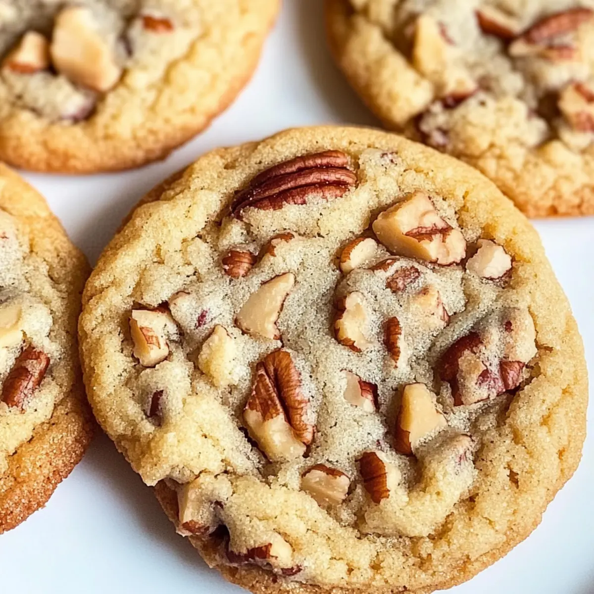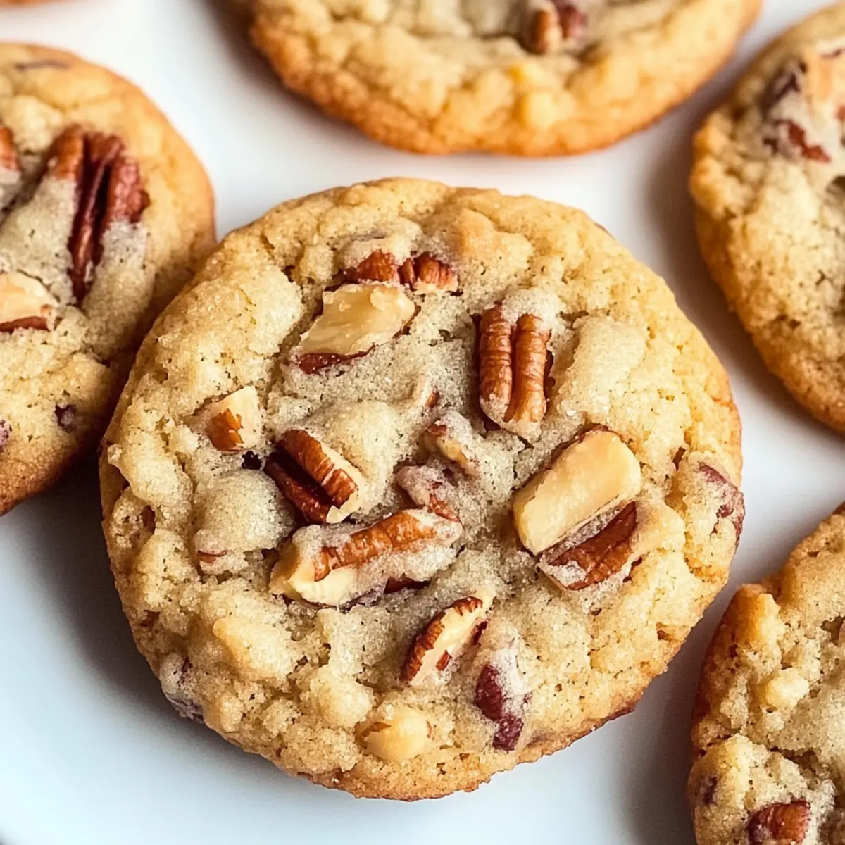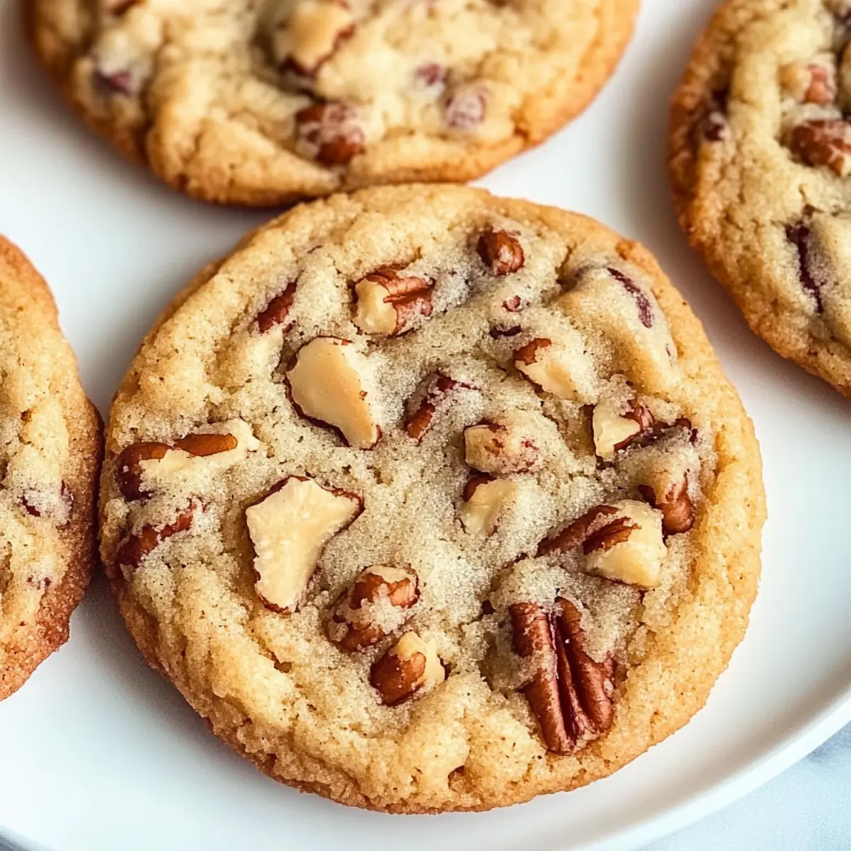 Jump to Recipe Print RecipeAs I stood in my kitchen, the sweet aroma of melting butter filled the air, transporting me to cozy holiday gatherings with family and friends. Today, I’m thrilled to share my recipe for Soft and Chewy Butter Pecan Cookies—a staple that combines rich, buttery goodness with the delightful crunch of toasted pecans. This recipe is not only a breeze to whip up using pantry staples, but it also promises to become a beloved addition to your seasonal baking repertoire. These cookies are perfect for satisfying your sweet tooth or impressing guests at your next festive get-together. So, are you ready to create warm memories one cookie at a time? Why are Butter Pecan Cookies irresistible? Irresistible Flavor: The rich butter and toasty pecans create a nostalgic taste that will transport you straight to your favorite holiday moments. Easy to Make: Using simple pantry ingredients, this recipe is perfect for both novice bakers and seasoned chefs looking for a quick treat. Soft and Chewy Texture: Each bite delivers a satisfying chew, making these cookies an ultimate comfort snack. Versatile Variations: Feel free to swap pecans for walnuts or even add chocolate chips for a delightful twist. For more variations, check out my Peanut Butter Banana recipe! Perfect for Sharing: Great for holiday cookie platters or as gifts, these cookies are sure to impress family and friends. Make-Ahead Friendly: You can bake a batch in advance and store them, ensuring you always have a treat ready to enjoy! Butter Pecan Cookies Ingredients • The delightful ingredients for your favorite holiday treat! For the Dough Unsalted Butter – Provides richness and flavor; use salted butter sparingly to maintain balance. Granulated Sugar – Sweetens the dough and contributes to the cookie’s structure. Brown Sugar – Adds moisture and a deeper flavor; can be replaced with extra granulated sugar if needed. Eggs – Binds the ingredients and creates a tender texture in your Butter Pecan Cookies. Vanilla Extract – Elevates the flavor; opt for pure extract for the best results. All-Purpose Flour – The main structural component; accuracy in measurement avoids dry cookies. Cinnamon Powder – Adds warmth and spice; feel free to adjust or omit according to taste. Cornstarch – Enhances softness and chewiness; adding a bit more can increase chewiness. Baking Soda and Baking Powder – Essential for leavening, ensuring your cookies achieve that perfect texture. For the Crunch Chopped Pecans – Introduces a delightful crunch; you may substitute with walnuts or almonds for a different nutty flavor. Optional Toffee Bits – Adds extra sweetness and texture for those who enjoy a sweeter treat. Step‑by‑Step Instructions for Butter Pecan Cookies Step 1: Cream Butter and Sugars In a large mixing bowl, begin by creaming together 1 cup of melted unsalted butter, 1 cup of granulated sugar, and 1 cup of brown sugar. Use an electric mixer on medium speed for about 2-3 minutes, until the mixture is light and fluffy. The sugars should dissolve partially, creating a smooth and pale base for your Butter Pecan Cookies. Step 2: Add Wet Ingredients Next, incorporate 2 large eggs and 2 teaspoons of vanilla extract into the butter mixture. Beat on low speed until fully combined, which should take about 1 minute. The batter should look glossy and smooth, signaling that it’s ready for the dry ingredients. Step 3: Combine Dry Ingredients In a separate bowl, whisk together 3 cups of all-purpose flour, 1 teaspoon of cinnamon, 1 tablespoon of cornstarch, 1 teaspoon of baking soda, and ½ teaspoon of baking powder. Gradually add this dry mixture to the wet ingredients, mixing on low speed for about 30 seconds just until combined. Avoid overmixing to keep your Butter Pecan Cookies tender and chewy. Step 4: Fold in Pecans Gently fold in 1 ½ cups of chopped pecans and, if desired, 1 cup of optional toffee bits using a spatula. Carefully mix until evenly distributed throughout the dough. This should take about 1 minute, ensuring that the nuts and toffee bits are well incorporated without overworking the dough. Step 5: Chill Dough Cover the bowl with plastic wrap and refrigerate the cookie dough for 30-45 minutes. This chilling step is crucial: it helps reduce spreading during baking and enhances the flavors. You can prepare your baking sheets with parchment paper while the dough is chilling. Step 6: Shape Cookies Once chilled, use a cookie scoop or tablespoon to portion out the dough and roll each portion into a ball. Optionally, roll the balls in granulated sugar for a sweet finish. Lay the cookie dough balls on the prepared baking sheets, spacing them about 2 inches apart for optimal spreading. Step 7: Prep for Baking Preheat your oven to 350°F (175°C) while shaping the cookies. Arrange the baking sheets in the oven once it’s fully preheated. This temperature ensures a nice, golden edge while keeping the center soft and chewy, which is what you want for your Butter Pecan Cookies. Step 8: Bake Bake the cookies in your preheated oven for 11-14 minutes, or until the edges are lightly golden. Keep an eye on them—they should be slightly puffy and may look underbaked in the center. Remove them promptly to avoid over-baking. Step 9: Cool Let the cookies cool on the baking sheet for 5-7 minutes before transferring them to a wire rack. This cooling period allows the cookies to set, especially if they look puffy. If desired, gently press down the centers for a flatter finish, and enjoy your freshly baked Butter Pecan Cookies! How to Store and Freeze Butter Pecan Cookies Room Temperature: Store your Butter Pecan Cookies in an airtight container at room temperature for up to one week to maintain their soft and chewy texture. Fridge: For extended freshness, you can refrigerate the cookies in an airtight container for up to two weeks, but note they may lose some of their original softness. Freezer: Freeze cookies in a single laye