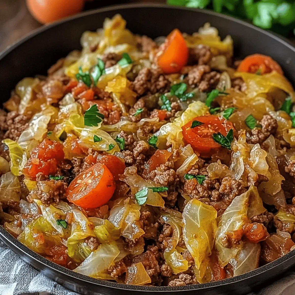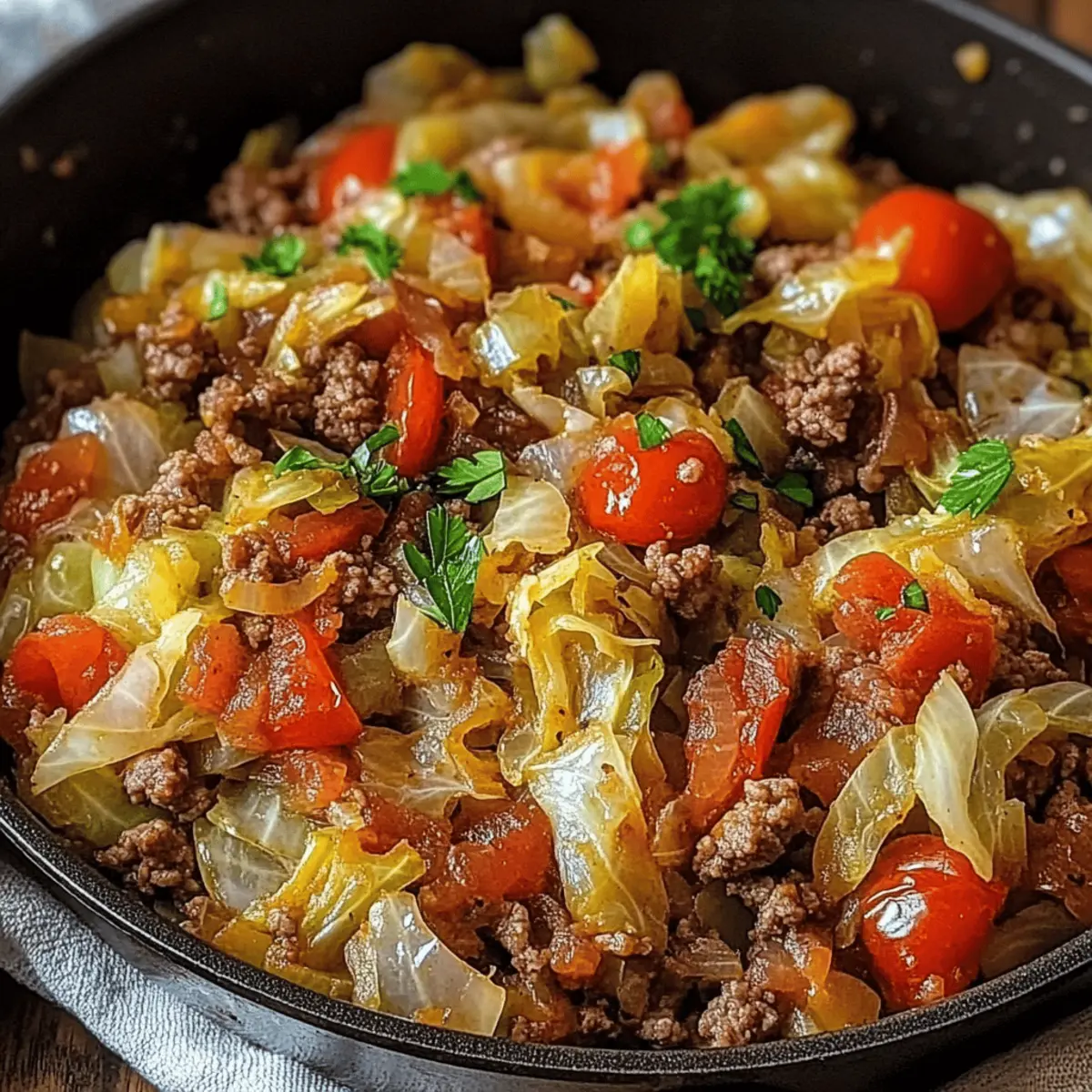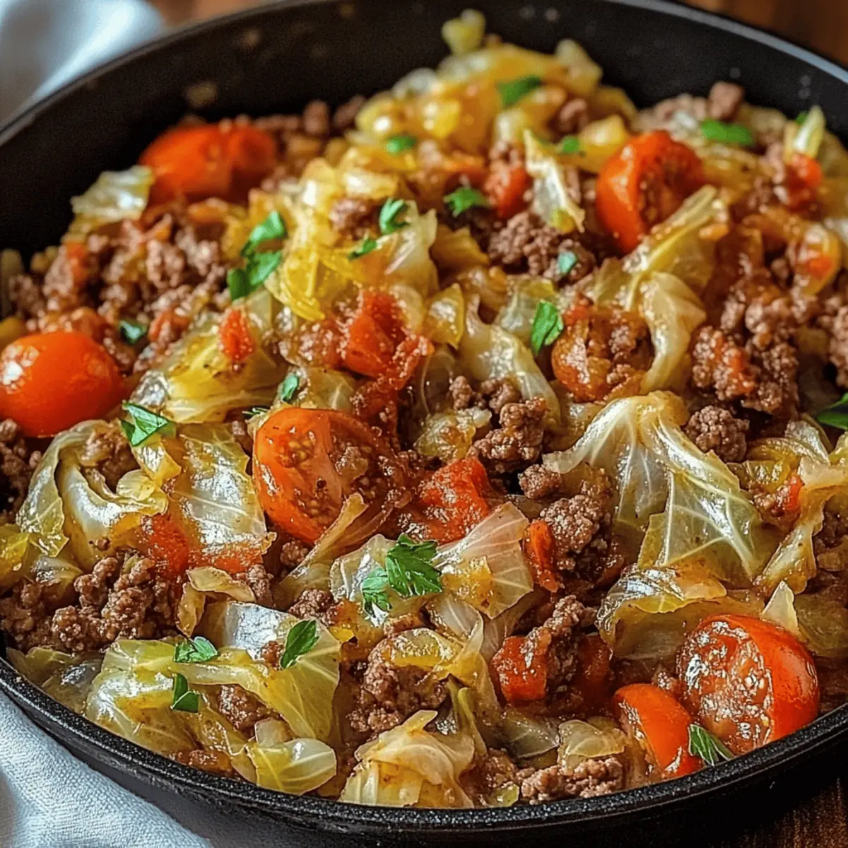 A comforting Cabbage and Ground Beef dish that embodies warmth and nostalgia, perfect for busy weeknight dinners.