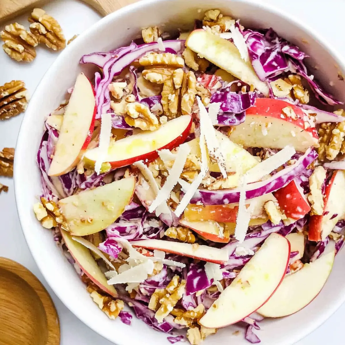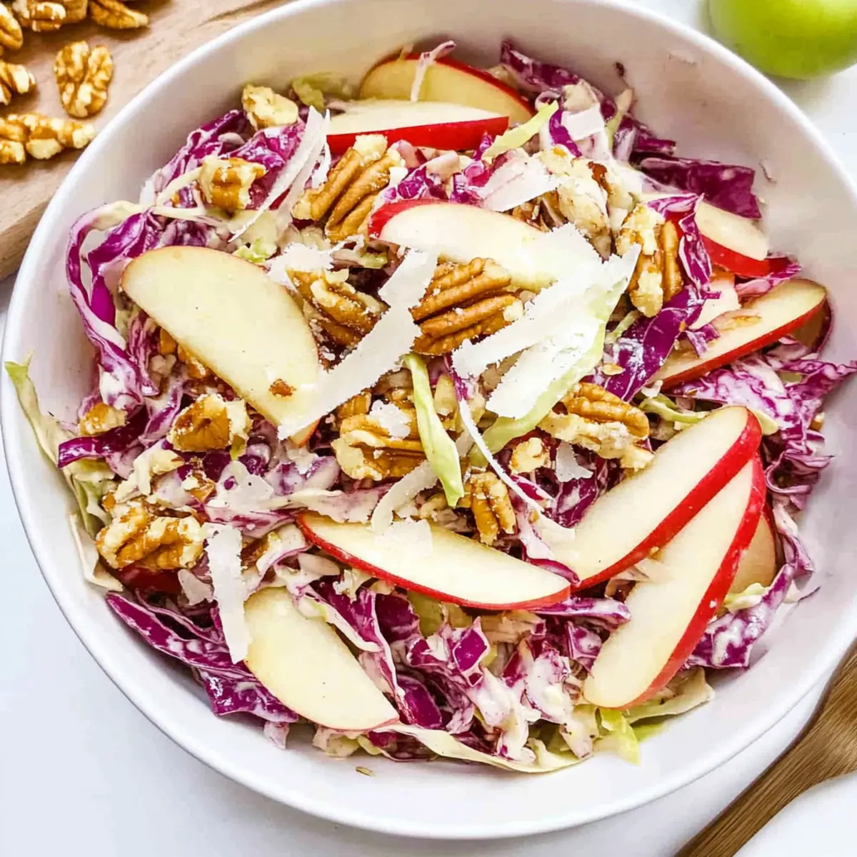 Jump to Recipe Print RecipeAs I chopped through the vibrant green cabbage, memories of summer picnics flooded back. There’s something undeniably refreshing about a Cabbage Apple Salad that makes it the perfect burst of flavor on a hot day. This easy salad recipe combines crisp apples with finely sliced cabbage and toasty walnuts, all enhanced by the richness of parmesan cheese. Not only is this salad gluten-free and vegetarian, but it’s also a fantastic option for those hectic weeknights when you crave something healthy yet satisfying. With its crunchy texture and tangy honey mustard dressing, it serves as a delightful side to any meal or a quick lunch that doesn’t skimp on flavor. Ready to experience a salad that truly satisfies? Let’s dive into this delicious recipe! Why is This Cabbage Apple Salad Special? Vibrant Colors: The mix of green and red cabbage paired with crunchy apples creates a feast for the eyes. Bursting with Flavor: Sweet apples, toasty walnuts, and rich parmesan come together for a taste that’s as delightful as it is memorable. Quick and Easy: Perfect for busy weeknights, this salad can be whipped up in under 15 minutes! Versatile: Whether as a side for grilled meats or on its own, it shines in any setting. You can even customize it with additions like quinoa for a heartier meal! Healthy Indulgence: Gluten-free, vegetarian, and around 175 calories per serving, it’s a delicious way to nourish your body, making it a great complement to recipes like Roasted Carrot Salad or a refreshing Watermelon Cucumber Salad. Get ready to bring delicious crunch to your dining table! Cabbage Apple Salad Ingredients For the Salad • Cabbage – Provides a crunchy base; mix green and red for vibrant color and added nutrition. • Apples – Adds sweetness and texture; choose varieties like Gala or Honeycrisp for optimal flavor. • Walnuts – Offers nuttiness; toasting enhances their flavor, or swap for pecans for a different taste. • Parmesan Cheese – Adds savory depth; opt for shaved for a delicate touch or substitute with crumbled cheddar if preferred. For the Dressing • Extra Virgin Olive Oil – Acts as the base for the dressing; its fruity flavor elevates the salad. • Apple Cider Vinegar – Provides the perfect acidity and brightness to balance the sweetness of the apples. • Honey – Adds a touch of sweetness to unify flavors; consider adjusting to taste. • Dijon Mustard – Introduces depth and a slightly spicy kick; it pairs perfectly with the other ingredients. • Salt & Freshly Cracked Black Pepper – Essential for enhancing all flavors; adjust to your liking. Elevate your meals with this delightful Cabbage Apple Salad that is not only easy to make but also a healthy addition to your dining table! Step‑by‑Step Instructions for Cabbage Apple Salad Step 1: Prepare the Cabbage Start by removing the outer leaves of the cabbage, ensuring it’s fresh and clean. Cut the cabbage in half, then finely slice each segment into thin ribbons, creating a crunchy base for your Cabbage Apple Salad. Place the sliced cabbage in a large salad bowl where all the flavors can come together beautifully. Step 2: Slice the Apples Quarter the selected apples, removing the core as you go. Slice the apples into ¼-inch thick pieces or dice them for a more varied texture. The sweet crunch of the apples will add a delightful contrast to the cabbage, so add them directly into the bowl with the cabbage to maintain their freshness. Step 3: Toast the Nuts Heat a skillet over medium heat and add the walnuts or pecans. Toast for about 5 minutes, stirring occasionally, until they become fragrant and golden, which enhances their rich flavor. Once toasted, remove them from the pan and allow them to cool slightly before chopping and adding them to the salad, reserving a few for garnishing. Step 4: Make the Dressing In a jar, combine the extra virgin olive oil, apple cider vinegar, honey, Dijon mustard, and a generous pinch of salt and pepper. Secure the lid and shake vigorously until all the ingredients are well emulsified into a creamy dressing. This dressing will bring the Cabbage Apple Salad to life with its tangy-sweet balance. Step 5: Assemble the Salad Add half of the shaved parmesan cheese to the bowl with the cabbage, apples, and nuts. Drizzle the homemade dressing over the salad and use tongs to toss everything together gently, ensuring an even distribution of flavors. Allow the salad to rest for about 10 minutes to let the ingredients mingle and infuse their tastes. Step 6: Garnish and Serve Just before serving, top the Cabbage Apple Salad with the reserved toasted nuts and the remaining parmesan cheese. This final touch not only adds a beautiful presentation but also extra flavor and crunch. Serve immediately and enjoy the vibrant, fresh taste of your creation! Storage Tips for Cabbage Apple Salad Fridge: Store any leftovers in an airtight container in the refrigerator for up to 2 days to maintain freshness. Preparation: It’s best to assemble the salad on the day of serving for optimal texture. If you have leftover dressing, keep it separate until you’re ready to serve. Room Temperature: Avoid leaving the salad out for more than 2 hours, as the freshness of the ingredients can diminish quickly. Reheating: Since the Cabbage Apple Salad is best enjoyed cold, no reheating is necessary. Simply toss the salad again and enjoy it chilled! Expert Tips for Cabbage Apple Salad Choose Fresh Produce: Use the freshest cabbage and crisp apples to ensure maximum flavor and crunch in your Cabbage Apple Salad. Mind the Timing: Chop apples just before serving to prevent browning and maintain their refreshing texture throughout the meal. Toast Nuts Carefully: Keep an eye on the walnuts while toasting; a few extra seconds can make the difference between perfectly toasted and burnt. Adjust the Dressing: Don’t hesitate to tweak the dressing ingredients to suit your taste; balance sweetnes