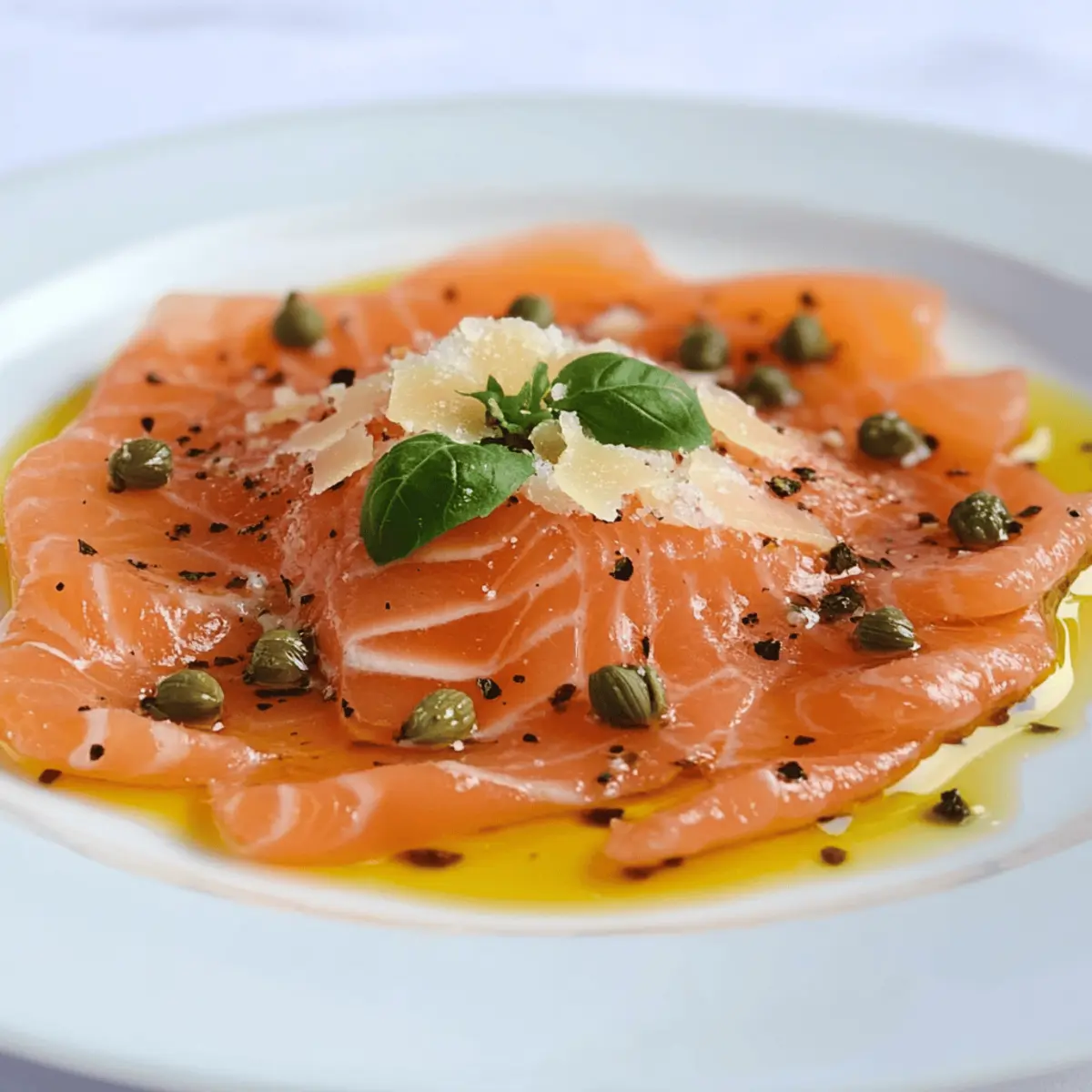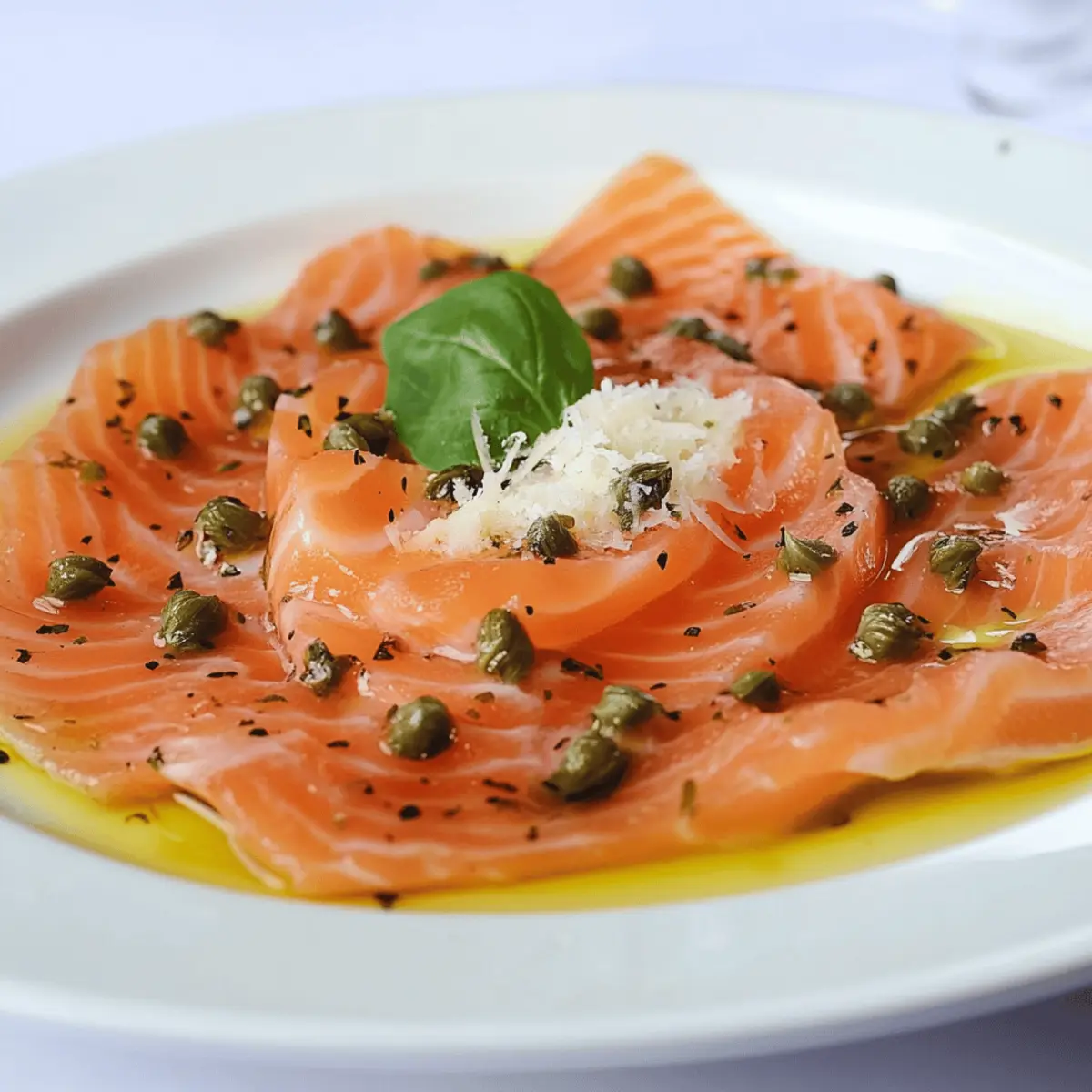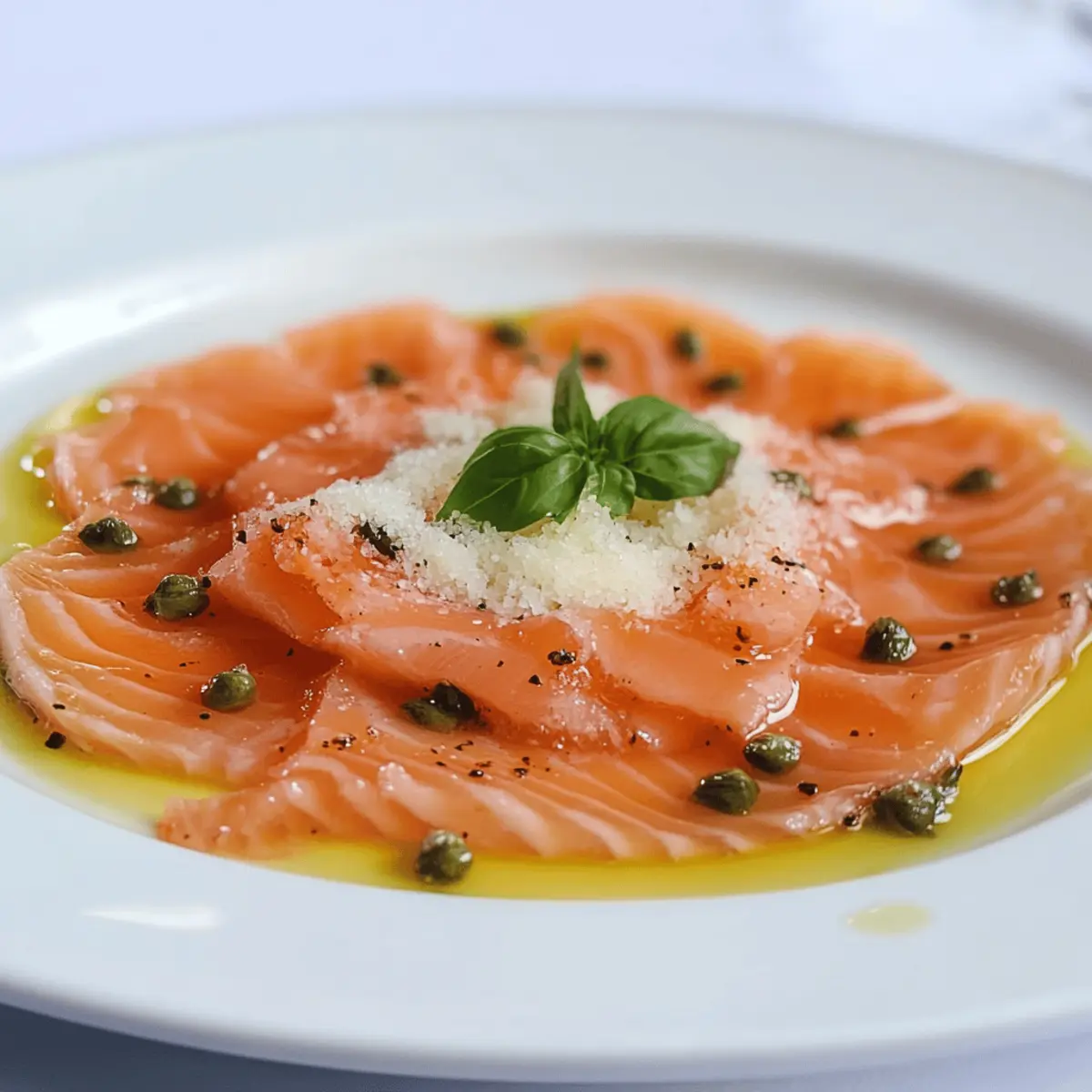 Jump to Recipe Print RecipeAs I savored my first bite of Carpaccio de Salmón, my taste buds danced with joy, transported to an elegant Italian bistro where the air buzzed with laughter and delight. This healthy dish, showcasing the delicate beauty of raw salmon, not only offers a melt-in-your-mouth experience but also boasts an array of nutritional benefits that can support your wellness journey. With just a few simple steps, you can impress your family and friends without spending hours in the kitchen. Whether you’re hosting a dinner party or simply rewarding yourself with a luxurious meal, this Salmon Carpaccio is the perfect balance of sophistication and ease. Are you ready to elevate your culinary game and explore the rich history behind this dish? Let’s dive in! Why Is Salmon Carpaccio So Special? Simplicity at its finest: With just a few ingredients, this dish is incredibly easy to prepare, making it ideal for both novice cooks and seasoned chefs. Delicate flavors harmonize beautifully: The fresh salmon combined with olive oil and Parmesan creates a symphony of taste that is simply irresistible. Healthy indulgence: Packed with omega-3s, this dish supports heart health while being low-carb and high-protein. Serve it chilled: Perfect as an elegant starter for any gathering, your guests will be impressed by its stunning presentation. If you’re looking for more unique ideas, try variations like beet carpaccio for a vegetarian twist! Carpaccio de Salmón Ingredients • Elevate your dish with these essentials! For the Carpaccio • Fresh Salmon – Select sushi-grade salmon for the best flavor and safety. • Olive Oil – Extra virgin olive oil enhances the richness of the salmon. • Parmesan Cheese – This adds a nutty contrast; you can substitute with Pecorino for a bolder taste. For the Flavor Boost • Truffle Oil (optional) – A touch of truffle oil provides a luxurious aroma; swap with lemon juice for a lighter kick. • Capers (optional) – Use capers for a briny balance; feel free to leave them out if you prefer a milder flavor. With these ingredients, you’re on your way to creating a delightful Carpaccio de Salmón that’s sure to impress! Step‑by‑Step Instructions for Carpaccio de Salmón Step 1: Freeze the Salmon Begin by placing the fresh, sushi-grade salmon in the freezer for about 30-45 minutes. This slight freezing will firm up the fish, making it easier to slice thinly. You’re looking for a consistency where it’s firm but not completely frozen solid, as this will allow for the perfect texture when cutting. Step 2: Slice the Salmon Once the salmon is firm, take it out of the freezer and use a sharp knife for slicing. Thinly cut the salmon into strips, aiming for a thickness of about 1/8 inch. The goal is to create translucent slices that will beautifully showcase the vibrant color of the fish in your Carpaccio de Salmón. Step 3: Arrange the Slices Next, take a chilled platter and arrange the salmon slices in a slightly overlapping pattern. This presentation not only looks elegant but also allows for even distribution of flavors when drizzled with ingredients later. A chilled platter will help keep your Carpaccio de Salmón fresh and visually appealing. Step 4: Add Olive Oil and Cheese Drizzle extra virgin olive oil generously over the arranged salmon, ensuring each piece is lightly coated. Then, sprinkle freshly grated Parmesan cheese evenly on top, allowing the salty notes of the cheese to contrast with the rich salmon flavors. The olive oil should enhance the dish’s overall creaminess, creating a delightful mouthfeel. Step 5: Enhance with Optional Ingredients For an extra touch of luxury, add a few droplets of truffle oil over the Carpaccio de Salmón, if using. Alternatively, for a refreshing twist, consider squeezing some fresh lemon juice instead. This will elevate the dish’s flavor profile, adding acidity to balance the richness of the salmon and oil. Step 6: Garnish and Serve Finally, garnish your Carpaccio de Salmón with capers, if you prefer that briny kick, and perhaps some fresh herbs for color. Serve immediately on the chilled platter to keep the slices looking fresh and appetizing. Enjoy this elegant dish right away, allowing the flavors and textures to shine through! How to Store and Freeze Carpaccio de Salmón Fridge: Store leftover Carpaccio de Salmón in an airtight container in the refrigerator for up to 2 days. To maintain freshness, cover tightly to avoid drying out. Freezer: While it’s best enjoyed fresh, you can freeze the salmon before slicing. Wrap the salmon tightly in plastic wrap, then in aluminum foil, and freeze for up to 3 months. Reheating: If you’ve frozen the salmon, thaw it overnight in the refrigerator. However, avoid reheating after assembling; Carpaccio is best served cold for optimal taste and texture. Make-Ahead Tip: This dish can be prepped 1-2 hours in advance. Assemble just before serving to preserve the quality of the Carpaccio de Salmón. Expert Tips for Carpaccio de Salmón Sharp Knife: Ensure your knife is very sharp to achieve even, thin slices of salmon, which are key for enjoyment and texture. Quality Matters: Always choose sushi-grade salmon for this dish to guarantee quality and safety in raw consumption; freshness is crucial. Seasoning Caution: Be careful with the seasoning; the natural flavors of the salmon should be the star, so keep it light with olive oil and cheese. Chill for Freshness: Serve the Carpaccio de Salmón immediately and keep it chilled before serving to maintain its fresh appearance and texture. Presentation Picture-Perfect: Arrange the salmon slightly overlapping in a decorative manner on the platter to create an elegant and eye-catching presentation. Carpaccio de Salmón Variations & Substitutions Feel free to get creative with your Salmon Carpaccio—there are delightful ways to customize it! Dairy-Free: Swap Parmesan cheese with nutritional yeast for a cheesy flavor 