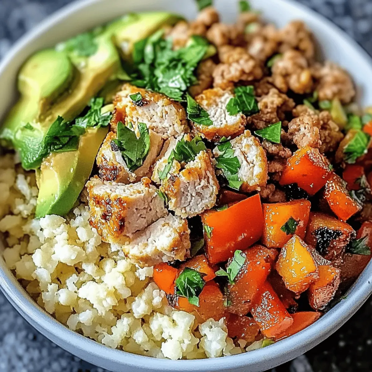 Jump to Recipe Print RecipeAs I chopped the cauliflower into florets, a wave of excitement washed over me. That simple transformation, turning humble veggies into a delightful Cauliflower Rice Turkey Bowl, always brings a hint of magic to my kitchen. This dish is a vibrant fusion of flavors, combining the health benefits of cauliflower rice with tender ground turkey, making it an ideal choice for busy weeknights. You’ll love how quick it is to prepare, alongside the satisfaction of offering your family a meal that’s not only guilt-free but surprisingly filling! With customizable veggies and spices, you can make it your own while ensuring even the pickiest eaters enjoy their greens. How will you personalize your bowl today? Why is Cauliflower Rice Turkey Bowl a must-try? Nutrient-Dense: Packed with vitamins, this dish utilizes cauliflower rice to deliver your daily nutrients while keeping it low-carb. Quick Prep Time: Perfect for busy cooks, whip this up in under 30 minutes! Versatile Flavors: Customize with your favorite spices or vegetables; it’s delicious with added spinach or sweet bell peppers. Guilt-Free Comfort: This bowl serves up all the comfort without the carbs, satisfying cravings without the guilt. Meal Prep Friendly: Ideal for planning ahead, it stores beautifully for quick lunches throughout the week. Elevate your meal prep game with this Ground Turkey Stuffed recipe for a delightful variety! Cauliflower Rice Turkey Bowl Ingredients • Dive into this wholesome dish with vibrant and nutritious components. For the Base Cauliflower Rice – A low-carb alternative to traditional rice; fresh or frozen works beautifully. Ground Turkey – Lean protein that absorbs flavors; feel free to swap it with ground chicken or beef for variety. For the Veggies Bell Peppers – They add color and sweetness, bringing a delightful crunch; zucchini or carrots can be great substitutes. Onion – This aromatic staple brings depth to the flavor; shallots or green onions work well if you’re out of onions. Garlic – Enhances the savory taste; use garlic powder if you want a quicker option. For Cooking Olive Oil – Ideal for sautéing, this adds richness; you can replace it with avocado oil for a higher smoke point. For Flavor Seasoning (Salt, Pepper, Paprika, etc.) – Key to elevating the taste; adjust per your preference for the ultimate Cauliflower Rice Turkey Bowl. Fresh Herbs (optional) – Brightens up the dish; use parsley, cilantro, or basil to add a fresh twist. Be ready to whip up this nutritious bowl that brings together health and flavor, ensuring a satisfying meal for the whole family! Step‑by‑Step Instructions for Cauliflower Rice Turkey Bowl Step 1: Prep the Ingredients Begin by chopping a head of cauliflower into florets. Pulse these in a food processor until they resemble rice grains, ensuring a light and fluffy texture. Dice the bell peppers and onion, then mince the garlic. Lay out your ingredients for quick access, setting the stage for a smooth cooking process with your vibrant Cauliflower Rice Turkey Bowl. Step 2: Cook the Turkey In a large skillet, heat 1 tablespoon of olive oil over medium heat. Once the oil shimmers, add the diced onion and sauté for about 3-4 minutes, until it turns translucent and fragrant. Next, stir in the minced garlic and bell peppers; after 2 minutes, add the ground turkey. Cook and stir for approximately 5-7 minutes until the turkey is browned and cooked through, with an internal temperature of at least 165°F. Step 3: Combine Once the turkey is fully cooked, introduce the prepared cauliflower rice to the skillet. Sprinkle in your preferred seasonings, like salt, pepper, and paprika for depth. Stir everything together, cooking for an additional 5-7 minutes, allowing the cauliflower rice to soften and absorb the flavors. The finished mixture will appear tender yet still colorful, making for a delightful Cauliflower Rice Turkey Bowl. Step 4: Serve Taste and adjust the seasoning as needed for your ideal flavor. Once satisfied, serve the Cauliflower Rice Turkey Bowl hot, optionally garnished with fresh herbs like parsley or cilantro for a burst of color and freshness. Enjoy this heartwarming dish as a nourishing meal for you and your family, and relish the satisfaction of homemade goodness! Expert Tips for Cauliflower Rice Turkey Bowl Dry the Cauliflower: Ensuring that your cauliflower is completely dried after processing prevents a soggy rice texture, enhancing the overall experience of your Cauliflower Rice Turkey Bowl. Marinate for Flavor: For deeper flavor, consider marinating the turkey for an hour prior with your favorite spices; this ensures each bite is packed with deliciousness. Avoid Overcrowding: When cooking, avoid overcrowding the skillet. This helps to achieve a nice browning of the turkey, preventing steaming and maintaining a perfect texture. Customizable Veggies: Make it your own by adding or substituting different veggies like spinach, zucchini, or even some chili flakes for a kick; versatility is key! Store Right: To keep leftovers fresh, store the Cauliflower Rice Turkey Bowl in an airtight container for up to 3 days; reheat gently to maintain that delightful texture. Cauliflower Rice Turkey Bowl Variations Feel free to add your personal touch to this versatile dish, transforming each bowl into a unique masterpiece that delights the senses! Veggie Boost: Incorporate additional vegetables like spinach or broccoli for extra nutrients. These greens not only enhance the health factor but also add a splash of color to your bowl. Plant-Based Alternative: Swap ground turkey for lentils or chickpeas to create a hearty vegetarian option. It provides a similar texture while remaining filling and satisfying. Spicy Kick: Sprinkle chili powder or cumin for a Tex-Mex flair that jazzes up the flavors. This twist can transport your taste buds to a whole new flavor profile! Creamy Contrast: Top with avocado slices or a dollop of Greek 