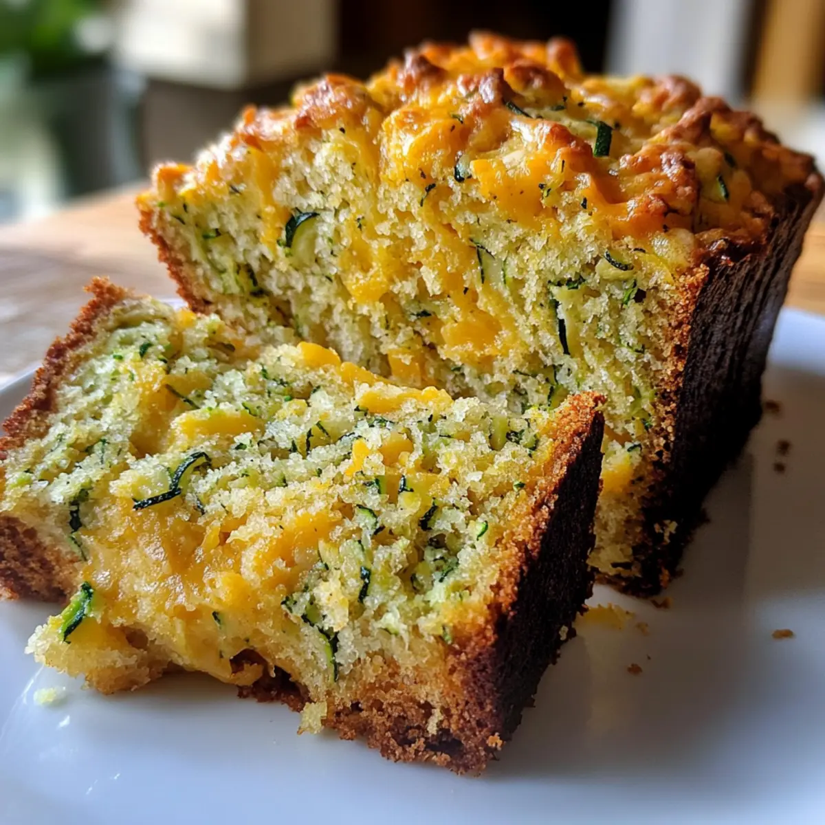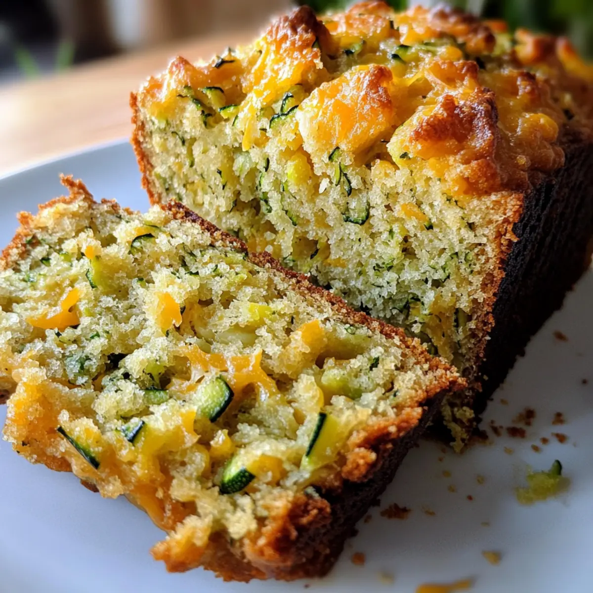 Jump to Recipe Print RecipeAs the aroma of freshly baked bread wafts through the air, I can’t help but feel a warm rush of comfort and nostalgia. Today, I’m thrilled to share my recipe for Savory Cheddar Zucchini Bread, a unique take that beautifully marries the sharp taste of cheddar with the moistness of fresh zucchini. Unlike traditional sweet zucchini breads, this savory delight is not just a side—it can take center stage at any meal. With minimal prep time and the ability to please even the pickiest eaters, it’s perfect for snacking, pairing with soup, or simply enjoying warm with a pat of butter. Are you ready to elevate your bread game with this creamy, cheesy twist? Let’s dive in! Why is this Zucchini Bread Special? Savory Twist: This isn’t your typical sweet loaf—this Cheddar Zucchini Bread offers a delightful savory flavor that’s sure to impress everyone at the table. Moist and Flavorful: The combination of fresh zucchini and sharp cheddar creates a wonderfully moist texture that you won’t be able to resist! Quick Prep: With minimal prep time, this recipe is perfect for those busy days when you still want something homemade. Versatile Pairing: Enjoy it warm with butter, or serve it as an irresistible side alongside a bowl of Cheddar Garlic Herb Potato Soup. Crowd-Pleaser: Whether you’re hosting a gathering or just treating yourself, this savory bread will satisfy even the fussiest eaters! Make-Ahead Friendly: This bread stores well, so you can bake ahead and have a delicious snack ready whenever you’re craving something comforting. Cheddar Zucchini Bread Ingredients For the Bread All-Purpose Flour – Provides structure for the bread; substitute whole wheat for a heartier texture. Baking Powder – Acts as a leavening agent for rise; ensure it’s not expired for best results. Baking Soda – Works with the baking powder to achieve the perfect texture; check the expiration date. Salt – Enhances the dish’s flavor; consider using sea or kosher salt if preferred. Ground Mustard – Adds a subtle tang; for a bolder taste, try Dijon mustard. Black Pepper – Offers mild heat; feel free to adjust to your liking. Cayenne Pepper – Adds a hint of warmth; omit if you prefer a milder flavor. Shredded Cheddar Cheese – The star of the loaf; sharp cheddar delivers the best flavor. Grated Zucchini – Essential for moisture; don’t squeeze out too much liquid to keep it moist. Milk – Binds the ingredients and adds needed moisture; can be substituted with non-dairy milk. Vegetable Oil – Keeps the bread tender; melted butter is a flavorful alternative. Egg – Provides necessary structure; use flaxseed meal for a vegan option. Make the most of this Cheddar Zucchini Bread by incorporating fresh ingredients that will delight your taste buds and satisfy your cravings! Step‑by‑Step Instructions for Savory Cheddar Zucchini Bread Step 1: Preheat and Prepare Begin by preheating your oven to 375°F (190°C). While it heats, prepare a loaf pan by greasing it with butter or oil, and dusting it lightly with flour. This ensures easy release once your Savory Cheddar Zucchini Bread is baked to golden perfection. Set the pan aside while you gather your ingredients for the next steps. Step 2: Combine Dry Ingredients In a large mixing bowl, whisk together the all-purpose flour, baking powder, baking soda, salt, ground mustard, black pepper, and cayenne pepper. Ensure the ingredients are well mixed to evenly distribute the leavening agents. Then, fold in the shredded cheddar cheese and grated zucchini, incorporating them gently for a delightful cheesy texture throughout the bread. Step 3: Mix Wet Ingredients In a separate bowl, combine the milk, vegetable oil, and egg. Whisk these ingredients together until fully blended, achieving a smooth mixture. This wet combination will bind the ingredients in your Savory Cheddar Zucchini Bread, ensuring each slice is moist and tender. Step 4: Combine Mixtures Pour the wet ingredients into the dry mixture, and gently stir them together using a spatula or wooden spoon. Mix just until combined; be careful not to overmix, as this can make the bread dense. The batter will be thick and may have small lumps from the zucchini, which means you’re headed in the right direction! Step 5: Transfer and Bake Carefully transfer the batter into the prepared loaf pan, spreading it evenly with a spatula. Place the pan in the preheated oven and bake for 45-50 minutes. Watch for a golden-brown crust, and insert a toothpick into the center; it should come out clean when your Savory Cheddar Zucchini Bread is perfectly baked. Step 6: Cool and Serve Once baked, remove the loaf pan from the oven and let it cool for about 10 minutes. This brief cooling period helps the bread firm up. After that, gently transfer the bread to a wire rack to cool completely. This cooling process allows for cleaner slices, so wait patiently before indulging in your delicious cheddar zucchini bread. Cheddar Zucchini Bread Variations Feel free to explore these delightful twists that will elevate your Cheddar Zucchini Bread experience! Herb-Infused: Add fresh herbs like parsley, basil, or chives for an aromatic burst. Fresh herbs can transform the flavor profile and add a delightful freshness. Cheesy Upgrade: Swap cheddar cheese for a mix of gouda and parmesan for a rich, complex flavor. This combination adds a creamy texture and an elevated cheesy experience. Savory Spice: Mix in chopped jalapeños for a spicy kick. If you love heat, this brightens up the flavors and adds an exciting zing to every bite. Bacon Lovers: Fold in cooked, crumbled bacon or sausage for a meatier version. This adds a savory depth that makes the bread perfect for breakfast or brunch. Veggie Boost: Incorporate additional grated vegetables like carrots or bell peppers to sneak in more nutrition. This not only enhances the texture but also adds vibrant color to your loaf. Gluten-Free: Substitute all-purpose fl