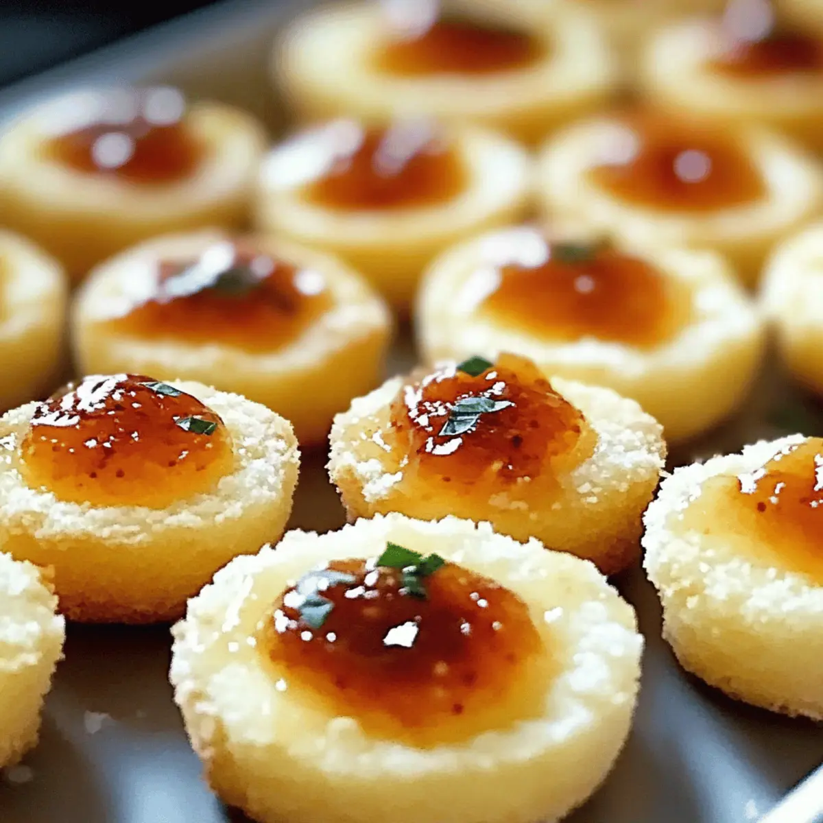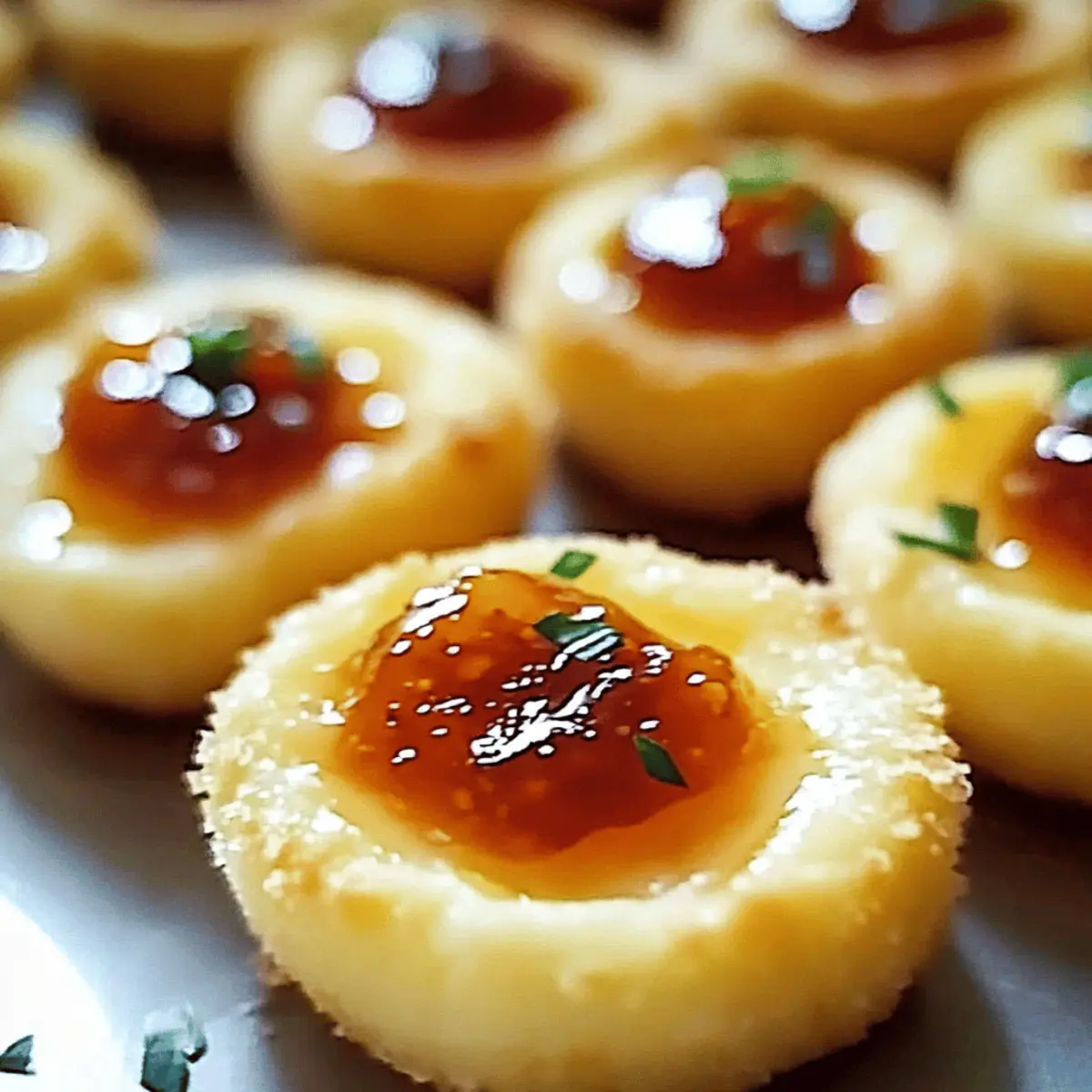 Jump to Recipe Print RecipeAs the golden hour approached, I could already sense the delicious chaos of my backyard gathering unfolding. A table filled with friends, laughter, and the promise of homemade delights was all I needed to kick off the evening. And what better way to wow the crowd than with my Cheesy Thumbprint Appetizers with Hot Pepper Jelly? These bite-sized wonders are not just easy to make—they’re a savory sensation that combines creamy cheese with a fiery jelly punch, making them a guaranteed hit at any gathering. With just a few ingredients and minimal prep time, you’ll have a crowd-pleasing appetizer that’s perfect for entertaining. Why settle for the usual store-bought snacks when you can whip up these tasty treats in no time? Ready to impress your guests with a delightful twist on finger foods? Let’s dive into the recipe! Why are these appetizers crowd-pleasers? Effortless Elegance: With just a few simple ingredients, you can create a deliciously impressive appetizer that looks gourmet. Flavor Fusion: The blend of sharp cheese and hot pepper jelly offers a delightful balance of savory and sweet, making them irresistible. Versatile Options: Customize them with your choice of cheese and jelly, catering to all taste buds. Whether served warm or at room temperature, they make a perfect addition to any gathering alongside Cucumber Sweet Pepper or Hot Honey Chicken dishes. Quick to Make: No need for complicated techniques; these finger foods come together in no time. Get the compliments rolling with this unique and unforgettable snack! Cheesy Thumbprint Appetizers Ingredients • To create these delightful Cheesy Thumbprint Appetizers with Hot Pepper Jelly, gather the following ingredients. For the Dough Shredded Sharp Cheddar Cheese – Provides a zesty flavor kick; feel free to substitute with pepper jack or gouda for a different taste profile. Cream Cheese (4 oz, softened) – Ensures a creamy and rich texture; remember to soften it for smooth mixing. Unsalted Butter (1/2 cup, softened) – Creates a rich, buttery flavor and tender texture; you can use salted butter if you prefer a stronger taste. All-Purpose Flour (1 cup) – Gives structure to the dough; for a gluten-free version, swap in a 1:1 baking blend. Salt (1/4 tsp) – Enhances the overall flavor balance of the dish. Garlic Powder (optional, 1/4 tsp) – Adds an extra layer of flavor; omit for a milder taste. For the Filling Hot Pepper Jelly (1/3 cup) – Provides a delightful punch of sweetness and heat that beautifully contrasts the cheese; choose jalapeño or habanero varieties for your desired spice level. For Garnish Fresh Thyme Leaves or Chopped Parsley (optional) – Adds a touch of freshness and visual appeal to your appetizers. Step‑by‑Step Instructions for Cheesy Thumbprint Appetizers with Hot Pepper Jelly Step 1: Prepare the Creamy Mixture In a large mixing bowl, combine the softened cream cheese and unsalted butter. Use a hand mixer or a sturdy spatula to blend them together until you reach a creamy, smooth consistency, about 2–3 minutes. This step is crucial for ensuring that your Cheesy Thumbprint Appetizers have that rich and buttery base everyone will rave about. Step 2: Incorporate the Cheese Next, gently fold in the shredded sharp cheddar cheese with a spatula, mixing until fully incorporated into the cream mixture. You’ll notice the texture turning thicker and creamier—the perfect foundation for your dough. This should take about 1–2 minutes of careful folding to maintain the fluffiness. Step 3: Create the Dough Gradually add the all-purpose flour, salt, and optional garlic powder into the cheese mixture. Combine everything using your hands or a wooden spoon until a dough forms, typically around 3–4 minutes. The dough should hold together without being too sticky, setting the stage for your delightful thumbprint appetizers. Step 4: Chill to Firm Up Cover the dough tightly with plastic wrap and refrigerate for at least 30 minutes. This chilling time is essential, as it helps to firm the dough, preventing the Cheesy Thumbprint Appetizers from losing shape while baking. Prepare your baking sheet by lining it with parchment paper during this time. Step 5: Preheat the Oven While the dough chills, preheat your oven to 375°F (190°C). This temperature ensures that your chewy and cheesy appetizers will bake evenly, leaving you with perfectly golden edges and creamy centers. It’s the perfect time to get that delicious aroma wafting through your kitchen. Step 6: Shape the Dough After chilling, scoop the dough into 1-inch balls, rolling them smoothly between your palms. Place each ball 2 inches apart on the prepared baking sheet, making sure they have enough space to spread during baking. This step will likely yield around 24 delicious appetizers to enjoy. Step 7: Make Indentations Using your thumb or a teaspoon, gently create a small indentation in the center of each dough ball. This little well is where the hot pepper jelly will nestle, adding that spicy sweetness that makes these Cheesy Thumbprint Appetizers a hit. Aim for a nice, deep indentation without breaking through the bottom. Step 8: Fill with Hot Pepper Jelly Using a small spoon, fill each indentation with about ½ teaspoon of hot pepper jelly. Be cautious not to overfill, as bubbling over can occur while baking. The contrast of sweet and spicy jelly with the cheesy base will excite everyone’s taste buds beautifully. Step 9: Bake Until Perfect Slide the baking sheet into your preheated oven and bake for 13-15 minutes. Keep an eye on them, looking for golden edges and a slightly crispy cheese topping. When you see that perfect color, it’s time to bring these stunning Cheesy Thumbprint Appetizers out for cooling! Step 10: Cool and Garnish Once baked, allow the appetizers to cool on the sheet for about 5 minutes before carefully transferring them to a wire rack. This cooling step helps them firm up while enhancing 