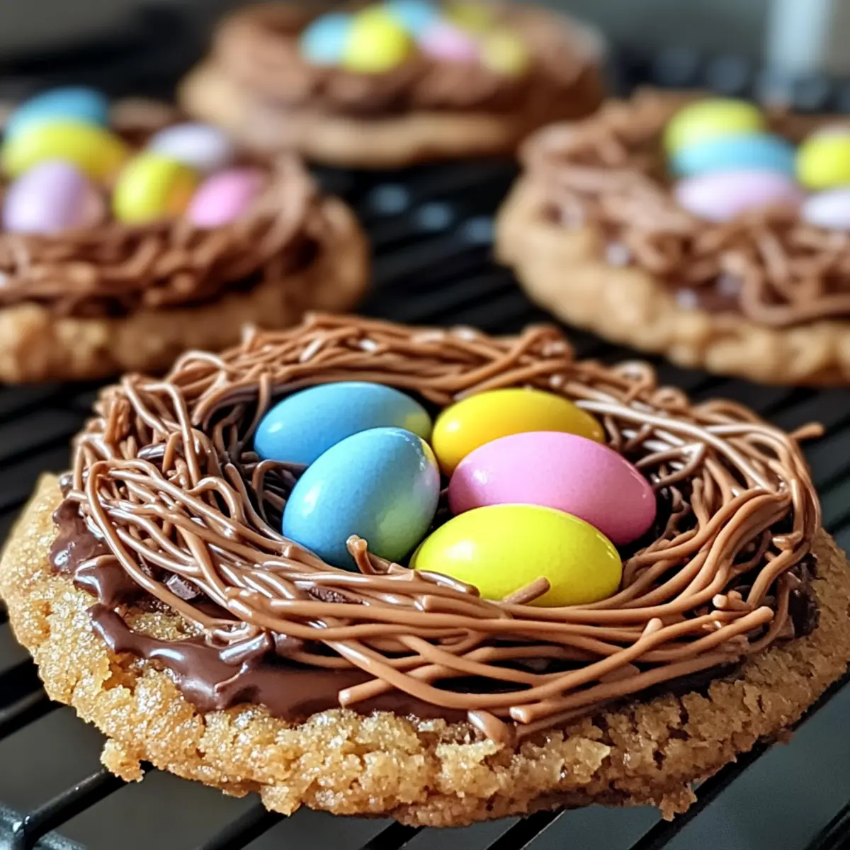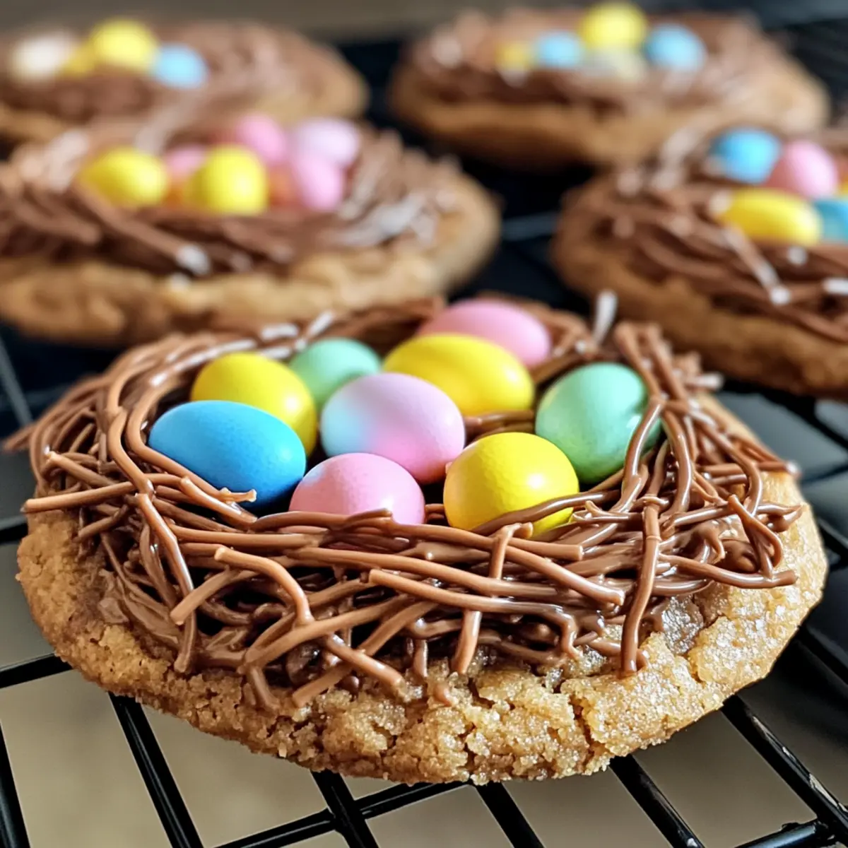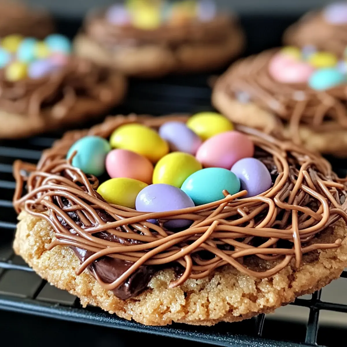 Allow the decorated cookies to cool completely on the baking sheet before transferring them to a wire rack. This cooling process helps the chocolate set and ensures the nests hold shape. Once cooled, store the cookies in an airtight container at room temperature for up to 7 days, ready for sharing or enjoying at home!