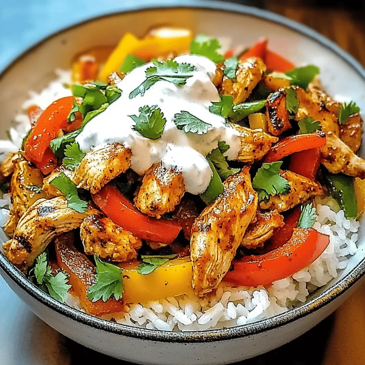 Now it’s time to bring the Chicken Fajita Rice Bowls together! Start by placing a generous scoop of the fluffy rice at the bottom of each serving bowl. Layer on the sautéed chicken and vibrant vegetables, allowing the colors to shine through. Each bowl should feel hearty and inviting, making your meal look as good as it tastes.