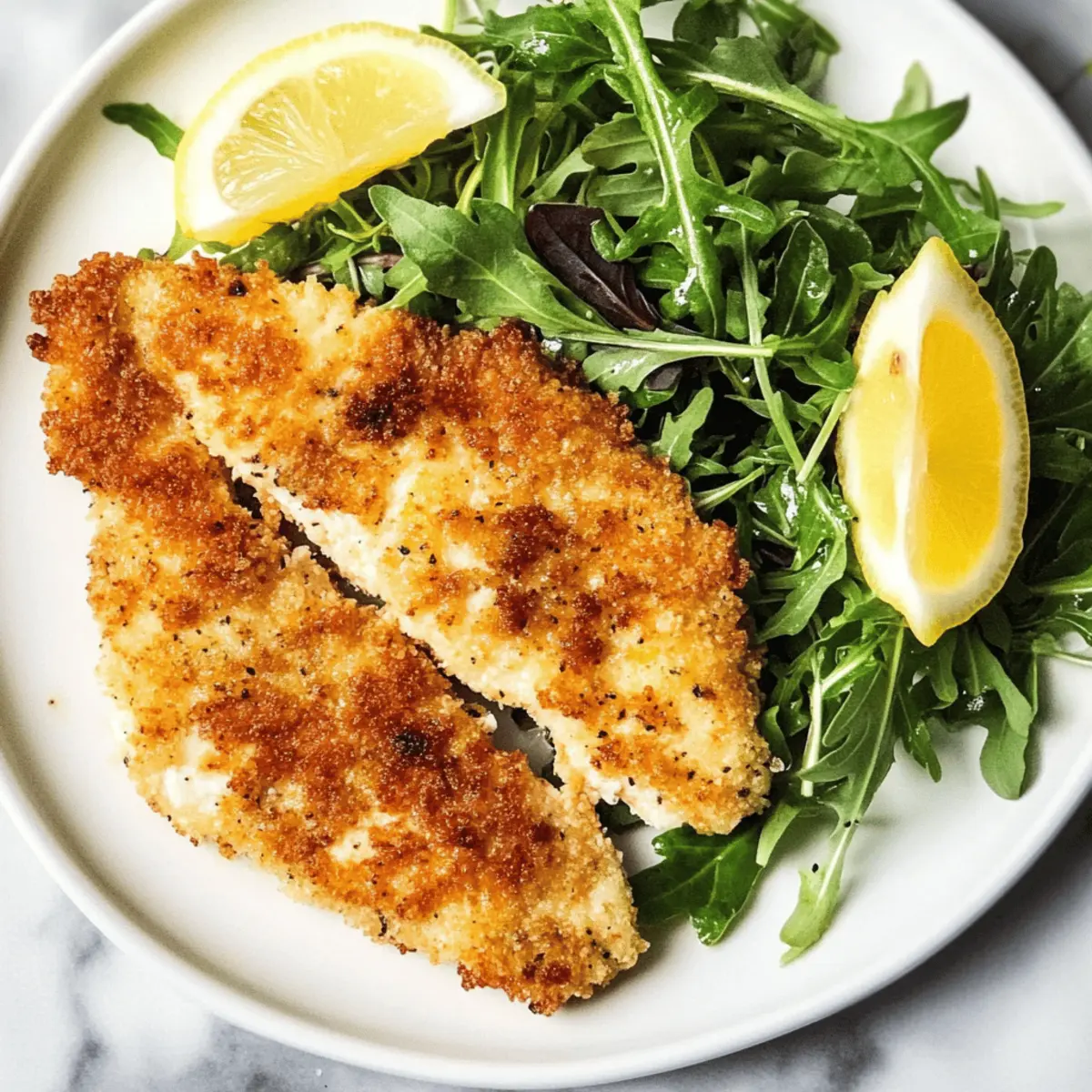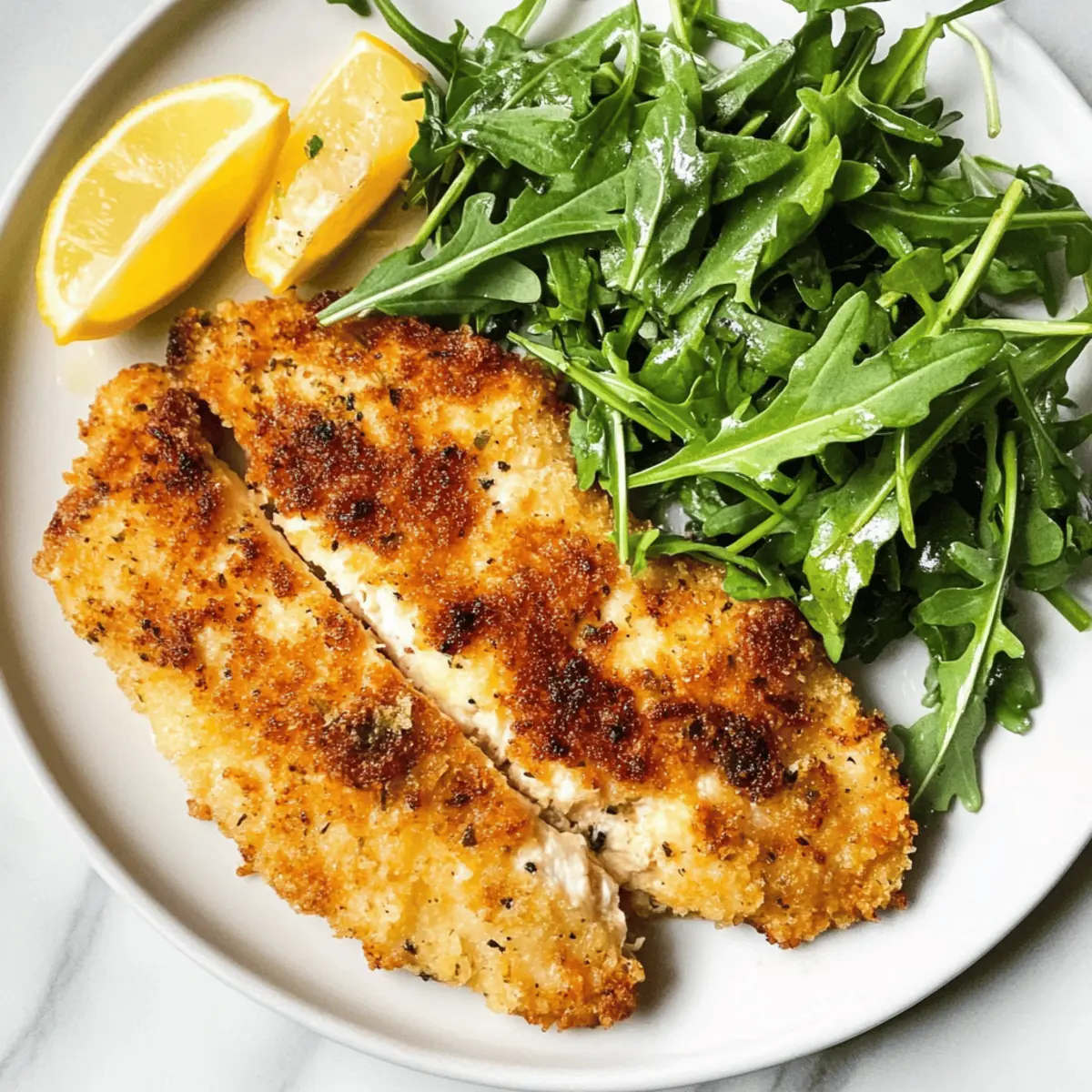 Tender, Juicy Chicken: Every bite of this Chicken Milanese offers a succulent interior that contrasts wonderfully with its crispy exterior, ensuring satisfaction at each forkful. Quick to Make: In just 30 minutes, you can serve a stunning dish that beats fast food on every level. Versatile Pairing: This meal shines with an arugula salad, but don’t hesitate to try it with other sides like roasted vegetables or pasta. Family-Friendly: Even picky eaters will love the crunchy, flavorful crust, making it perfect for dinner with friends or family. Easy Ingredients: You likely already have most of the items in your pantry, keeping your grocery trips simple. Whether it’s your first time in the kitchen or you’re a seasoned chef looking for a quick favorite, Chicken Milanese will not disappoint!