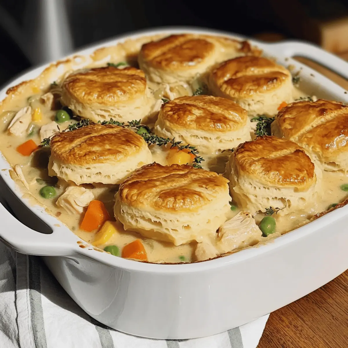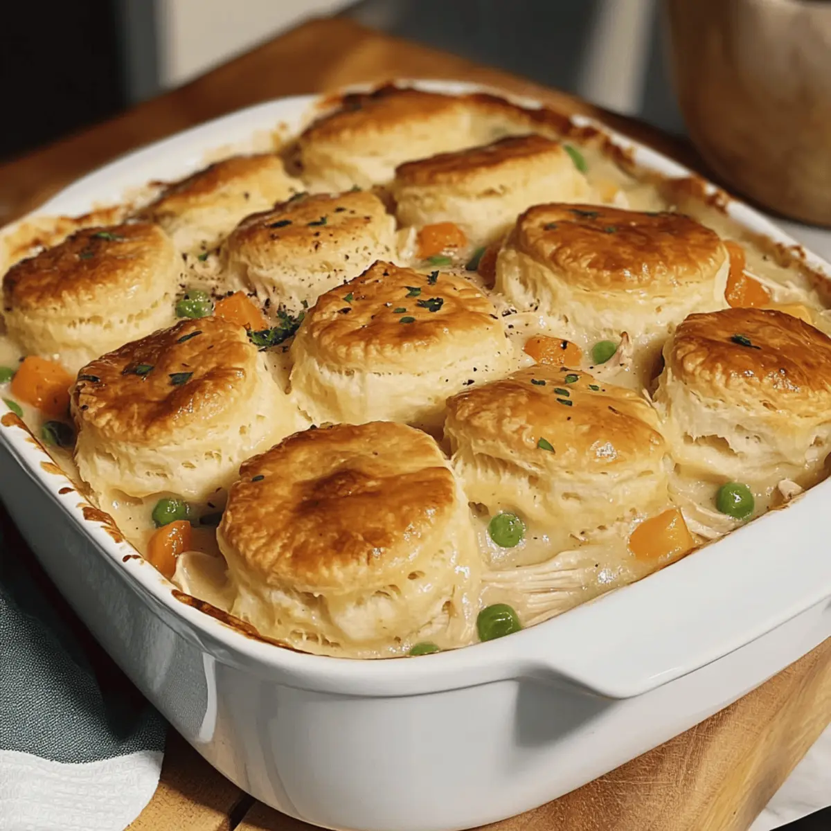 Enjoy the delightful flavors of Chicken Pot Pie Casserole that brings families together with tender chicken, colorful vegetables, and a creamy sauce beneath a fluffy biscuit layer.