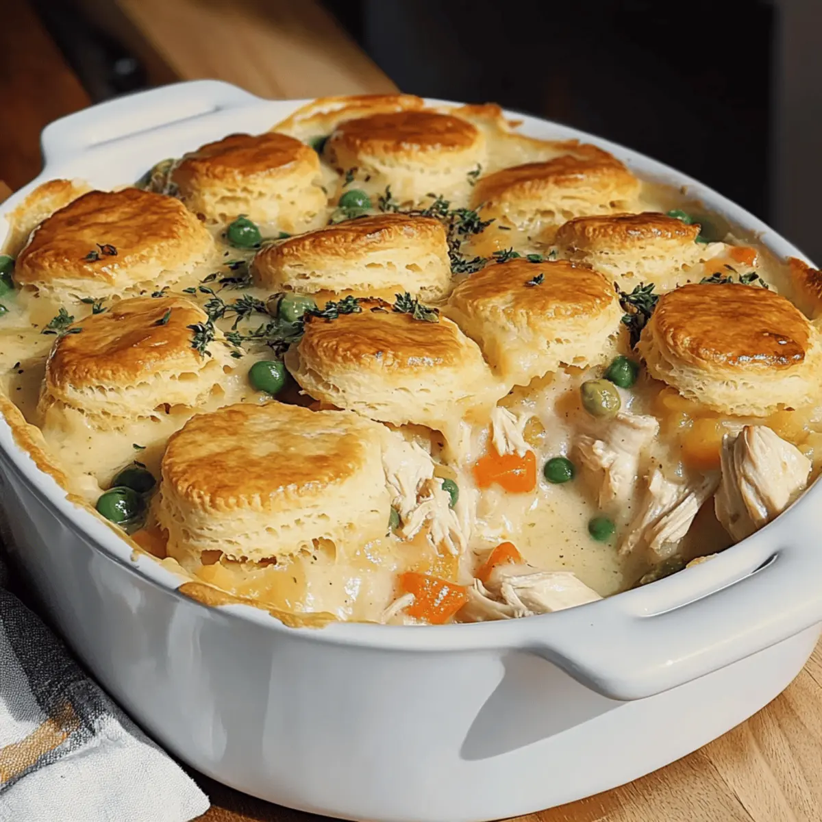 Comforting, Timer-Friendly: This Chicken Pot Pie Casserole is the ultimate comfort food, bringing warmth on chilly nights without keeping you in the kitchen for hours. Family-Friendly: With its blend of tender chicken and vibrant veggies, this dish appeals to everyone, from kids to adults. One-Dish Wonder: Say goodbye to messy cleanup—just serve straight from the baking dish! Fluffy Topping: The biscuit layer rises beautifully, adding that perfect touch. If you’re also in the mood for more comfort classic options, check out this delicious Dorito Casserole Cheesy. Trust me, it will be a hit at your table!