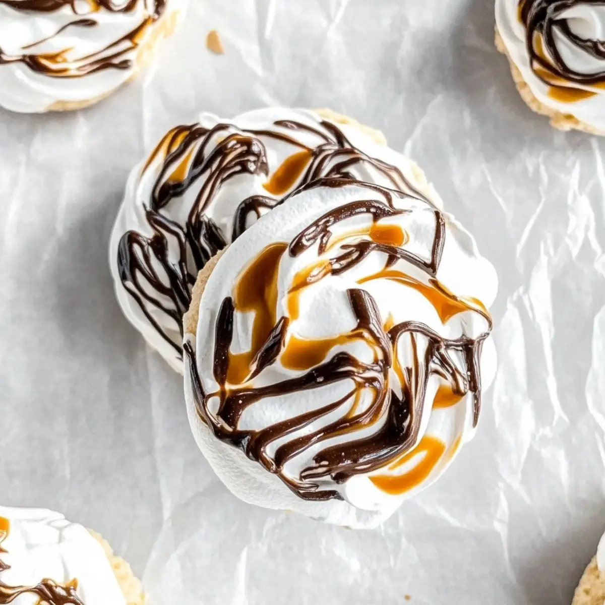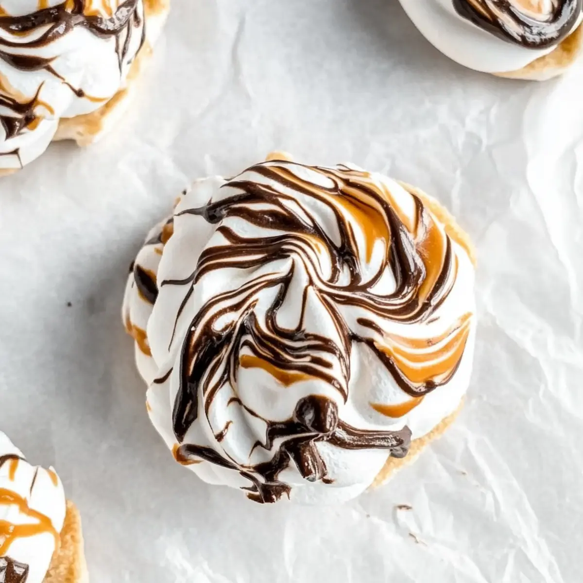Jump to Recipe Print RecipeAs the tempting aroma of melting chocolate wafts through my kitchen, I can’t help but feel a little magic in the air. Today, I’m sharing my delightfully light Chocolate and Caramel Swirled Meringues, a treat that transforms simple egg whites into a whimsical dessert. These gluten-free wonders are the perfect antidote to fast food fatigue and can be whipped up in no time for an indulgent post-dinner delight. They strike the ultimate balance between a crispy exterior and a chewy center, making it nearly impossible to eat just one! Plus, they’re an excellent way to use up leftover egg whites from other recipes, turning waste into a triumphant sweet ending. Ready to learn how to make this airy confection that’s sure to impress? Let’s dive in! Why are these meringues so special? Light, Airy Texture: These meringues boast a unique contrast, with a crispy outer shell and a chewy center that melts in your mouth. Quick and Easy: Whipping up these Chocolate and Caramel Swirled Meringues requires minimal time and effort, making them perfect for unexpected guests or last-minute dessert cravings. Versatile Variations: Feel free to customize! Swap caramel for fruit puree or try different extract flavors to match any occasion. Gluten-Free Goodness: A delightful option for gluten-sensitive friends, satisfying their sweet tooth without compromise. Elegant Presentation: With their stunning swirls of chocolate and caramel, these meringues are a showstopper, elevating your dessert game effortlessly. Whether pairing them with your afternoon coffee or serving them at a dinner party, these delightful meringues are sure to become a favorite. Chocolate and Caramel Swirled Meringues Ingredients For the Meringue • Egg Whites – Room temperature egg whites ensure better whipping and stability. • Cream of Tartar – Stabilizes the egg whites to help achieve those perfect stiff peaks. • Granulated Sugar – Essential for sweetness and creating that delightful crunchy shell; powdered sugar is not a substitute. • Vanilla Extract – Use pure vanilla for a rich flavor that complements the chocolate and caramel. For the Swirls • Chocolate Chips – Semi-sweet chocolate is recommended; feel free to swap for dark chocolate to intensify the rich flavor. • Caramel Sauce – Adds a sweet richness; you can opt for store-bought or homemade for a personal touch. Dive into the world of Chocolate and Caramel Swirled Meringues, a heavenly dessert that turns simple ingredients into a delightful masterpiece! Step‑by‑Step Instructions for Chocolate and Caramel Swirled Meringues Step 1: Preheat and Prepare Begin your journey to making Chocolate and Caramel Swirled Meringues by preheating your oven to 250°F (120°C). Line a baking sheet with parchment paper to prevent sticking. This is a crucial step as it ensures that your delicate meringues can bake evenly without any mishaps. Step 2: Whip the Egg Whites In a clean stand mixer bowl or using a hand mixer, add your room temperature egg whites. Start whisking on medium speed until frothy; this will only take a couple of minutes. Once frothy, add the cream of tartar and increase the speed to medium-high. Gradually add the granulated sugar, continuing to whisk until stiff peaks form, about 5–8 minutes. A glossy and voluminous mixture means you’re on the right path! Step 3: Shape the Meringues Using a spoon or a piping bag, carefully scoop out mounds of the whipped meringue and place them onto your prepared baking sheet. Aim for about six mounds, ensuring you leave space between them to allow for spreading. Gently shape each mound, taking care not to flatten them, as you want those lovely, airy peaks to remain intact. Step 4: Melt the Chocolate Take your semi-sweet chocolate chips and place them in a microwave-safe bowl. Microwave in 30-second intervals, stirring in between, until the chocolate is fully melted and smooth. This should take about 1 to 2 minutes in total. Keep an eye on it to prevent burning, as melted chocolate is the key for those delicious swirls. Step 5: Create the Swirls Once the chocolate is melted, drizzle about a teaspoon of it over each meringue mound. Follow this by drizzling a teaspoon of caramel sauce over the chocolate. Using a toothpick or a skewer, gently swirl the chocolate and caramel together, creating beautiful patterns without overmixing—each meringue should be a work of art! Step 6: Bake the Meringues Carefully place the baking sheet into the preheated oven. Bake the meringues for 45 to 50 minutes, or until the exteriors feel dry and are easily lifted from the parchment. The insides will remain soft and chewy, providing that delightful contrast that makes Chocolate and Caramel Swirled Meringues so appealing. Step 7: Cool Before Serving Once baking is complete, turn off the oven and let the meringues cool completely in the oven with the door slightly ajar. This gradual cooling process helps prevent cracking. Once cool, they can be gently lifted off the parchment and placed in an airtight container, ready to impress your friends and family! Chocolate and Caramel Swirled Meringues Variations Feel free to get creative and make these meringues your own with some delicious twists! Fruit Puree: Swap out caramel for a fruit puree like raspberry or mango for a fresh, tangy flavor. The fruity sweetness adds a delightful contrast to the airy meringues. Almond Extract: Replace vanilla extract with almond extract to give these meringues a lovely nutty flavor. Just a couple of drops can elevate the dessert with a different aromatic profile. Spiced Cocoa: Mix in a dash of cinnamon or chili powder with the cocoa for a hint of warmth. This subtle spice adds an exciting kick that balances the sweetness beautifully. Chocolate Variations: Use dark chocolate instead of semi-sweet for a more intense chocolate experience. Dark chocolate swirls add richness and depth, perfect for true chocoholics. Colorful Meringues: Ad
