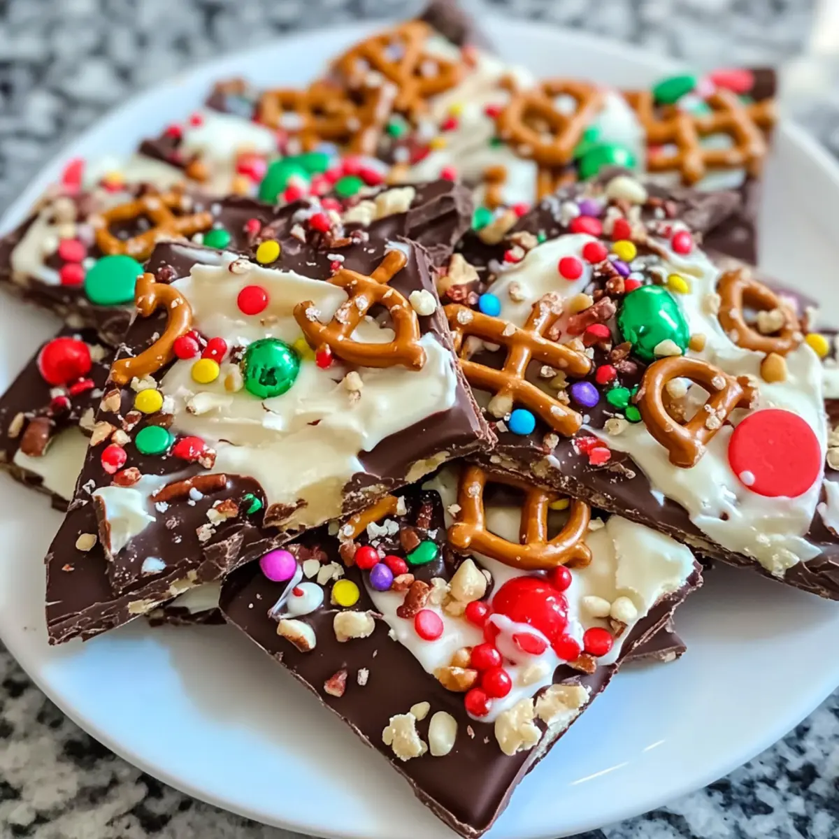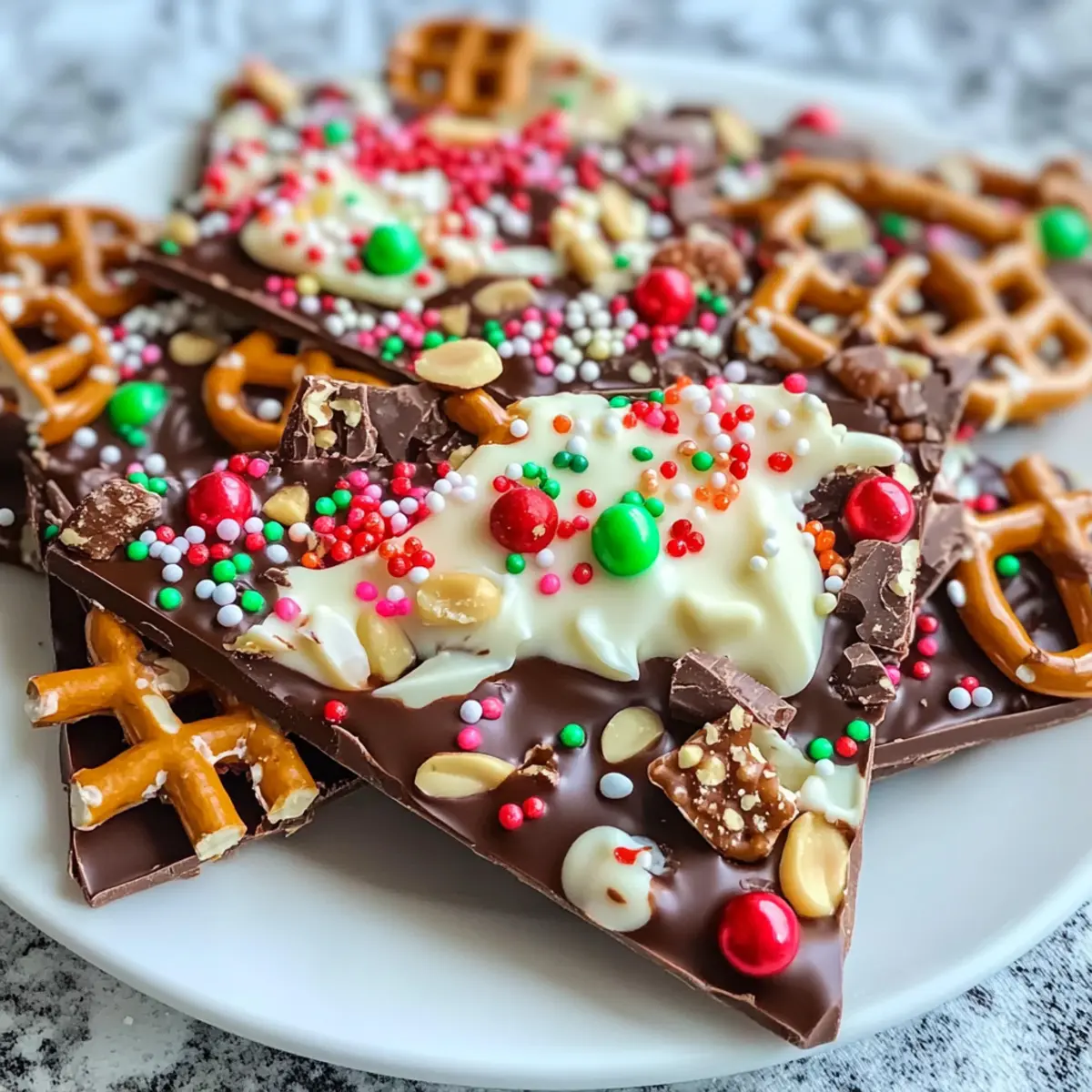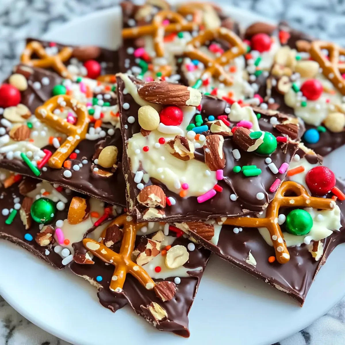 Jump to Recipe Print RecipeIt was just a few days before Christmas when I stumbled upon an old recipe card tucked away in my kitchen drawer, the kind that instantly brings back nostalgia and joy. Christmas Bark—an easy and festive treat that combines chocolate and a delightful crunch—caught my eye. This recipe isn’t just quick to prepare; it’s also fully customizable, allowing you to mix and match your favorite toppings to create a personal masterpiece. Imagine the excitement of gifting a batch of this sweet and salty holiday bark, perfect for family gatherings or even cozy nights by the fire. With its rich layers of semi-sweet and white chocolate, every bite is a celebration of the season. So, are you ready to create a new holiday favorite that will leave everyone asking for seconds? Let’s dive into this delightful recipe! Why is Christmas Bark a must-try? Simplicity made exceptional: This recipe is incredibly easy to whip up, perfect for both novice bakers and seasoned chefs alike. Endless customization: With a variety of toppings at your fingertips, you can create unique combinations tailored to your taste. Rich, decadent flavors: The pairing of creamy semi-sweet and white chocolate creates a delightful balance that’s sure to please anyone’s palate. Quick preparation: With just a few steps and minimal time, you can have a festive treat ready to share in no time. Perfect for gifting: Pack it into decorative boxes or tins, making it an ideal present for neighbors, friends, or family during the holiday season. Crowd-pleaser: This Christmas Bark is sure to be a hit at any gathering, leaving everyone wanting more! Don’t forget to check out our tips on popular toppings to make your bark even more special. Christmas Bark Ingredients • Let’s gather the essentials for your delightful Christmas Bark! For the Chocolate Layers Semi-Sweet Chocolate Chips – This provides the primary sweetness; opt for high-quality chocolate for better flavor. White Chocolate Melting Wafers (or White Chocolate Chips) – Adds a creamy layer; using premium brands enhances the final result. Coconut Oil (or Shortening) – Helps melt the chocolate smoothly and gives a nice sheen; vegetable oil is a good substitute if needed. For Customizable Toppings Assorted Toppings (e.g., pretzels, nuts, chopped candy, chopped cookies, sprinkles) – Ideal for adding crunch and flavor; feel free to mix and match based on your preferences or what’s on hand! With these ingredients, your Christmas Bark will be a joyous holiday treat that everyone will love! Step‑by‑Step Instructions for Christmas Bark Step 1: Prepare the Baking Sheet Line a baking sheet with parchment paper or foil, allowing some overhang for easy removal later. This step is essential for your Christmas Bark to release smoothly once it’s set. Ensure the surface is even and free of creases, creating the perfect base for your delicious chocolate layers. Step 2: Melt the Semi-Sweet Chocolate In a microwave-safe bowl, combine 24 ounces of semi-sweet chocolate chips with 1 tablespoon of coconut oil. Microwave the mixture for 1 minute at 50% power, then stir. Continue heating in 45-second intervals, stirring after each until the chocolate is fully melted and smooth, with a glossy appearance—this should take about 2-3 minutes total. Step 3: Spread the Chocolate Layer Pour the melted semi-sweet chocolate onto the prepared baking sheet. Use a spatula to tilt and spread the chocolate evenly, creating a nice, thick layer—aim for about 1/4 inch in thickness. Ensure that the surface is smooth for a beautiful finish to your Christmas Bark, as it serves as the foundation for all the delightful toppings. Step 4: Add Toppings to the First Layer Before the semi-sweet chocolate sets, quickly sprinkle your choice of toppings over the melted chocolate layer. Choose from pretzels, nuts, or candies, and let the toppings mix together. Press them gently into the chocolate for better adhesion, ensuring each bite of your Christmas Bark is a delicious blend of flavors. Step 5: Melt the White Chocolate In a clean microwave-safe bowl, combine 12 ounces of white chocolate melting wafers (or white chocolate chips) with another tablespoon of coconut oil. Microwave using the same technique—1 minute at 50% power, stirring, and then in 45-second intervals until smooth. The melted white chocolate should be creamy and luscious, ideal for the next layer. Step 6: Pour Over the First Layer Carefully pour the melted white chocolate over the layered semi-sweet chocolate on the baking sheet. Use a spatula to spread it evenly, ensuring it covers the toppings completely. This top layer adds a beautiful contrast and creaminess to your Christmas Bark, making it more festive and visually appealing—think of it as the frosting on a cake! Step 7: Add Additional Toppings Don’t forget to add more toppings on top of the white chocolate layer! Sprinkle extra nuts, crushed candies, or festive sprinkles to enhance flavor and add texture. Aim for a colorful combination that reflects the holiday spirit, ensuring your Christmas Bark is not just delicious but also a feast for the eyes. Step 8: Allow to Set Let the bark sit in a cool area for 2-3 hours or until it has completely firmed up. Avoid refrigeration, as it can create condensation that may affect the texture. Check for doneness; the chocolate should feel solid to the touch. Patience is key here, but the result will be worth the wait! Step 9: Break into Pieces Once the Christmas Bark is set, gently lift it from the baking sheet using the overhanging parchment paper. Place it on a cutting board and break it into irregular pieces with your hands or a knife. This rustic style gives character to your bark, ensuring each piece is unique and perfect for sharing. Step 10: Store or Gift Store your Christmas Bark in an airtight container at room temperature in a cool area. Alternatively, package it into decorative boxes or tins for gifting. Y