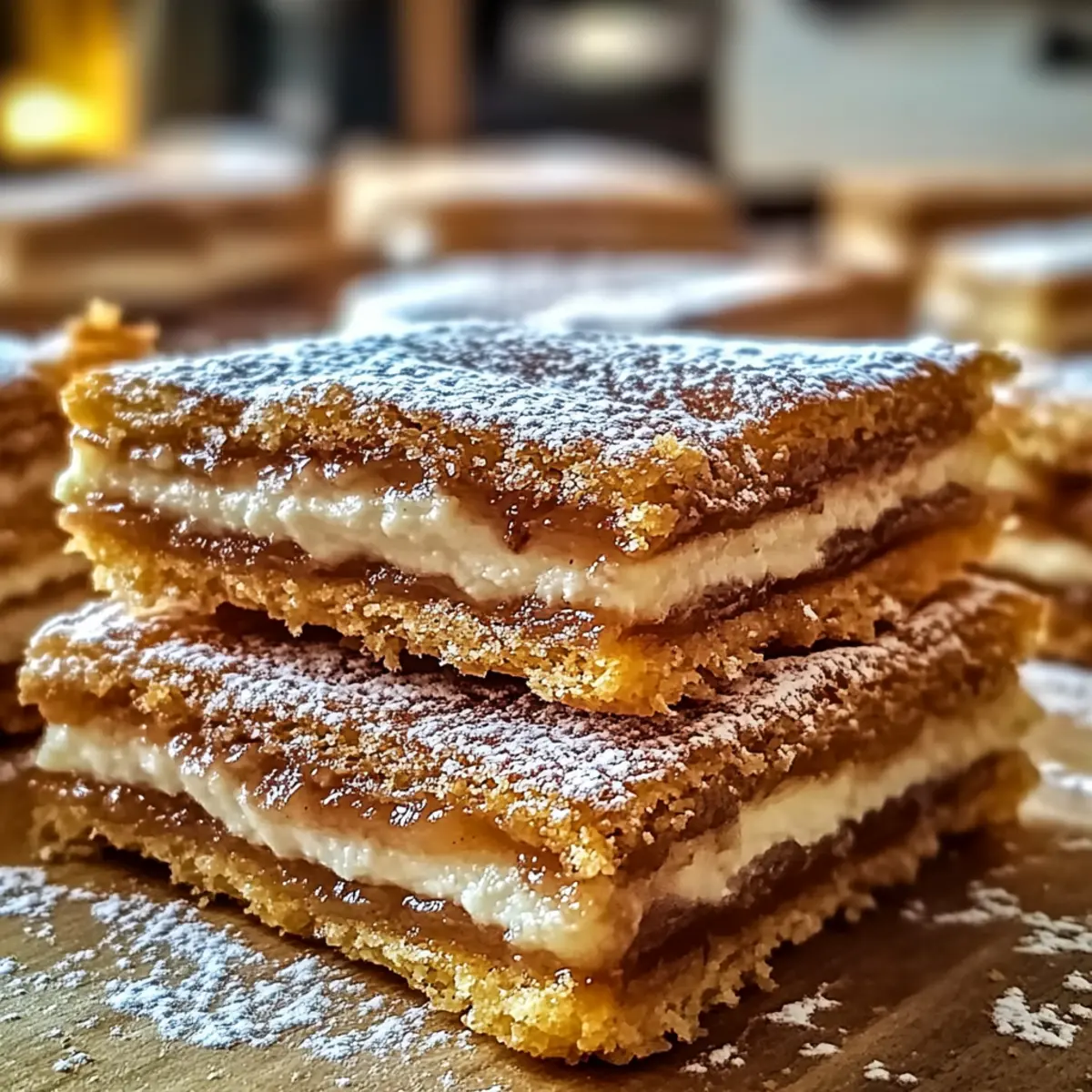 Jump to Recipe Print RecipeAn unexpected crunch hit my taste buds as I savored a piece of Churro Saltine Toffee Bars—who knew that humble saltines could transform into such a delightful treat? This quick and easy dessert fuses rich toffee and a dash of cinnamon sugar, creating a perfect balance of sweet and salty flavors that will make you the star of any gathering. Not only is this recipe adaptable for various dietary needs, but it also ensures that you can whip up crowd-pleasing treats in no time at all, perfect for satisfying spontaneous cravings or impressing guests. Ready to discover how a few simple pantry staples can lead to a show-stopping dessert? Let’s dive in! Why Will You Adore This Dessert? Simplicity at Its Best: This recipe transforms ordinary saltines into an extraordinary dessert with minimal effort—perfect for busy home cooks seeking quick solutions. Crowd-Pleasing Appeal: With a delightful sweet-savory combination topped with cinnamon sugar, these bars are guaranteed to impress at any gathering. Endless Variations: Customize your Churro Saltine Toffee by swapping ingredients or adding nuts for a unique twist, just like in my Churro Cheesecake Bliss. Time-Saving Delight: In just a little over 30 minutes, you’ll have a show-stopping treat ready to share. A Treat for Everyone: With optional dairy-free alternatives, this dessert meets various dietary needs while keeping flavor at the forefront. Churro Saltine Toffee Ingredients For the Base • Saltine Crackers – These provide a satisfying crunch, acting as the foundation of your dessert. Substitution: Can swap for graham crackers for a sweeter base. For the Toffee • Butter – Adds richness and binds all ingredients together, making this treat delectably indulgent. Note: No substitutes recommended for optimal flavor. • Brown Sugar – This ingredient gives necessary sweetness and a lovely caramel flavor. Substitution: Light brown sugar may be used if preferred. • Heavy Cream – Essential for achieving a silky and smooth toffee consistency. Substitution: Half-and-half can lighten the dish. • Vanilla Extract – Enhances the overall flavor with its warm and inviting aroma. Substitution: Almond extract can provide a distinct taste. For the Finishing Touch • Cinnamon – Brings warmth and adds a lovely spice to the dessert’s profile. Note: Nutmeg can be used as an alternative for a unique twist. • Powdered Sugar – This ensures a sweet finish and a wonderful texture on top of the toffee. Substitution: Granulated sugar is a quick alternative. For the Topping • Cinnamon Sugar – A delightful blend to sprinkle on top for that signature churro flavor, enhancing the overall experience. Step‑by‑Step Instructions for Churro Saltine Toffee Step 1: Preheat and Prepare Begin by preheating your oven to 350°F (175°C). While the oven heats up, line a baking sheet with parchment paper, ensuring the paper hangs over the edges for easy removal later. This will create a non-stick surface, crucial for your upcoming Churro Saltine Toffee Bars, allowing them to come out beautifully once baked. Step 2: Arrange the Crackers Take your saltine crackers and lay them out closely in a single layer on the prepared baking sheet. Ensure they are tightly packed without overlapping; this will provide a sturdy foundation for your toffee layer. The uniformity of the crackers is key for achieving that pleasant crunch in your final Churro Saltine Toffee Bars. Step 3: Make the Toffee In a medium saucepan over medium heat, combine the butter and brown sugar. Stir continuously until the mixture begins to bubble and turns a golden color, which should take around 4–5 minutes. The bubbling action indicates that the sugar is melting and will create that rich toffee flavor, essential for your Churro Saltine Toffee Bars. Step 4: Add Cream and Vanilla Remove the saucepan from heat and carefully whisk in the heavy cream and vanilla extract. You’ll notice the mixture thickens as you blend; this is a great sign that your toffee is coming together. Make sure there are no lumps, and set it aside for a moment to slightly cool down before pouring over the crackers. Step 5: Pour the Toffee Gently pour the smooth toffee mixture over the arranged saltine crackers. Use a spatula to spread the toffee evenly, ensuring all crackers are covered for that delicious sweet and salty combination. This even coating is vital for achieving the perfect balance in your Churro Saltine Toffee Bars. Step 6: Bake to Perfection Slide the baking sheet into your preheated oven and bake for 10–12 minutes. Keep an eye on the bars; they are ready when the toffee is bubbling vigorously and turns a lovely golden brown color. This baking step allows the flavors to meld beautifully, enhancing the overall taste of your Churro Saltine Toffee. Step 7: Add Cinnamon Sugar Topping Immediately after taking the baking sheet out of the oven, sprinkle the cinnamon and powdered sugar mixture generously over the hot toffee layer. The warmth of the toffee will help the sugar adhere, creating a delightful outer layer that complements the richness of the toffee beneath. Step 8: Cool and Cut Let the Churro Saltine Toffee Bars cool completely on the baking sheet. This cooling process is vital, as it allows the toffee to set up nicely. Once cooled, use a sharp knife to cut the toffee into squares or bars, ensuring clean edges for a beautiful presentation. Enjoy sharing these delightful treats! What to Serve with Churro Saltine Toffee Bars? Indulging in these rich, sweet delights calls for perfect accompaniments to elevate your dessert experience. Vanilla Ice Cream: A scoop of creamy vanilla ice cream adds a sweet, cold contrast to the warm toffee bars, making each bite a heavenly combination. The melting ice cream gradually combines with the cinnamon-sugar crust, creating delightful layers of flavor. Fresh Berries: Serve with a handful of fresh strawberries or raspberries. Their tartnes