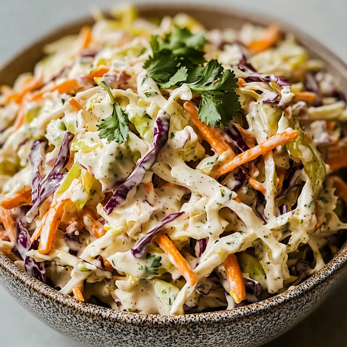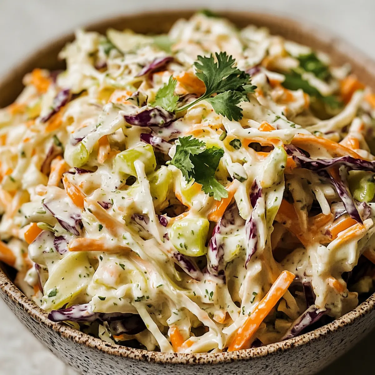 Jump to Recipe Print RecipeAs I pulled open my fridge, a vibrant medley of vegetables caught my eye, and the idea for this Cilantro Lime Coleslaw began to unfold. Combining crisp cabbage, colorful carrots, and the zesty freshness of lime and cilantro, this dish is a cheerful nod to summer gatherings and weeknight dinners alike. What I adore about this coleslaw is not just its quick prep time but its delightful versatility—it effortlessly complements grilled meats or tacos, but can also shine on its own as a light, satisfying lunch. Plus, it’s healthy and customizable, so you can tweak it to suit any dietary need. Are you ready to add a burst of color and flavor to your table? Why Is Cilantro Lime Coleslaw So Special? Vibrant flavors dance on your palate with every bite of this zesty coleslaw. Quick prep time makes it a breeze, perfect for busy weeknights or impromptu gatherings. Customizable for all taste preferences, this salad can cater to everyone—omit the cilantro for those who aren’t fans, or swap mayo for Greek yogurt for a healthier twist! Nutrient-rich and low-calorie, it’s a guilt-free indulgence. You’ll find it pairs beautifully with grilled meats, making it the ultimate summer companion! Cilantro Lime Coleslaw Ingredients For the Salad Base • Cabbage – Provides crunch and freshness; consider using a mix of green and purple cabbage for added color. • Carrot – Adds natural sweetness and vibrant color; feel free to substitute shredded zucchini for a unique texture. • Fresh Cilantro – Infuses the salad with bright, herbaceous flavors; can be omitted or replaced with parsley if desired. • Green Onions – Enhance flavor with their mild onion taste; chives are a great substitute for a similar effect. For the Dressing • Mayonnaise – Creates a creamy base for the dressing; swap with Greek yogurt for a healthier, lower-fat option. • Lime Juice – Adds acidity and brightness; lemon juice works just as well if limes aren’t on hand. • Apple Cider Vinegar – Introduces tanginess and helps tenderize the cabbage; feel free to use white vinegar instead. • Sugar – Balances flavors and enhances sweetness; honey or agave syrup can be used for a natural sweetener. • Ground Cumin – Adds depth and warmth; omit if a milder flavor is preferred. • Salt and Black Pepper – Essential for flavor balance; adjust according to your taste. • Chili Powder (optional) – Adds extra spice for those who appreciate heat; fresh jalapeño can be used for more intense spiciness. Embrace the zestiness of Cilantro Lime Coleslaw, a salad that’s not only vibrant but also customizable and healthy! Step‑by‑Step Instructions for Cilantro Lime Coleslaw Step 1: Prepare the Vegetables Begin by finely shredding about 4 cups of fresh cabbage and 1 cup of crisp carrots. Use a sharp knife or a food processor for ease and precision. In a large mixing bowl, combine the shredded cabbage, carrots, ½ cup of chopped cilantro, and ¼ cup of thinly sliced green onions. Toss gently to mix the vibrant colors and textures together, creating a refreshing base for your Cilantro Lime Coleslaw. Step 2: Make the Dressing In a separate small bowl, whisk together ½ cup of mayonnaise, the juice of 2 limes, 2 tablespoons of apple cider vinegar, 1 tablespoon of sugar, ½ teaspoon of ground cumin, and salt and pepper to taste. If you enjoy a bit of heat, add ½ teaspoon of chili powder. Aim for a smooth consistency, ensuring all ingredients are well combined; this will bring a zesty richness to the coleslaw. Step 3: Combine Salad and Dressing Pour the creamy dressing over the shredded vegetable mixture in the large bowl. Using tongs or a spatula, gently toss everything together, making sure every piece of cabbage and carrot is evenly coated with the dressing. This will transform the veggies into a flavorful and vibrant Cilantro Lime Coleslaw, allowing the dressing to meld beautifully with each ingredient. Step 4: Chill to Enhance Flavors Cover the bowl with plastic wrap or transfer the coleslaw into an airtight container. Refrigerate for at least 30 minutes, allowing the flavors to meld and the coleslaw to chill. This step enhances the freshness and crunchiness of your salad, creating that perfect taste experience when served. Step 5: Final Toss and Serve Before serving, give the salad another gentle toss to redistribute the dressing that may have settled at the bottom. Taste your Cilantro Lime Coleslaw and adjust the seasoning if needed, adding more salt, lime juice, or sugar based on your preference. Serve it chilled alongside your favorite grilled meats or as a satisfying standalone dish. Expert Tips for Cilantro Lime Coleslaw Finely Shred Cabbage: Ensure the cabbage is finely shredded to maximize texture and flavor absorption, preventing large chunks that can overpower the salad. Chill for Flavor: Allow the coleslaw to chill for at least 30 minutes before serving; this step helps the flavors meld together beautifully for a refreshing taste. Adjust to Taste: Be sure to taste your Cilantro Lime Coleslaw before serving; you can easily adjust the sweetness or acidity by adding more lime juice or sugar. Customize Ingredients: Feel free to customize! If you or your guests aren’t fans of cilantro, replace it with parsley, or skip it altogether for a different vibe. Experiment with Dressings: If you desire a lighter version, substitute mayonnaise with Greek yogurt or sour cream—this adds creaminess while keeping it healthier! Make Ahead Options These Cilantro Lime Coleslaw is perfect for busy weeknights and meal prep enthusiasts! You can prepare the coleslaw base (cabbage, carrots, cilantro, and green onions) up to 24 hours in advance; just store the veggies in an airtight container in the refrigerator to maintain freshness. The dressing can also be whisked together and refrigerated separately for up to 3 days. When you’re ready to serve, simply mix the dressing with the prepped vegetables, 