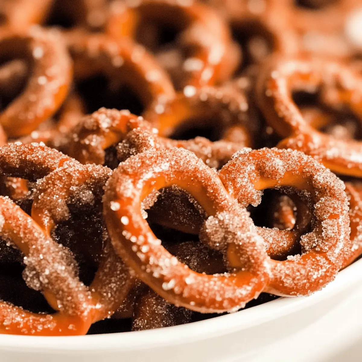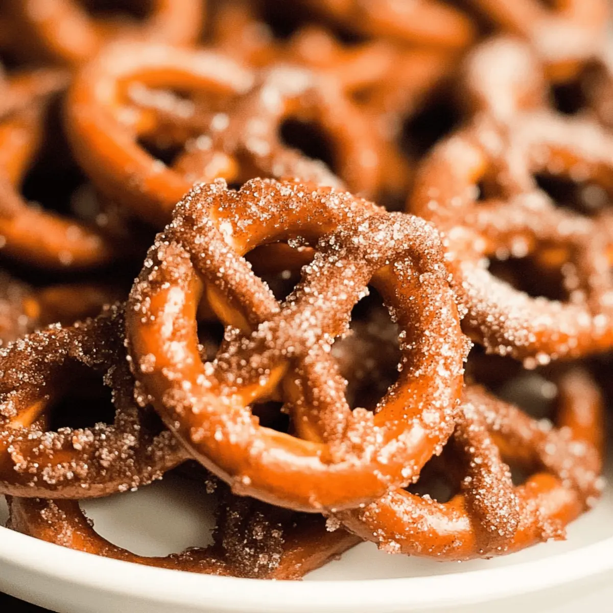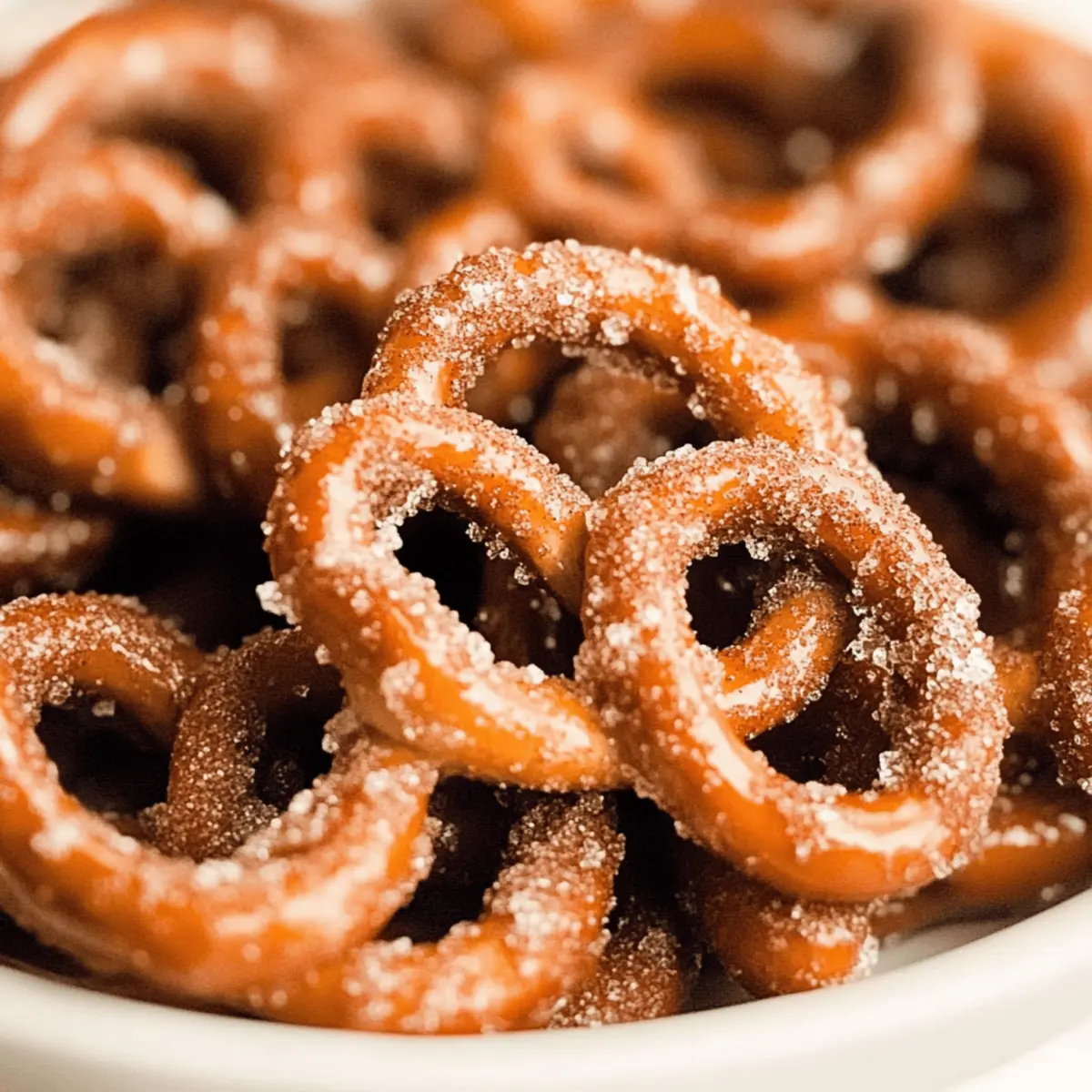 Jump to Recipe Print RecipeAs I pulled the warm Cinnamon Sugar Pretzels out of the oven, the sweet aroma filled my kitchen, instantly capturing my heart. These delightful snacks blend the satisfying crunch of hard pretzels with a sugary, buttery coating—a glorious statement that they’re perfect for any gathering or cozy night at home. Created with just four simple ingredients, this quick recipe is not only a feast for your taste buds but also makes for a charming homemade gift during the holidays. Whether you want to impress guests at your next party or indulge in a little self-care, these bite-sized treasures have got your back. Have you ever thought about how a little sprinkle of cinnamon could transform the ordinary into something truly extraordinary? Why Should You Make Cinnamon Sugar Pretzels? Irresistible Crunch: The unique combination of crunchy pretzels and a sweet cinnamon sugar coating creates a delightful snack that nobody can resist! Quick & Easy: With only four simple ingredients, this recipe is a breeze to whip up—perfect for those last-minute cravings. Versatile Treat: Customize your pretzels by adding chocolate chips or nuts for an extra flavor punch, making them suitable for any occasion. Perfect for Gifting: Package these delightful bites in a cute jar for a thoughtful homemade gift that friends and family will adore, especially during the holiday season. Crowd-Pleaser: Whether it’s a game night or a family gathering, these pretzels are sure to leave everyone asking for more. Cinnamon Sugar Pretzels Ingredients • Just four simple ingredients create magic! For the Pretzels Hard Pretzels – These provide the perfect crunchy base; any shape works well! For the Coating Butter – This adds richness and helps the cinnamon sugar stick; you can use coconut oil for a dairy-free option. Granulated Sugar – Sweetens the mix; feel free to swap it with brown sugar for a deeper flavor. Ground Cinnamon – Adds that signature spice; while no substitutes are recommended, nutmeg can be explored for a twist. Now you’re all set to make your delightful Cinnamon Sugar Pretzels! Step‑by‑Step Instructions for Cinnamon Sugar Pretzels Step 1: Preheat the Oven Begin by preheating your oven to 270°F (130°C). This low temperature will ensure that your Cinnamon Sugar Pretzels bake evenly and develop that perfect crunchy texture. While the oven heats up, gather all your ingredients and line a baking sheet with parchment paper for easy cleanup later. Step 2: Mix the Cinnamon Sugar In a small bowl, combine granulated sugar with ground cinnamon, stirring until well blended. The combination of sweet and spice is what makes these Cinnamon Sugar Pretzels irresistible. Set this mixture aside as you prepare the melted butter, ensuring it’s ready to stick to the pretzels once baked. Step 3: Melt the Butter Take a small microwave-safe bowl or saucepan and melt your butter until it’s completely smooth. If using a microwave, heat it in 15-second intervals to avoid splattering. Once melted, let it cool slightly while you prepare the pretzels, ensuring it won’t make them soggy when drizzled. Step 4: Prepare the Pretzels Arrange your hard pretzels on the prepared baking sheet in a single layer. This will allow them to bake evenly and get beautifully coated later. If your pretzels are stacked on top of each other, they won’t toast correctly, so give them enough space for that delightful crunch. Step 5: Coat with Cinnamon Sugar Evenly sprinkle the cinnamon sugar mixture over the laid-out pretzels, making sure to cover them generously. Then, drizzle the melted butter over the pretzels, ensuring each one gets a touch of that rich buttery goodness. This combination will create the stunning crunch and flavor that defines your Cinnamon Sugar Pretzels. Step 6: Toss and Arrange Gently toss the pretzels in the cinnamon sugar and butter mixture using your hands or a spatula. You want to coat each pretzel thoroughly for maximum flavor. After coating, spread them back out in a single layer on the baking sheet so they can bake evenly and achieve that perfect crunch. Step 7: Bake the Pretzels Place the baking sheet in your preheated oven and bake for 20 minutes. Be sure to stir the pretzels halfway through the baking time to ensure uniform coating and crunchiness. Your kitchen will soon smell divine, hinting at the delicious Cinnamon Sugar Pretzels that await! Step 8: Cool Down After 20 minutes, remove the baking sheet from the oven and let the pretzels cool completely. This cooling period is crucial for achieving that satisfying crunchy texture. Once cooled, they’re ready to be served as a delightful snack or packaged up for a charming homemade gift! Expert Tips for Cinnamon Sugar Pretzels Salted Butter: Use salted butter instead of unsalted for a balanced sweet and salty flavor that elevates your Cinnamon Sugar Pretzels. Coating Caution: Ensure your pretzels are thoroughly coated with the cinnamon sugar mix, as uneven distribution can lead to bland bites. Oven Monitoring: Keep an eye on the baking time; every oven is different, and you may need to adjust the time for optimal crunchiness. Cooling Time: Allow the pretzels to cool completely before enjoying, as they will harden and become extra crunchy during this time. Storage Secrets: Store in an airtight container to maintain freshness and crunchiness for up to one week—if they last that long! What to Serve with Easy Cinnamon Sugar Pretzels? Delightful pairings can elevate your Cinnamon Sugar Pretzels, turning them into a full meal or festive offering. Creamy Dip: A rich cream cheese frosting adds a luscious texture, perfect for sweet and salty contrasts. Warm Caramel Sauce: Drizzling warm caramel over the pretzels enhances their sweetness, creating a decadent treat that’s hard to resist. Fresh Fruit Skewers: Bright berries or sliced apples introduce a fresh element that balances the sweetness of your pretzels delightfully. Nutty Trail Mix: A
