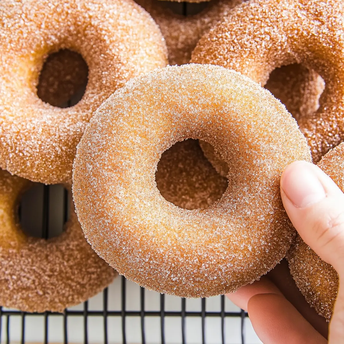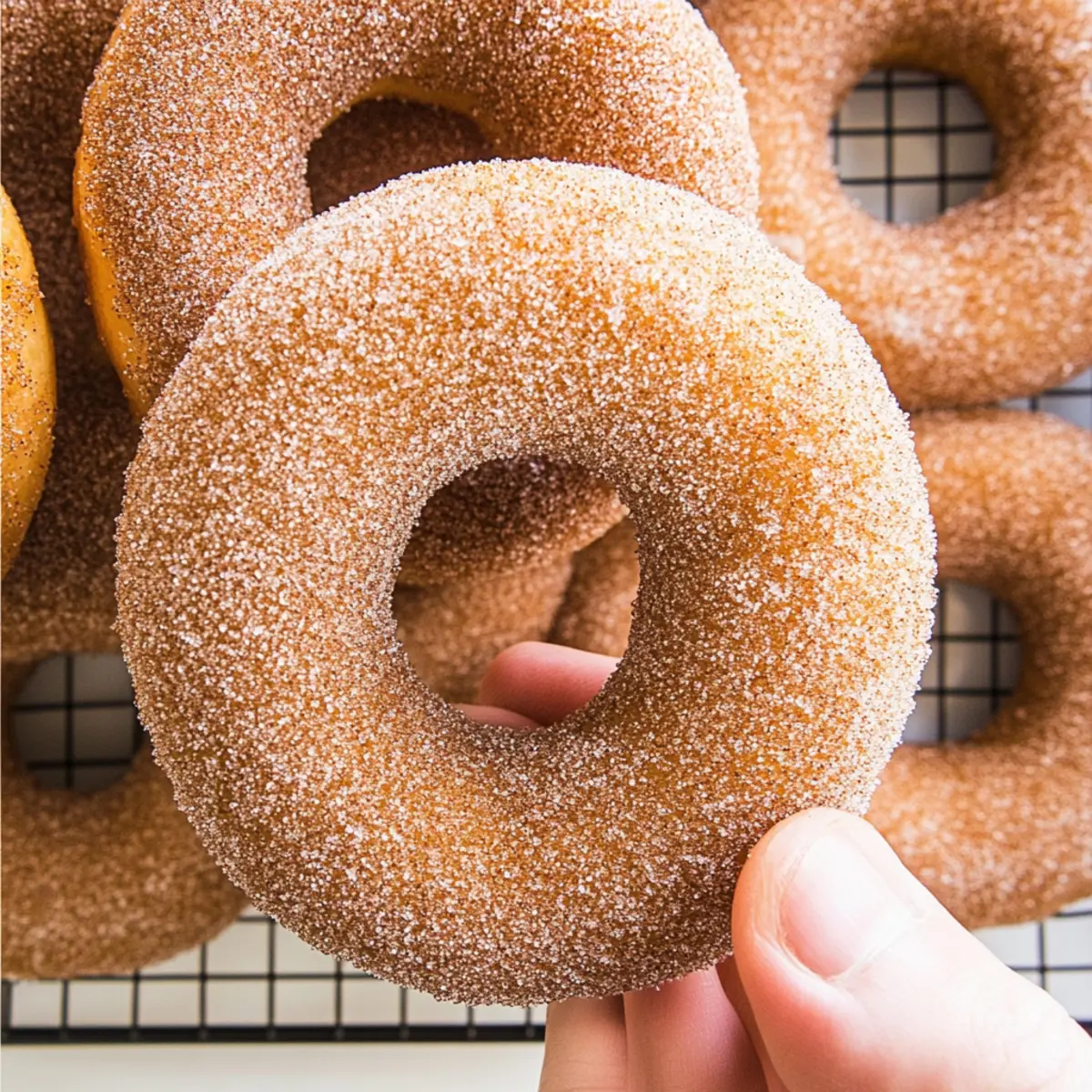 Jump to Recipe Print RecipeThere’s nothing quite like the comfort of sinking your teeth into a warm donut, and these Cinnamon Sugar Vegan Donuts deliver that blissful experience without compromising your values. With a crunch of sweet cinnamon sugar on the outside and a tender, fluffy inside, these treats can be ready in under 30 minutes. Not only are they quick to whip up, but they also embrace a guilt-free, plant-based lifestyle, making them perfect for everyone at any time of day. Imagine serving these delightful donuts at brunch, paired with your favorite brew, or savoring them as a sweet afternoon snack. Are you ready to dive into the world of easy homemade treats? Why Choose Cinnamon Sugar Vegan Donuts? Quick and Easy: These delicious donuts can be whipped up in just 30 minutes, making them perfect for those busy days. Guilt-Free Indulgence: With no dairy and wholesome ingredients, these vegan delights fit seamlessly into a healthy lifestyle. Fluffy Texture: Each bite is tender and soft, reminiscent of traditional donuts but without the grease. Versatile Flavor: Customize with chocolate chips or citrus zest to keep things exciting! Crowd-Pleaser: They’re a hit at brunch or a perfect afternoon snack—everyone will love them! Pair them with a cup of coffee or tea, similar to enjoying Vanilla Cinnamon Buttermilk or our delightful Raspberry Cinnamon Rolls. Dive into this easy bake, and you’ll find yourself hooked on these Cinnamon Sugar Vegan Donuts! Cinnamon Sugar Vegan Donuts Ingredients • Get ready to bake delightful donuts! For the Donuts Cooking Spray – Prevents sticking; use non-stick spray when greasing the donut pan. All-Purpose Flour – Provides structure; substitute with gluten-free flour for a gluten-free version. Baking Powder – Leavening agent that helps the donuts rise; ensure it is fresh for best results. Ground Cinnamon – Adds warmth and flavor; can be enhanced with nutmeg for additional spice. Baking Soda – Works with baking powder for extra lift. Kosher Salt – Enhances flavor; use regular salt if not available, but adjust quantity accordingly. Unsweetened Almond Milk – Provides moisture; substitute with any non-dairy milk like soy or oat for continuity in your Cinnamon Sugar Vegan Donuts. Granulated Sugar – Offers sweetness; coconut sugar or maple syrup can be used as alternatives, but may alter texture slightly. Melted Vegan Butter – Adds fat for moisture and richness; substitute with coconut oil if desired. Apple Cider Vinegar – Reacts with baking soda to create lift; can substitute with lemon juice for a similar effect. Pure Vanilla Extract – Boosts overall flavor; use imitation vanilla in a pinch, but pure is preferred. For the Cinnamon Sugar Coating Additional Granulated Sugar – Sweetens the coating; adjust sweetness by reducing sugar if preferred. Ground Cinnamon – Complements the sweetness for a classic finish; feel free to increase based on your cinnamon love! Step‑by‑Step Instructions for Cinnamon Sugar Vegan Donuts Step 1: Prep Donut Pan Begin by preheating your oven to 350°F (175°C). While it warms up, spray your donut pan generously with cooking spray to prevent sticking. Ensure every cavity is coated for easy removal later. This simple step is crucial for achieving that perfect bake for your delightful Cinnamon Sugar Vegan Donuts! Step 2: Mix Dry Ingredients In a large mixing bowl, whisk together 1 and 1/2 cups of all-purpose flour, 2 teaspoons of baking powder, 1/2 teaspoon of baking soda, 1 teaspoon of ground cinnamon, and 1/2 teaspoon of kosher salt. This step not only combines ingredients but also aerates them, ensuring your donuts will rise beautifully and have a light texture. Set this mixture aside while you prepare the wet ingredients. Step 3: Combine Wet Ingredients In a separate bowl, mix together 3/4 cup of unsweetened almond milk, 1/2 cup of granulated sugar, 1/4 cup of melted vegan butter, 1 tablespoon of apple cider vinegar, and 1 teaspoon of pure vanilla extract. Stir well until everything is smoothly combined and sugar is mostly dissolved. These wet ingredients will add moisture to your Cinnamon Sugar Vegan Donuts and create a delicious flavor base. Step 4: Combine Wet and Dry Gradually add the wet mixture to the bowl of dry ingredients, stirring gently until just combined. Be careful not to over-mix, as this could lead to dense donuts. The batter should be thick yet pourable, with a few lumps remaining. This careful blending will help ensure your donuts turn out fluffy and tender. Step 5: Fill Pan Using a spoon or a piping bag, fill each cavity of the prepared donut pan about two-thirds full with the batter. This helps create the perfect shape without overflowing during baking. Take your time to distribute the batter evenly for consistent baking, ensuring each of your Cinnamon Sugar Vegan Donuts will have a lovely, uniform shape. Step 6: Bake Place the filled donut pan in the preheated oven and bake for 10-12 minutes. Keep an eye on them, and look for a golden color on top. To check for doneness, insert a toothpick into the center of a donut; it should come out clean. Once done, remove the pan from the oven and let it cool for a few minutes. Step 7: Cool and Coat Once the donuts have cooled slightly in the pan, carefully transfer them to a wire rack to cool completely. Meanwhile, in a shallow dish, combine 1/4 cup of granulated sugar and 1 teaspoon of ground cinnamon. Once cooled, toss each donut in this cinnamon sugar mixture, ensuring they are well coated for that irresistible sweet finish. Enjoy your freshly made Cinnamon Sugar Vegan Donuts! How to Store and Freeze Cinnamon Sugar Vegan Donuts Room Temperature: Store your donuts in an airtight container for up to 3 days to keep them fresh and maintain their soft texture. Fridge: For extended freshness, you can refrigerate them in an airtight container; they will last up to a week but may lose some initial fluffiness. Freezer: Freeze the donuts ind