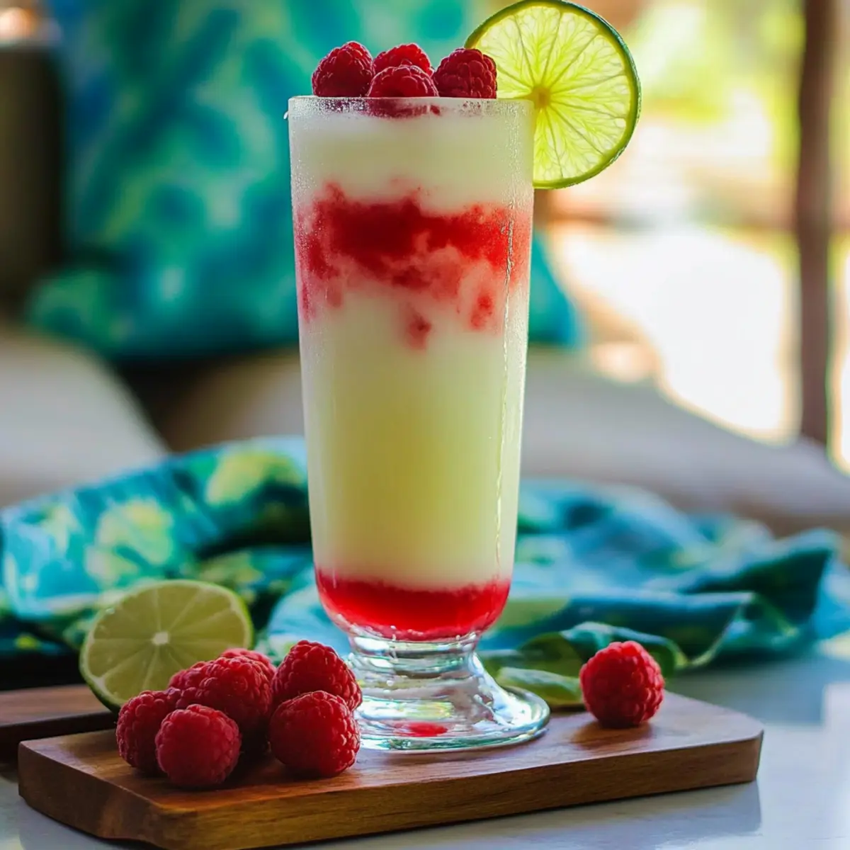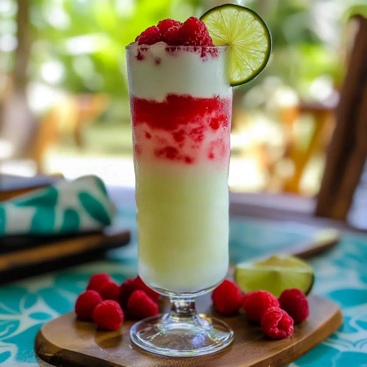 Jump to Recipe Print RecipeAs I savored the last rays of summer at a beachside gathering, the vibrant colors of my drink mirrored the sunset. The Coco-Raspberry Colada, a refreshing tropical cocktail, perfectly encapsulated that blissful moment. With its harmonious blend of sweet raspberries and creamy coconut, this cocktail offers quick prep and gorgeous presentation, making it the ideal choice for any warm-weather celebration or a cozy night in. Imagine treating yourself or your guests to a drink that not only pleases the eye but also tantalizes the taste buds. Are you ready to dive into this fruity delight and elevate your cocktail game? Why is Coco-Raspberry Colada a Must-Try? Refreshing flavor combinations: The sweet raspberries and creamy coconut create a tropical escape in every sip. Quick preparation: Ready in minutes, this cocktail allows you to spend more time enjoying and less time mixing! Stunning presentation: The vibrant layers make it a showstopper for any gathering, impressing guests with its visual appeal. Versatile options: Feel free to switch up the berries or rum for your personal touch, ensuring each cocktail is uniquely yours. Try pairing this with a light appetizer, like shrimp cocktails, for a perfect summer soirée! Coco-Raspberry Colada Ingredients For the Cocktail Rum – Adds a robust base; use light rum for smoothness or coconut rum for extra coconut flavor. Lime Juice – Provides bright acidity; freshly squeezed lime juice is best for optimal taste. Cream of Coconut – Introduces a rich, creamy texture; consider coconut cream for a less sweet substitute. Pineapple Juice – Infuses tropical sweetness; fresh juice is preferred, but bottled will work too. Raspberries – Contributes tartness and sweetness; fresh raspberries shine, though frozen can be used in a pinch. For the Garnish Lime Wheel – Enhances the drink’s visual appeal and adds a touch of citrus aroma to each sip. Sip into the flavors of summer with this delightful Coco-Raspberry Colada recipe! Step‑by‑Step Instructions for Coco-Raspberry Colada Step 1: Muddle the Base In a cocktail shaker, combine ½ cup of fresh raspberries with 1 ounce of freshly squeezed lime juice and 1 ounce of light rum. Using a muddler or the back of a spoon, gently crush the raspberries for about 30 seconds until their juices are released and create a vibrant mixture. This will be the flavorful base of your Coco-Raspberry Colada. Step 2: Shake the Raspberry Mixture Add ice to the shaker with the muddled raspberries and shake vigorously for about 15 seconds. You want to chill the mixture thoroughly while maintaining a bright red color. Once well-blended, use a fine mesh strainer to strain the raspberry mixture over a glass filled with crushed ice, creating the first vibrant layer of your cocktail. Step 3: Prepare the Coconut Layer In a separate shaker, combine 2 ounces of cream of coconut, 2 ounces of pineapple juice, and the remaining 1 ounce of rum. Fill the shaker with ice and shake for about 15 seconds until well combined and frothy. This creamy mixture will form the luxurious top layer of your Coco-Raspberry Colada. Step 4: Layer the Coconut Mixture Carefully pour the coconut mixture over the back of a spoon onto the raspberry layer in the glass. This technique helps to create a beautiful layered presentation, allowing the creamy topping to gently float above the vibrant raspberry base. Aim for a smooth transition between the two layers to enhance the visual appeal. Step 5: Garnish and Serve To finish your Coco-Raspberry Colada, garnish with fresh raspberries and a lime wheel placed on the rim of the glass. This not only beautifies the drink but also adds a refreshing aroma. Serve immediately, and watch as your guests admire the stunning layers before savoring each tropical sip! How to Store and Freeze Coco-Raspberry Colada Room Temperature: Cocktails are best enjoyed fresh and at room temperature for short periods; please avoid leaving this drink out for more than 1 hour to maintain its flavor and integrity. Fridge: If you have leftover Coco-Raspberry Colada, store it in the fridge for up to 1 day in an airtight container. Give it a gentle stir before serving again, as layers may separate. Freezer: While freezing the whole cocktail isn’t recommended due to texture loss, you can freeze individual components like raspberries or pineapple juice for up to 3 months. Just blend them with fresh ingredients when you’re ready to enjoy! Reheating: Since this drink is best served cold, there’s no need for reheating; simply refresh it by shaking with ice again if stored in the fridge. Coco-Raspberry Colada Variations & Substitutions Feel free to put your own spin on the Coco-Raspberry Colada and create a custom experience that tantalizes your taste buds! Berry Twist: Substitute raspberries with strawberries or blackberries for a new fruity flavor profile that uplifts the cocktail. Rum Varieties: Experiment with coconut rum or spiced rum instead of regular rum for an exciting twist that adds unique flavors. Non-Alcoholic Delight: For a family-friendly version, swap out the rum with coconut water and increase the fruit juices for a refreshing mocktail. Creamy Alternatives: Use coconut cream in place of cream of coconut for a slightly less sweet, yet still indulgently creamy cocktail. Add a Kick: Incorporate a splash of ginger beer or a dash of cayenne for a spicy undertone that livens up each sip. Fruity Infusions: Blend in sliced mango or pineapple along with the raspberries for an exotic, tropical fiesta in your glass. Frozen Bliss: Blend all the ingredients with ice for a slushier texture, perfect for those hot summer days or backyard barbecues. Layered Colors: For a more vibrant appearance, add a layer of blended kiwi or passion fruit on top for a colorful visual that surprises and delights. Remember, experimenting is part of the fun! Feel free to check out more delightful creations like these in our cocktails a