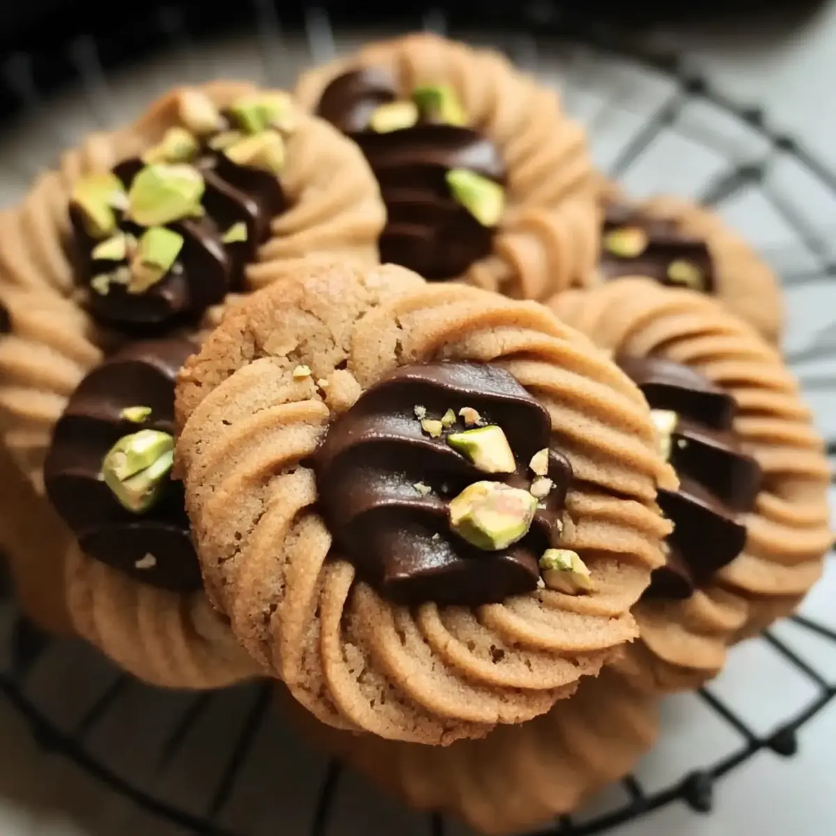 Jump to Recipe Print RecipeAs I sift through flour and measure out my beloved instant coffee, the kitchen fills with a warm, inviting aroma that instantly transports me back to cozy holiday gatherings. These Coffee Butter Cookies, with their crisp edges and mouthwatering soft centers, are a nostalgic nod to my favorite festive treats. Perfect for bringing a touch of joy to any occasion, they not only deliver a delightful coffee kick but also come together effortlessly, making them ideal for both novice and seasoned bakers. Plus, with options for dairy-free, nut-free, and gluten-free adaptations, you can share these scrumptious delights with everyone. Ready to elevate your baking game? Let’s dive into the recipe and unleash the magic of these irresistible cookies! Why Are These Cookies a Must-try? Irresistible Coffee Flavor: The robust coffee infusion elevates these cookies to a whole new level, rich enough to satisfy any coffee lover’s dreams. Easy Adaptations: With simple swaps, you can make these cookies dairy-free, nut-free, or gluten-free, ensuring everyone at your gathering can partake. Quick to Prepare: In just a few steps, you’ll transform basic ingredients into delightful treats, perfect for last-minute baking sessions. Texture Perfected: Enjoy a blissful balance of crispy edges and soft centers that melt in your mouth, reminiscent of your favorite coffee shop delights. Great for Sharing: Ideal for festive occasions, pair them with a warm cup of spiced chai tea or even a scoop of vanilla ice cream for an extra indulgence! Coffee Butter Cookies Ingredients • Get ready to create something delightful! For the Cookie Dough Instant Coffee – Provides the distinct coffee flavor; use robust granules for a stronger taste. Hot Water – Dissolves the instant coffee; remember to let it cool slightly before mixing. Icing Sugar – Adds sweetness and lightens the texture; powdered sugar can be used as a substitute. Unsalted Butter – The main fat that ensures rich flavor and tenderness; it should be at room temperature for best results. Egg – Binds the ingredients and adds moisture; one large beaten egg is ideal for optimal consistency. All-Purpose Flour – Offers structure to the cookies; a gluten-free flour blend works if needed. Cornstarch – Lightens the texture; avoid substitutions unless needed for allergens. Ground Cinnamon – Infuses warm spice; feel free to adjust the quantity to taste. For the Topping Melted Dark Chocolate – Ideal for dipping; white chocolate can replace it for a sweeter option. Chopped Pistachios – Adds a crunchy texture; walnuts or almonds can be substituted for variety. These Coffee Butter Cookies will not only satisfy your sweet tooth, but also offer options for everyone, making them a perfect treat for any gathering! Step‑by‑Step Instructions for Coffee Butter Cookies Step 1: Prepare Coffee Mixture In a small bowl, dissolve 1 tablespoon of instant coffee in 2 tablespoons of hot water. Allow the mixture to cool for a few minutes until it reaches room temperature to preserve the robust coffee flavor for your Coffee Butter Cookies. Step 2: Cream Butter and Sugar Using a mixing bowl and an electric mixer, beat 1 stick of softened unsalted butter with 1 cup of icing sugar until the mixture is fluffy and light, about 3–4 minutes. This step creates a smooth base that will enhance the overall texture of your cookies. Step 3: Incorporate Egg Add 1 large beaten egg to the creamed butter and sugar mixture, mixing until fully combined. The egg acts as a binding agent and adds moisture to the cookies, helping them achieve that delightful melt-in-your-mouth consistency. Step 4: Whisk Dry Ingredients In a separate bowl, combine 2 cups of all-purpose flour, 1 tablespoon of cornstarch, and 1 teaspoon of ground cinnamon. Whisk the dry ingredients thoroughly to ensure they are evenly mixed, which is crucial for the balanced flavor of your Coffee Butter Cookies. Step 5: Combine Mixtures Gradually fold the cooled coffee mixture into the creamed butter mixture, mixing gently. Next, slowly add the dry ingredients, folding until just combined. Be careful not to over-mix; you want a smooth dough that retains a bit of air for the perfect texture. Step 6: Pipe Cookies Transfer the cookie dough into a piping bag fitted with a star tip. Pipe shapes onto lined baking trays, about 2 inches apart to allow for spreading. This method gives the Coffee Butter Cookies their charming ridged designs that will hold the chocolate dip beautifully. Step 7: Chill Dough Place the piped cookies in the freezer for 5-10 minutes. This chilling step helps maintain their shape during baking, ensuring your cookies come out looking as delightful as they taste. Step 8: Bake Preheat your oven to 350°F (175°C). Bake the cookies for about 8 minutes, or until they appear lightly golden around the edges. Keep an eye on them to avoid over-baking; the center should remain soft for that melt-in-your-mouth experience. Step 9: Decorate Once the cookies have cooled, dip the edges into melted dark chocolate, allowing the excess to drip off. Sprinkle the dipped edges with chopped pistachios for an added crunch and visual appeal, then set them aside to let the chocolate firm up. Make Ahead Options These Coffee Butter Cookies are perfect for busy home cooks looking to save time! You can prepare the cookie dough up to 24 hours in advance—simply mix the dough as instructed, then wrap it tightly in plastic wrap and refrigerate. This not only enhances the flavors but also helps maintain the cookie’s delicious texture. When you’re ready to bake, allow the dough to soften slightly at room temperature, then pipe and chill as directed before baking. Additionally, once baked and cooled, the cookies can be stored in an airtight container for up to 1 week or frozen for up to 3 months. Enjoy the indulgent taste of freshly made Coffee Butter Cookies with minimal last-minute effort! What to Serve with Irresis