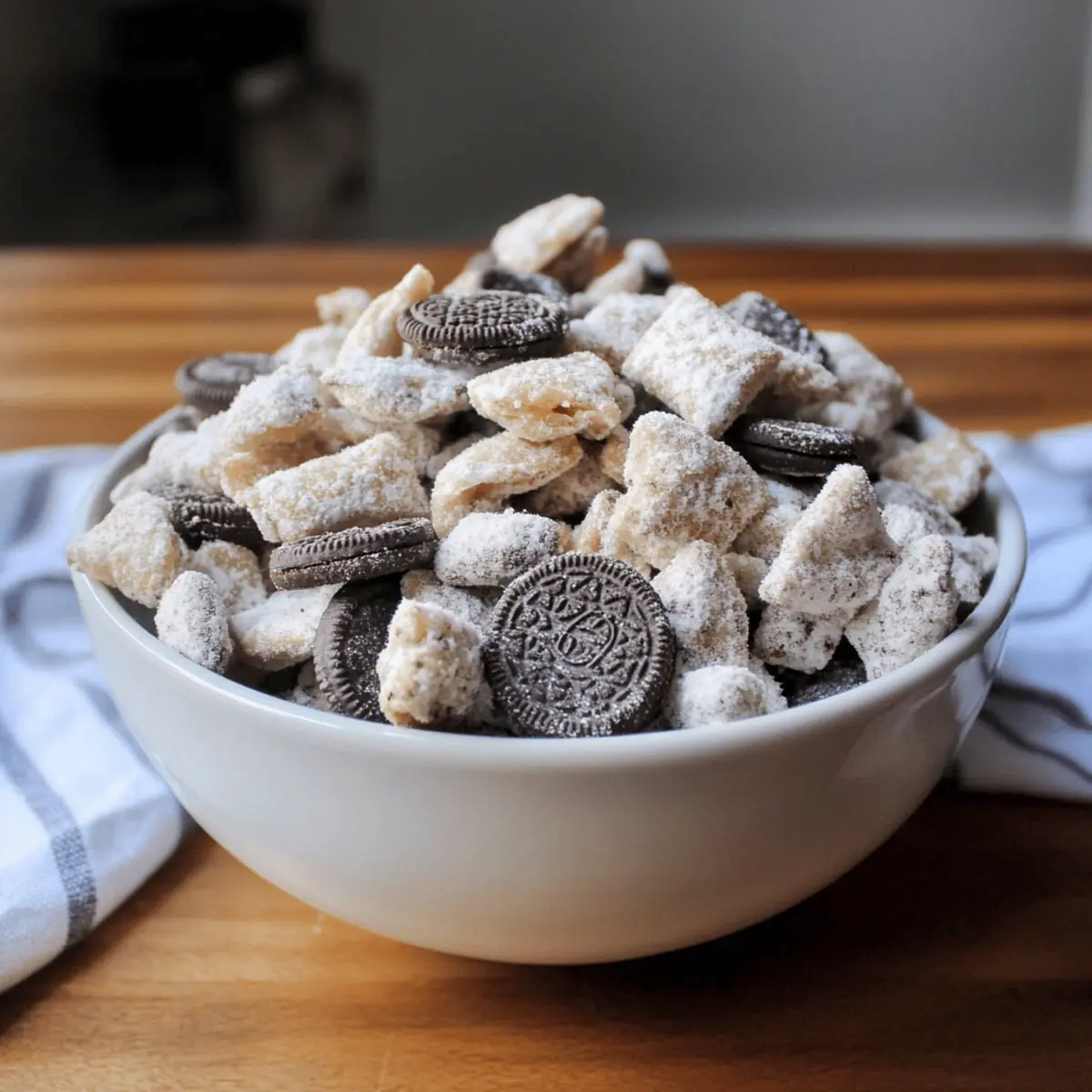Indulge in Cookies and Cream Puppy Chow, a nostalgic mix of Oreos, chocolate, and white chocolate that's perfect for any occasion.