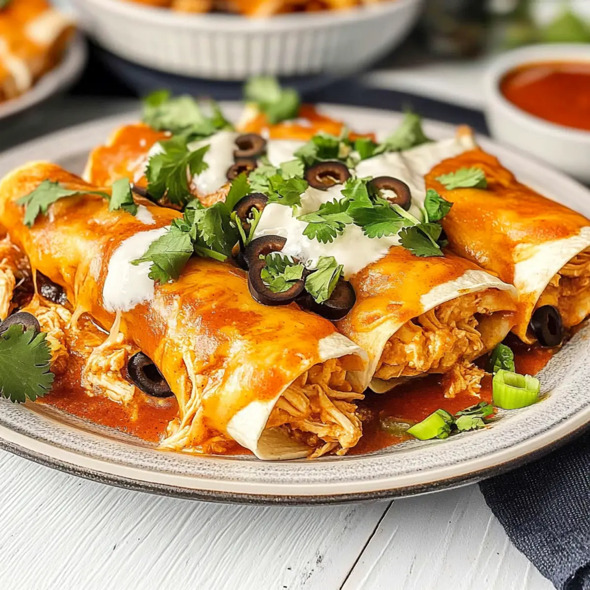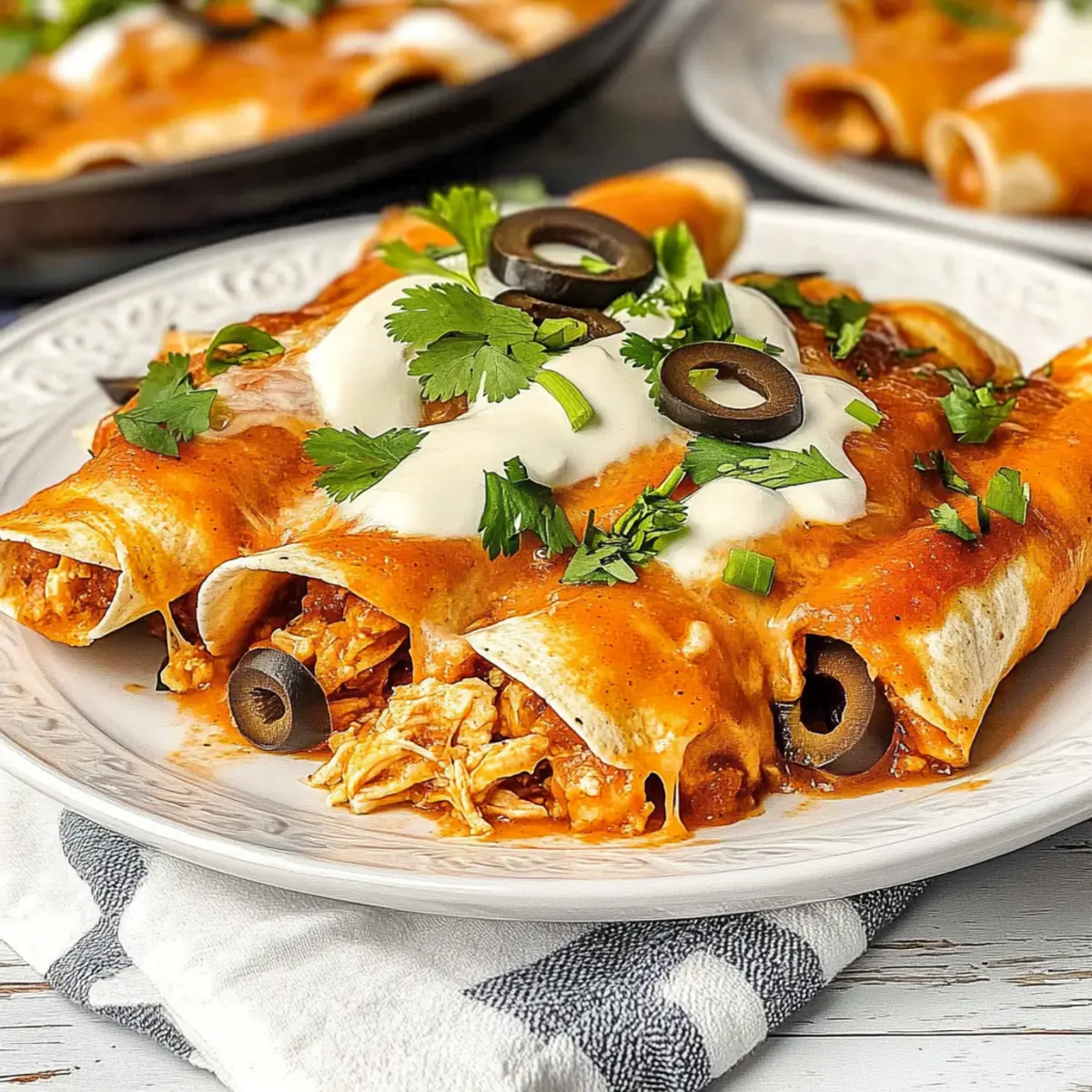 Jump to Recipe Print RecipeThe aroma of sautéing onions and garlic can turn any ordinary evening into a cozy culinary escape. That’s the magic of my Cream Cheese Chicken Enchiladas; they bring all the comfort of home in one creamy, cheesy dish. This recipe is a true crowd-pleaser, offering an easy dinner solution on busy weeknights while delightfully packing in flavors that rival your favorite Mexican restaurant. Plus, these enchiladas are incredibly versatile—swap in rotisserie chicken for an effortless prep or customize with your choice of fresh toppings. Ready to impress and savor the satisfying warmth of homemade comfort food? Let’s dive into this delicious adventure together! Why Are Cream Cheese Chicken Enchiladas So Irresistible? Comforting, this recipe is your go-to for cozy weeknight dinners. Cheesy goodness awaits in every bite, with a rich cream cheese filling complemented by savory spices. Quick and easy to make, you’ll have a delicious meal on the table in under 30 minutes! Customizable for all taste preferences, from adding spicy jalapeños to swapping in black beans. Perfect for gathering with friends or family, each enchilada wraps warmth and joy, mirroring the classic flavors that make Mexican cuisine so beloved. Feeling adventurous? Try pairing them with a refreshing taco salad for a complete feast! Cream Cheese Chicken Enchiladas Ingredients • Embrace a delicious adventure in your kitchen with these Cream Cheese Chicken Enchiladas! For the Filling Vegetable Oil – Used for sautéing; you can substitute it with olive oil for a healthier twist. Shredded Chicken – The star protein; rotisserie chicken works wonders for a quick meal. Onion, Diced – Adds a layer of flavor; yellow or white onions offer the best results. Garlic, Minced – Elevates the savory essence; fresh garlic is recommended over powdered. Cream Cheese – Brings a rich, creamy texture; feel free to substitute with lower-fat cream cheese or Greek yogurt for lightening it up. Diced Green Chiles – Introduces a mild heat; omit if you prefer a milder dish. Chili Powder – Offers warmth and flavor depth; adjust for your heat preference. Cumin – Essential for a Tex-Mex touch; adds earthy notes to the filling. Salt and Black Pepper – Crucial for seasoning; adjust according to your taste. For the Enchiladas Flour Tortillas (6-inch) – Perfect for wrapping; corn tortillas serve as a gluten-free alternative. Red Enchilada Sauce – The flavorful base sauce; consider green sauce for a change in taste profile. Shredded Mexican Cheese Blend – A melty topping that makes every bite irresistible; switch it up with cheddar or Monterey Jack if desired. For Optional Garnishes Sour Cream – Adds creaminess and balances spiciness. Chopped Cilantro – Enhances freshness and visual appeal. Sliced Jalapeños – For those who love extra heat. Avocado and Black Olives – Great for adding richness and extra flavors. Diced Tomatoes and Sliced Green Onions – Brighten up your dish while adding extra flavor and crunch. Now, gather your ingredients and get ready to create a comforting and delicious family meal featuring these Cream Cheese Chicken Enchiladas! Step‑by‑Step Instructions for Cream Cheese Chicken Enchiladas Step 1: Preheat and Prepare the Dish Begin by preheating your oven to 375°F (190°C). While the oven warms up, grab a 9×13-inch baking dish and lightly grease it with oil or cooking spray to prevent sticking. This will help your Cream Cheese Chicken Enchiladas bake evenly and get a beautifully golden top. Step 2: Sauté the Aromatics In a large skillet, heat 2 tablespoons of vegetable oil over medium heat. Once the oil is shimmering, add 1 diced onion and sauté for about 5 minutes until softened and translucent. Toss in 2 minced garlic cloves and continue cooking for another minute, allowing their aroma to fill your kitchen and signal that it’s time for the next step. Step 3: Create the Creamy Filling Lower the heat slightly and stir in 8 ounces of cream cheese, along with 1 can of diced green chiles, 1 teaspoon of chili powder, and 1 teaspoon of cumin. Mix thoroughly until the cream cheese melts and creates a smooth, creamy filling. Season with salt and black pepper to taste, ensuring a balanced flavor throughout your Cream Cheese Chicken Enchiladas. Step 4: Add the Chicken Fold in 2 cups of shredded chicken, combining it well with the creamy mixture. Cook for an additional 2-3 minutes until the chicken is heated through and well-coated in the flavorful cream cheese blend. This filling is not only creamy but also brimming with delicious Tex-Mex flavor ready to be wrapped in tortillas. Step 5: Assemble the Enchiladas Spread about ½ cup of red enchilada sauce evenly on the bottom of the greased baking dish. Take a 6-inch flour tortilla, spoon approximately ¼ cup of the fill mixture into the center, and roll it tightly, placing it seam-side down in the dish. Repeat with the remaining tortillas until the filling is used up, forming a cozy row of enchiladas. Step 6: Top with Sauce and Cheese Once all your Cream Cheese Chicken Enchiladas are snugly arranged in the baking dish, pour the remaining enchilada sauce generously over the top. Sprinkle a generous handful of shredded Mexican cheese blend evenly, ensuring every bite will be ooey-gooey when baked. Step 7: Bake to Perfection Transfer your prepared baking dish to the preheated oven and bake uncovered for about 20-25 minutes. Keep an eye on them; they are done when the cheese is melted, bubbly, and slightly golden at the edges. This is the tantalizing moment when your kitchen will smell like a fiesta! Step 8: Serve and Garnish After baking, allow the Cream Cheese Chicken Enchiladas to cool for 5 minutes before serving. This brief wait helps the flavors meld beautifully. Garnish with your choice of sour cream, diced tomatoes, sliced green onions, or fresh cilantro for an inviting presentation that enhances both appearance and flavor!