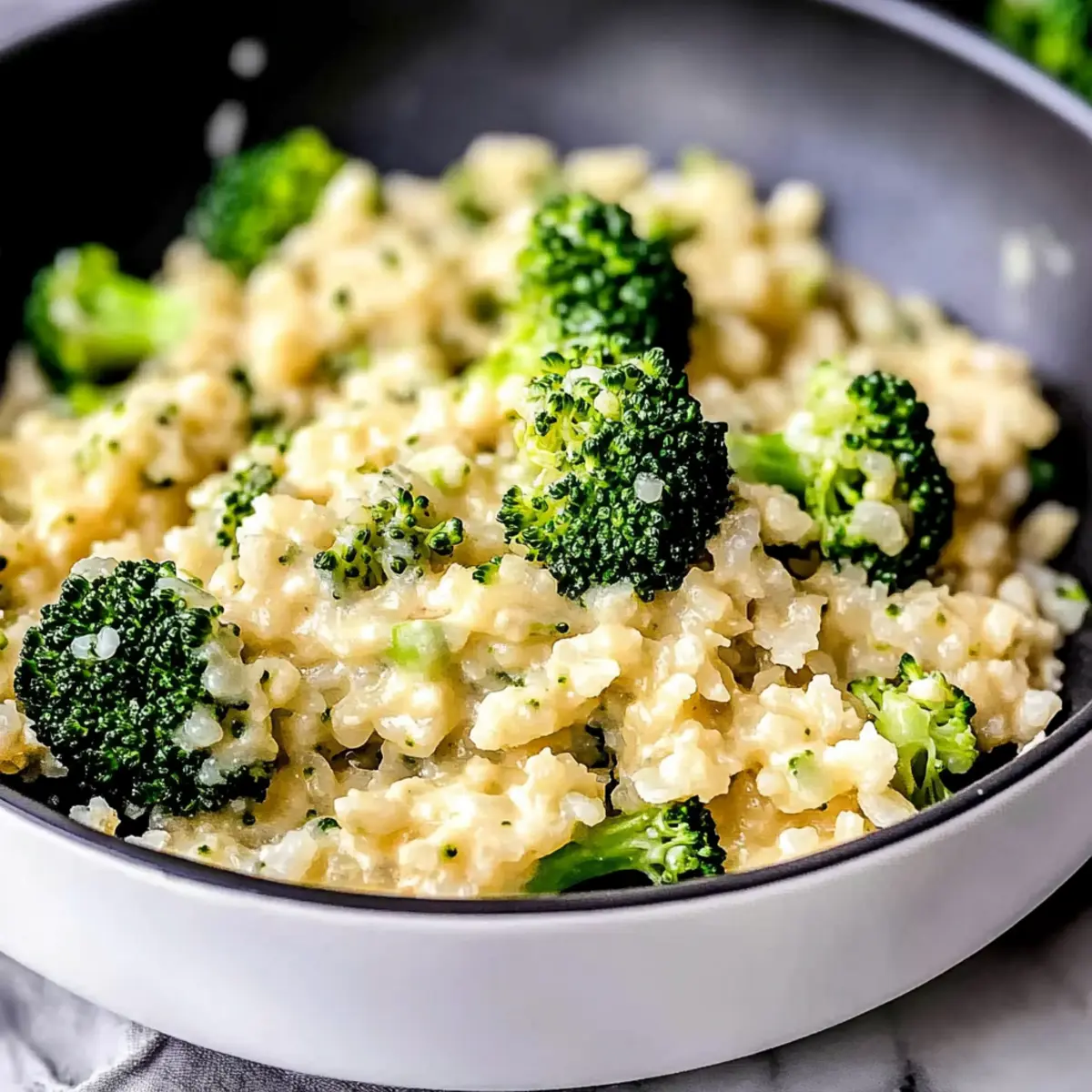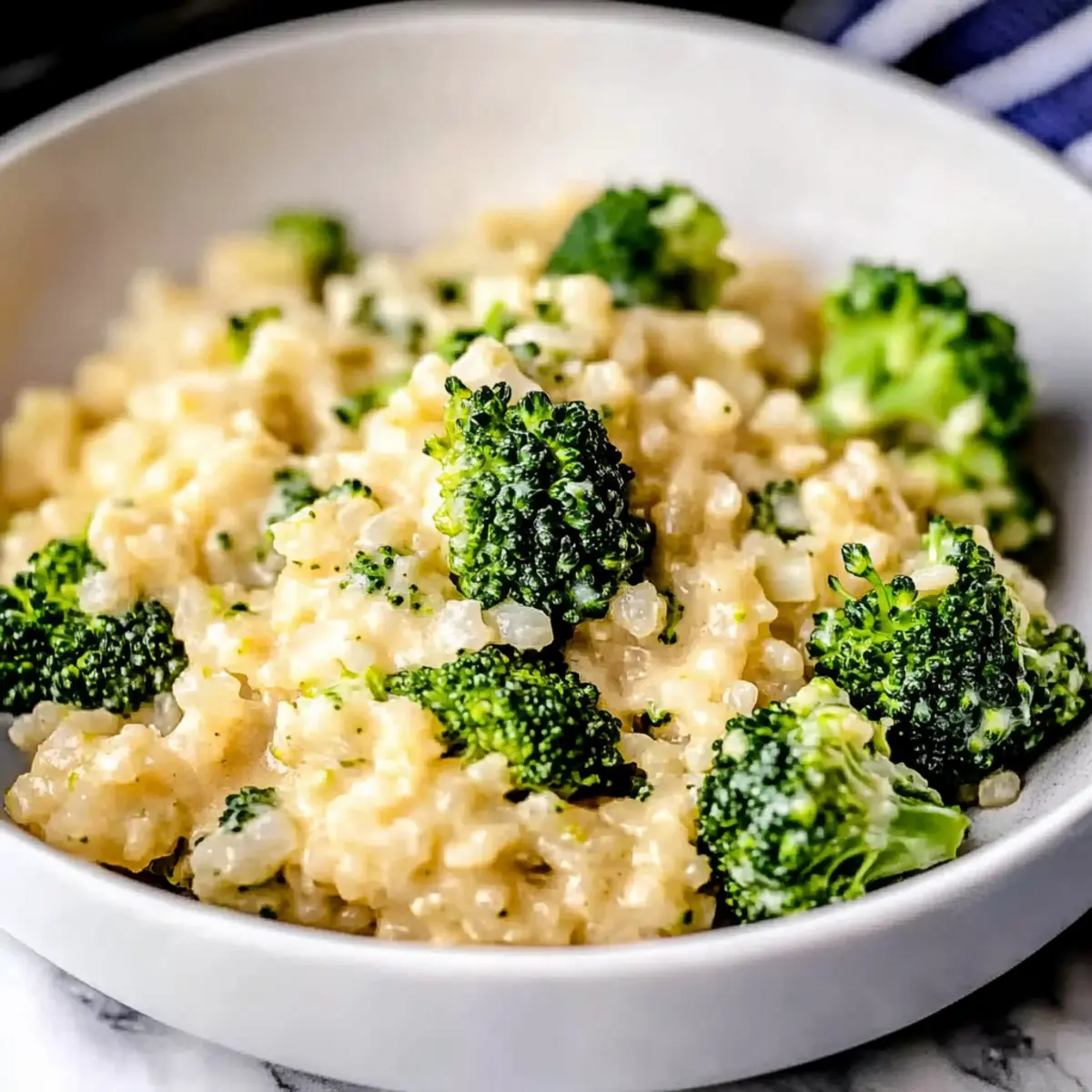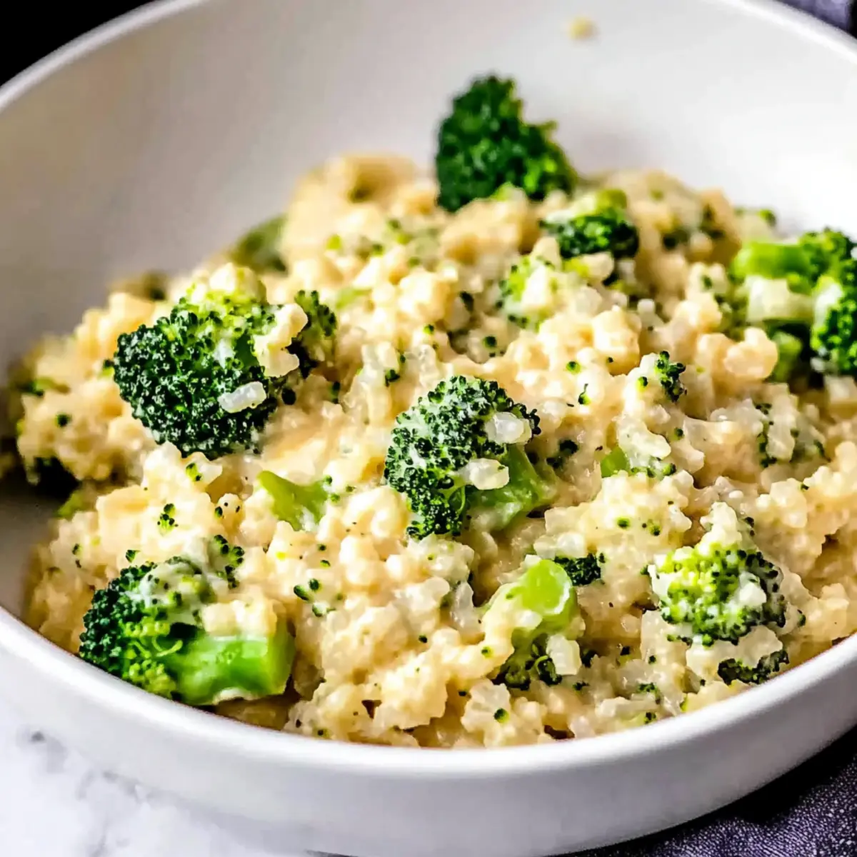 Jump to Recipe Print RecipeAs I was rummaging through my fridge, aiming to rescue some forgotten vegetables, I stumbled upon a treasure! Behold, the magic of Creamy Cheesy Broccoli Cauliflower Rice was born—an easy, low-carb side dish that can transform any meal into a delectable feast. This quick recipe not only satisfies your cheesy cravings but also packs in nutrients, making it both kid-friendly and a grown-up staple. In less than 30 minutes, you can turn leftovers into a comforting dinner that pleases everyone at the table. So, who’s ready to make a cheesy veggie masterpiece that might even replace your usual rice? Let’s dive in! Why is this dish a must-try? Simplicity and Speed: This recipe is a breeze to make, requiring just under 30 minutes from start to finish. Nutritious Deliciousness: Packed with essential vitamins from broccoli and cauliflower, it’s a guilt-free indulgence that the whole family can enjoy. Versatile Options: Whether served as a vibrant side or a main vegetarian dish, it pairs wonderfully with grilled proteins or can stand alone. Looking for more options? Try enjoying it alongside my Pesto Chicken Broccoli or Cheesy One Pot for a complete meal! Kid-Friendly Flavor: The creamy cheesy goodness disguises the veggies so well that even the pickiest eaters will ask for seconds. Customizable: Feel free to mix in proteins or other vegetables to put your own spin on this comforting, cheesy classic! Ingredients for Creamy Cheesy Broccoli Cauliflower Rice For the Base • Cauliflower (4 cups, riced) – The star vegetable providing a light, low-carb base; fresh is best, but frozen works if moisture is managed. • Broccoli (2 cups, riced) – Packed with vitamins and complements the cauliflower flavor; always rice it for even cooking. For the Sauce • Extra Virgin Olive Oil (2 tablespoons) – Infuses healthy fats and enhances the dish’s flavor; essential for sautéing the vegetables. • Butter (4 tablespoons) – Adds richness to the cheese sauce; can be swapped with margarine if needed. • Heavy Whipping Cream (1/2 cup) – Creates that luscious, creamy texture; substitute with milk or half-and-half at your own risk! • Mustard Powder (1 teaspoon) – Introduces a tangy depth that elevates the cheese flavor; feel free to use yellow or Dijon mustard as a substitute. • Sharp Cheddar Cheese (8 ounces, shredded) – Delivering robust, cheesy goodness that binds everything together; always shred from a block for best melting. For Seasoning • Salt (1/2 teaspoon) – Brings out all the flavors in this dish; adjust to your taste preference. • Pepper (1/4 teaspoon) – Adds a mild kick; opt for white pepper for an alternative taste. Transform your leftovers into this delightful Creamy Cheesy Broccoli Cauliflower Rice that’s sure to impress everyone at your dinner table! Step‑by‑Step Instructions for Creamy Cheesy Broccoli Cauliflower Rice Step 1: Sauté Vegetables In a large skillet, heat 2 tablespoons of extra virgin olive oil over medium-high heat. Once shimmering, add 4 cups of riced cauliflower and 2 cups of riced broccoli. Season with ½ teaspoon salt and ¼ teaspoon pepper. Cook the mixture for about 8 to 9 minutes, stirring occasionally, until the vegetables are tender and vibrant. Step 2: Prepare Cheese Sauce Remove the sautéed vegetables from the skillet and set them aside. In the same skillet, melt 4 tablespoons of butter over medium heat. Whisk in ½ cup of heavy whipping cream and 1 teaspoon of mustard powder, allowing it to bubble and thicken for 2 to 3 minutes. You’ll know it’s ready when it’s slightly reduced and glossy. Step 3: Melt Cheese Lower the heat to low and add 8 ounces of shredded sharp cheddar cheese to the bubbling cream mixture. Stir continuously until the cheese is completely melted and forms a smooth, creamy sauce. The texture should be velvety and indulgent, ideal for enveloping your veggies in this cheesy delight. Step 4: Combine and Heat Through Return the sautéed cauliflower and broccoli to the skillet with the creamy cheese sauce. Mix everything thoroughly until the vegetables are evenly coated. Cook for an additional 2 to 3 minutes, allowing the flavors to meld together and heat through. This final step ensures your Creamy Cheesy Broccoli Cauliflower Rice is perfectly warm and ready for serving! Creamy Cheesy Broccoli Cauliflower Rice Variations Feel free to explore your culinary creativity with these delightful twists! Protein-Packed: Add cooked chicken, bacon, or diced ham for a heartier meal that satisfies even the hungriest of appetites. This tweak not only boosts flavor but also transforms your side dish into a cozy main course. Cheese Swap: Instead of cheddar, try Monterey Jack or Gouda for a unique flavor twist. The smooth melting qualities of these cheeses add a different richness that will surprise your taste buds. Spicy Kick: Incorporate red pepper flakes or diced jalapeños to take your dish to spicy heights. It’s a fantastic way to add some zing to the creamy goodness, perfect for those who love a little heat in every bite. Herb Upgrade: Add fresh herbs like thyme or parsley for a refreshing burst of flavor. Just a sprinkle enhances the dish and adds a beautiful pop of color, making it even more inviting. Veggie Medley: Mix in spinach, peas, or bell peppers for added nutrients and texture. This creates a vibrant veggie rainbow, ensuring every bite is packed with both flavor and visual appeal. Want even more ideas? If you’re in the mood for something different, check out these comforting favorites: the amazing Shrimp Over Mashed or the delightful Turkey Stroganoff! Nutty Crunch: Sprinkle in toasted almonds or walnuts for a delightful crunch. This adds a wonderful textural contrast to the creamy dish while complementing the flavors beautifully. Creamy Spin: For a richer dish, swap half of the heavy cream for a blend of cream cheese and milk. This will intensify the creaminess and create a velvety