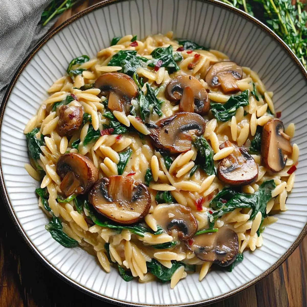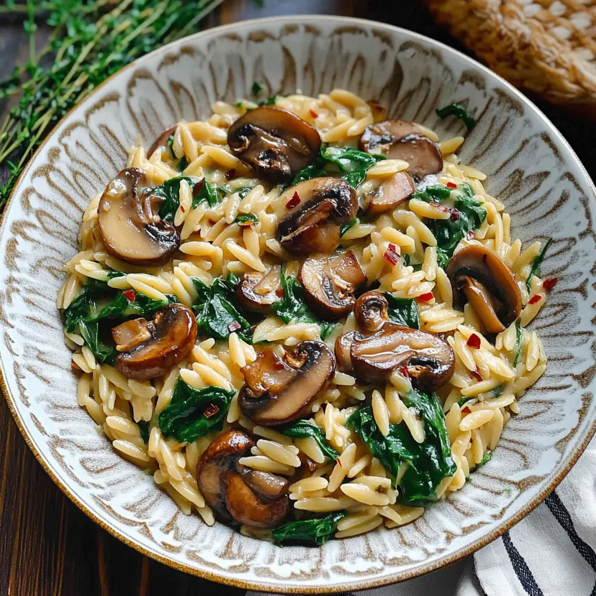 Jump to Recipe Print Recipe“Who knew a weeknight dinner could feel like a warm hug?” As I stirred the luscious Creamy Spinach and Mushroom Orzo in my skillet, the delightful aroma filled my kitchen, instantly melting the stresses of the day away. This one-pan wonder is your new go-to, ready in just 30 minutes and boasting the rich flavors of earthy mushrooms and vibrant spinach. Not only is this dish a vegetarian delight, it’s also incredibly easy to whip up, making it ideal for those evenings when you’re craving homemade comfort without the hours of prep. Plus, its gluten-free options mean everyone can enjoy it! Are you ready for a culinary adventure that transforms mere ingredients into a soul-soothing meal? Let’s dive in! Why is Creamy Spinach and Mushroom Orzo Amazing? Simplicity at Its Finest: With just one pan and 30 minutes, preparing this dish will be a breeze, allowing you more time to enjoy your meal. Luxurious Flavors: The rich combination of cream, mushrooms, and spinach creates a flavor explosion that will elevate any weeknight. Healthy & Hearty: Packed with nutrients from fresh spinach and earthy mushrooms, this dish is a wholesome choice for vegetarians and health-conscious eaters alike. Versatile Delight: Feel free to add proteins like grilled chicken or shrimp, or opt for gluten-free orzo to cater to all dietary preferences. Endless Comfort: This dish serves as a satisfying main course or a side. Pair it beautifully with grilled fish or meats, or simply enjoy it alone. Once you’ve made this creamy masterpiece, you might also want to try it alongside our delicious Mac Cheese Casserole for a truly comforting dinner experience! Creamy Spinach and Mushroom Orzo Ingredients For the Base Olive Oil – Fat for sautéing mushrooms; feel free to use any vegetable oil if needed. Baby Bella Mushrooms (8 oz) – Adds umami flavor and texture; can substitute with cremini or button mushrooms. Salt and Pepper – Essential seasonings for enhancing flavor; adjust to taste. Orzo (1 cup, uncooked) – Provides the base carbohydrate; consider using gluten-free orzo for a gluten-free option. Chicken Broth (2 cups) – Adds depth and richness; substitute with vegetable broth for a vegetarian version. Garlic (5 cloves, minced) – Infuses flavor; garlic powder (1-2 teaspoons) can be used in a pinch. Italian Seasoning (½ teaspoon) – A blend of herbs for flavor enhancement; dried herbs like thyme or oregano work well. Paprika (½ teaspoon) – Adds mild heat and color; smoked paprika offers a unique twist. For the Creamy Filling Fresh Spinach (5 oz) – Provides freshness and nutrients; swap it with kale or Swiss chard if desired. Heavy Cream (½ cup) – Adds creaminess; low-fat alternatives like unsweetened coconut milk or thin Greek yogurt can replace it. Red Pepper Flakes (¼ teaspoon) – For a touch of heat; adjust based on your spice preference. This delicious Creamy Spinach and Mushroom Orzo is bound to become a weeknight favorite that will warm your heart and satisfy your cravings! Step‑by‑Step Instructions for Creamy Spinach and Mushroom Orzo Step 1: Cook Mushrooms Begin by heating 2 tablespoons of olive oil in a large skillet over medium-high heat. Add the sliced baby bella mushrooms, seasoning them generously with salt and pepper. Sauté for about 5 minutes until the mushrooms are browned and fragrant. Once they are ready, remove half the mushrooms from the skillet and set them aside for garnishing later. Step 2: Prepare Orzo In the same skillet, pour in 1 cup of uncooked orzo along with 2 cups of chicken broth. Add in 5 minced garlic cloves, ½ teaspoon of Italian seasoning, ½ teaspoon of paprika, and a pinch of salt. Stir the mixture and bring it to a boil, then reduce the heat to a simmer. Cook for about 5-10 minutes, stirring occasionally, until the orzo is tender and has absorbed most of the liquid. Step 3: Add Spinach & Cream During the last 5 minutes of cooking, gently fold in 5 ounces of fresh spinach, allowing it to wilt into the warm mixture. Gradually stir in ½ cup of heavy cream, being careful to keep the heat on low to medium. Avoid boiling to keep the cream smooth, and let everything simmer together for a few minutes until properly combined. Step 4: Combine & Serve Finally, stir in the reserved mushrooms to the creamy orzo mixture, allowing their flavors to meld into the dish. Taste and adjust seasoning with additional salt or paprika if desired. Serve the Creamy Spinach and Mushroom Orzo hot, garnished with a sprinkle of red pepper flakes for that perfect touch of heat. Creamy Spinach and Mushroom Orzo Variations Feel free to mix it up with these delightful suggestions that will elevate your Creamy Spinach and Mushroom Orzo to new heights. Protein Boost: Add cooked chicken, shrimp, or steak for an added layer of flavor and heartiness. Each option creates a satisfying meal that keeps you full longer. Sun-Dried Tomato Surprise: Toss in a handful of sun-dried tomatoes for a burst of sweetness and vibrant color, enhancing the dish’s visual appeal and flavor profile. Creamy Alternative: Swap the heavy cream with unsweetened coconut milk or thin Greek yogurt for a dairy-free twist while maintaining that rich creaminess. Leafy Greens: Substitute fresh spinach with kale or Swiss chard for a change in texture and added nutrients, bringing a new depth to your dish. Heat It Up: Incorporate crushed red pepper flakes or diced jalapeños to spice things up. Adjust the amount based on your comfort with heat for a personalized kick. Nutty Flavor: Sprinkle in some toasted pine nuts or walnuts for a delightful crunch and rich nuttiness that complements the creamy orzo wonderfully. Cheesy Infusion: Mix in feta or Parmesan cheese just before serving to create a melty, savory finish that brings all the flavors together beautifully. Mediterranean Twist: Add olives, capers, or artichoke hearts for a Mediterranean flair that packs the dish with bold and exciting flavor