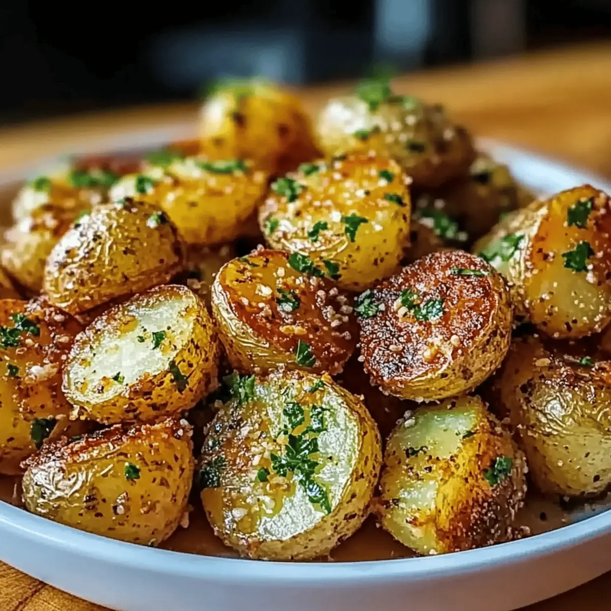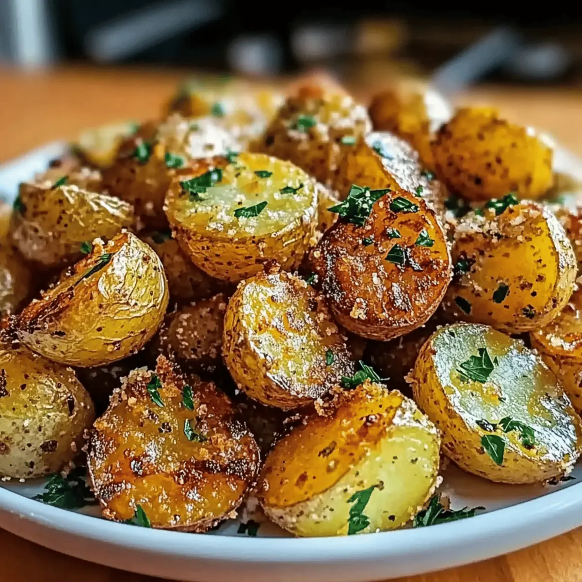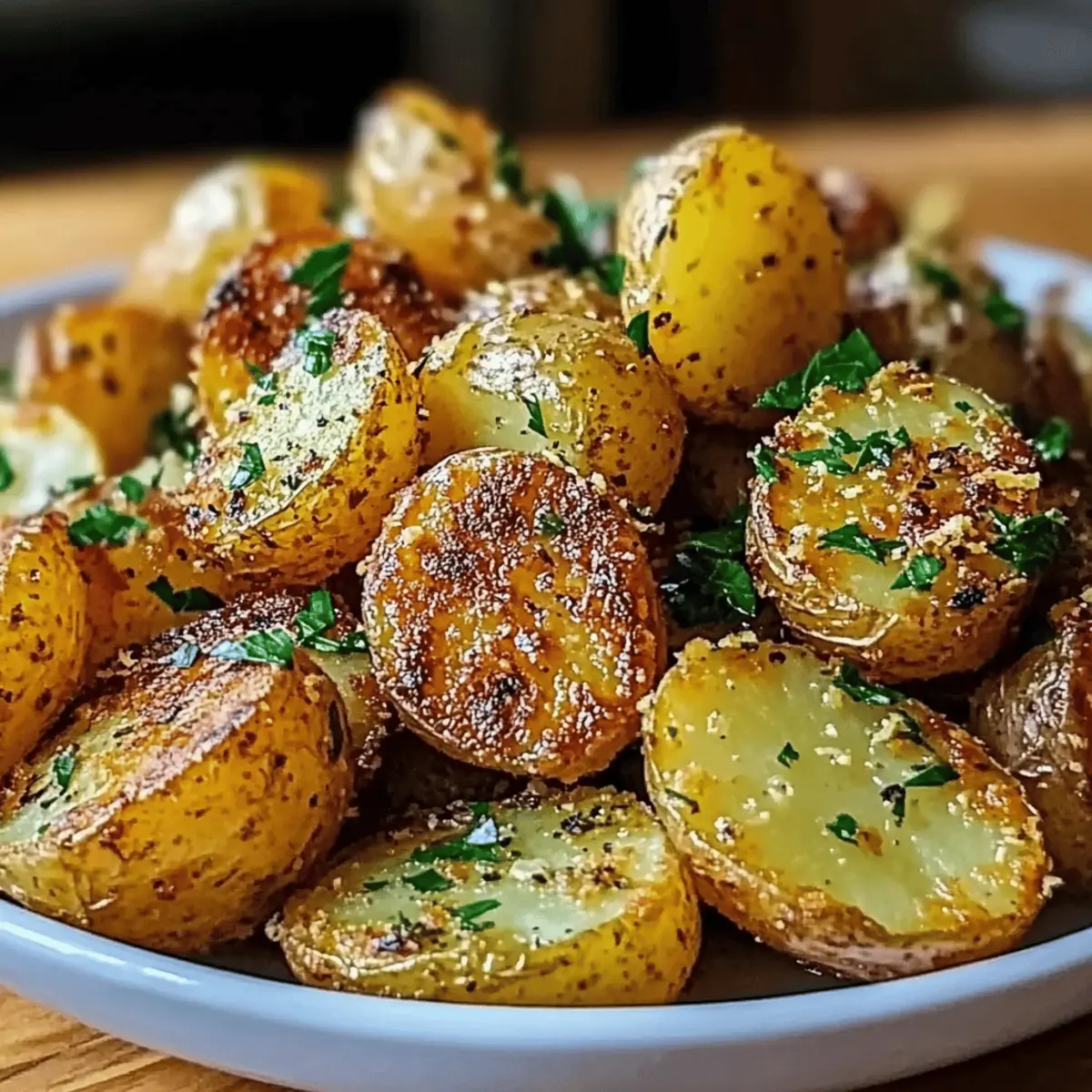 Jump to Recipe Print RecipeAs I turned the corner in my kitchen, a heavenly aroma wafted through the air—garlic sizzling in butter, coaxing my taste buds to life. My Crispy Garlic Butter Potatoes recipe has quickly become a go-to side dish that brings joy to everyone around the table. With just a handful of simple ingredients, this delightful recipe transforms waxy potatoes into a comforting culinary experience that is crunchy on the outside and wonderfully fluffy within. It’s incredibly quick to prepare, making it the perfect solution for busy weeknights, and you can easily elevate your meals from mundane to magnificent. Imagine these gems nestled beside your favorite protein, ready to steal the spotlight. Are you curious to discover how to whip up this irresistible side dish? Let’s dive into the recipe! Why Are These Potatoes So Irresistible? Simplicity, This recipe requires minimal ingredients and basic techniques, making it approachable for chefs of all skill levels. Mouthwatering Aroma, The tantalizing scent of garlic and butter mingling while they cook will have everyone eagerly awaiting dinner. Versatile Side Dish, These potatoes complement a range of main dishes, from grilled meats to vegetarian meals. Try pairing them with Garlic Butter Shrimp or roasted chicken for a winning combination. Crispy Perfection, With golden exteriors and fluffy interiors, each bite is a delightful contrast that you won’t be able to resist. Quick Preparation, Ready in just about 30 minutes, these potatoes are perfect for busy weeknights. You’ll be amazed at how something so simple can elevate your dining experience! Crispy Garlic Butter Potatoes Ingredients For the Potatoes Waxy potatoes – Choose Yukon Gold for a perfect balance of creaminess and crunch. Garlic – Fresh minced garlic is best for that robust flavor; garlic powder works if you’re in a pinch. For the Seasoning Butter – Rich and creamy, it helps achieve that desired crispy texture; olive oil makes a lighter alternative. Salt – Enhances the flavors; sea salt or kosher salt provides the best results. Pepper – Freshly ground black pepper adds a mild kick that complements the garlic. For the Finish Fresh herbs (e.g., parsley, rosemary) – Use these for a pop of color and fresh flavor; they’re optional but highly recommended to elevate the dish! Step‑by‑Step Instructions for Crispy Garlic Butter Potatoes Step 1: Preheat the Oven Begin by preheating your oven to 425°F (220°C). This high temperature is essential for achieving that signature crispy texture on your Crispy Garlic Butter Potatoes. Make sure the oven is fully heated before placing your potatoes inside for the best results. Step 2: Prepare the Potatoes Wash your Yukon Gold potatoes thoroughly under lukewarm water to remove any dirt. Cut them into even-sized cubes, approximately 1-inch in size, ensuring they cook evenly. This step helps achieve that delightful interior fluffiness, making your potatoes a crowd-pleaser at dinner. Step 3: Boil the Potatoes Place the chopped potatoes in a large pot filled with cold water. Add a pinch of salt and bring it to a boil over medium-high heat. Once boiling, cook them for about 10 minutes until they’re slightly softened—a fork should pierce them with ease but not break apart completely. Step 4: Drain and Dry After boiling, carefully drain the potatoes in a colander and allow them to sit for 5 minutes. This steaming step is crucial as it helps dry out any excess moisture, allowing your Crispy Garlic Butter Potatoes to achieve that perfect crunch when baked. Step 5: Toss with Garlic Butter In a large mixing bowl, melt the butter and add the minced garlic, salt, and freshly ground black pepper. Once melted, add your steamed potatoes and gently toss until each piece is generously coated with the aromatic garlic butter mixture. This is where the magic begins! Step 6: Arrange on Baking Tray Spread the tossed potatoes evenly on a baking tray lined with parchment paper. Make sure they’re not overcrowded, as this will hinder their ability to crisp up. Use a baking sheet that has sides to prevent any of the garlic or butter from spilling over while they cook. Step 7: Bake for Crispiness Place the baking tray in the preheated oven and bake the potatoes for 25-30 minutes. Halfway through the cooking time, flip them gently with a spatula to ensure even browning. Keep an eye on them; they should be golden and crispy with a beautiful, toasty aroma wafting through your kitchen. Step 8: Final Touch and Serve Once the potatoes are perfectly crispy, remove them from the oven and garnish with freshly chopped herbs like parsley or rosemary for a pop of color and flavor. Serve your Crispy Garlic Butter Potatoes immediately as a delightful side dish that will surely steal the show! Expert Tips for Crispy Garlic Butter Potatoes Choose the Right Potatoes: Waxy potatoes like Yukon Gold ensure the perfect combination of crunchy exteriors and fluffy interiors. Avoid starchy varieties for this recipe. Steam Dry for Crispiness: After boiling, allow the potatoes to sit in the colander for a few minutes to steam dry. This crucial step enhances the overall crispiness of your Crispy Garlic Butter Potatoes. Don’t Overcrowd the Tray: Spread the potatoes out evenly on your baking tray. Overcrowding can result in steaming instead of crisping, so give them space to breathe! Keep an Eye on Browning: Every oven is different; start checking your potatoes at the 20-minute mark. Flip them halfway through for an even golden color. Customize for Extra Flavor: Feel free to add spices like paprika or herbs like thyme for a delightful twist. These additions can elevate your Crispy Garlic Butter Potatoes to an even higher level of yum! Make Ahead Options These Crispy Garlic Butter Potatoes are perfect for meal prep enthusiasts! You can wash and chop the potatoes, then boil them for up to 24 hours in advance. After boiling, allow them to cool completely before
