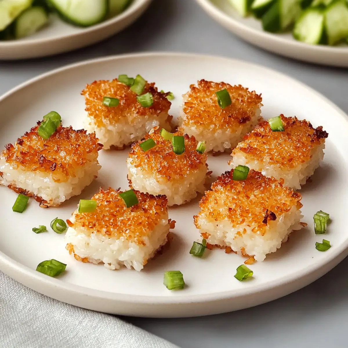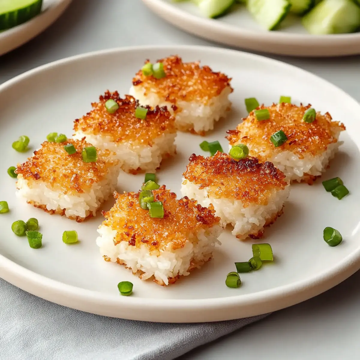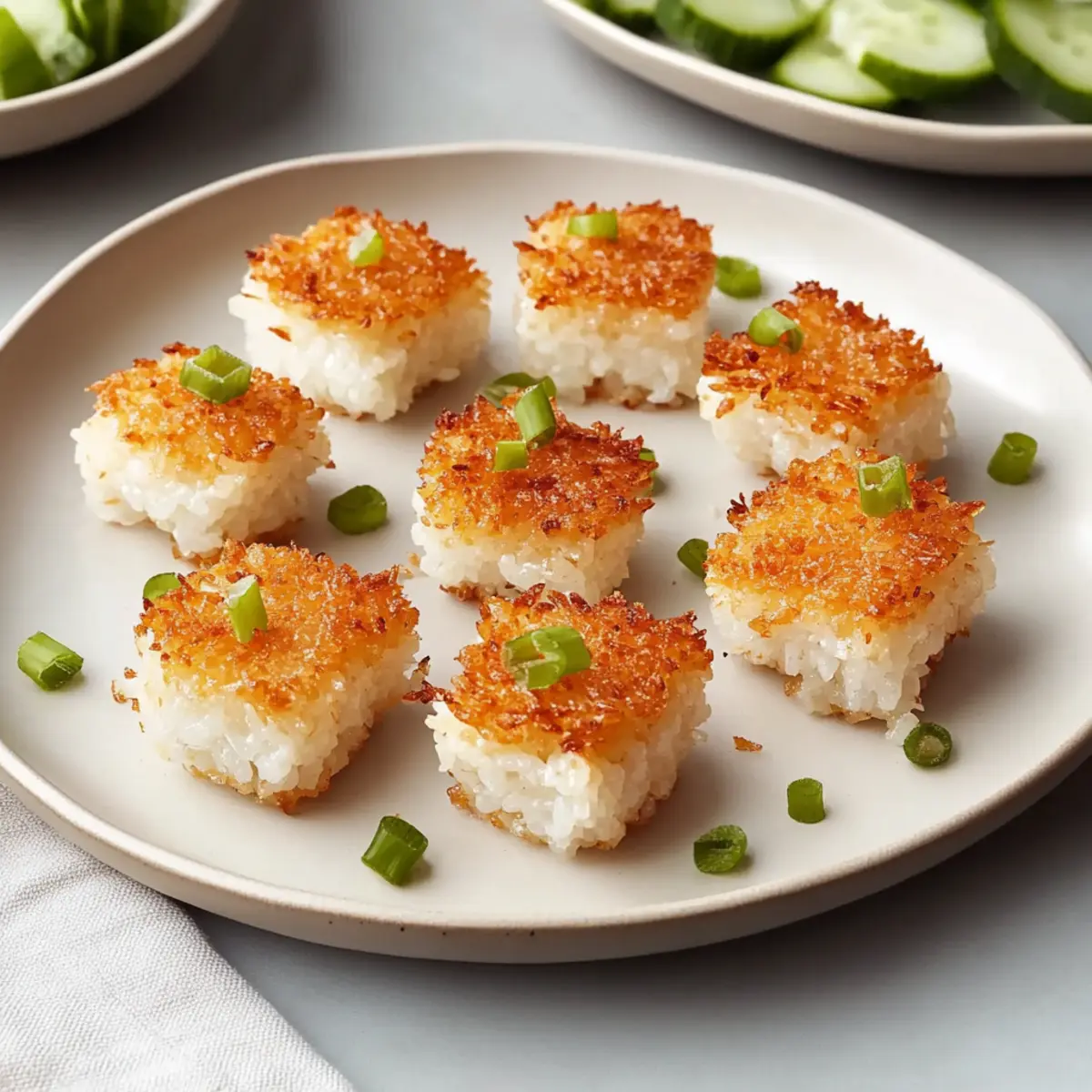 Jump to Recipe Print RecipeAs I stood in my kitchen, the aroma of sizzling rice wafted through the air, instantly transporting me to my favorite sushi bar. Today, I’m thrilled to share my recipe for Crispy Rice Bites — the ultimate versatile appetizer that transforms simple ingredients into a crunchy delight. Whether you’re craving a quick snack or an impressive dish to wow your guests, these bites hit the spot! They’re not just easy to prepare; they’re also gluten-free, making them a crowd-pleaser for any occasion. Dress them up with toppings like fresh avocado, savory seafood, or your favorite sauces for a customizable treat that will keep everyone coming back for more. Are you ready to elevate your snacking game? Let’s dive into this delightful recipe together! Why Are Crispy Rice Bites So Irresistible? Versatile: These delightful bites offer endless topping options, allowing you to customize each creation to suit your taste! Quick Preparation: In just a few simple steps, you can whip up a batch, making them perfect for any impromptu gathering. Gluten-Free: Rest assured, they cater to different dietary needs, ensuring even your gluten-sensitive friends can indulge! Crowd-Pleaser: Impress guests with a unique appetizer that looks and tastes gourmet yet is incredibly easy to make. Elevated Flavor: The combination of crunchy rice and savory toppings strikes that perfect balance to satisfy every palate, making them a hit at parties or cozy nights in. Crispy Rice Bites Ingredients For the Rice • Sushi Rice – Short-grain provides ideal texture for crispy bites; essential for the recipe—avoid substituting with long-grain rice. • Water – Essential for cooking the rice; measure accurately for the best results. • Salt – Flavor enhancer for rice; standard table salt works, but sea salt adds more depth. • Rice Vinegar – Adds tang to the rice; apple cider vinegar can be used as a substitute. • Granulated Sugar – Balances flavors of the rice; honey can be used as an alternative for sweetness. • Toasted Sesame Oil – Infuses a nutty aroma into the bites; can substitute with olive oil for a more neutral flavor. For Frying • Cooking Oil (Canola or similar) – Neutral oil for frying to achieve crispiness; important for texture—avoid strongly flavored oils. Optional Toppings • Fresh Sushi-Grade Fish (Salmon or Tuna) – Enhances flavor; provides a gourmet experience. • Diced Avocado – Adds creaminess; pairs well with crunchy bites. • Cucumber Slices – Offers refreshing crunch; complements savory elements. • Spicy Mayo or Eel Sauce – Optional drizzle for added flavor kick; a great way to elevate your crispy rice bites. • Furikake – Japanese seasoning that adds umami flavor to the bites, amplifying the overall taste experience! Step‑by‑Step Instructions for Crispy Rice Bites Step 1: Rinse the Rice Begin by rinsing 1 cup of sushi rice under cold water in a fine-mesh sieve until the water runs clear. This essential step helps remove excess starch, preventing mushy Crispy Rice Bites. Once rinsed, set it aside while you prepare the cooking method. Step 2: Cook the Rice Cook the rinsed sushi rice in a rice cooker or on the stovetop. For stovetop preparation, combine the rice with 1 ¼ cups of water in a saucepan, bring it to a boil, then reduce the heat to low, cover, and simmer for about 18-20 minutes until the rice is tender and water is absorbed. Let it cool for a few minutes. Step 3: Season the Rice In a separate bowl, mix together 2 tablespoons of rice vinegar, 1 tablespoon of granulated sugar, ½ teaspoon of salt, and 1 teaspoon of toasted sesame oil. Gently fold this seasoning mixture into the cooled rice, ensuring it’s evenly distributed for flavor, and let the rice cool completely. Step 4: Shape and Chill Line a baking tray with parchment paper and press the seasoned rice mixture into it, spreading it evenly to about ½ inch thick. Cover the tray with plastic wrap and refrigerate for at least 3 hours, or ideally overnight. This helps the rice set, making it easier to cut into perfect bite-sized squares. Step 5: Slice the Rice Once chilled, remove the rice from the refrigerator and carefully lift it out of the tray. Using a sharp knife, cut the firm rice slab into bite-sized pieces, approximately 2 inches square. Pat the pieces dry with a paper towel to remove excess moisture that could affect frying. Step 6: Fry the Rice In a large skillet, heat about ½ inch of canola oil over medium heat. Once the oil reaches around 350°F (you can check by dropping a grain of rice—it should sizzle immediately), carefully place the rice pieces in the hot oil. Fry each side for 1-2 minutes until golden brown and crispy, watching closely to avoid burning. Step 7: Serve Remove the fried Crispy Rice Bites from the skillet and drain on a wire rack or paper towels to maintain their crispiness. Serve warm, topping with your choice of diced avocado, fresh sushi-grade fish, or a drizzle of spicy mayo for an indulgent experience that will delight everyone! Expert Tips for Crispy Rice Bites • Rinse Thoroughly: Make sure to rinse the sushi rice under cold water until clear. This helps avoid mushy Crispy Rice Bites. • Chill Properly: Allow the shaped rice to chill in the fridge for at least 3 hours. This helps the bites hold their shape better when frying. • Test Oil Temperature: Drop a grain of rice into the hot oil—it should sizzle immediately. This ensures the bites fry to a perfectly crispy texture. • Pat Dry: After slicing, pat the rice pieces dry with a paper towel. Removing excess moisture helps achieve that coveted crunchy exterior. • Avoid Overcrowding: Fry the rice bites in batches to prevent lowering the oil temperature. This keeps them from becoming soggy. What to Serve with Crispy Rice Bites? Crispy Rice Bites are a delightful addition to any meal, inviting a world of flavors to your table. Creamy Avocado Salad: This fresh dish complemen