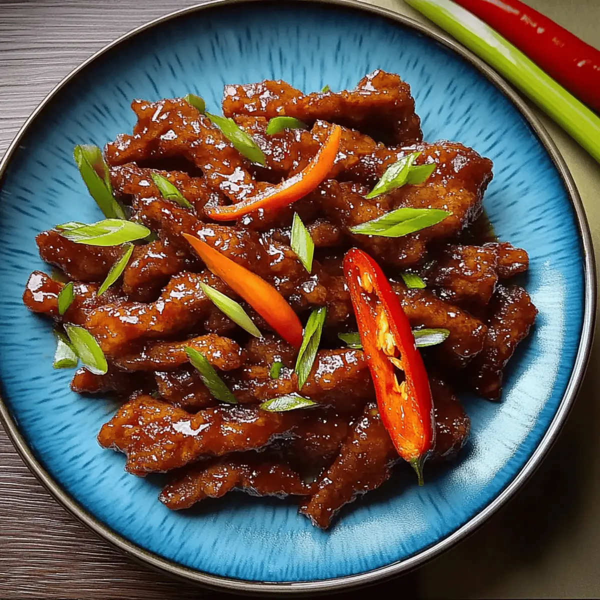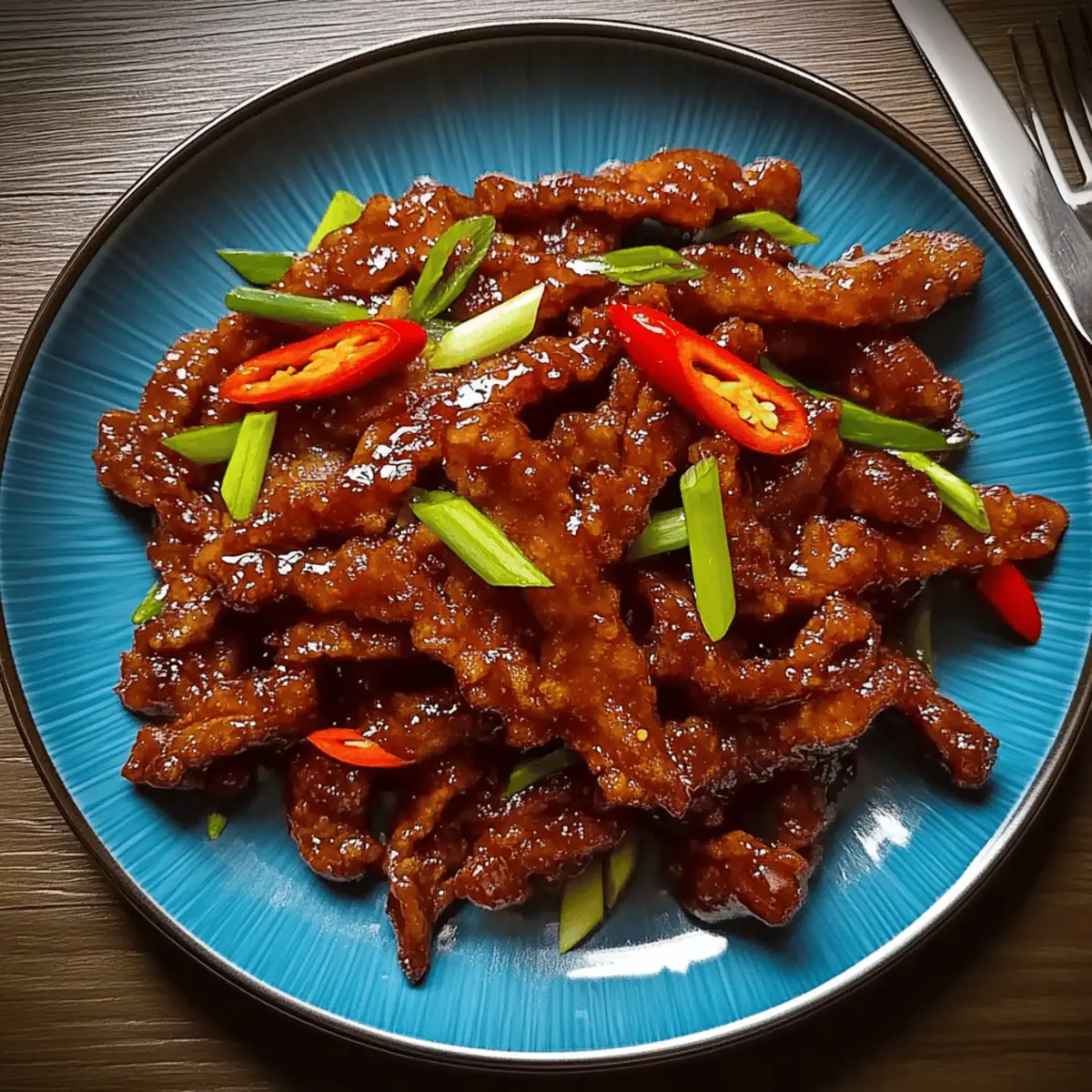 Jump to Recipe Print RecipeAs I stirred my pot one evening, the mingling scents of ginger, garlic, and sweet chilli took me back to that little restaurant down the street, famed for their amazing Crispy Sweet Chilli Beef. This is not just any dish; it’s a celebration of that delightful crunch and sauce that transforms a weeknight meal into a feast! Imagine serving a homemade version that not only brings that beloved takeaway flavor to your kitchen but also offers a healthier twist. With a simple prep and an irresistible texture, this recipe becomes an easy, go-to meal for busy nights. Ready to recreate this crispy, sticky goodness? Let’s dive into the deliciousness! Why is Crispy Sweet Chilli Beef Irresistible? Addictive Crunch: Each bite features a perfectly crispy texture that will make your tastebuds dance with joy! Flavor Explosion: The perfect balance of sweet, spicy, and tangy sauces takes your palate on a journey inspired by your favorite takeout. Quick Prep: With just a few simple steps, you can whip up this dish in no time, ideal for busy weeknights when you crave homemade goodness. Versatile Options: This recipe offers gluten-free and vegetarian adaptations, so everyone at the table can enjoy it. Consider adding fresh veggies for extra flavor, like bell peppers or snap peas! Crowd Favorite: Serve this delightful dish with steamed jasmine rice or noodles, and watch it disappear, leaving your guests asking for seconds! Crispy Sweet Chilli Beef Ingredients For the Beef • Thin-Cut Sirloin Steaks – Provides tenderness and the core protein; flank or tenderloin works, too. • Egg – Binds the cornflour coating, adding richness; substitute with a flax egg for a vegan option. • Cornflour (Cornstarch) – Ensures an irresistibly crispy texture; avoid using regular flour for best results. For the Seasoning • Salt – Enhances flavor; season to taste. • Black Pepper – Adds warmth; adjust according to your preference. • White Pepper – Provides a milder spice note; feel free to omit for a gentler flavor. For the Cooking • Sunflower Oil – Essential for achieving crispiness during frying; vegetable or peanut oil can be substituted. For the Aromatics • Onion – Adds sweetness and depth; interchangeable with red or yellow onion. • Red Chilli – Delivers heat and color; adjust the quantity based on your spice preference. • Minced Ginger – Brings warm spiciness to the dish; can use minced garlic in a pinch. • Garlic Cloves – Infuse aromatic notes; always opt for fresh for the best flavor. For the Sauce • Rice Vinegar – Adds tang and brightness; apple cider vinegar can make a great substitute. • Dark Soy Sauce – Contributes rich flavor; tamari serves as a gluten-free alternative. • Tomato Puree – Enhances richness and acidity; can swap with ketchup but balance the sugar. • Caster Sugar (Superfine Sugar) – Balances flavors and sweetness; granulated sugar works in a pinch. • Tomato Ketchup – Introduces a tangy sweetness; can be replaced with hoisin sauce if desired. • Sweet Chilli Sauce – The star of the dish, bringing signature flavor; try making it homemade for a twist! Now that you have all the essential ingredients, are you ready to create a delightful Crispy Sweet Chilli Beef that will tantalize your taste buds and impress your loved ones? Let’s get cooking! Step‑by‑Step Instructions for Crispy Sweet Chilli Beef Step 1: Prep the Beef In a mixing bowl, add the thin-cut sirloin steaks and crack one egg over them, tossing until the beef is evenly coated. Gradually sprinkle in cornflour, salt, black pepper, and white pepper, ensuring each piece is well covered with the mixture. Let this sit for a few minutes while you prepare your cooking station. Step 2: Heat Oil In a large frying pan, pour in about 3 tablespoons of sunflower oil and heat it over medium-high heat. The oil is ready when you see it shimmering but not smoking; this ensures that your Crispy Sweet Chilli Beef will achieve the perfect golden crust. Step 3: Fry Beef Carefully add the beef strips to the hot oil in batches, making sure not to overcrowd the pan. Fry each batch for 5-6 minutes until they are dark brown and crispy, flipping occasionally for even cooking. Once they are beautifully crisped, remove the beef and place it on paper towels to drain excess oil. Step 4: Sauté Aromatics In the same frying pan, add a splash more oil if needed, and toss in the chopped onion. Sauté for about 2 minutes until the onions just begin to soften, then add in the chopped red chilli, minced ginger, and minced garlic. Stir for about 30 seconds, allowing the flavors to infuse the oil. Step 5: Make Sauce Pour in the rice vinegar, dark soy sauce, tomato puree, caster sugar, tomato ketchup, and sweet chilli sauce to the pan with the aromatics. Stir the mixture well and bring it to a gentle simmer for 2-3 minutes, allowing the sauce to reduce slightly and thicken. Step 6: Combine Now, return the crispy beef back into the pan, stirring gently to coat each piece thoroughly with the luscious sauce. Heat everything together for 1-2 minutes until the beef is warmed through and glistening with the sweet chilli sauce. Serve immediately to enjoy the best texture and flavor! How to Store and Freeze Crispy Sweet Chilli Beef Room Temperature: It’s best to consume Crispy Sweet Chilli Beef immediately for optimal flavor and texture. If left out, consume within 2 hours for safety. Fridge: Store leftovers in an airtight container in the fridge for up to 3 days. Reheat gently in a pan to preserve some crispiness. Freezer: For longer storage, freeze the beef in an airtight container for up to 2 months. Thaw in the fridge overnight and reheat in a skillet for best results. Reheating: For the most satisfying crunch, reheat the beef in a hot frying pan rather than the microwave, which can make it soggy. Enjoy your Crispy Sweet Chilli Beef! What to Serve with Crispy Sweet Chilli Beef Elevate your home-