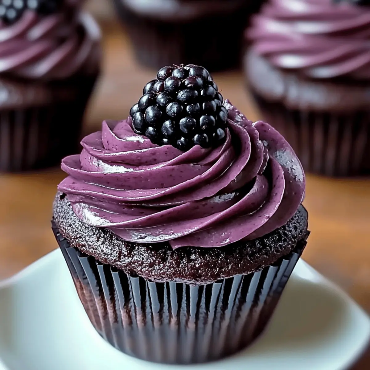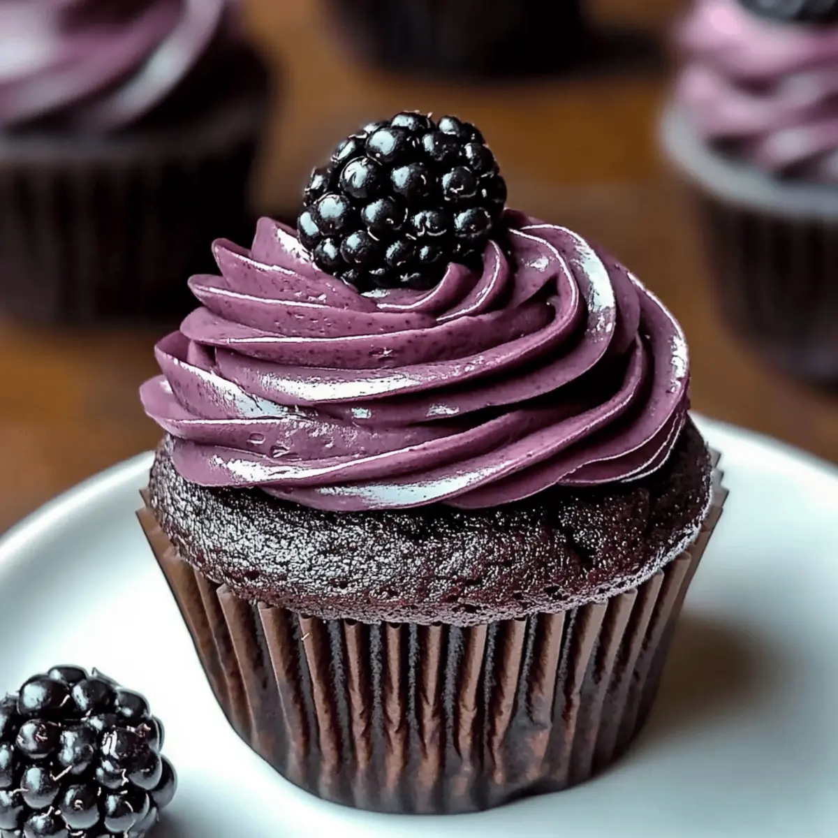 Jump to Recipe Print RecipeThere’s nothing like the satisfaction of biting into a freshly baked cupcake, especially when it’s a Dark Chocolate Blackberry Cupcake. The moment I pulled these beauties from the oven, I was met with a delightful aroma—rich chocolate mingling with the sweet-tart scent of blackberries. This elegant dessert, perfect for any occasion, is not only a feast for the eyes but a crowd-pleaser that’s surprisingly easy to whip up. Plus, with gluten-free substitutions available, everyone can indulge in this luxurious treat! Whether it’s a birthday celebration or just a cozy night in, these cupcakes promise a perfect balance of moist chocolate cake and vibrant berry goodness. Curious about how to make your own batch and impress your loved ones? Let’s dive into the recipe! Why Choose Dark Chocolate Blackberry Cupcakes? Rich, Decadent Chocolate: Every bite of these cupcakes bursts with the luxurious flavor of dark chocolate—perfect for chocolate lovers! Fresh Blackberry Bliss: The tartness of fresh blackberries cuts through the sweetness, giving a refreshing twist that keeps you coming back for more. Easy to Prepare: With simple ingredients and straightforward steps, even novice bakers will shine. Allergy-Friendly Options: Customize the recipe with gluten-free flour or vegan substitutes, ensuring everyone gets to enjoy these delights. Elegant Presentation: Topped with creamy frosting, these cupcakes exude sophistication, making them perfect for any celebration. Crowd-Pleasing Treat: Whether for a birthday, holiday, or a cozy gathering, these cupcakes will impress and delight your guests! If you’re also keen on more delicious treats, try Keto Chocolate Chip or Healthy Chocolate Banana options for variety. Dark Chocolate Blackberry Cupcake Ingredients Get ready to bake the most delicious Dark Chocolate Blackberry Cupcakes! For the Cupcake Batter All-purpose flour – Provides structure; substitute with a gluten-free flour blend for a gluten-free option. Unsweetened cocoa powder – Adds an intense chocolate flavor; use Dutch-process cocoa for a smoother taste. Granulated sugar – Sweetens the batter and complements the bitter chocolate; coconut sugar can be used for a lower glycemic option. Baking powder – Aids in leavening the cupcakes; make sure it’s fresh for the best results. Baking soda – Works with buttermilk for rising; no direct substitution is recommended. Salt – Enhances all flavors; sea salt can be used for a gourmet touch. Unsalted butter – Adds richness and moisture; replace with vegan butter or coconut oil for dairy-free options. Large eggs – Provide moisture and structure; use flax eggs or applesauce for a vegan alternative. Vanilla extract – Offers depth of flavor; vanilla bean paste can intensify this flavor. Buttermilk – Contributes tanginess; regular milk with vinegar or lemon juice works as a substitute. Fresh blackberries – Adds tartness to balance the sweetness; feel free to swap with raspberries or strawberries. Dark chocolate chips – Enriches the cupcake’s chocolate flavor; semi-sweet or milk chocolate chips can also work for variations. Optional Frosting Buttercream frosting – A simple frosting can complement the rich chocolate and berries beautifully; consider a light vanilla or berry-flavored frosting. Gather these ingredients, and you’re well on your way to creating an unforgettable dessert experience that highlights the delightful fusion of dark chocolate and fresh blackberries! Step‑by‑Step Instructions for Dark Chocolate Blackberry Cupcakes Step 1: Preparation Preheat your oven to 350°F (175°C) and line a cupcake pan with paper liners. Make sure to have all your ingredients at room temperature for the best results. Setting the atmosphere right with the warm aroma of your baking starts now! Step 2: Mix Dry Ingredients In a medium bowl, whisk together the all-purpose flour, unsweetened cocoa powder, granulated sugar, baking powder, baking soda, and salt until well combined. This step is crucial for ensuring the dry ingredients are evenly distributed, setting a solid foundation for your Dark Chocolate Blackberry Cupcakes. Step 3: Cream Butter and Sugar In a separate large bowl, use an electric mixer to cream the softened unsalted butter until it’s smooth and fluffy. Gradually add in the eggs, one at a time, mixing well after each addition. The mixture should be light in color and well combined—this adds richness to your cupcakes. Step 4: Combine Ingredients Slowly alternate adding the dry mixture and buttermilk to the creamed butter and eggs, beginning and ending with the dry ingredients. Stir gently until just combined; do not overmix. Fold in the fresh blackberries and dark chocolate chips carefully, preserving their integrity for delightful bursts of flavor in each cupcake. Step 5: Bake Spoon the batter into the prepared cupcake liners, filling each about two-thirds full. Bake in the preheated oven for 18–20 minutes or until a toothpick inserted into the center comes out clean or with a few crumbs. Keep an eye on their rise and richness; the aroma will be heavenly! Step 6: Cool Once baked, remove the cupcake pan from the oven and let it cool in the pan for about 5 minutes. Then, transfer the cupcakes to a wire rack to cool completely. This cooling process is key to achieving the perfect texture in your Dark Chocolate Blackberry Cupcakes. Step 7: Frosting (optional) While the cupcakes cool, prepare a simple frosting, like buttercream, to complement their rich chocolate flavor. Once the cupcakes are completely cooled, frost generously to create an elegant finish. Your delightful creation is ready to dazzle at any gathering or simply as a treat at home! Storage Tips for Dark Chocolate Blackberry Cupcakes Room Temperature: Keep leftover cupcakes in an airtight container at room temperature for up to 3 days. This helps maintain their moisture and decadent texture. Fridge: If you want to store them
