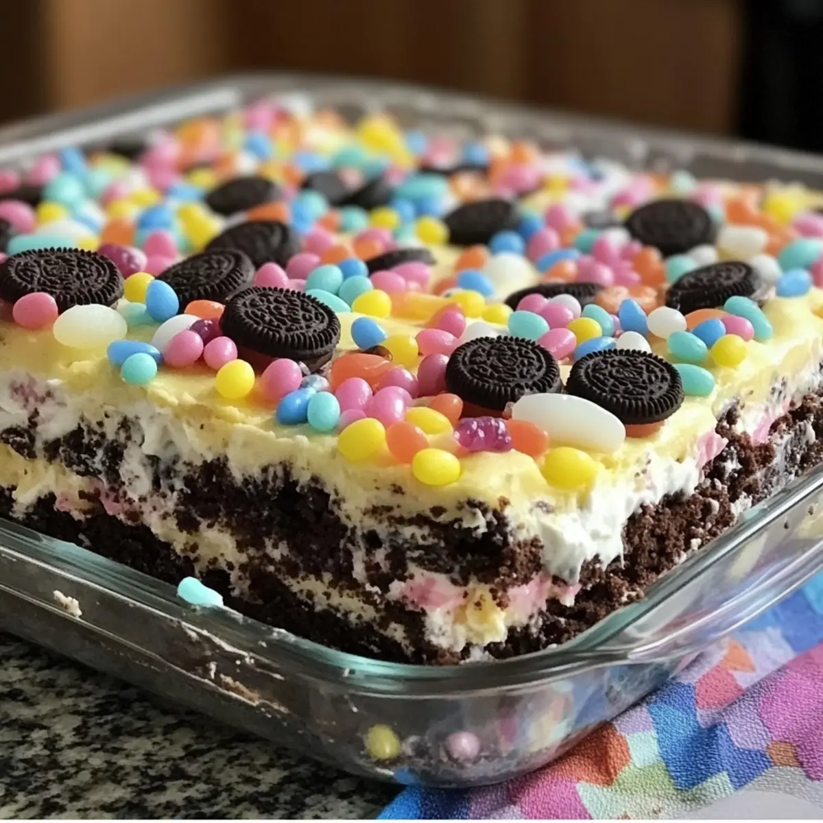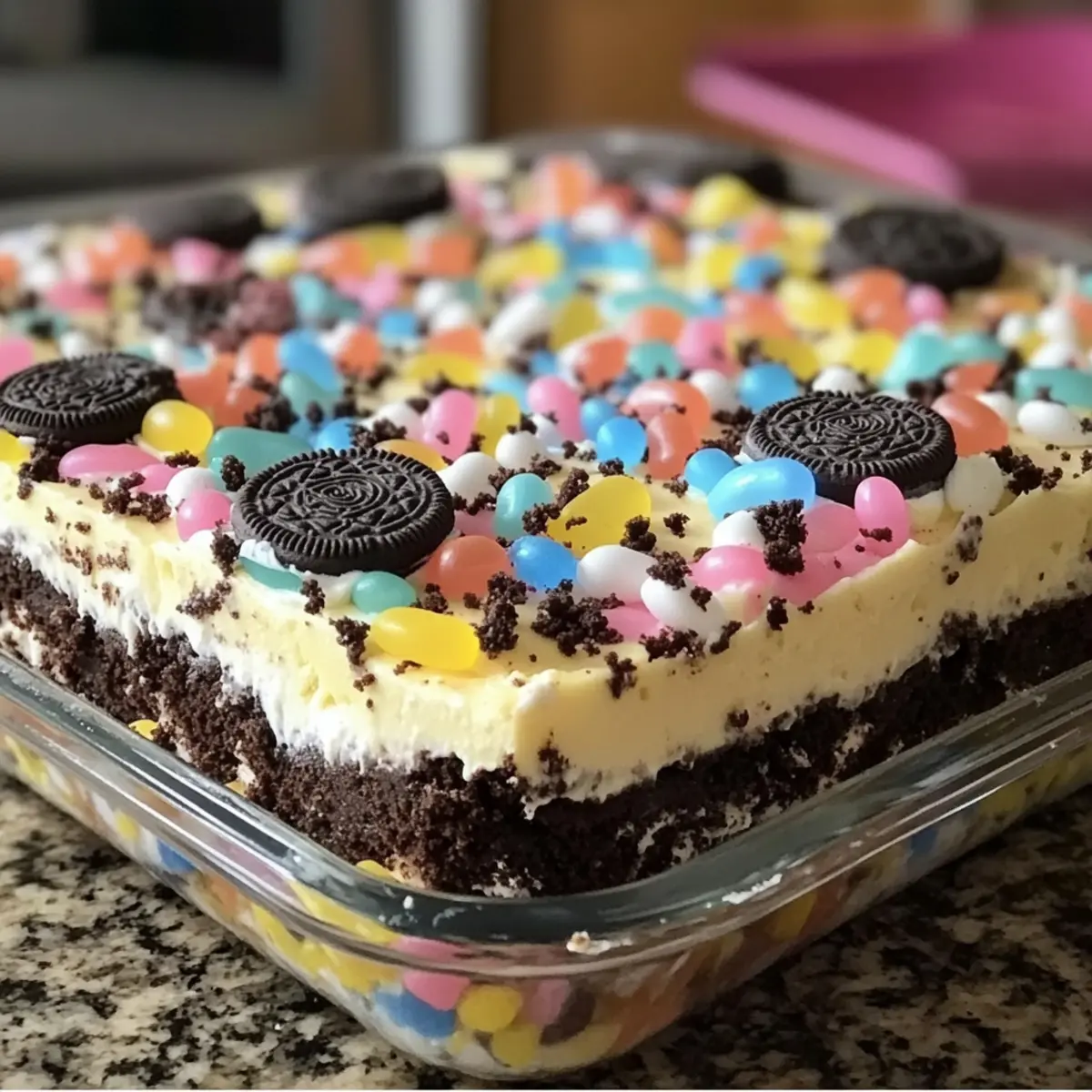 Jump to Recipe Print RecipeAs I watched the kids gather around the table, their eyes lit up at the sight of the Easter Dirt Cake Casserole, I couldn’t help but smile. This delightful dessert blends creamy chocolate goodness with a fun, crunchy topping that mimics garden dirt—a guaranteed hit for any festive gathering. What I love most about this no-bake recipe is its simple preparation; you can whip it up in no time, giving you more moments to enjoy the holiday fun with loved ones. Plus, it’s completely kid-friendly, ensuring that everyone can join in on the deliciousness. Are you ready to add a whimsical touch to your Easter celebration? Let’s dive into this easy, delightful treat! Why is Easter Dirt Cake Casserole a Must-Try? Kid-Friendly Fun: This charming dessert is not only visually appealing but also a hit with kids and adults alike! No-Bake Convenience: Enjoy the joy of baking without the oven! With easy preparation, it saves you time so you can focus on family fun. Decadent Chocolate Layers: The rich chocolate cake is perfectly complemented by a smooth cream cheese mixture, creating an indulgent treat that everyone will love. Whimsical Topping: The crushed Oreos and gummy worms add a playful touch, turning dessert into a fun experience reminiscent of childhood adventures. Perfect for Gatherings: This Easter Dirt Cake Casserole is a delightful showstopper, making it ideal for potlucks or festive gatherings, just like a Strawberry Cake Refreshingly. Elevate your dessert game this Easter and watch the smiles appear with every bite! Easter Dirt Cake Casserole Ingredients For the Cake Base Chocolate Cake Mix – This forms the rich, moist foundation of the casserole; any brand will work wonderfully. Eggs – Essential for binding the ingredients; use large, room-temperature eggs for optimal mixing. Water – Required for the cake batter, following package instructions helps achieve the right consistency. Vegetable Oil – Adds moisture; can be replaced with melted butter for a richer flavor. For the Creamy Layer Cream Cheese – Provides a smooth and creamy filling; ensure it’s softened at room temperature for easier mixing. Whipped Topping – Lightens the cream cheese mixture; a store-bought option like Cool Whip works perfectly. Powdered Sugar – Sweetens your cream cheese layer; adjust to taste for your desired sweetness level. For the Fun Topping Oreos (Crushed) – Creates the crunchy ‘dirt’ effect; a fine crush gives a better presentation. Gummy Worms – Adds a playful decoration that enhances the fun aspect of this Easter dessert; use as many as you like! Experience the joy of making this Easter Dirt Cake Casserole with its delightful layers and whimsical appearance—it’s sure to become a family favorite! Step‑by‑Step Instructions for Easter Dirt Cake Casserole Step 1: Preparation Preheat your oven to 350°F (175°C) while you prepare your 9×13 inch casserole dish by greasing it gently with butter or cooking spray. A well-greased dish ensures that your chocolate cake releases easily once baked, giving a smooth surface for the delightful layers to come. Step 2: Cake Batter In a large mixing bowl, combine the chocolate cake mix, eggs, water, and vegetable oil. Using an electric mixer, blend the mixture until it’s smooth and creamy, which should take about 2 minutes. Be sure to scrape down the sides of the bowl to incorporate all the ingredients, creating a luscious batter full of rich chocolate flavor for your Easter Dirt Cake Casserole. Step 3: Bake Pour the cake batter into the prepared casserole dish, spreading it evenly with a spatula. Bake in the preheated oven for 30-35 minutes. You’ll know it’s done when a toothpick inserted into the center comes out clean. Allow the cake to cool completely in the dish on a wire rack, which typically takes about 30 minutes. Step 4: Cream Cheese Mixture While the cake cools, prepare the creamy layer. In a medium bowl, beat the softened cream cheese with an electric mixer until smooth, about 1-2 minutes. Gradually add in the powdered sugar, mixing until well combined. Finally, gently fold in the whipped topping, creating a light and fluffy mixture that will sit beautifully atop your cooled cake. Step 5: Assembly Once the cake has cooled, spread the cream cheese mixture evenly over the top of the chocolate cake using a spatula. This layer captures the richness of the cake while adding a creamy element, integral to the Easter Dirt Cake Casserole. Step 6: Add Toppings Generously sprinkle crushed Oreos over the cream cheese layer, mimicking the texture of dirt. Don’t be shy—more Oreos mean more crunchy goodness! Finish by placing gummy worms atop the crushed Oreos; their vibrant colors add a playful flair to your Easter Dirt Cake Casserole, attracting kids and adults alike. Step 7: Chill Refrigerate the assembled Easter Dirt Cake Casserole for at least one hour before serving. Cooling allows the flavors to meld beautifully and gives the dessert a chance to firm up. This chilling step ensures every bite is as delicious as it is visually appealing when you finally dig in. Expert Tips for Easter Dirt Cake Casserole Cool Completely: Always let the cake cool completely before layering the cream cheese mixture; this prevents the cream cheese from melting into the cake. Fine Oreo Crush: Use finely crushed Oreos for the topping to achieve a better ‘dirt’ look. Larger pieces may not stick well and can affect presentation. Chill Time Matters: Don’t skip the chilling step! Refrigerating for at least an hour enhances flavors and helps the layers set, making the Easter Dirt Cake Casserole easier to serve. Room Temperature Ingredients: Use cream cheese at room temperature for easier mixing into a smooth filling. This ensures a lovely texture in your creamy layer. Customize Your Toppings: Feel free to get creative with toppings! Swap gummy worms for other candies or add sprinkles for extra color—make it your own! East