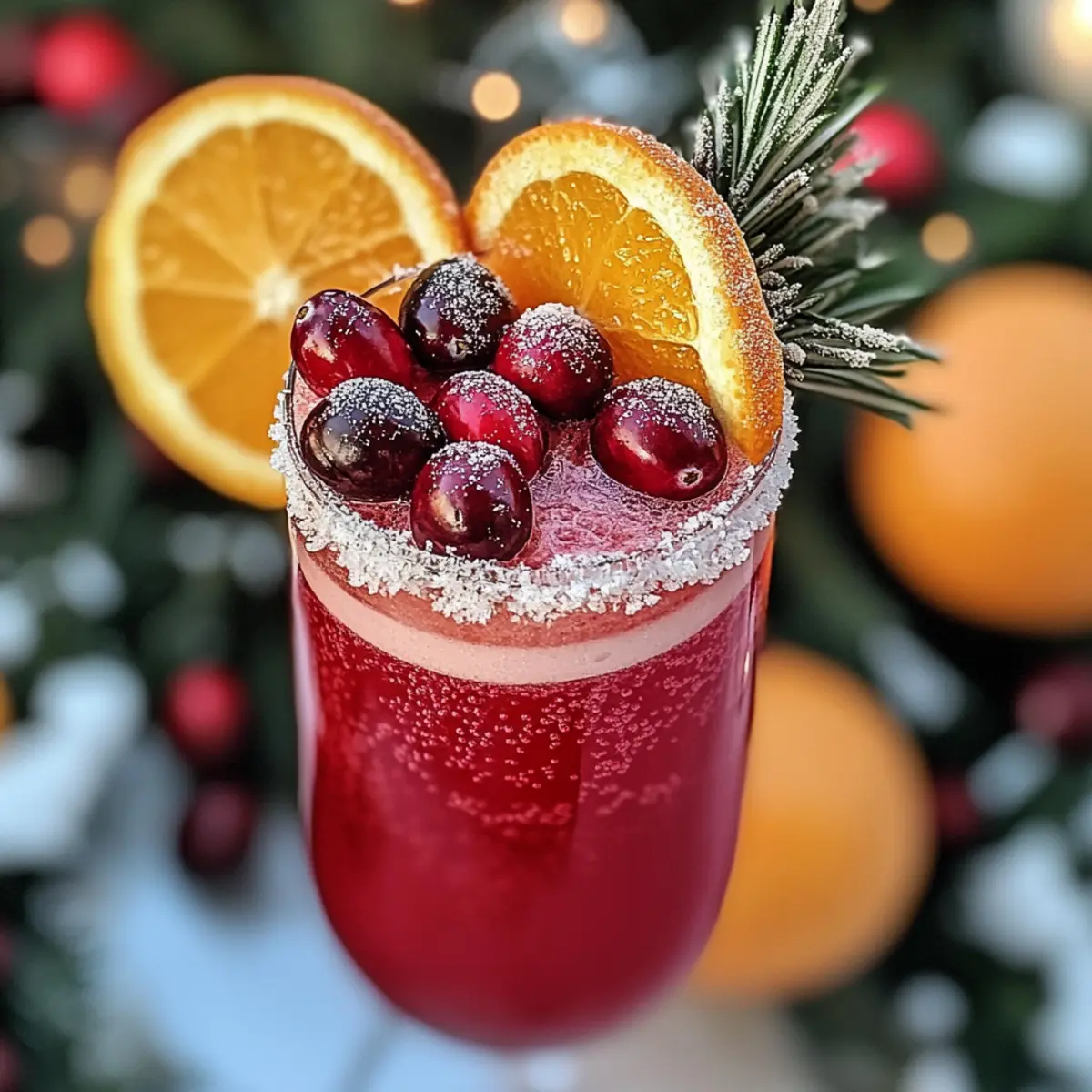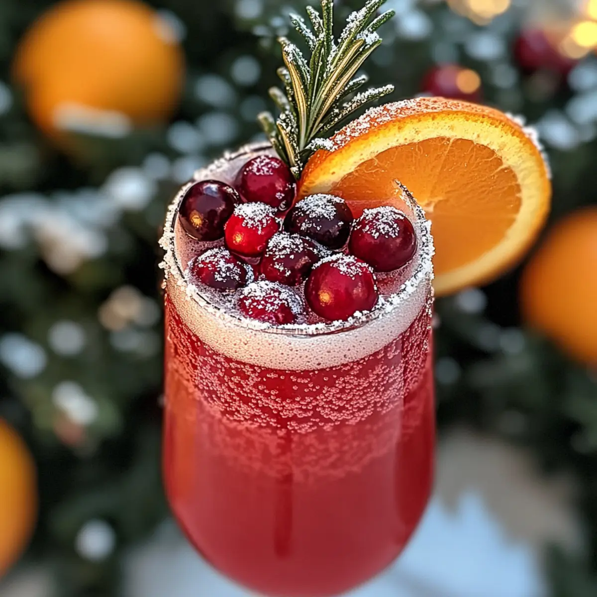 Jump to Recipe Print RecipeAs I stirred the vivid hues of cranberry and orange juices, thoughts of holiday bliss danced through my mind. These Festive Prosecco Cocktails are more than just drinks; they’re the sparkle at every gathering, bringing friends and family together with every effervescent sip. This easy-to-make recipe not only brightens up your holiday celebrations but also showcases the delightful adaptability of flavors—think cranberry-orange, or even a tropical mango-lime twist! With minimal prep, you can whip these up in no time, leaving you free to savor the joy of the season and impress your guests. Curious about how to give your festivities an extra dose of cheer? Let’s dive into the details! Why Are These Cocktails a Must-Try? Effortless elegance: These Festive Prosecco Cocktails elevate any gathering with minimal effort, making you look like a pro mixologist! Vibrant flavors: The combination of cranberry and orange juices provides a perfect balance of sweetness and tartness, ensuring every sip is refreshing. Versatile options: Feel free to experiment with different fruits like pomegranate or mango for unique twists that cater to varied palates. Crowd-pleaser: Impress your guests with their stunning presentation—garnished with fresh cranberries and rosemary—the perfect festive touch! Make-ahead convenience: Prepare the juice mixes in advance and add Prosecco just before serving to keep that delightful fizz intact. For more cheerful party ideas, check out these refreshing Gingerbread Men Cookies that pair wonderfully with your cocktails! Festive Prosecco Cocktails Ingredients For the Cocktail Base Prosecco – The main ingredient providing effervescence and a touch of sweetness; any sparkling wine like Cava can be used as a substitute. Cranberry Juice – Adds a tart sweetness and festive color; opt for unsweetened for a more balanced taste. Orange Juice – Enhances the cocktail with fresh flavor and natural sweetness; for the best results, use freshly squeezed juice. For the Garnish Fresh Cranberries – Beautifully adorns each glass and enhances visual appeal; dried cranberries may also serve as an alternative. Orange Slices – Adds vibrant color and complements the cocktail’s citrus notes. Rosemary Sprigs (Optional) – Provides a delightful herbal aroma and an elegant touch to the presentation. Add your festive flair to gatherings with these Festive Prosecco Cocktails—a delightful treat that sparkles with holiday cheer! Step‑by‑Step Instructions for Festive Prosecco Cocktails Step 1: Chill Ingredients Begin by placing your Prosecco and both juices—cranberry and orange—into the fridge at least two hours before you want to serve the Festive Prosecco Cocktails. This will ensure that all components are well-chilled, enhancing the overall refreshment of your drinks. It’s important to have them cold, so the cocktails stay bubbly and vibrant. Step 2: Mix Juices In a large pitcher, gently combine the unsweetened cranberry juice and freshly squeezed orange juice. Stir the mixture carefully for about 30 seconds, allowing the flavors to integrate while keeping the juices nice and vibrant. You’ll know it’s ready when you see a lovely blend of the rich cranberry and sunny orange hues. Step 3: Incorporate Prosecco Once the juice mixture is ready, slowly pour the chilled Prosecco into the pitcher. Aim to add it gradually to maintain the carbonation, which is key for the effervescent quality of your Festive Prosecco Cocktails. Keep an eye on the bubbles as they dance, filling the pitcher with sparkling joy—this step should only take a minute. Step 4: Garnish and Serve Using a ladle, pour the cocktail mixture into elegant glasses, filling each about two-thirds full for the best presentation. Decorate with a handful of fresh cranberries and an orange slice on the rim. For an extra touch of holiday spirit, add a sprig of rosemary to each glass before serving. Enjoy your beautifully crafted cocktails immediately to savor that delightful fizz! What to Serve with Festive Prosecco Cocktails Looking to create a delightful spread that complements the effervescence of your cocktails? These pairings will ensure your holiday gathering is as festive as it is delicious. Savory Cheese Platter: A selection of creamy brie, sharp cheddar, and tangy goat cheese creates a flavorful contrast that pairs beautifully with the sweet and fruity cocktails. Herbed Crostini: Crisp crostini topped with fresh herbs and soft cheese offer a crunchy texture that enhances the sparkling experience while adding a rustic touch to your gathering. Spiced Nuts: Roasted nuts seasoned with cinnamon and cayenne provide a perfect sweet and spicy balance, acting as an irresistible snack that guests will return to throughout the evening. The blend of sweet and savory spices elevates the festive atmosphere, making them a must-have munch alongside your bubbly. Fruit Salad: A refreshing fruit medley, perhaps combining berries, orange segments, and mint, brightens the palate and offers a light, refreshing break between sips. Chocolate-Covered Strawberries: Elegant bites of sweetness that echo the fruity flavors of your cocktails—plush dark chocolate paired with juicy strawberries is always a hit! Sparkling Water or Lemonade: For a non-alcoholic option, provide sparkling water infused with citrus slices or a vibrant homemade lemonade. These drinks complement your festive Prosecco Cocktails naturally, keeping the holiday spirit alive for all guests. These thoughtful pairings will enhance your Festive Prosecco Cocktails, adding layers of flavor and fun to your celebration! How to Store and Freeze Festive Prosecco Cocktails Fridge: Any leftover cocktail mixture can be stored in an airtight container in the fridge for up to 24 hours; however, bubbles will diminish over time, impacting the drink’s fizz. Freezer: While it’s not recommended to freeze the completed cocktails, you can freeze leftover juices