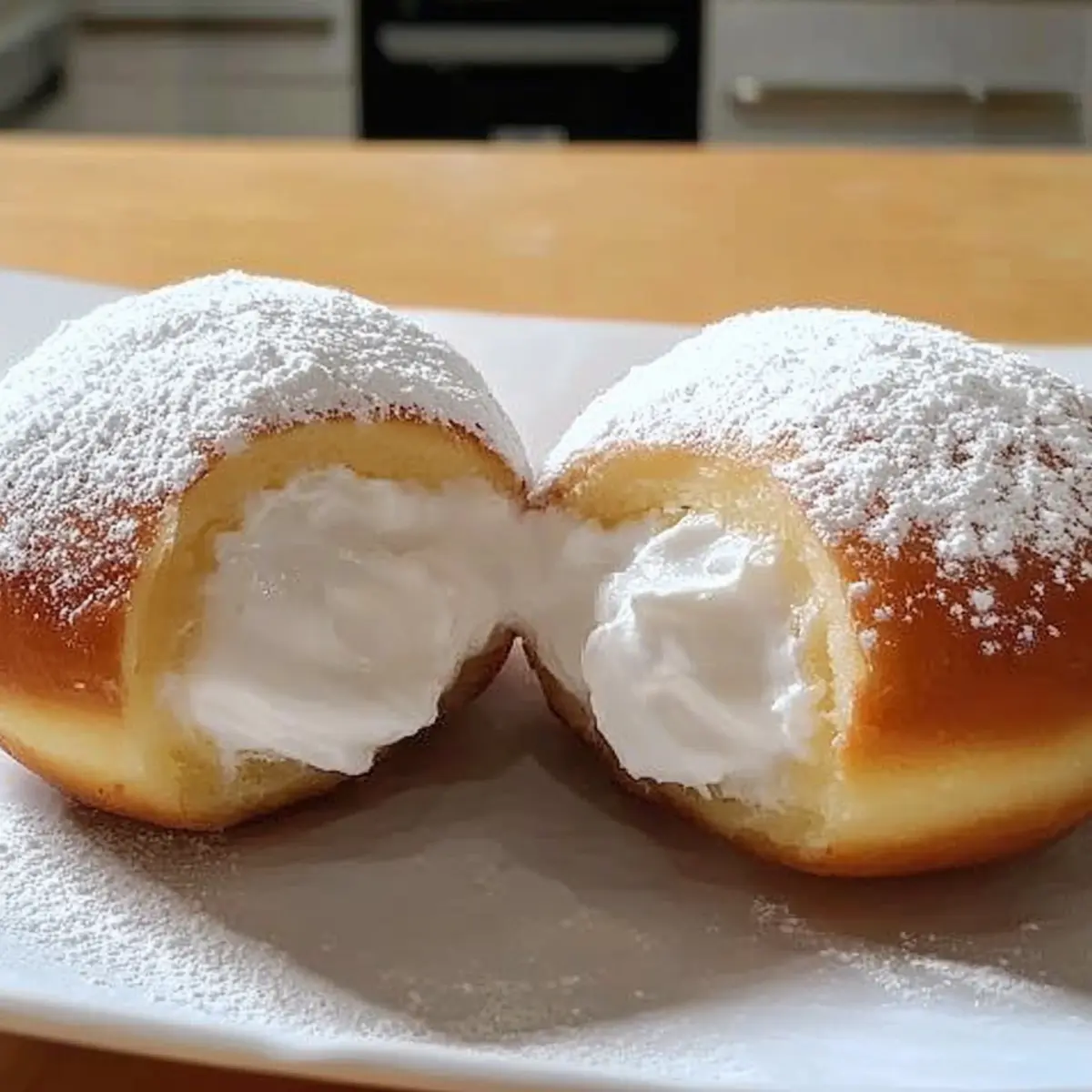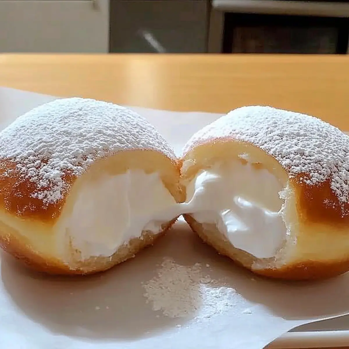 Using a piping bag or a spatula, generously fill each donut with whipped cream until they are plump and inviting. Dust the tops with powdered sugar for a delightful finishing touch. Feel free to get creative with your fillings and variations; the possibilities for your Fluffy Korean Milk Cream Donuts are endless!